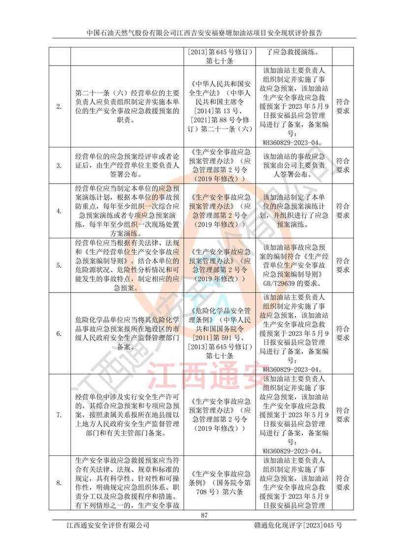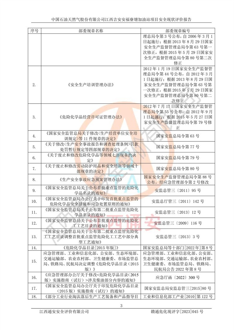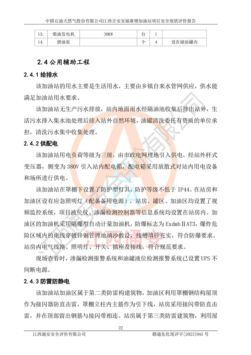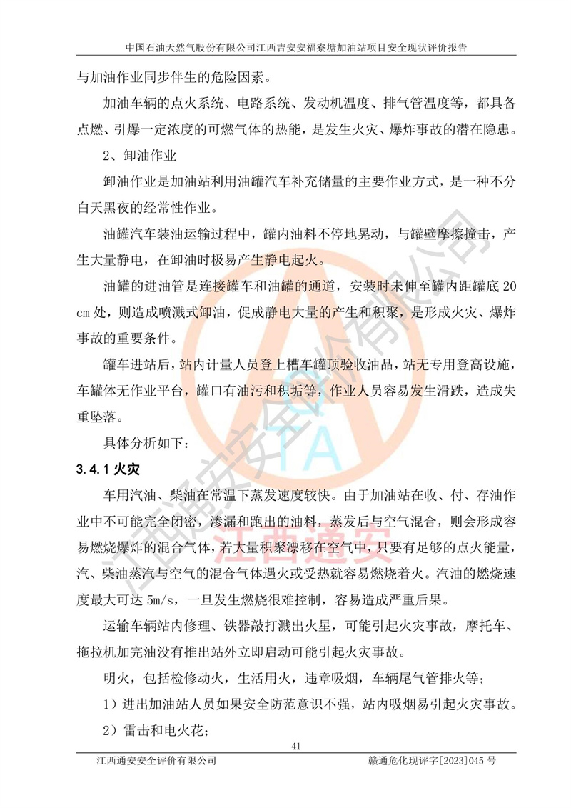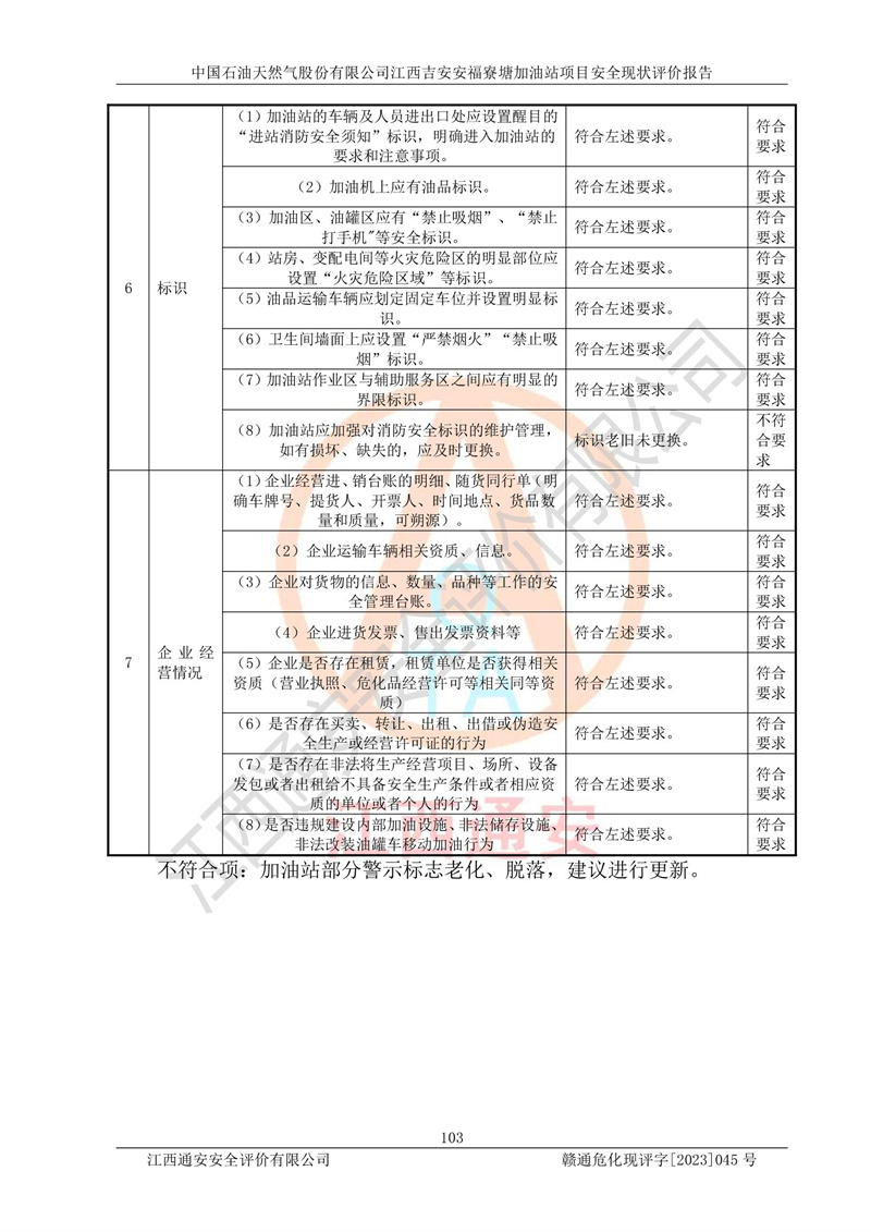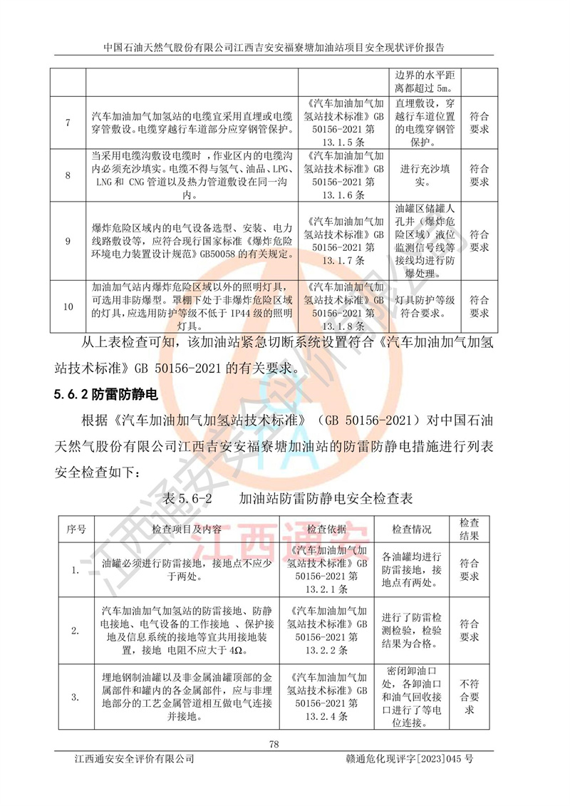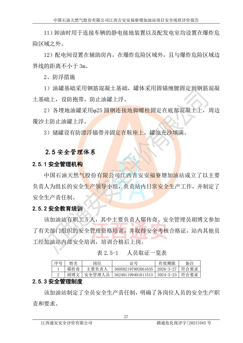 中國石油天然氣股份有限公司江西吉安安福寮塘加油站是一家從事成品油批發(fā)、成品油零售經(jīng)營的企業(yè)。該加油站成立于2011年5月4日,并獲得安??h市場監(jiān)督管理局頒發(fā)的營業(yè)執(zhí)照,營業(yè)執(zhí)照統(tǒng)一社會(huì)信用代碼為:91360829573618262D,加油站類型為股份有限公司分公司(上市,國有控股),負(fù)責(zé)人為鄢**,經(jīng)營范圍:許可項(xiàng)目:成品油批發(fā),成品油零售,住宿服務(wù),餐飲服務(wù),食品銷售,煙草制品零售,***零售,農(nóng)藥零售,藥品零售(依法須經(jīng)批準(zhǔn)的項(xiàng)目,經(jīng)相關(guān)部門批準(zhǔn)后在許可**期內(nèi)方可開展經(jīng)營活動(dòng),具體經(jīng)營項(xiàng)目和許可期限以相關(guān)部門批準(zhǔn)文件或許可證件為準(zhǔn))一般項(xiàng)目:潤滑油銷售,日用陶瓷制品銷售,汽車銷售,新能源汽車整車銷售,新能源汽車換電設(shè)施銷售,新能源汽車電附件銷售,互聯(lián)網(wǎng)銷售(除銷售需要許可的商品),汽車裝飾用品銷售,日用品銷售單用途商業(yè)預(yù)付卡代理銷售,日用化學(xué)產(chǎn)品銷售,勞動(dòng)保護(hù)用品銷售,家用電器銷售,塑料制品銷售,嬰幼兒配方乳粉及其他嬰幼兒配方食品銷售,食品用洗滌劑銷售,飼料添加劑銷售,肥料銷售,洗車服務(wù),農(nóng)副產(chǎn)品銷售,五金產(chǎn)品零售,辦公用品銷售,第二類醫(yī)療器械銷售,充電樁銷售農(nóng)作物種子經(jīng)營(**不再分裝的包裝種子),廣告設(shè)計(jì)代理,電子過磅服務(wù),化妝品零售,畜牧漁業(yè)飼料銷售消毒劑銷售 (不含危險(xiǎn)化學(xué)品),汽車零配件零售,電車銷售,機(jī)動(dòng)車修理和維護(hù),家具銷售,日用百貨銷售,集中式**充電站,針紡織品銷售,住房租賃 (除依法須經(jīng)批/準(zhǔn)的項(xiàng)目處,憑營業(yè)執(zhí)照依法自主開展經(jīng)營活動(dòng))。經(jīng)營場所:江西省吉安市安??h寮塘鄉(xiāng)龍佳村。 中國石油天然氣股份有限公司江西吉安安福寮塘加油站占地面積1200㎡,加油站中設(shè)有0#柴油雙槍加油機(jī)2臺(tái),92#汽油、95#汽油四槍加油機(jī)2臺(tái);該站設(shè)有4個(gè)30m3SF雙層埋地臥式儲(chǔ)罐,其中有2個(gè)30m3SF雙層埋地臥式0#柴油罐、1個(gè)92#30m3SF雙層埋地臥式汽油罐,1個(gè)95#30m3SF雙層埋地臥式汽油罐,油品折算總?cè)萘繛?/span>90m3(柴油罐容積折半計(jì)入油罐總?cè)莘e),屬三級加油站,汽油卸油、加油設(shè)置了油氣回收系統(tǒng)。 中國石油天然氣股份有限公司江西吉安安福寮塘加油站于2020年11月04日經(jīng)安??h應(yīng)急管理局核準(zhǔn),換發(fā)了新的《危險(xiǎn)化學(xué)品經(jīng)營許可證》,證書編號(hào):贛安安經(jīng)(甲)[2014]000007,許可經(jīng)營范圍:成品油。**期2020年11月04日至2023年11月03日。 中國石油天然氣股份有限公司江西吉安安福寮塘加油站2023年05月11日經(jīng)吉安市商務(wù)局核準(zhǔn),換取了新的《成品油零售經(jīng)營批準(zhǔn)證書》,證書編號(hào):油零售證書第吉0256號(hào),批準(zhǔn)從事成品油(汽油、柴油)零售業(yè)務(wù)。證書**期至2023年5月11日至2028年05月10日。 |
