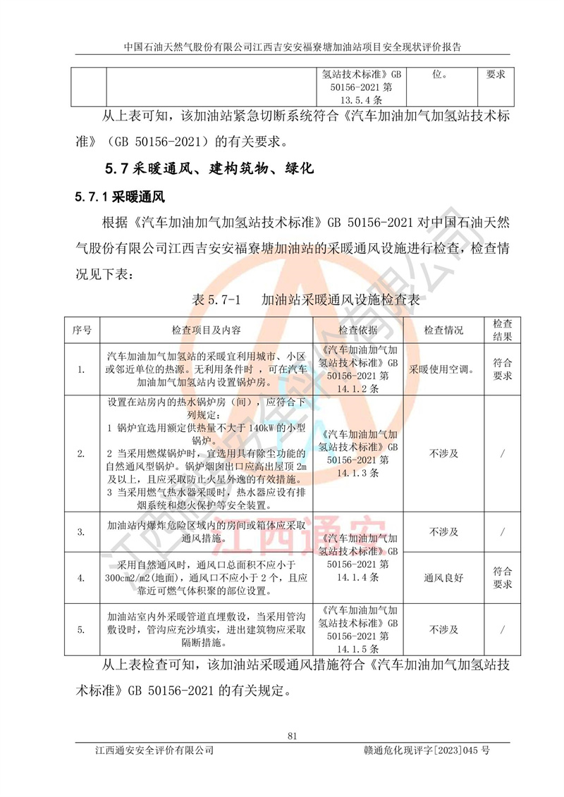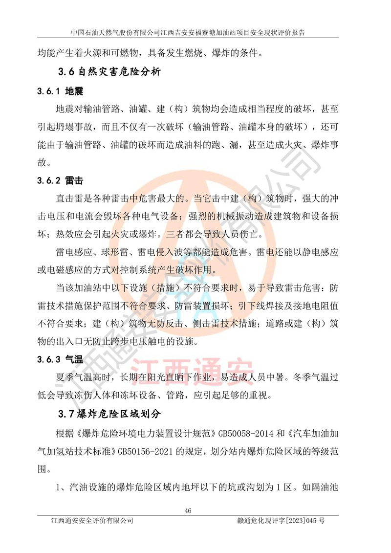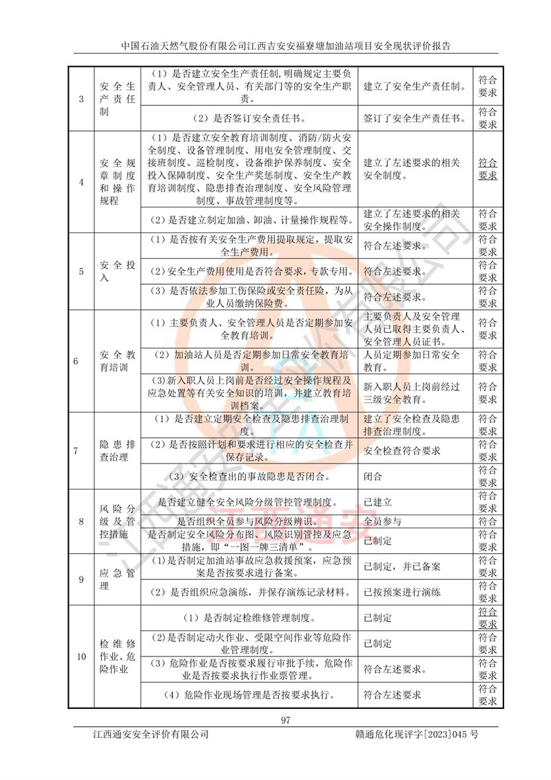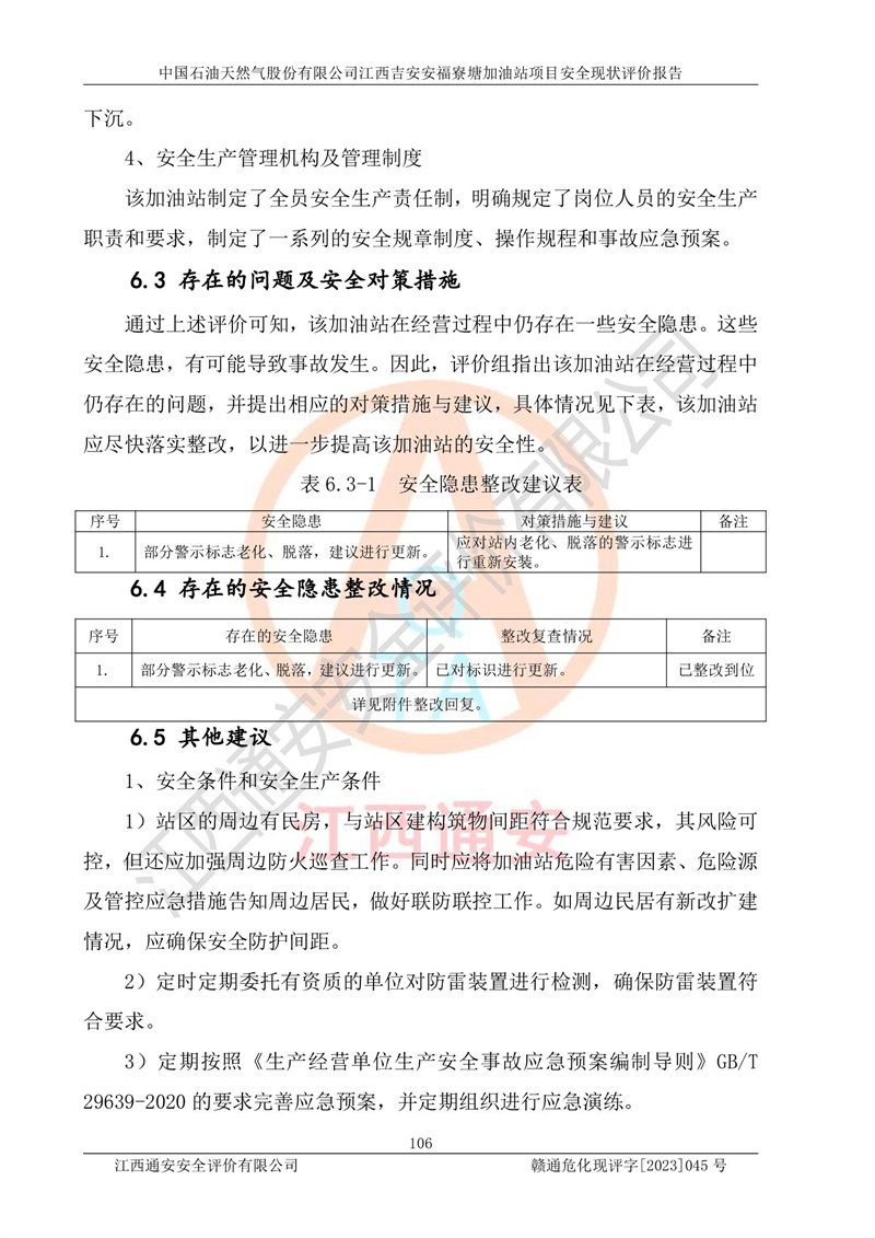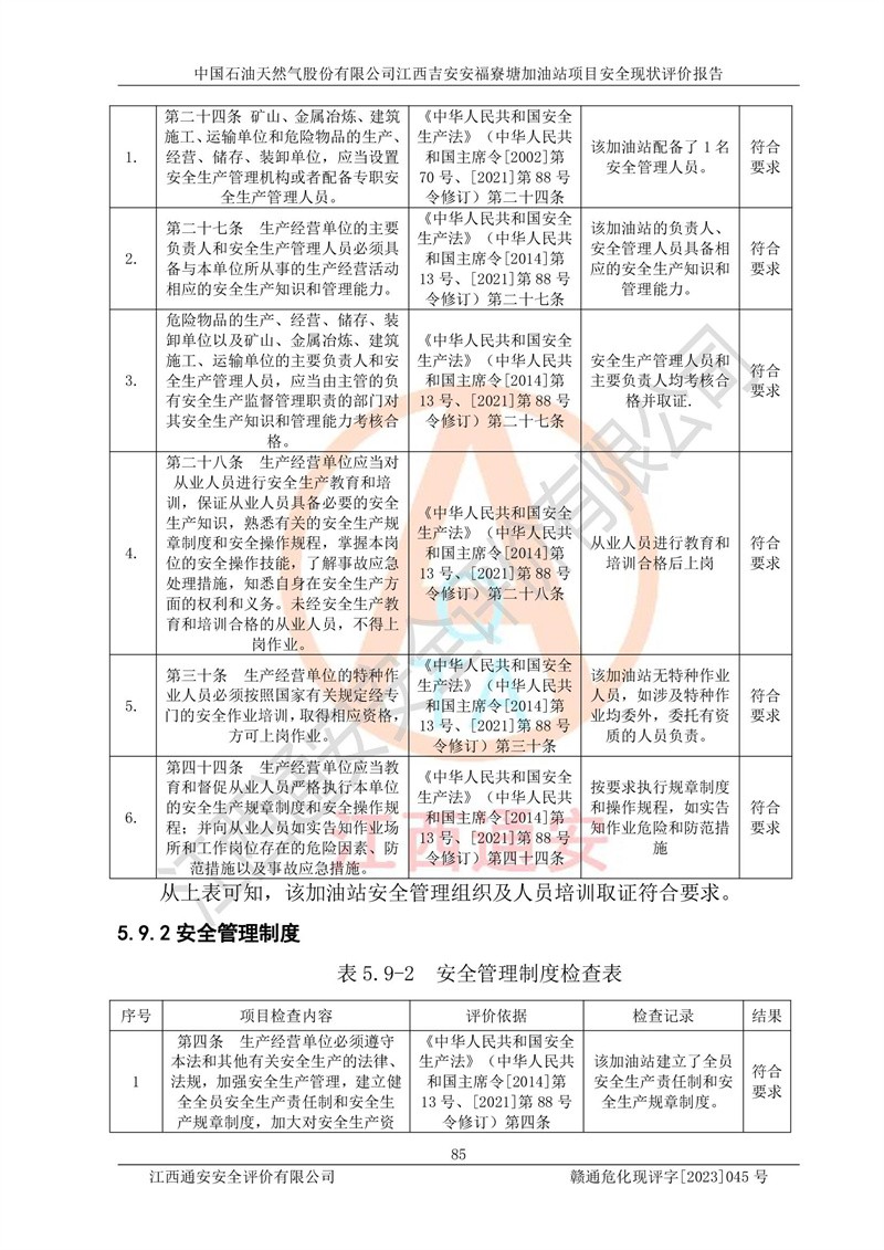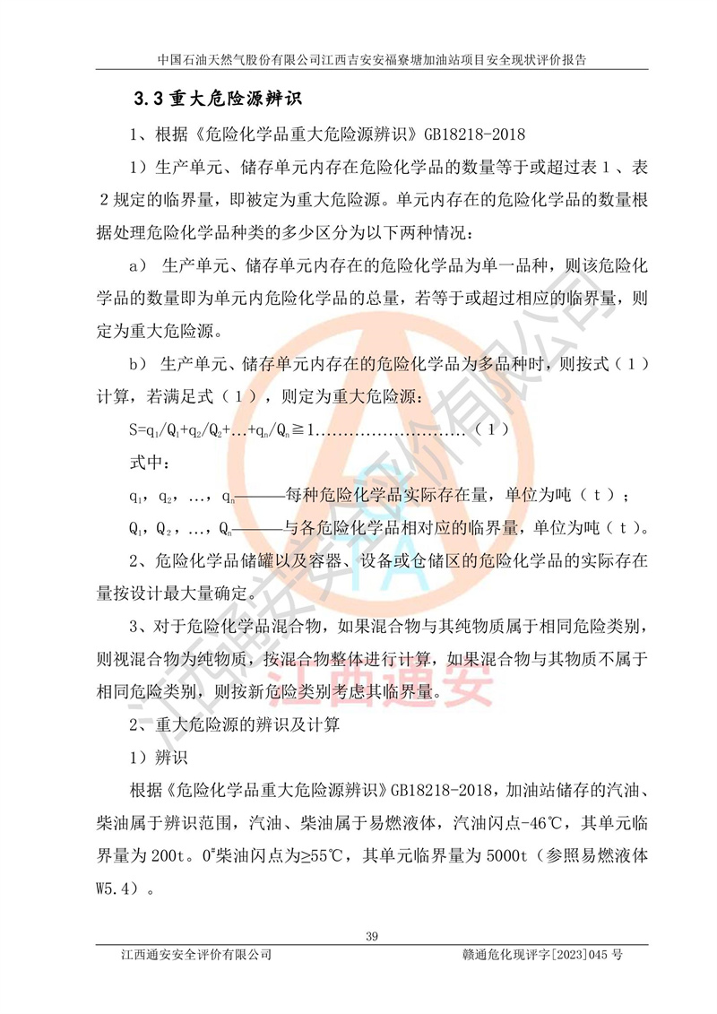 中國石油天然氣股份有限公司江西吉安安福寮塘加油站是一家從事成品油批發(fā)、成品油零售經(jīng)營的企業(yè)。該加油站成立于2011年5月4日,并獲得安??h市場監(jiān)督管理局頒發(fā)的營業(yè)執(zhí)照,營業(yè)執(zhí)照統(tǒng)一社會(huì)信用代碼為:91360829573618262D,加油站類型為股份有限公司分公司(上市,國有控股),負(fù)責(zé)人為鄢**,經(jīng)營范圍:許可項(xiàng)目:成品油批發(fā),成品油零售,住宿服務(wù),餐飲服務(wù),食品銷售,煙草制品零售,***零售,農(nóng)藥零售,藥品零售(依法須經(jīng)批準(zhǔn)的項(xiàng)目,經(jīng)相關(guān)部門批準(zhǔn)后在許可**期內(nèi)方可開展經(jīng)營活動(dòng),具體經(jīng)營項(xiàng)目和許可期限以相關(guān)部門批準(zhǔn)文件或許可證件為準(zhǔn))一般項(xiàng)目:潤滑油銷售,日用陶瓷制品銷售,汽車銷售,新能源汽車整車銷售,新能源汽車換電設(shè)施銷售,新能源汽車電附件銷售,互聯(lián)網(wǎng)銷售(除銷售需要許可的商品),汽車裝飾用品銷售,日用品銷售單用途商業(yè)預(yù)付卡代理銷售,日用化學(xué)產(chǎn)品銷售,勞動(dòng)保護(hù)用品銷售,家用電器銷售,塑料制品銷售,嬰幼兒配方乳粉及其他嬰幼兒配方食品銷售,食品用洗滌劑銷售,飼料添加劑銷售,肥料銷售,洗車服務(wù),農(nóng)副產(chǎn)品銷售,五金產(chǎn)品零售,辦公用品銷售,第二類醫(yī)療器械銷售,充電樁銷售農(nóng)作物種子經(jīng)營(**不再分裝的包裝種子),廣告設(shè)計(jì)代理,電子過磅服務(wù),化妝品零售,畜牧漁業(yè)飼料銷售消毒劑銷售 (不含危險(xiǎn)化學(xué)品),汽車零配件零售,電車銷售,機(jī)動(dòng)車修理和維護(hù),家具銷售,日用百貨銷售,集中式**充電站,針紡織品銷售,住房租賃 (除依法須經(jīng)批/準(zhǔn)的項(xiàng)目處,憑營業(yè)執(zhí)照依法自主開展經(jīng)營活動(dòng))。經(jīng)營場所:江西省吉安市安??h寮塘鄉(xiāng)龍佳村。 中國石油天然氣股份有限公司江西吉安安福寮塘加油站占地面積1200㎡,加油站中設(shè)有0#柴油雙槍加油機(jī)2臺(tái),92#汽油、95#汽油四槍加油機(jī)2臺(tái);該站設(shè)有4個(gè)30m3SF雙層埋地臥式儲(chǔ)罐,其中有2個(gè)30m3SF雙層埋地臥式0#柴油罐、1個(gè)92#30m3SF雙層埋地臥式汽油罐,1個(gè)95#30m3SF雙層埋地臥式汽油罐,油品折算總?cè)萘繛?/span>90m3(柴油罐容積折半計(jì)入油罐總?cè)莘e),屬三級加油站,汽油卸油、加油設(shè)置了油氣回收系統(tǒng)。 中國石油天然氣股份有限公司江西吉安安福寮塘加油站于2020年11月04日經(jīng)安??h應(yīng)急管理局核準(zhǔn),換發(fā)了新的《危險(xiǎn)化學(xué)品經(jīng)營許可證》,證書編號(hào):贛安安經(jīng)(甲)[2014]000007,許可經(jīng)營范圍:成品油。**期2020年11月04日至2023年11月03日。 中國石油天然氣股份有限公司江西吉安安福寮塘加油站2023年05月11日經(jīng)吉安市商務(wù)局核準(zhǔn),換取了新的《成品油零售經(jīng)營批準(zhǔn)證書》,證書編號(hào):油零售證書第吉0256號(hào),批準(zhǔn)從事成品油(汽油、柴油)零售業(yè)務(wù)。證書**期至2023年5月11日至2028年05月10日。 |