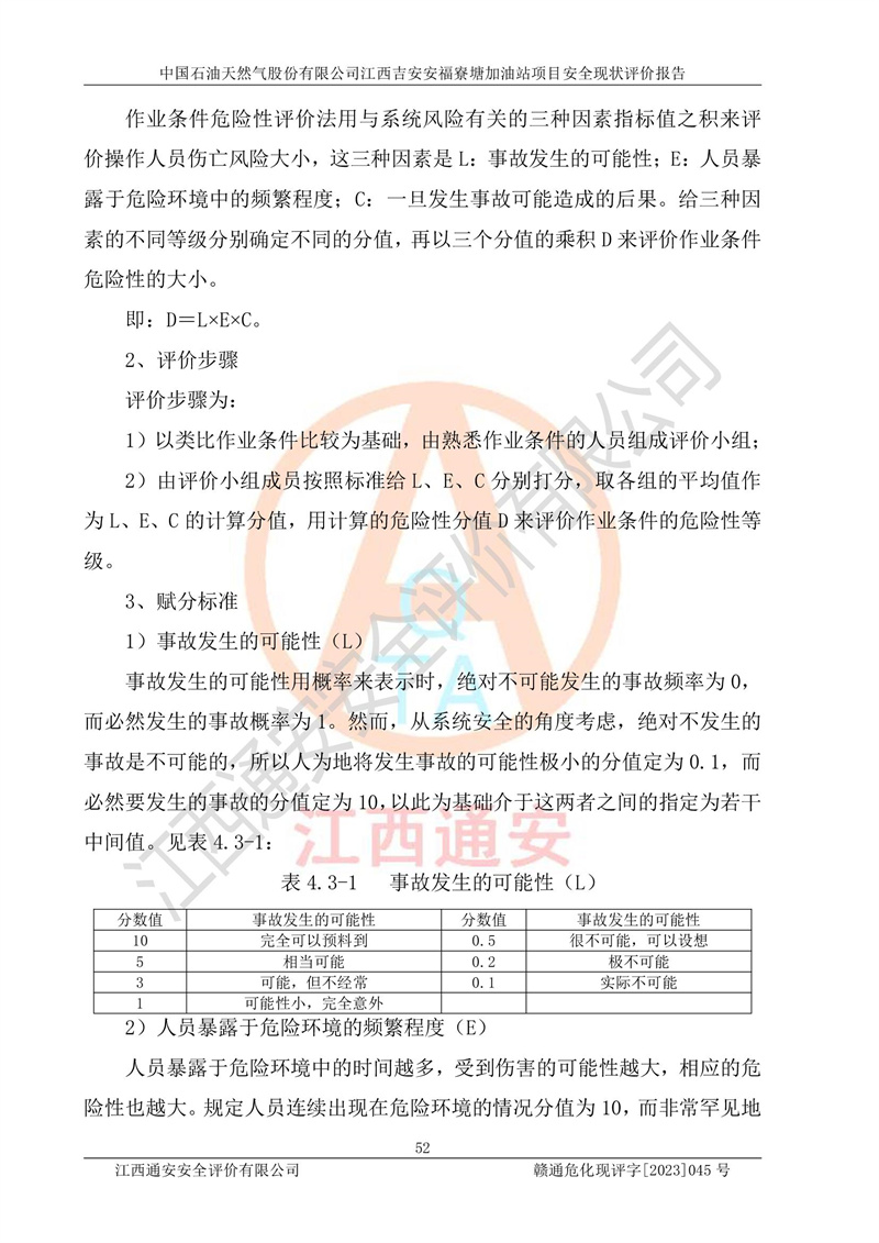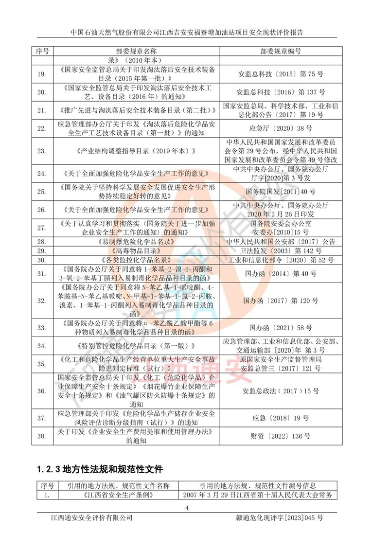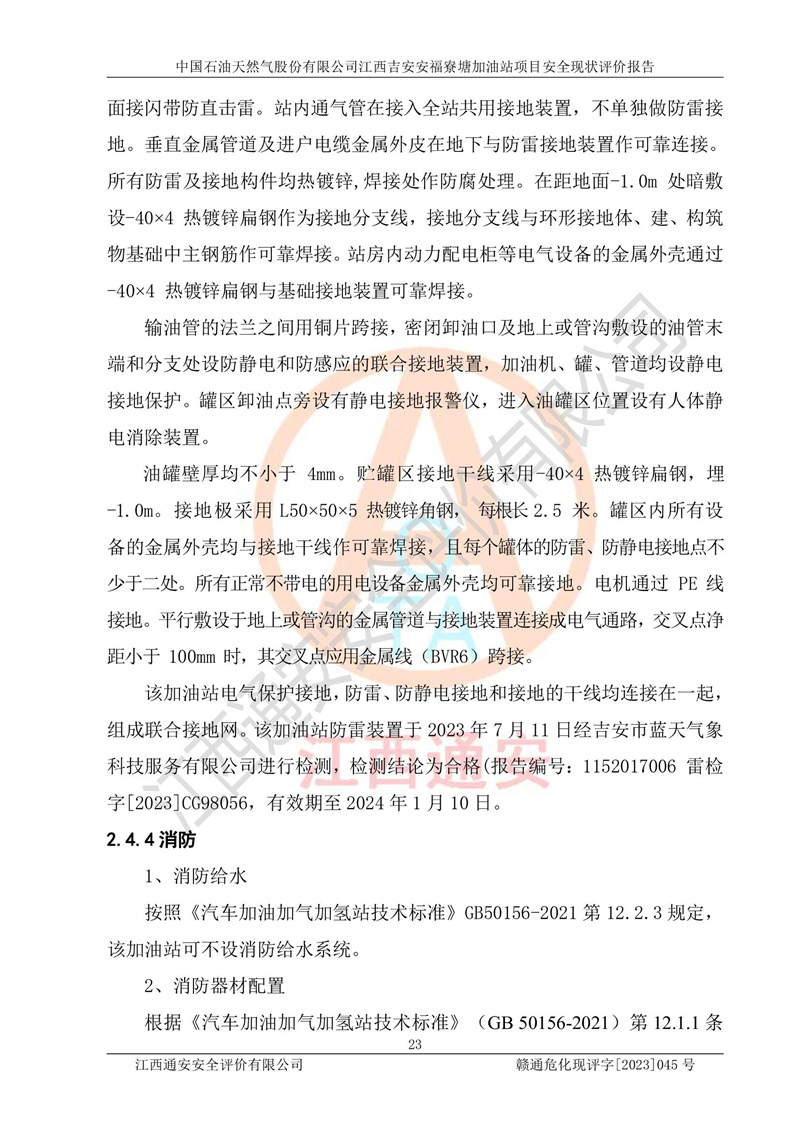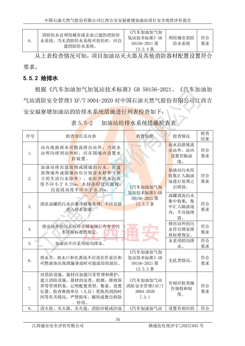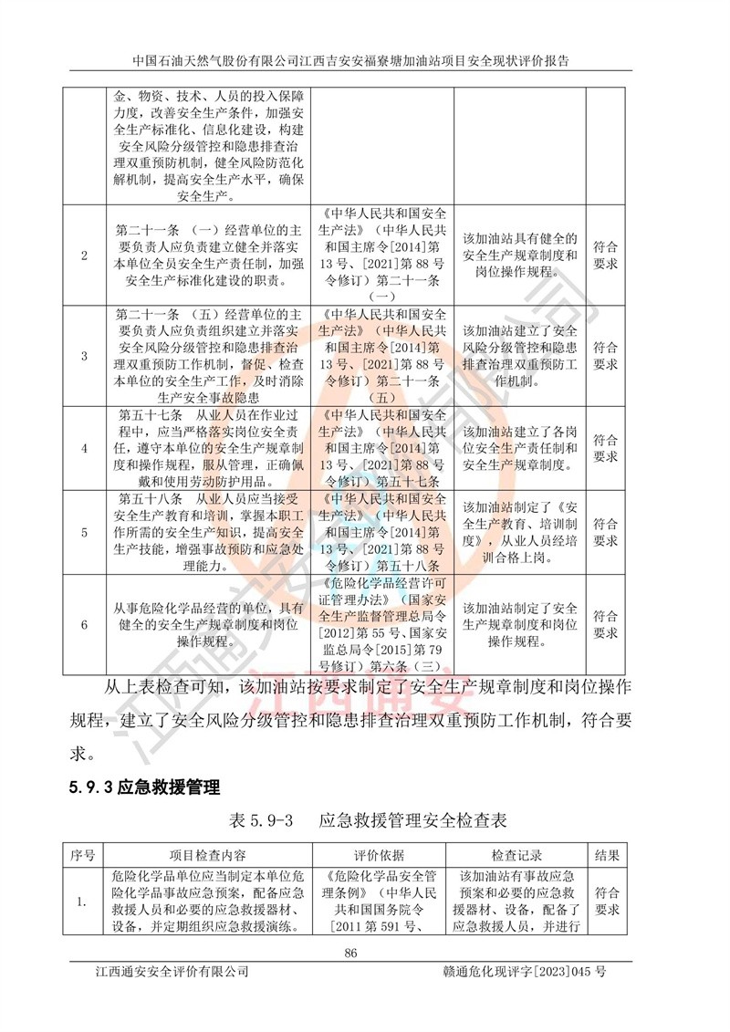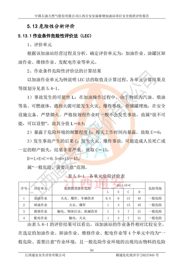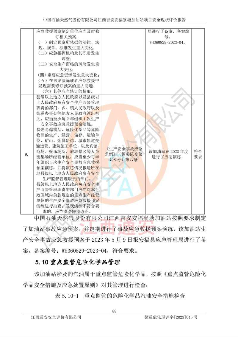 中國石油天然氣股份有限公司江西吉安安福寮塘加油站是一家從事成品油批發(fā)、成品油零售經(jīng)營的企業(yè)。該加油站成立于2011年5月4日,并獲得安??h市場監(jiān)督管理局頒發(fā)的營業(yè)執(zhí)照,營業(yè)執(zhí)照統(tǒng)一社會(huì)信用代碼為:91360829573618262D,加油站類型為股份有限公司分公司(上市,國有控股),負(fù)責(zé)人為鄢**,經(jīng)營范圍:許可項(xiàng)目:成品油批發(fā),成品油零售,住宿服務(wù),餐飲服務(wù),食品銷售,煙草制品零售,***零售,農(nóng)藥零售,藥品零售(依法須經(jīng)批準(zhǔn)的項(xiàng)目,經(jīng)相關(guān)部門批準(zhǔn)后在許可**期內(nèi)方可開展經(jīng)營活動(dòng),具體經(jīng)營項(xiàng)目和許可期限以相關(guān)部門批準(zhǔn)文件或許可證件為準(zhǔn))一般項(xiàng)目:潤滑油銷售,日用陶瓷制品銷售,汽車銷售,新能源汽車整車銷售,新能源汽車換電設(shè)施銷售,新能源汽車電附件銷售,互聯(lián)網(wǎng)銷售(除銷售需要許可的商品),汽車裝飾用品銷售,日用品銷售單用途商業(yè)預(yù)付卡代理銷售,日用化學(xué)產(chǎn)品銷售,勞動(dòng)保護(hù)用品銷售,家用電器銷售,塑料制品銷售,嬰幼兒配方乳粉及其他嬰幼兒配方食品銷售,食品用洗滌劑銷售,飼料添加劑銷售,肥料銷售,洗車服務(wù),農(nóng)副產(chǎn)品銷售,五金產(chǎn)品零售,辦公用品銷售,第二類醫(yī)療器械銷售,充電樁銷售農(nóng)作物種子經(jīng)營(**不再分裝的包裝種子),廣告設(shè)計(jì)代理,電子過磅服務(wù),化妝品零售,畜牧漁業(yè)飼料銷售消毒劑銷售 (不含危險(xiǎn)化學(xué)品),汽車零配件零售,電車銷售,機(jī)動(dòng)車修理和維護(hù),家具銷售,日用百貨銷售,集中式**充電站,針紡織品銷售,住房租賃 (除依法須經(jīng)批/準(zhǔn)的項(xiàng)目處,憑營業(yè)執(zhí)照依法自主開展經(jīng)營活動(dòng))。經(jīng)營場所:江西省吉安市安??h寮塘鄉(xiāng)龍佳村。 中國石油天然氣股份有限公司江西吉安安福寮塘加油站占地面積1200㎡,加油站中設(shè)有0#柴油雙槍加油機(jī)2臺(tái),92#汽油、95#汽油四槍加油機(jī)2臺(tái);該站設(shè)有4個(gè)30m3SF雙層埋地臥式儲(chǔ)罐,其中有2個(gè)30m3SF雙層埋地臥式0#柴油罐、1個(gè)92#30m3SF雙層埋地臥式汽油罐,1個(gè)95#30m3SF雙層埋地臥式汽油罐,油品折算總?cè)萘繛?/span>90m3(柴油罐容積折半計(jì)入油罐總?cè)莘e),屬三級加油站,汽油卸油、加油設(shè)置了油氣回收系統(tǒng)。 中國石油天然氣股份有限公司江西吉安安福寮塘加油站于2020年11月04日經(jīng)安??h應(yīng)急管理局核準(zhǔn),換發(fā)了新的《危險(xiǎn)化學(xué)品經(jīng)營許可證》,證書編號(hào):贛安安經(jīng)(甲)[2014]000007,許可經(jīng)營范圍:成品油。**期2020年11月04日至2023年11月03日。 中國石油天然氣股份有限公司江西吉安安福寮塘加油站2023年05月11日經(jīng)吉安市商務(wù)局核準(zhǔn),換取了新的《成品油零售經(jīng)營批準(zhǔn)證書》,證書編號(hào):油零售證書第吉0256號(hào),批準(zhǔn)從事成品油(汽油、柴油)零售業(yè)務(wù)。證書**期至2023年5月11日至2028年05月10日。 |