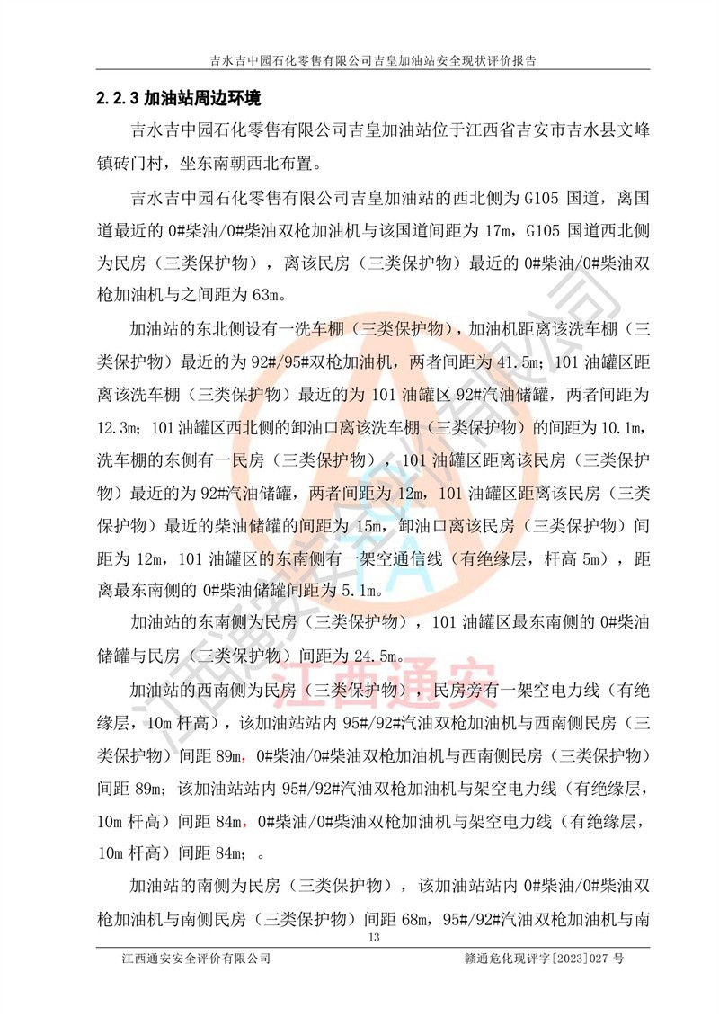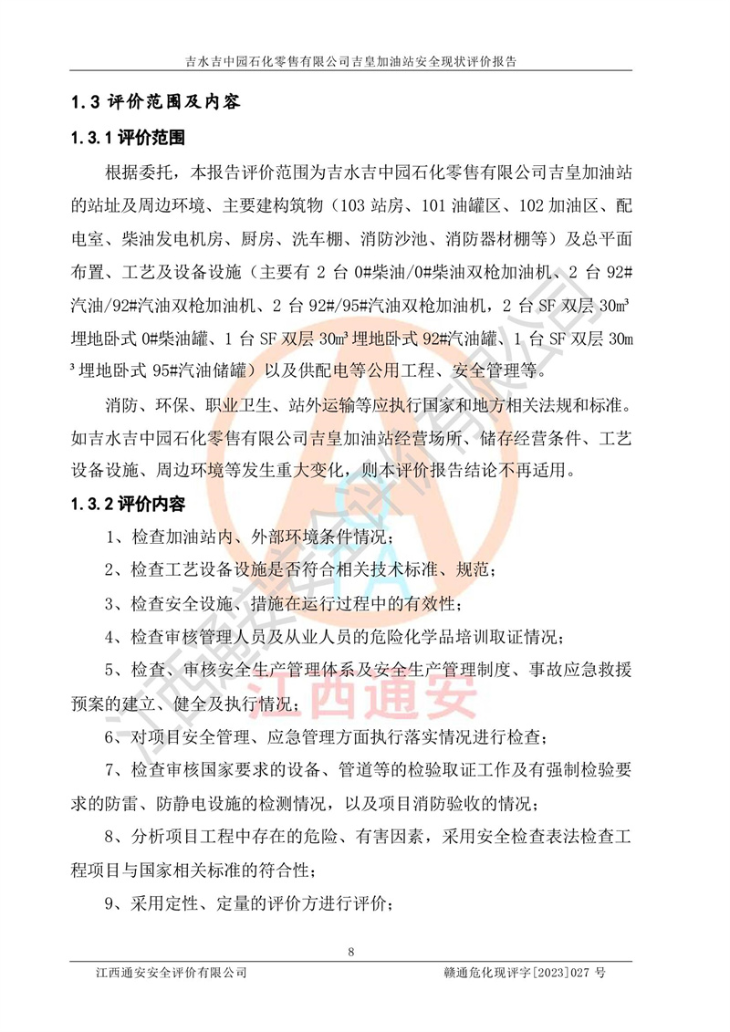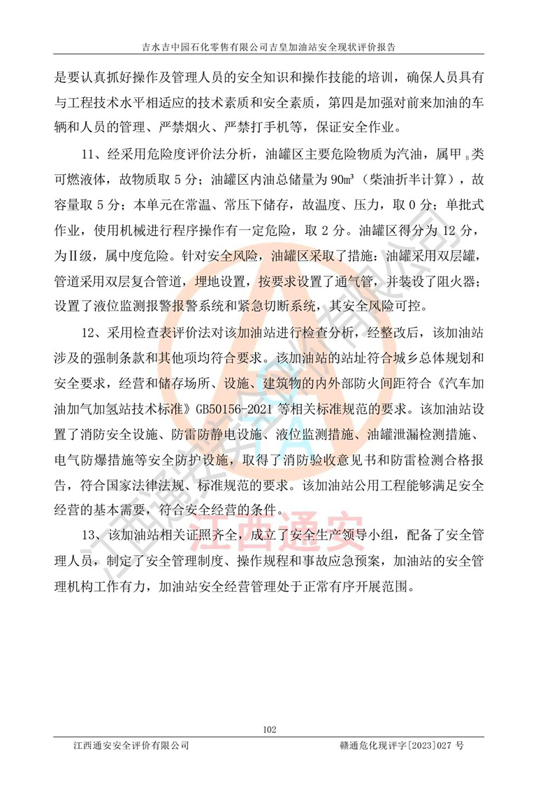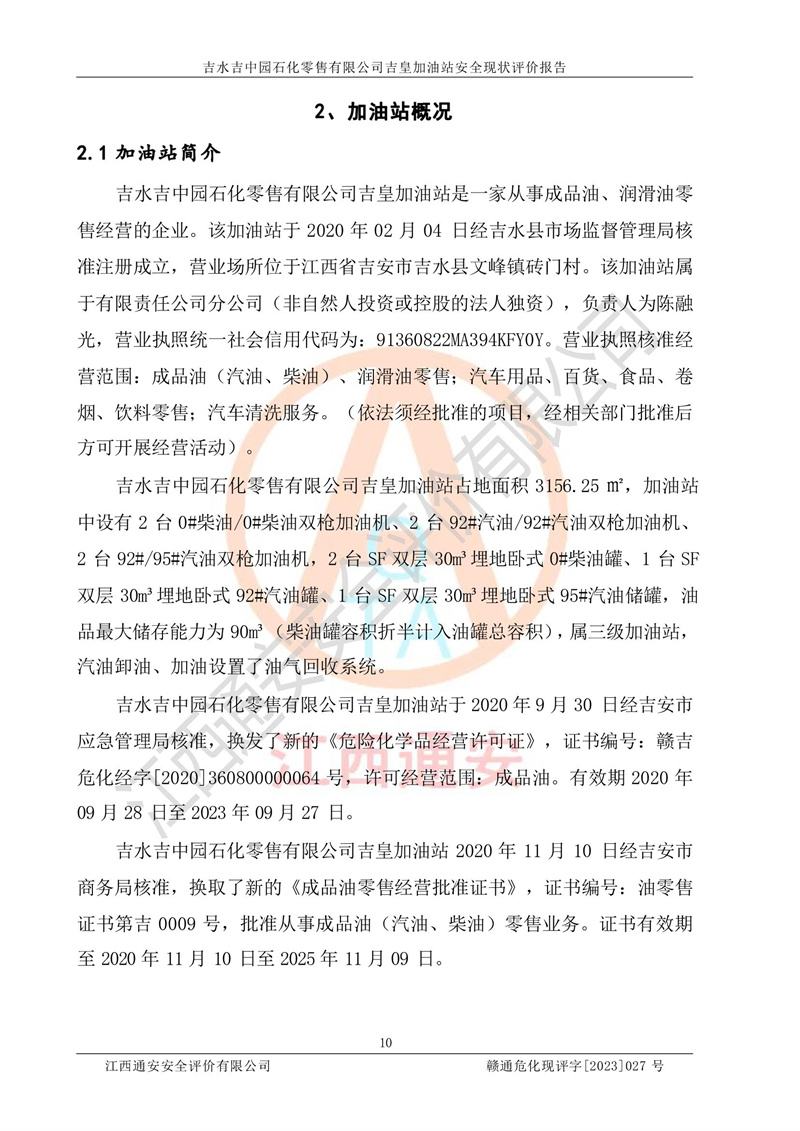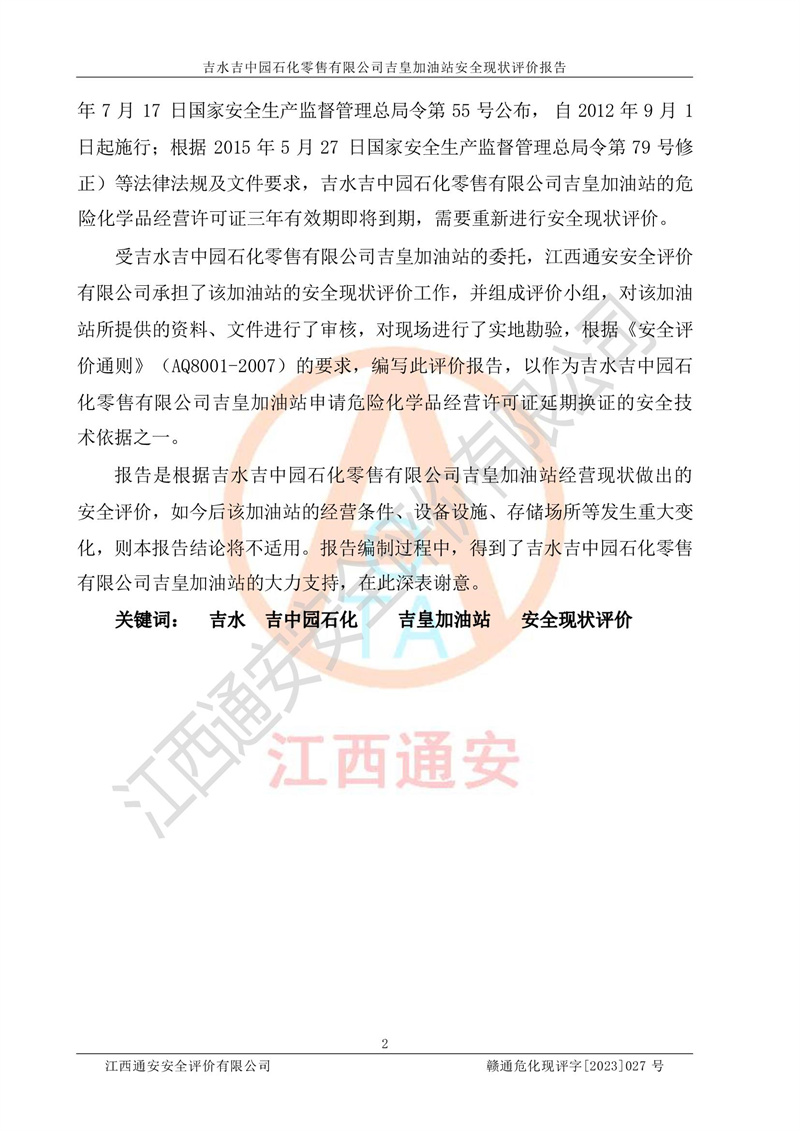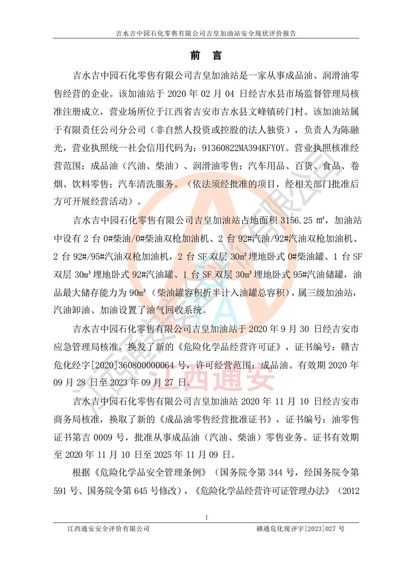 吉水吉中園石化零售有限公司吉皇加油站安全現(xiàn)狀評價報告