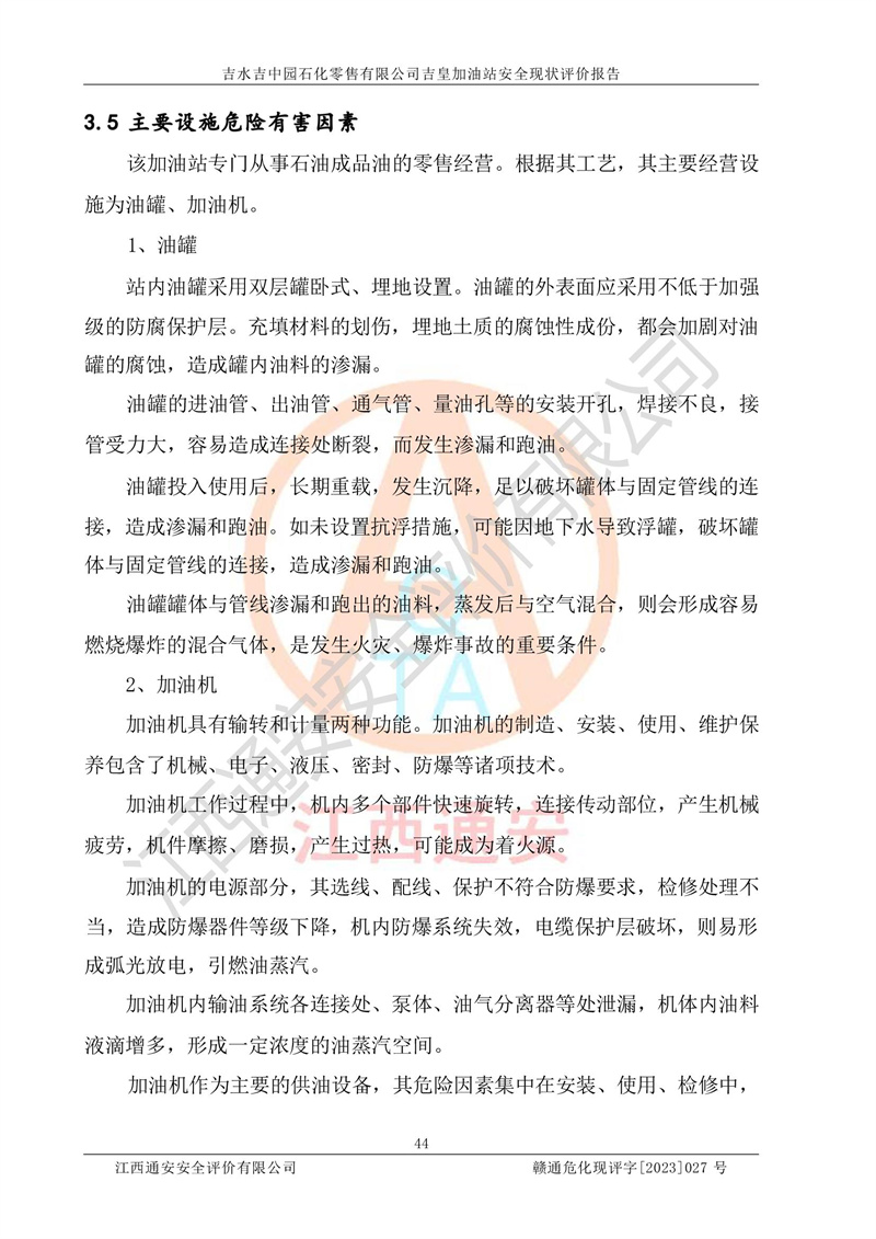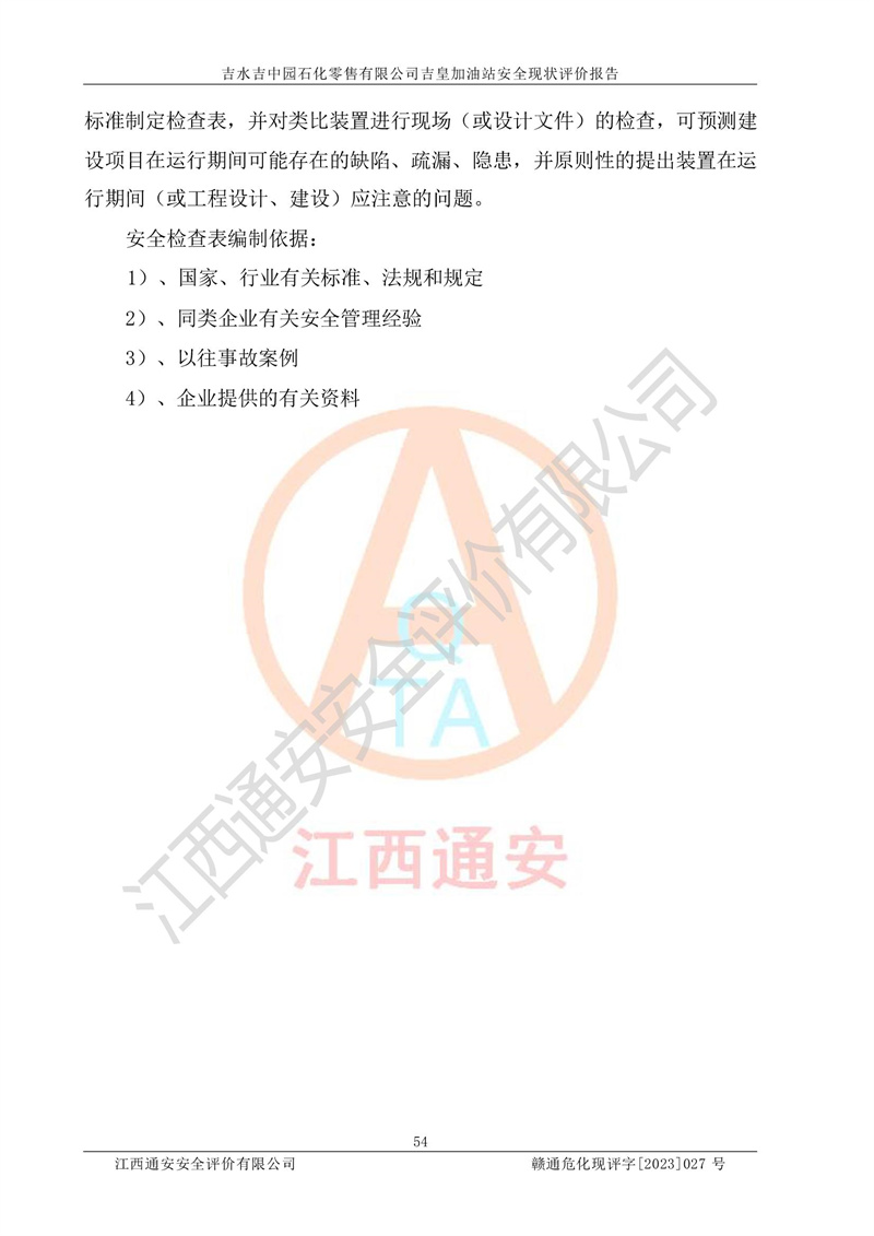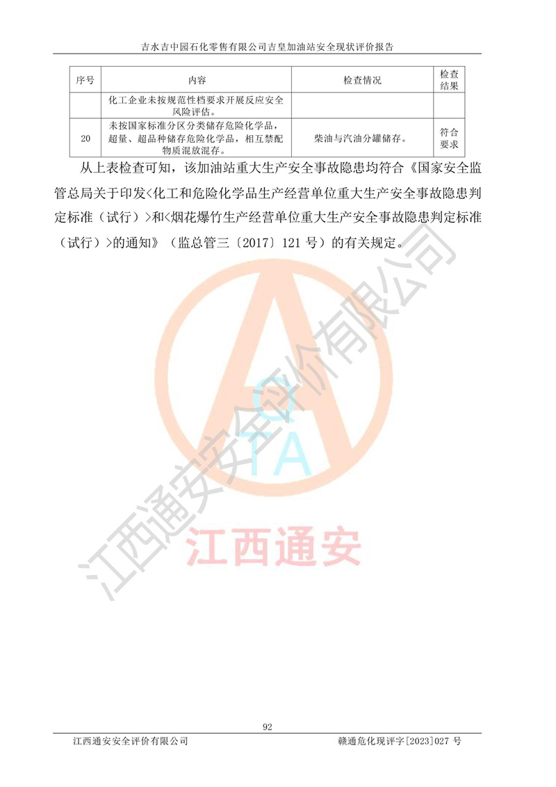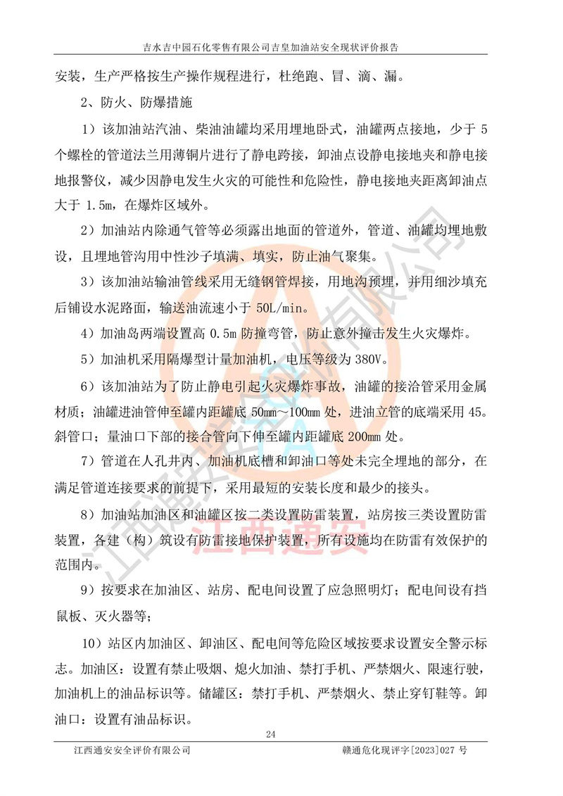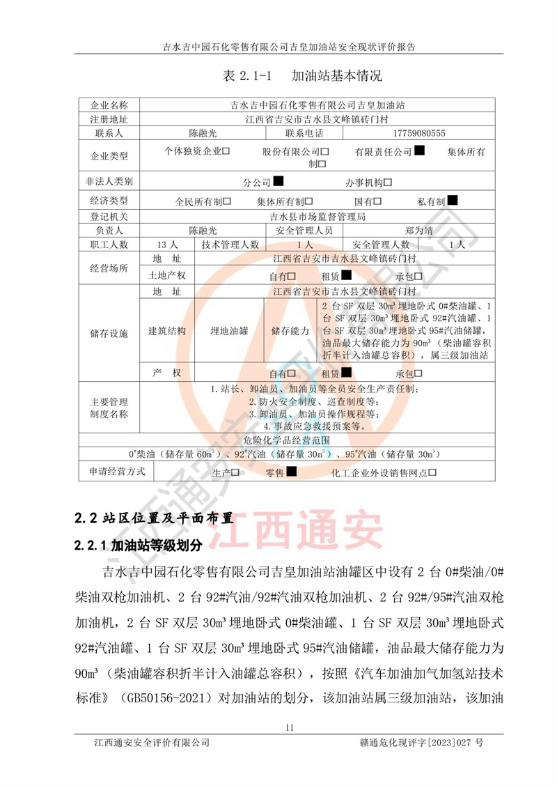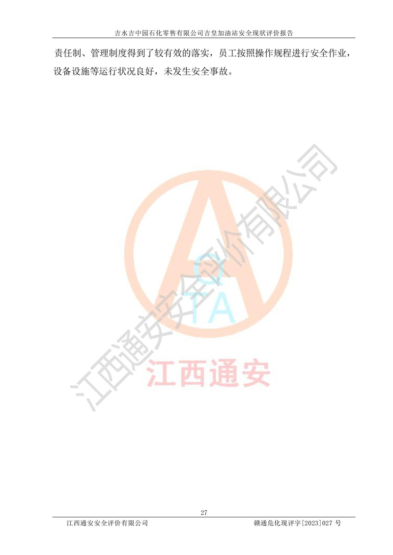 吉水吉中園石化零售有限公司吉皇加油站安全現(xiàn)狀評價報告