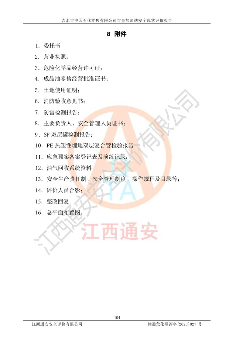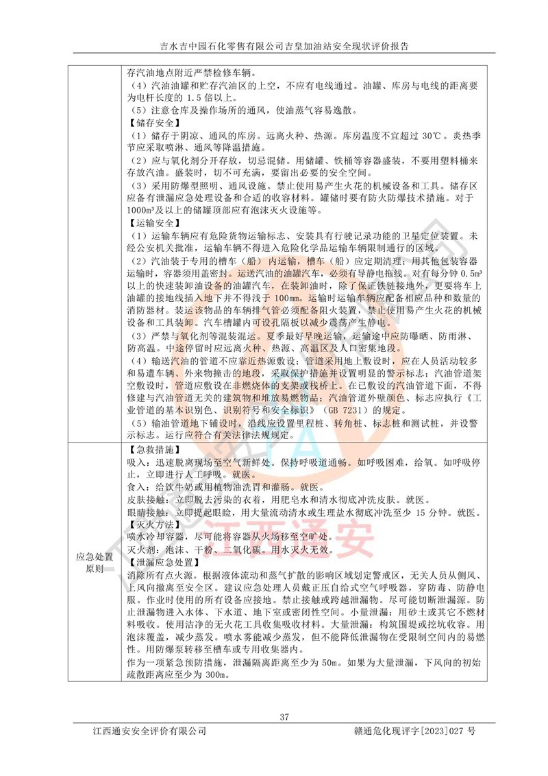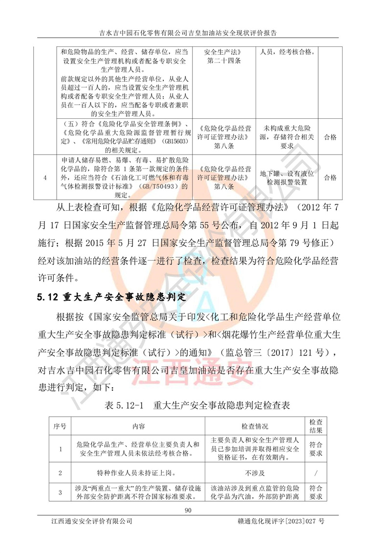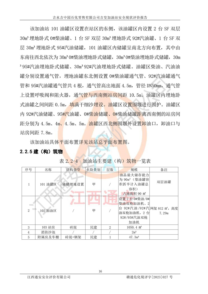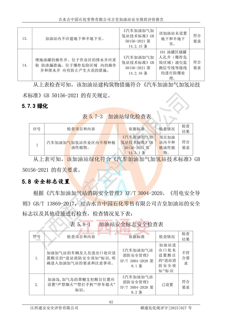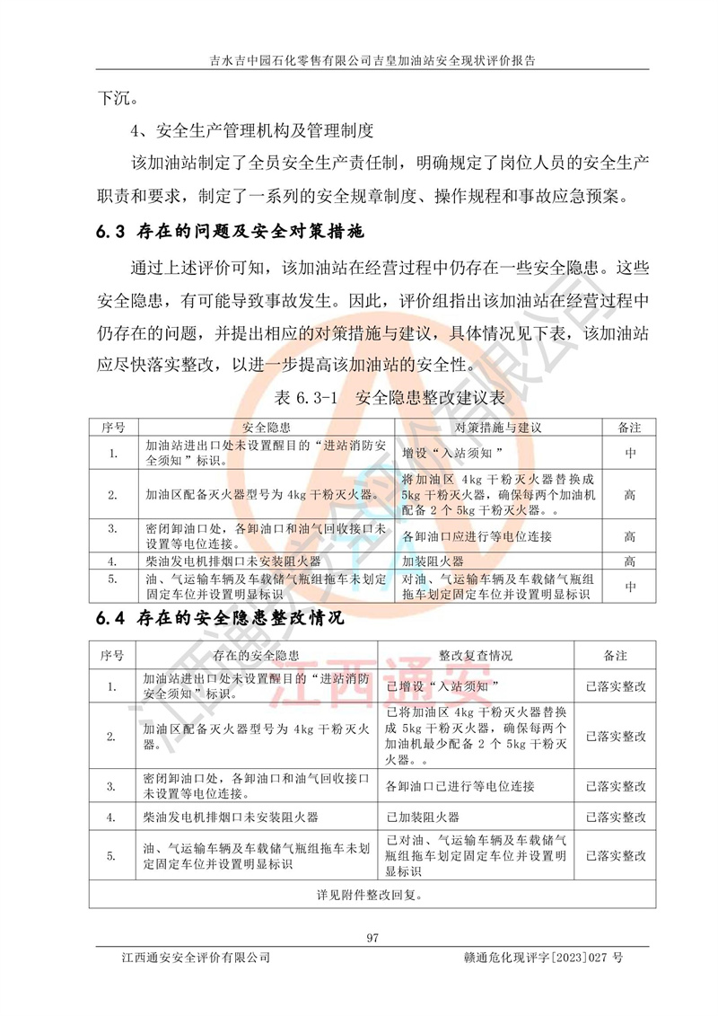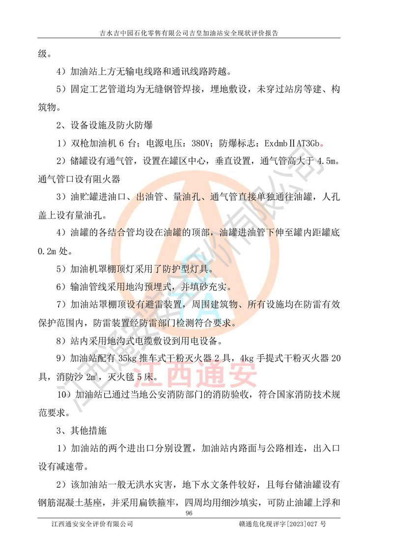 吉水吉中園石化零售有限公司吉皇加油站安全現(xiàn)狀評價報告