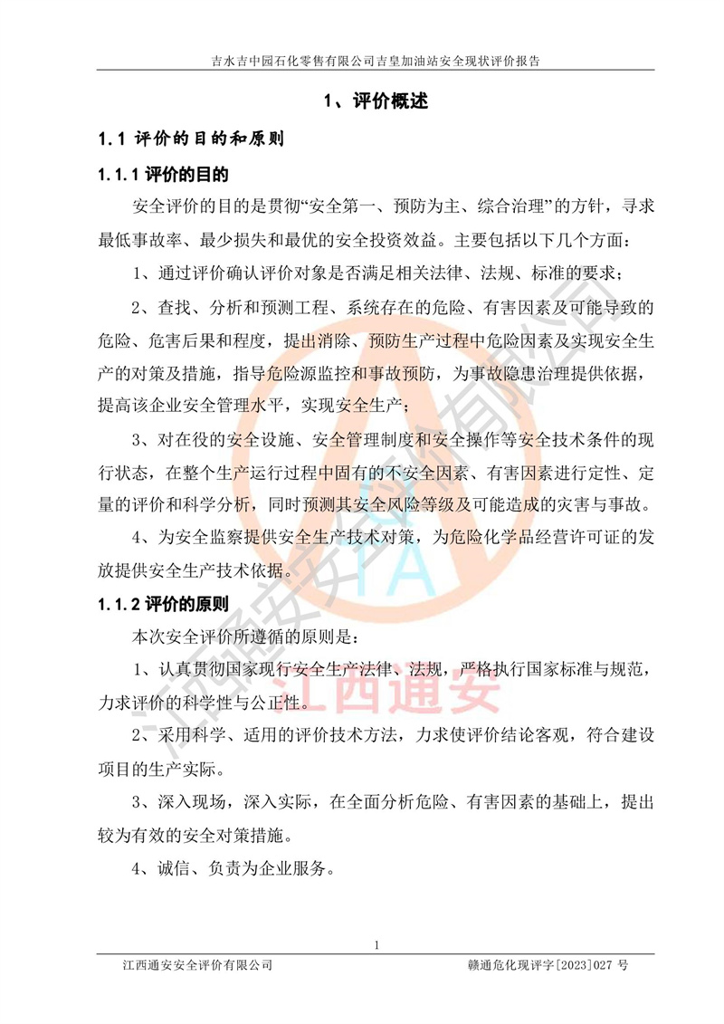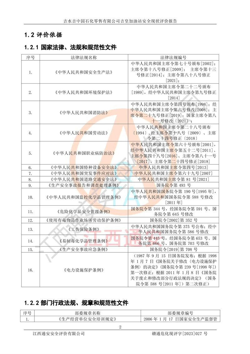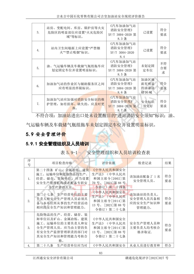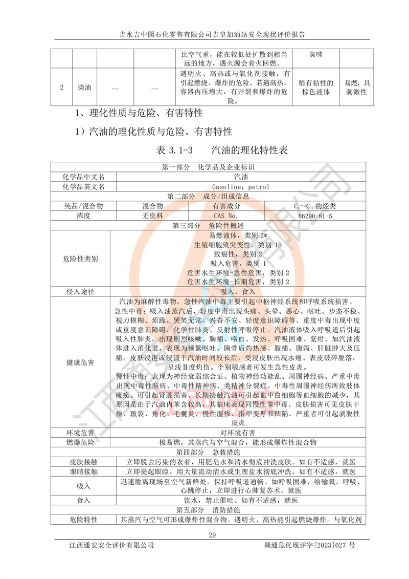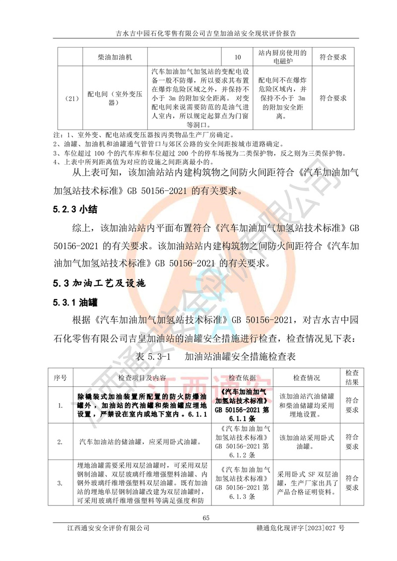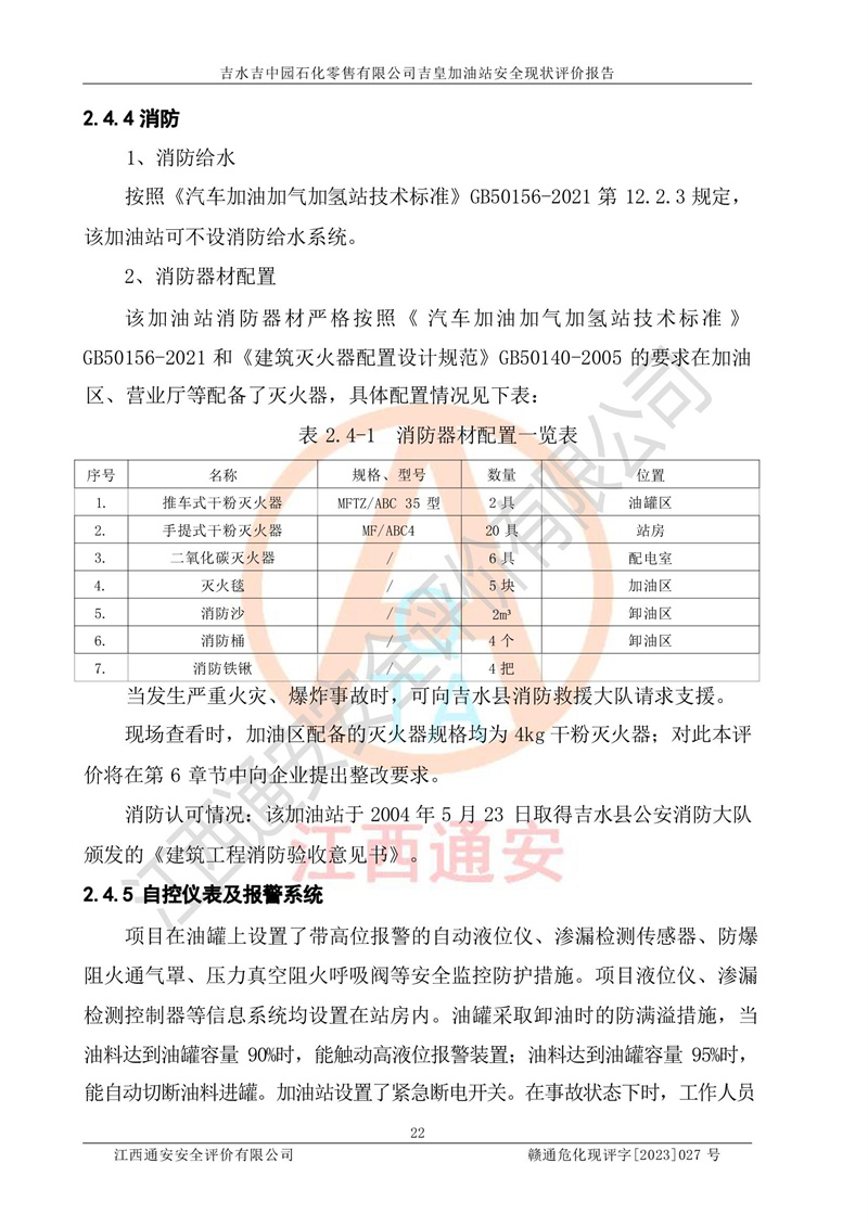 吉水吉中園石化零售有限公司吉皇加油站安全現(xiàn)狀評價報告