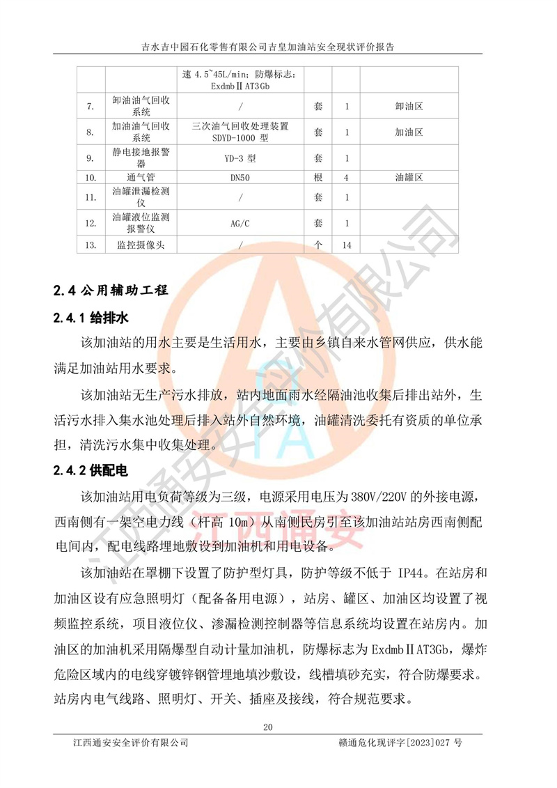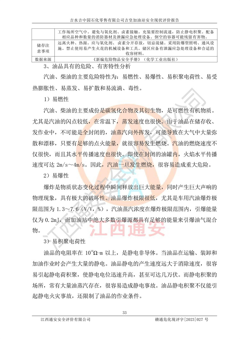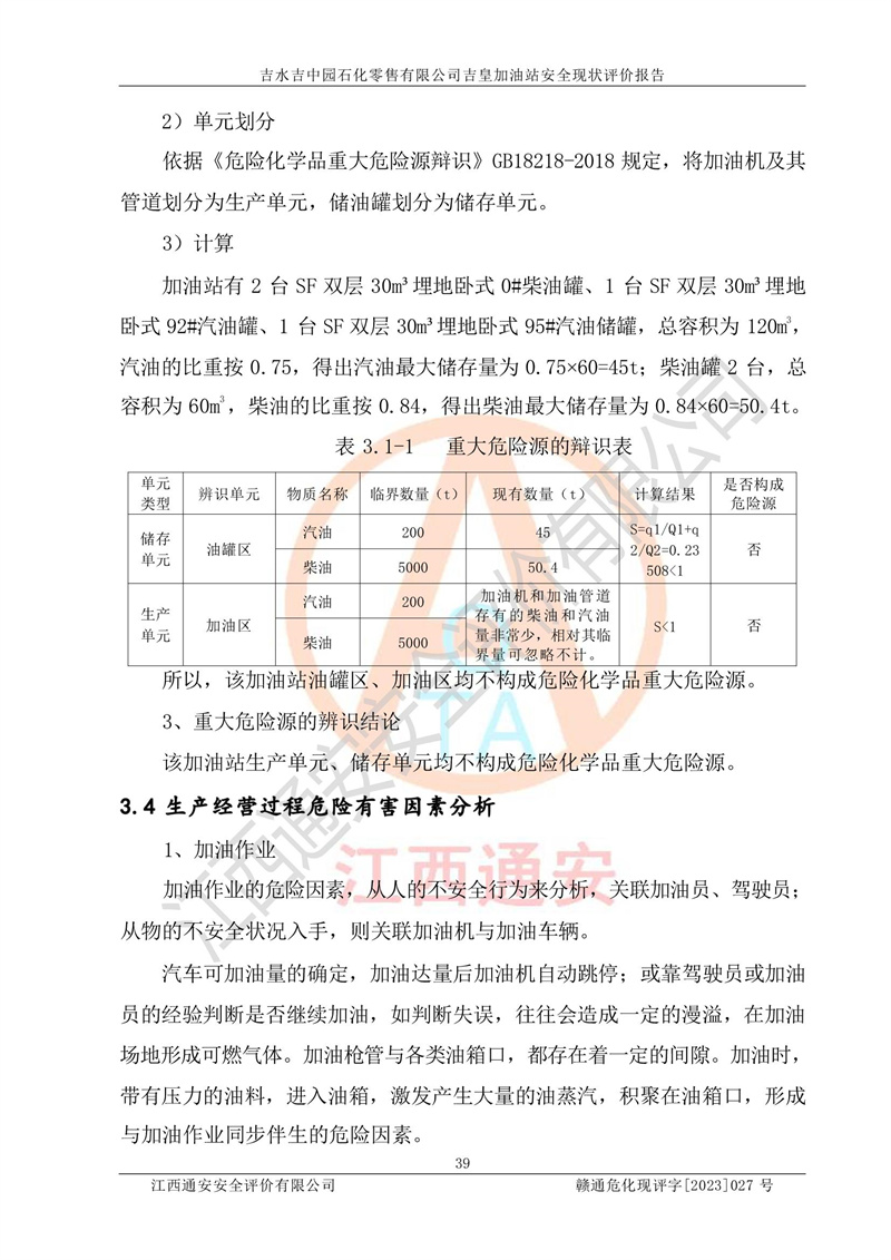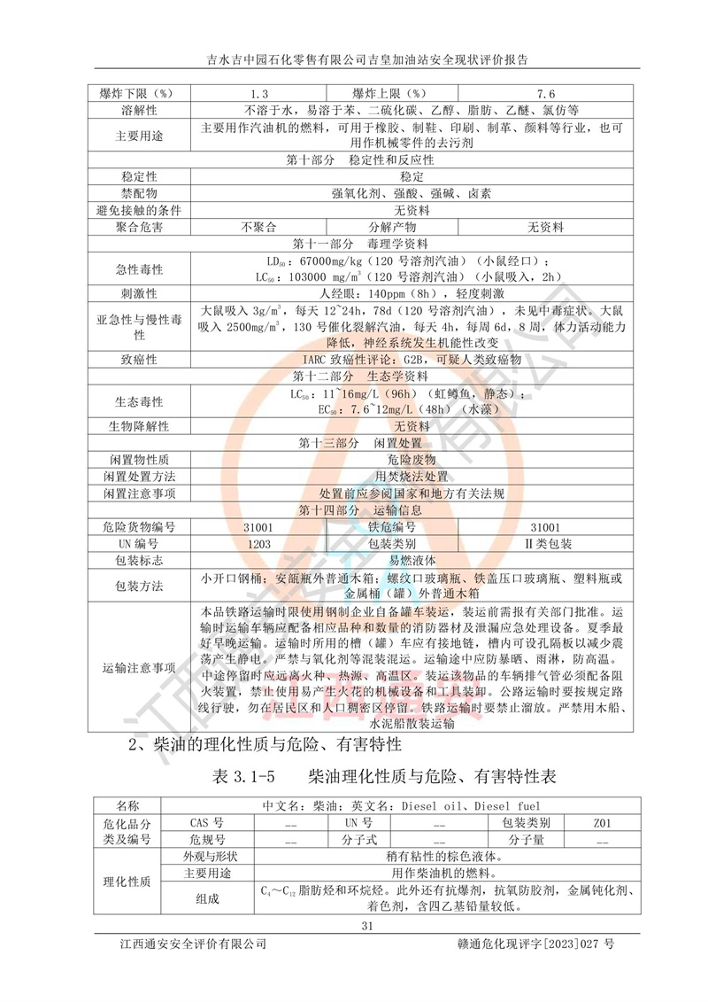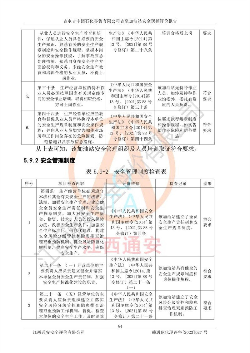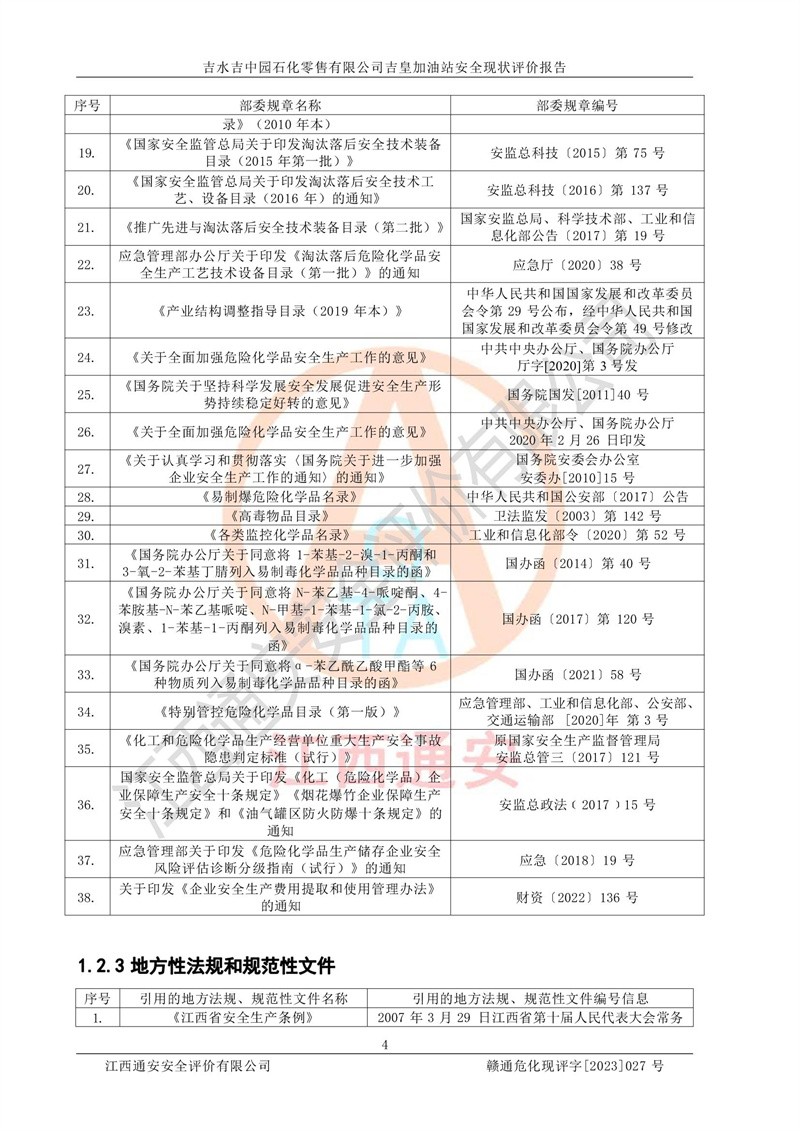 吉水吉中園石化零售有限公司吉皇加油站安全現(xiàn)狀評價報告