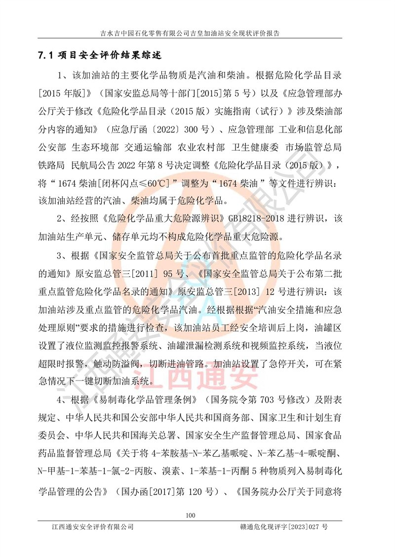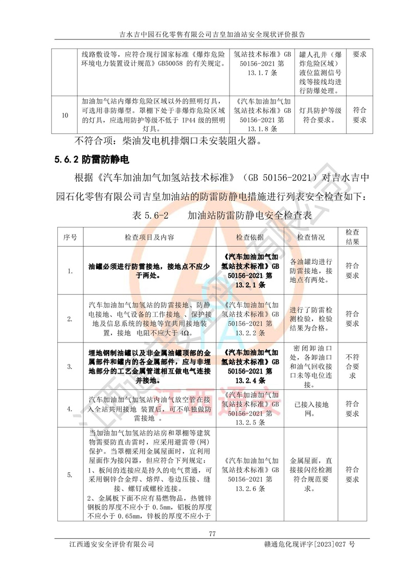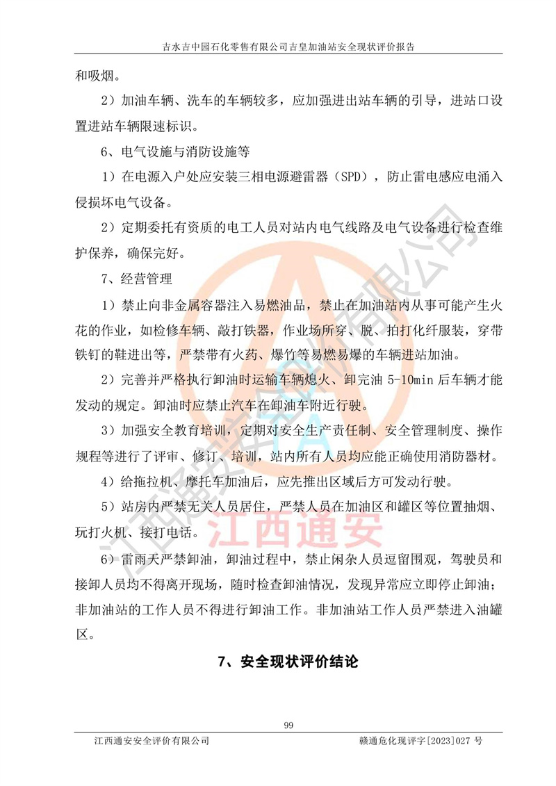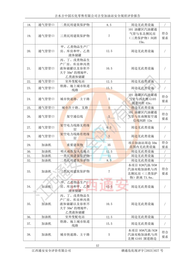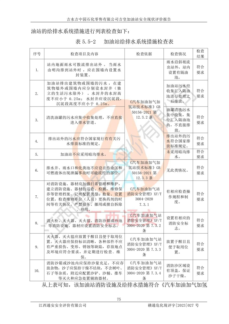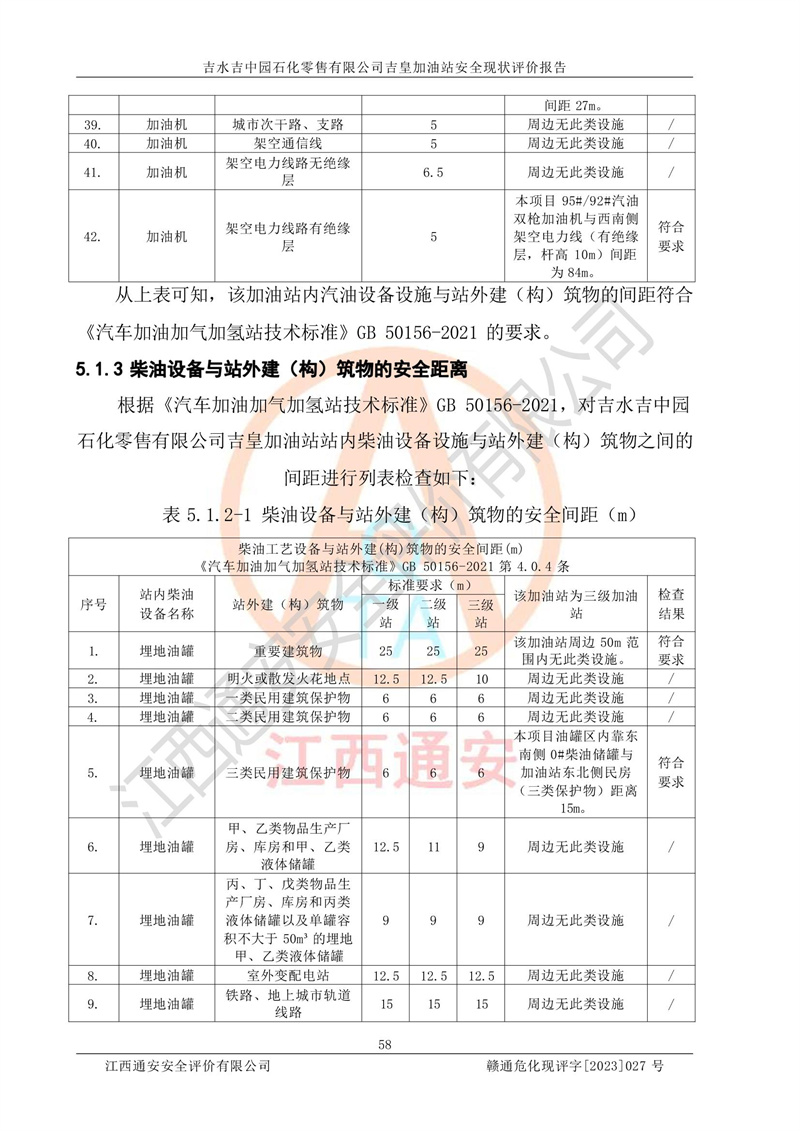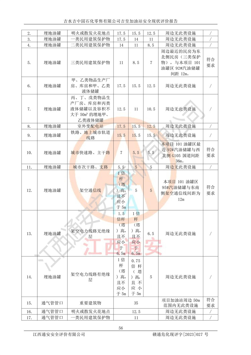 綜上:吉水吉中園石化零售有限公司吉皇加油站符合《汽車加油加氣加氫站技術(shù)標準》GB50156-2021等標準規(guī)范的要求,安全風險可控,滿足危險化學(xué)品經(jīng)營的安全條件。
