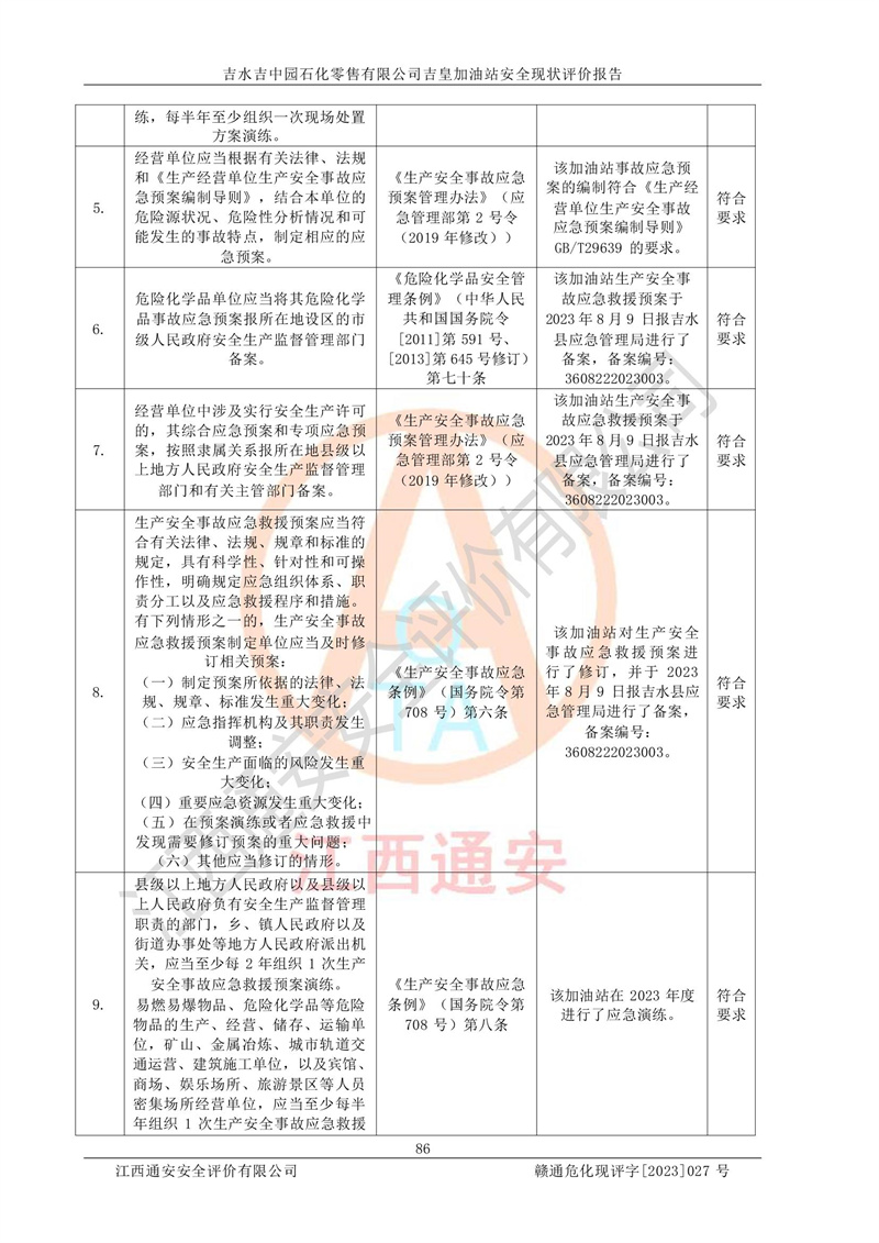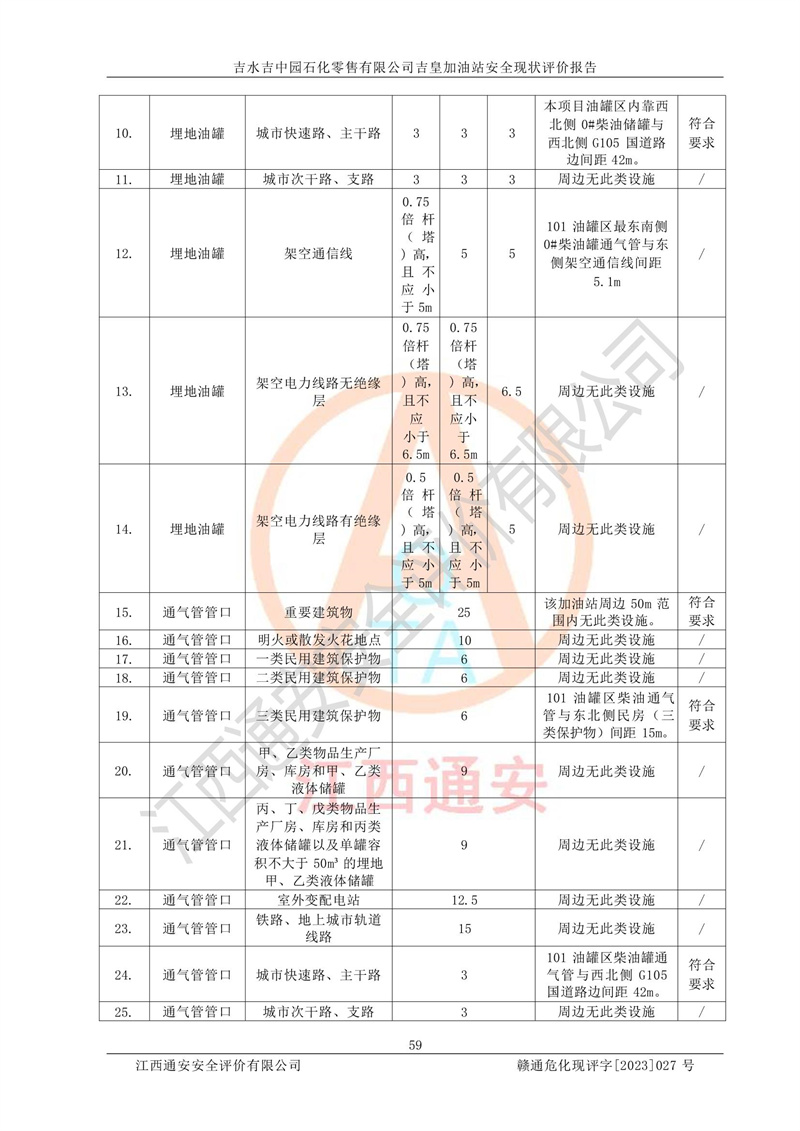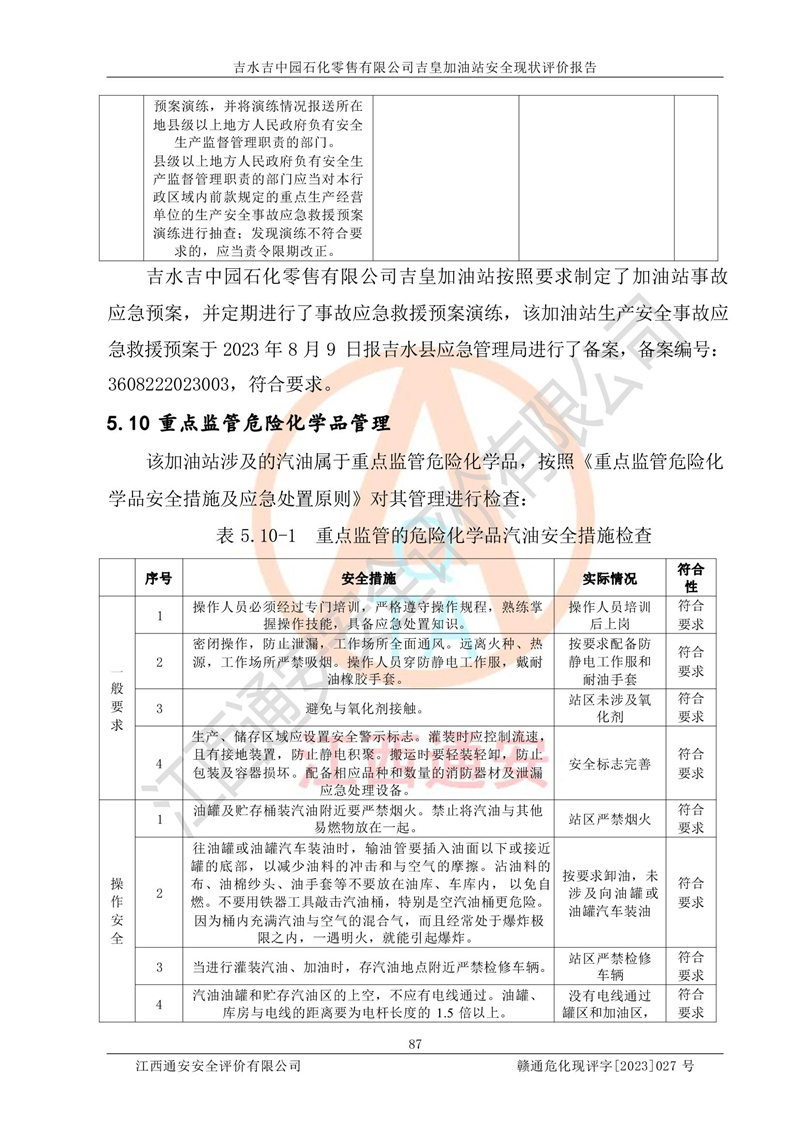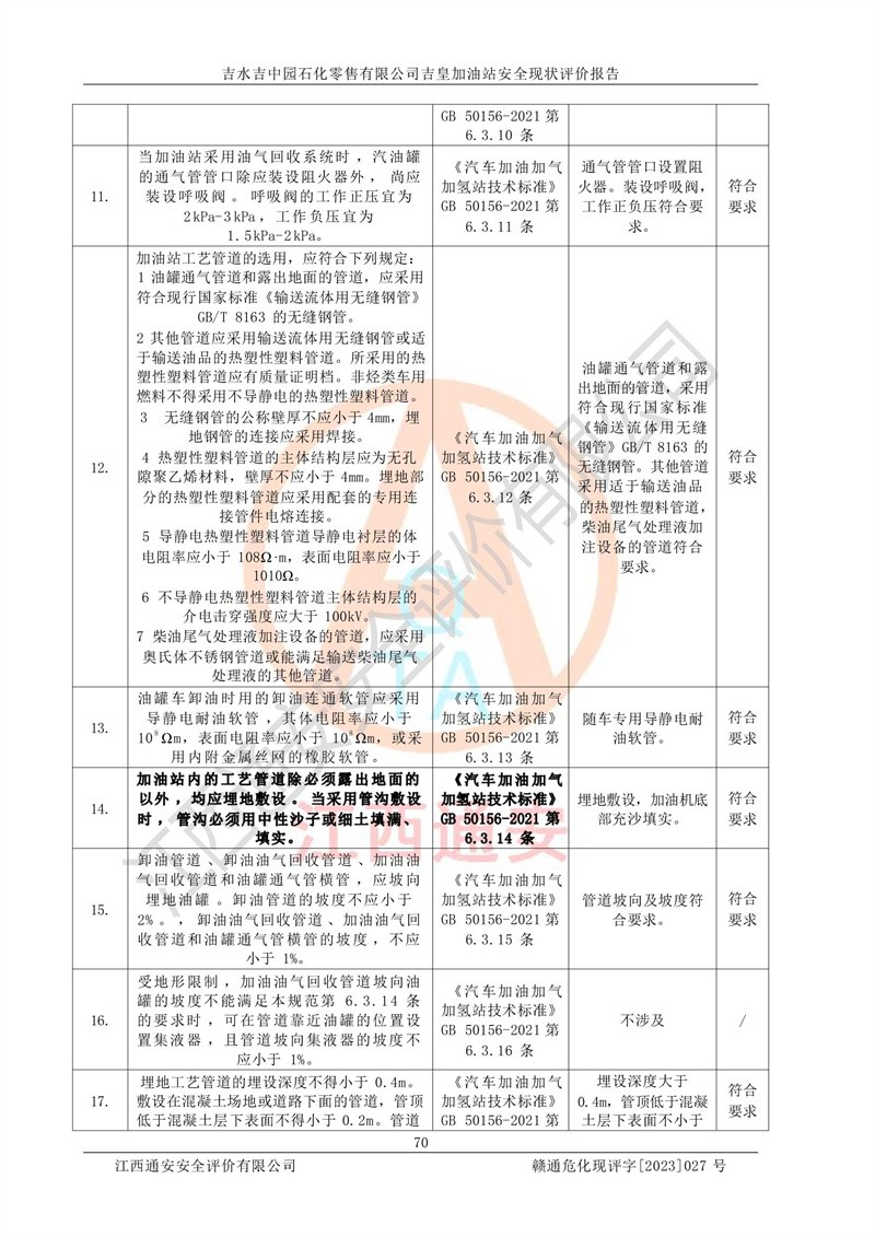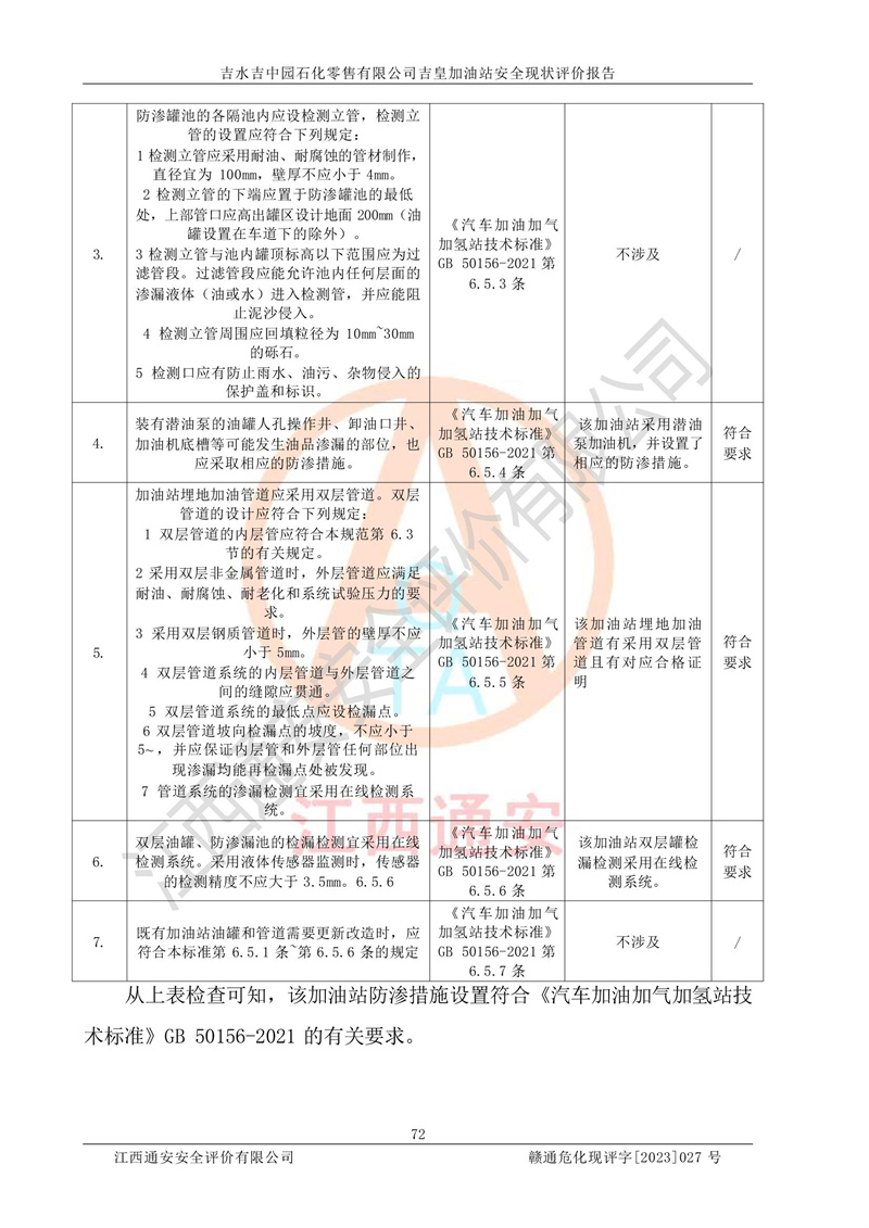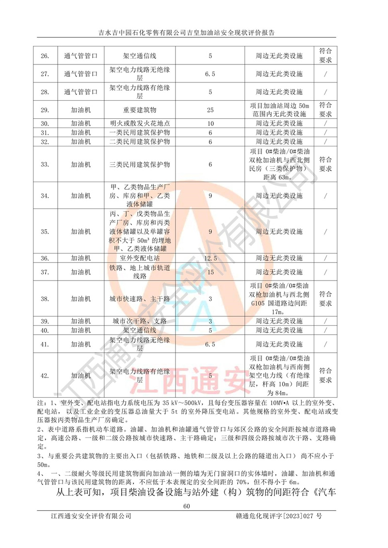 綜上:吉水吉中園石化零售有限公司吉皇加油站符合《汽車加油加氣加氫站技術(shù)標準》GB50156-2021等標準規(guī)范的要求,安全風險可控,滿足危險化學(xué)品經(jīng)營的安全條件。