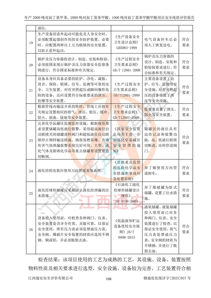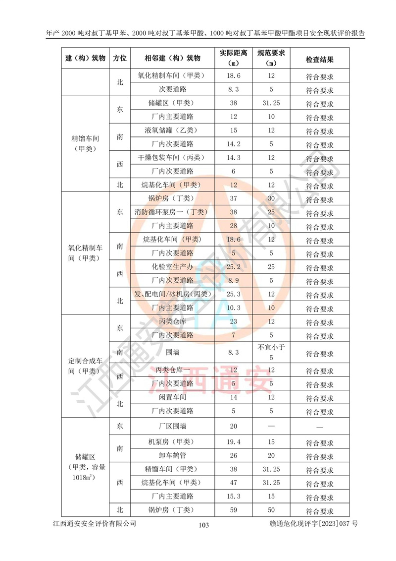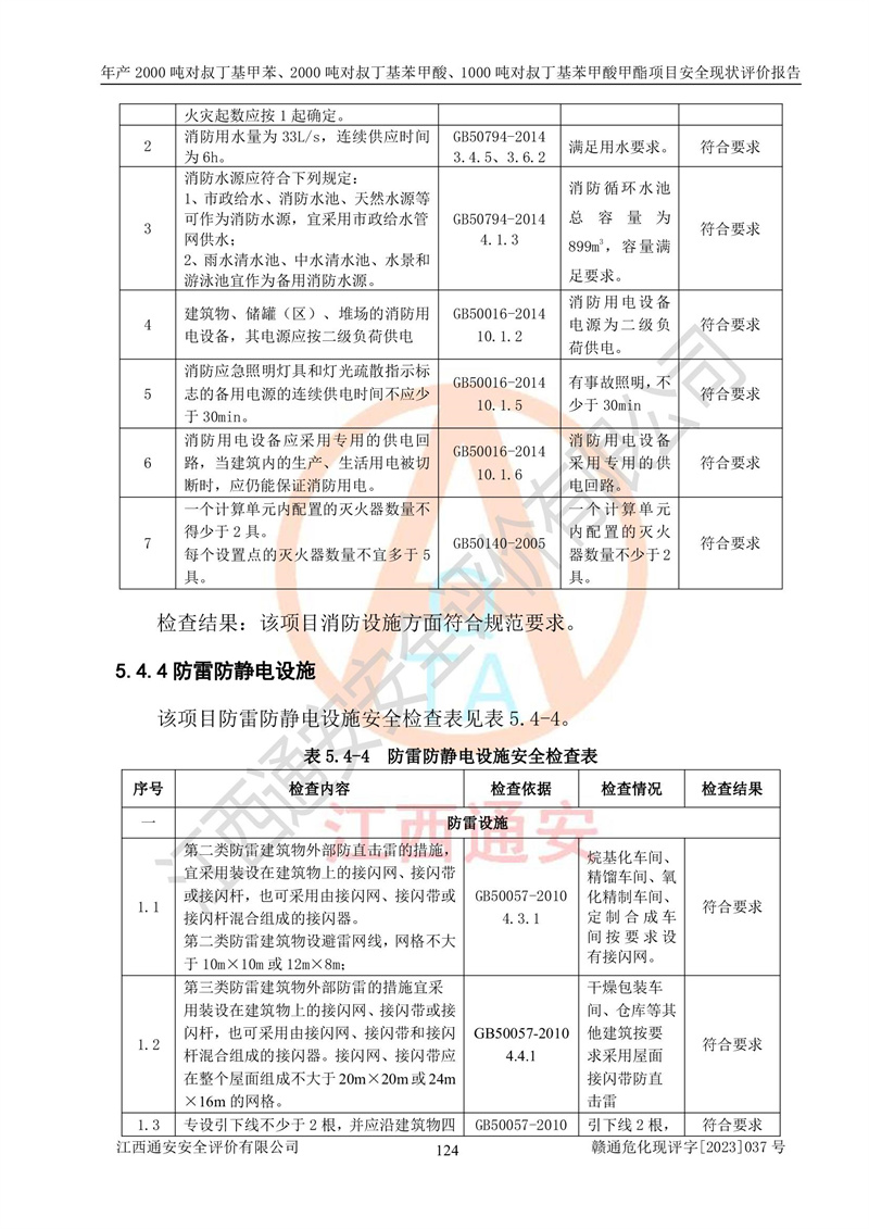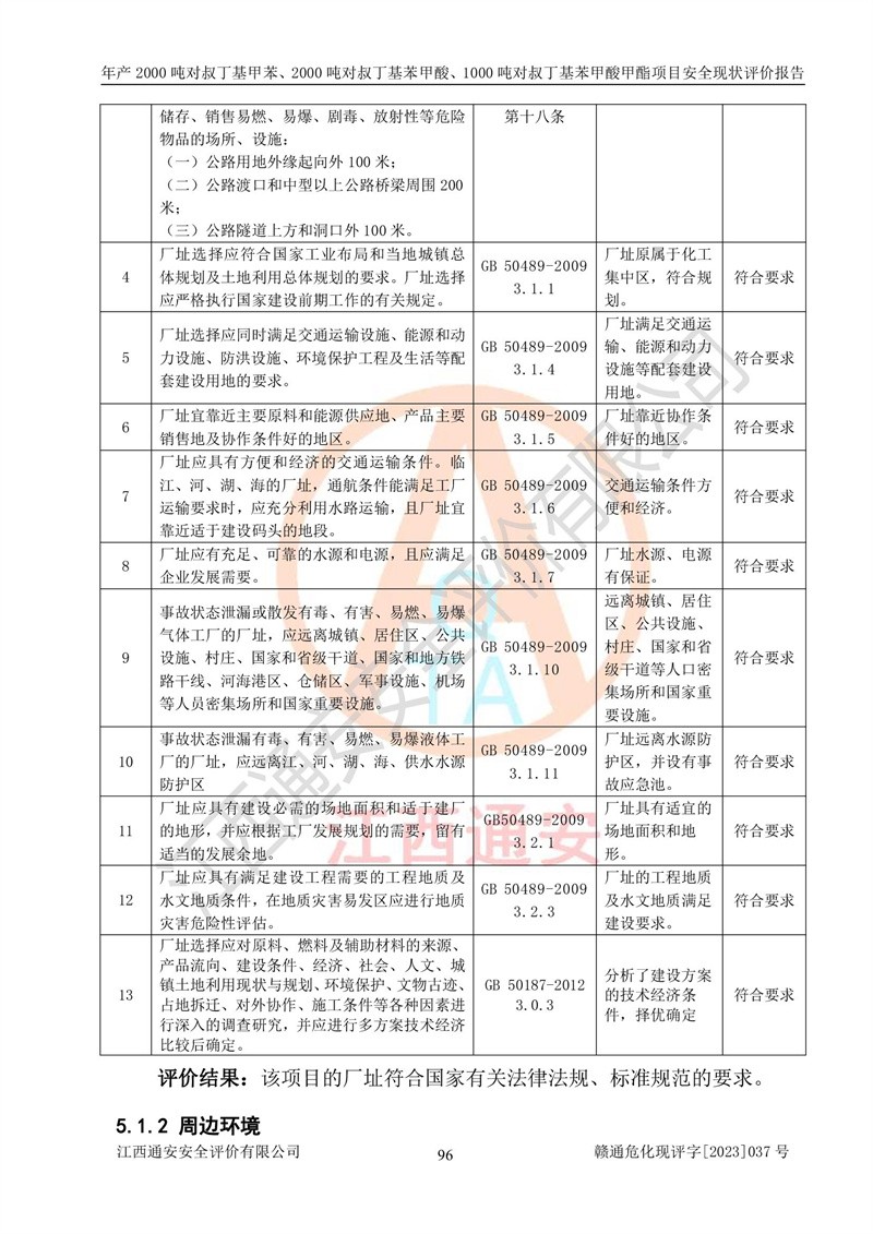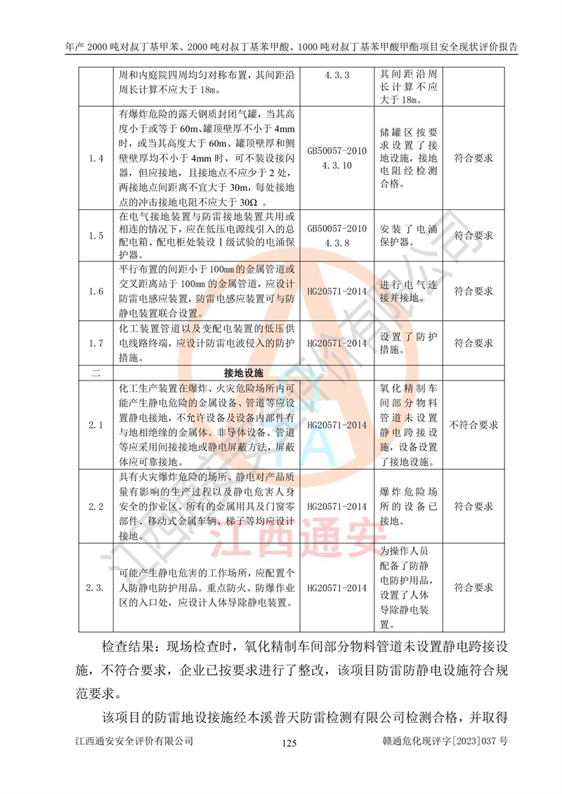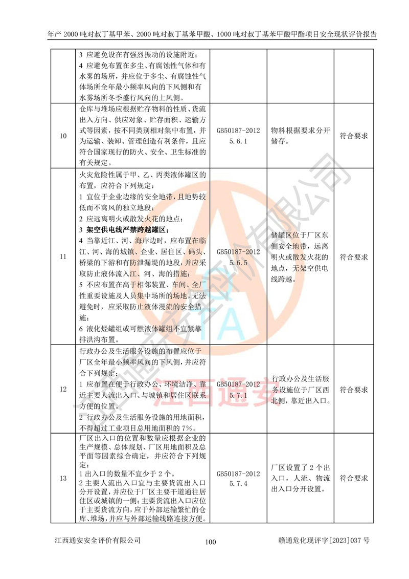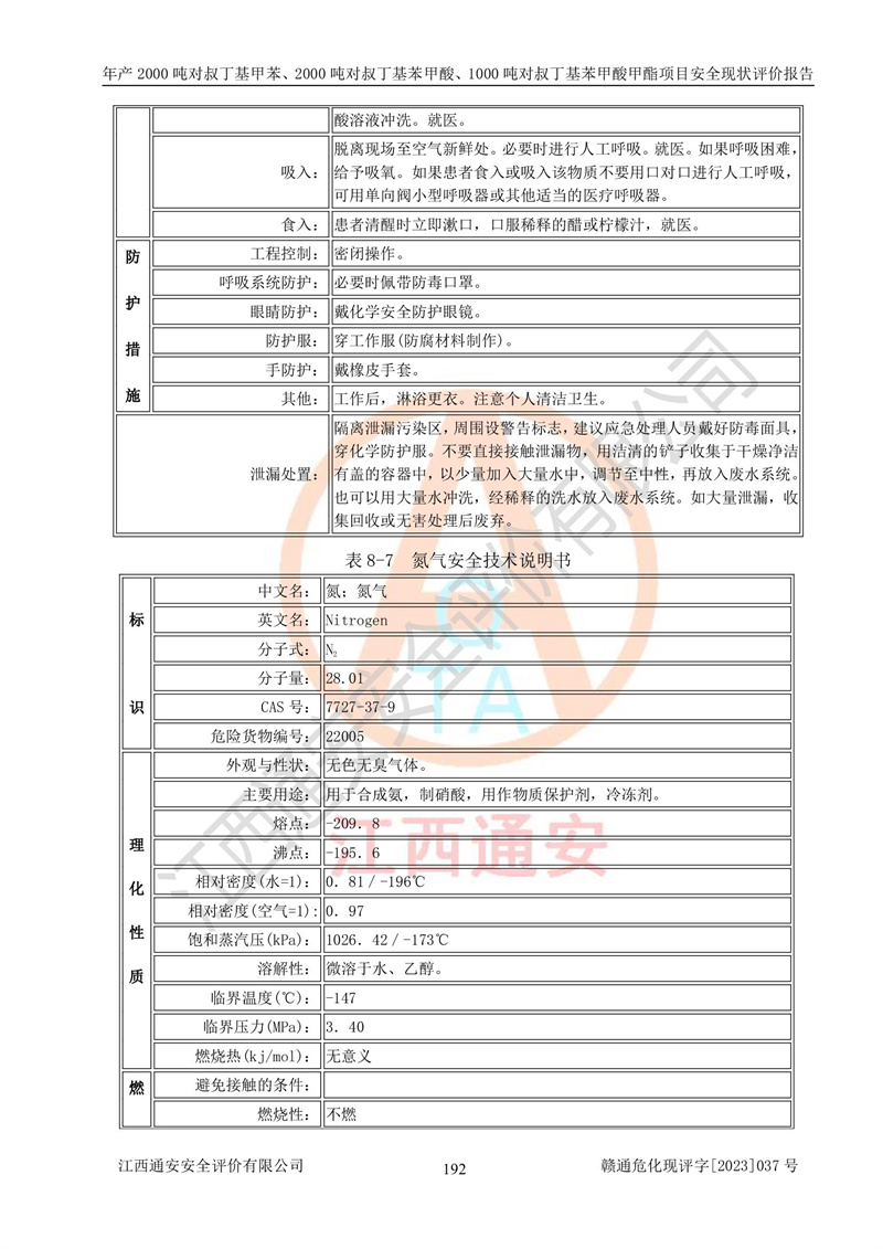 江西永通科技股份有限公司位于江西省贛州市寧都縣工業(yè)園,法定**人為劉忠春,成立于2009年09月25日,注冊資本玖仟陸佰肆拾陸萬陸仟元整,營業(yè)執(zhí)照經(jīng)營范圍為化學(xué)原料藥、醫(yī)藥中間體等研發(fā)、生產(chǎn)、銷售等。 江西永通科技股份有限公司2020年10月26日取得了《安全生產(chǎn)許可證》,許可證編號:(贛)WH安許證字[2011]0642號,許可范圍為對叔丁基甲苯(2kt/a)、對叔丁基苯甲酸(2kt/a)、對叔丁基苯甲酸甲酯(1kt/a),**期:2020年10月26日至2023年10月25日。該公司2021年10月22日取得了安全生產(chǎn)標(biāo)準(zhǔn)化證書,證書編號:贛市AQBWHⅢ[2021]168,**期至2024年10月21日。該公司現(xiàn)有員工133人,其中專職安全管理人員3人。 江西永通科技股份有限公司年產(chǎn)2000噸對叔丁基甲苯、2000噸對叔丁基苯甲酸、1000噸對叔丁基苯甲酸甲酯項(xiàng)目生產(chǎn)過程中涉及的原輔材料為甲苯、異丁烯、液氧(氧氣)、甲醇、濃硫酸、液堿(氫氧化鈉)、活性炭、硅藻土、氧化催化劑和氮?dú)?,產(chǎn)品為對叔丁基甲苯、對叔丁基苯甲酸和對叔丁基苯甲酸甲酯。根據(jù)《危險(xiǎn)化學(xué)品目錄》,該項(xiàng)目涉及的甲苯、異丁烯、液氧(氧氣)、甲醇、濃硫酸、液堿(氫氧化鈉)和氮?dú)鈱儆?/span>危險(xiǎn)化學(xué)品。經(jīng)辨識,甲苯和甲醇屬于重點(diǎn)監(jiān)管的危險(xiǎn)化學(xué)品,甲苯和硫酸屬于第三類易制毒化學(xué)品、甲醇屬于特別管控的危險(xiǎn)化學(xué)品,不涉及監(jiān)控化學(xué)品、易制爆危險(xiǎn)化學(xué)品、劇毒化學(xué)品和高毒物品,儲罐區(qū)構(gòu)成三級重大危險(xiǎn)源,其他生產(chǎn)、儲存單元不構(gòu)成危險(xiǎn)化學(xué)品重大危險(xiǎn)源,涉及的烷基化反應(yīng)和氧化反應(yīng)屬于重點(diǎn)監(jiān)管的危險(xiǎn)化工工藝。根據(jù)《安全生產(chǎn)許可證條例》、《危險(xiǎn)化學(xué)品安全管理?xiàng)l例》和《危險(xiǎn)化學(xué)品生產(chǎn)企業(yè)安全生產(chǎn)許可實(shí)施辦法》的相關(guān)規(guī)定,該項(xiàng)目涉及甲苯回收,需要辦理危險(xiǎn)化學(xué)品安全生產(chǎn)許可證。根據(jù)生產(chǎn)工藝特點(diǎn)及物料的理化特性可知,該項(xiàng)目生產(chǎn)過程中存在火災(zāi)與爆炸、中毒與窒息、觸電、機(jī)械傷害等危險(xiǎn)有害因素。 該公司自2020年10月26日取得安全生產(chǎn)許可證以來,生產(chǎn)運(yùn)行正常,未發(fā)生一般及以上生產(chǎn)安全事故。 |
