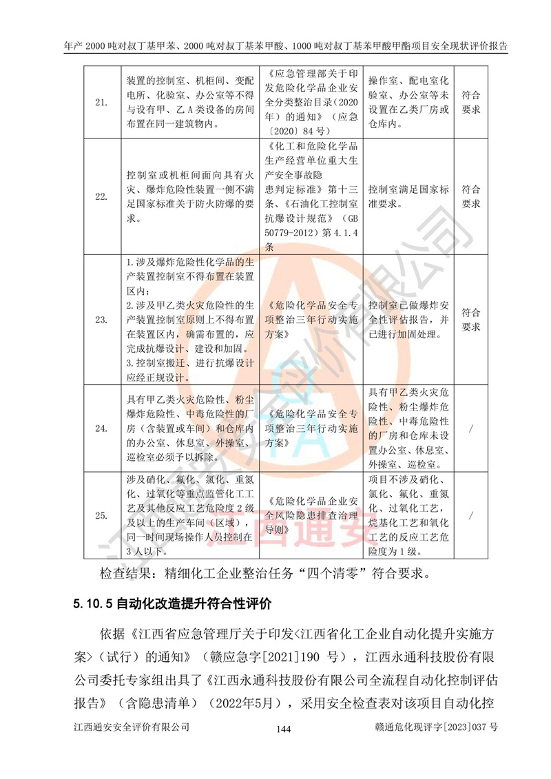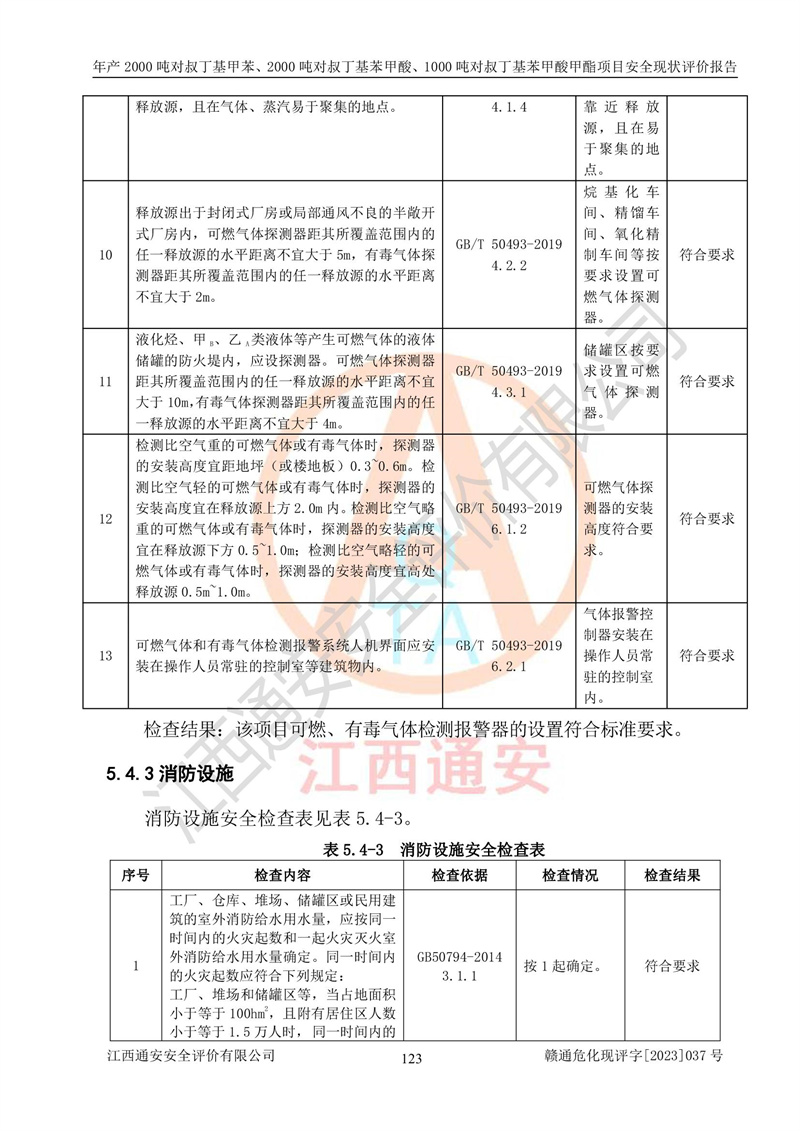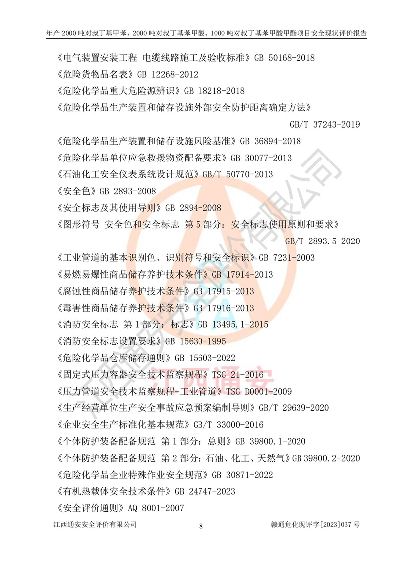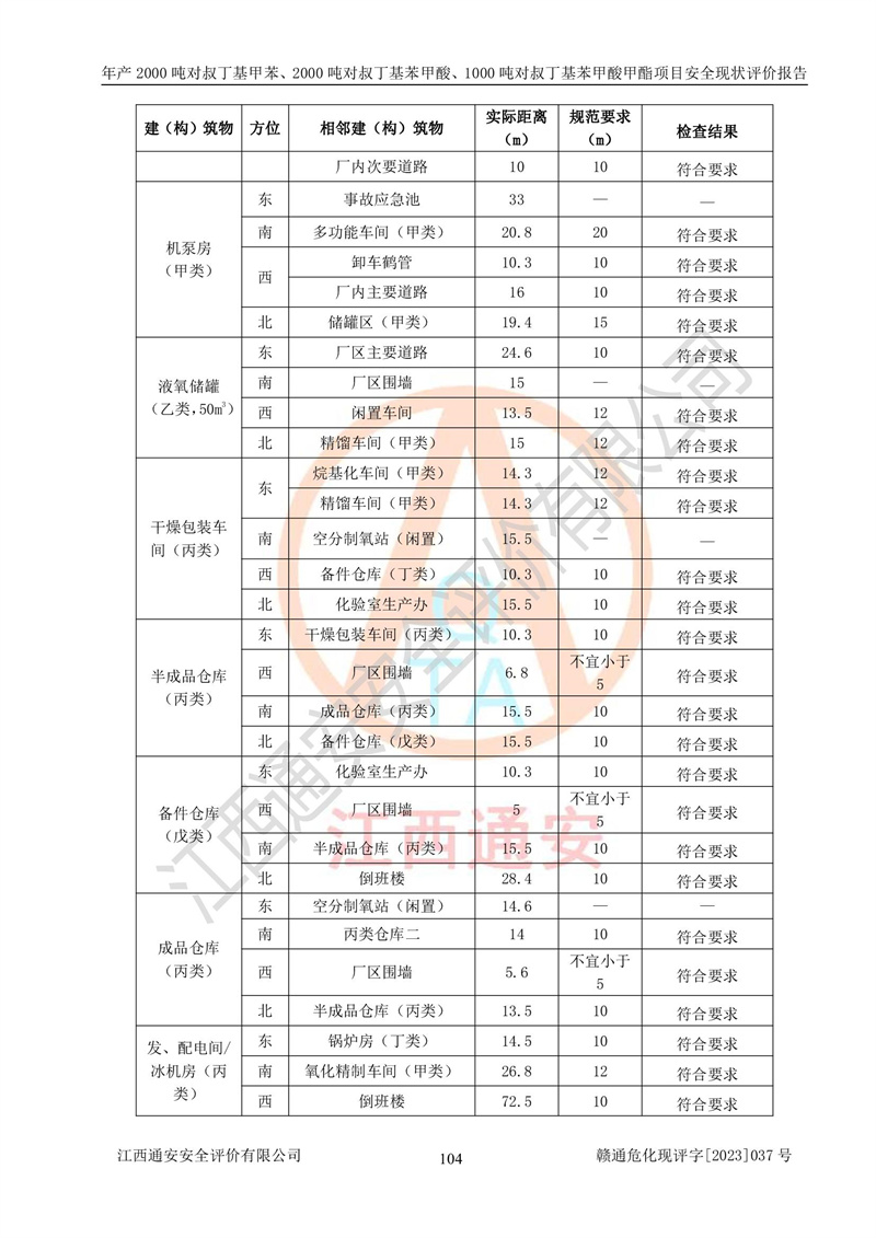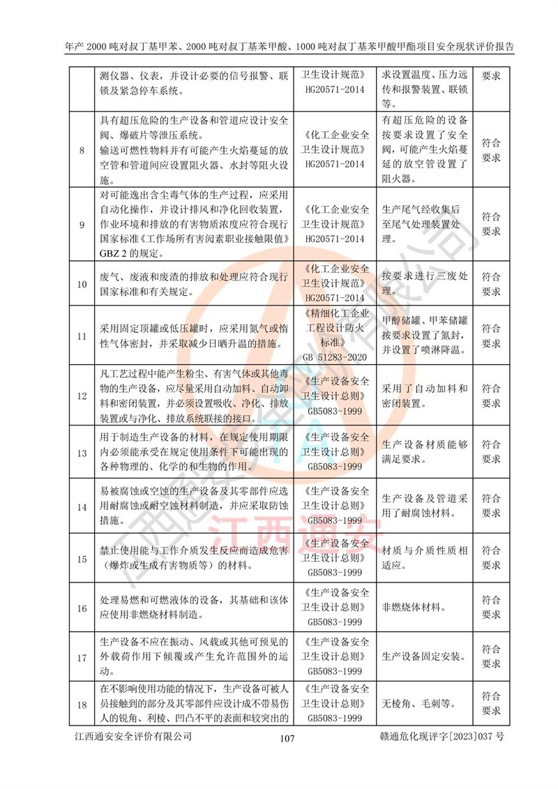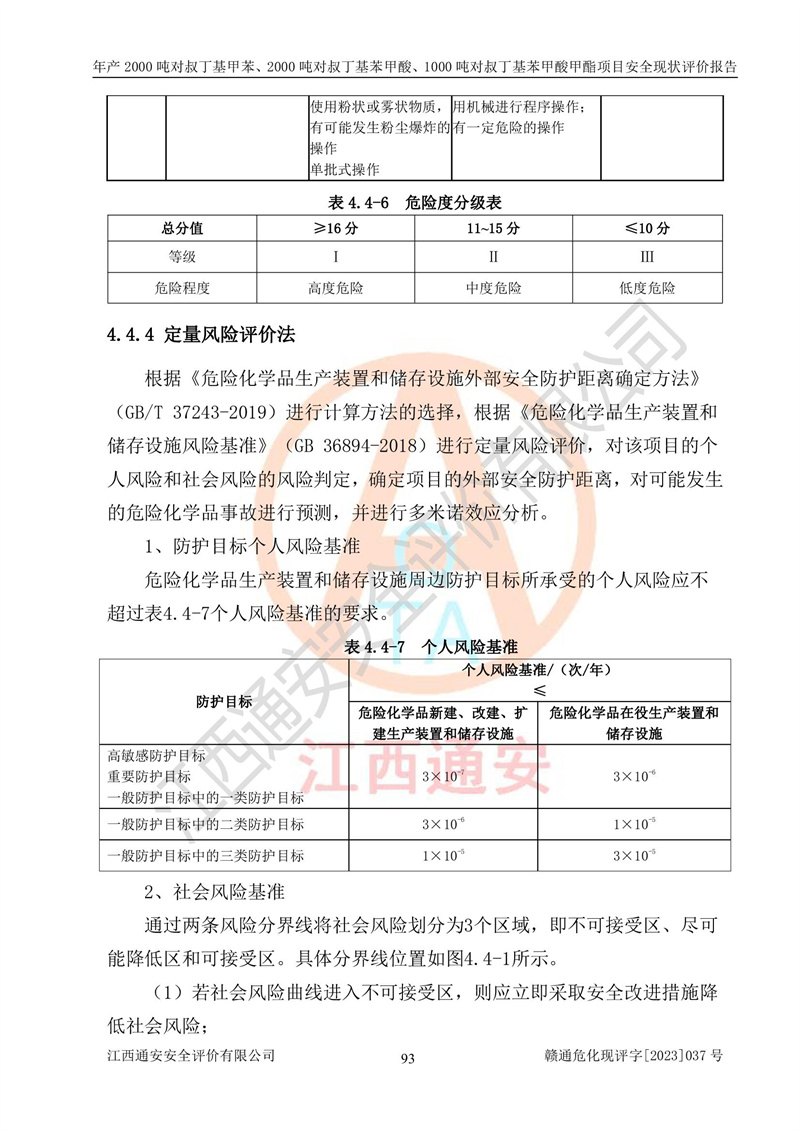江西永通科技股份有限公司位于江西省贛州市寧都縣工業(yè)園,法定**人為劉忠春,成立于2009年09月25日,注冊資本玖仟陸佰肆拾陸萬陸仟元整,營業(yè)執(zhí)照經(jīng)營范圍為化學(xué)原料藥、醫(yī)藥中間體等研發(fā)、生產(chǎn)、銷售等。 江西永通科技股份有限公司2020年10月26日取得了《安全生產(chǎn)許可證》,許可證編號:(贛)WH安許證字[2011]0642號,許可范圍為對叔丁基甲苯(2kt/a)、對叔丁基苯甲酸(2kt/a)、對叔丁基苯甲酸甲酯(1kt/a),**期:2020年10月26日至2023年10月25日。該公司2021年10月22日取得了安全生產(chǎn)標(biāo)準(zhǔn)化證書,證書編號:贛市AQBWHⅢ[2021]168,**期至2024年10月21日。該公司現(xiàn)有員工133人,其中專職安全管理人員3人。 江西永通科技股份有限公司年產(chǎn)2000噸對叔丁基甲苯、2000噸對叔丁基苯甲酸、1000噸對叔丁基苯甲酸甲酯項(xiàng)目生產(chǎn)過程中涉及的原輔材料為甲苯、異丁烯、液氧(氧氣)、甲醇、濃硫酸、液堿(氫氧化鈉)、活性炭、硅藻土、氧化催化劑和氮?dú)?,產(chǎn)品為對叔丁基甲苯、對叔丁基苯甲酸和對叔丁基苯甲酸甲酯。根據(jù)《危險(xiǎn)化學(xué)品目錄》,該項(xiàng)目涉及的甲苯、異丁烯、液氧(氧氣)、甲醇、濃硫酸、液堿(氫氧化鈉)和氮?dú)鈱儆?/span>危險(xiǎn)化學(xué)品。經(jīng)辨識,甲苯和甲醇屬于重點(diǎn)監(jiān)管的危險(xiǎn)化學(xué)品,甲苯和硫酸屬于第三類易制毒化學(xué)品、甲醇屬于特別管控的危險(xiǎn)化學(xué)品,不涉及監(jiān)控化學(xué)品、易制爆危險(xiǎn)化學(xué)品、劇毒化學(xué)品和高毒物品,儲罐區(qū)構(gòu)成三級重大危險(xiǎn)源,其他生產(chǎn)、儲存單元不構(gòu)成危險(xiǎn)化學(xué)品重大危險(xiǎn)源,涉及的烷基化反應(yīng)和氧化反應(yīng)屬于重點(diǎn)監(jiān)管的危險(xiǎn)化工工藝。根據(jù)《安全生產(chǎn)許可證條例》、《危險(xiǎn)化學(xué)品安全管理?xiàng)l例》和《危險(xiǎn)化學(xué)品生產(chǎn)企業(yè)安全生產(chǎn)許可實(shí)施辦法》的相關(guān)規(guī)定,該項(xiàng)目涉及甲苯回收,需要辦理危險(xiǎn)化學(xué)品安全生產(chǎn)許可證。根據(jù)生產(chǎn)工藝特點(diǎn)及物料的理化特性可知,該項(xiàng)目生產(chǎn)過程中存在火災(zāi)與爆炸、中毒與窒息、觸電、機(jī)械傷害等危險(xiǎn)有害因素。 該公司自2020年10月26日取得安全生產(chǎn)許可證以來,生產(chǎn)運(yùn)行正常,未發(fā)生一般及以上生產(chǎn)安全事故。 |