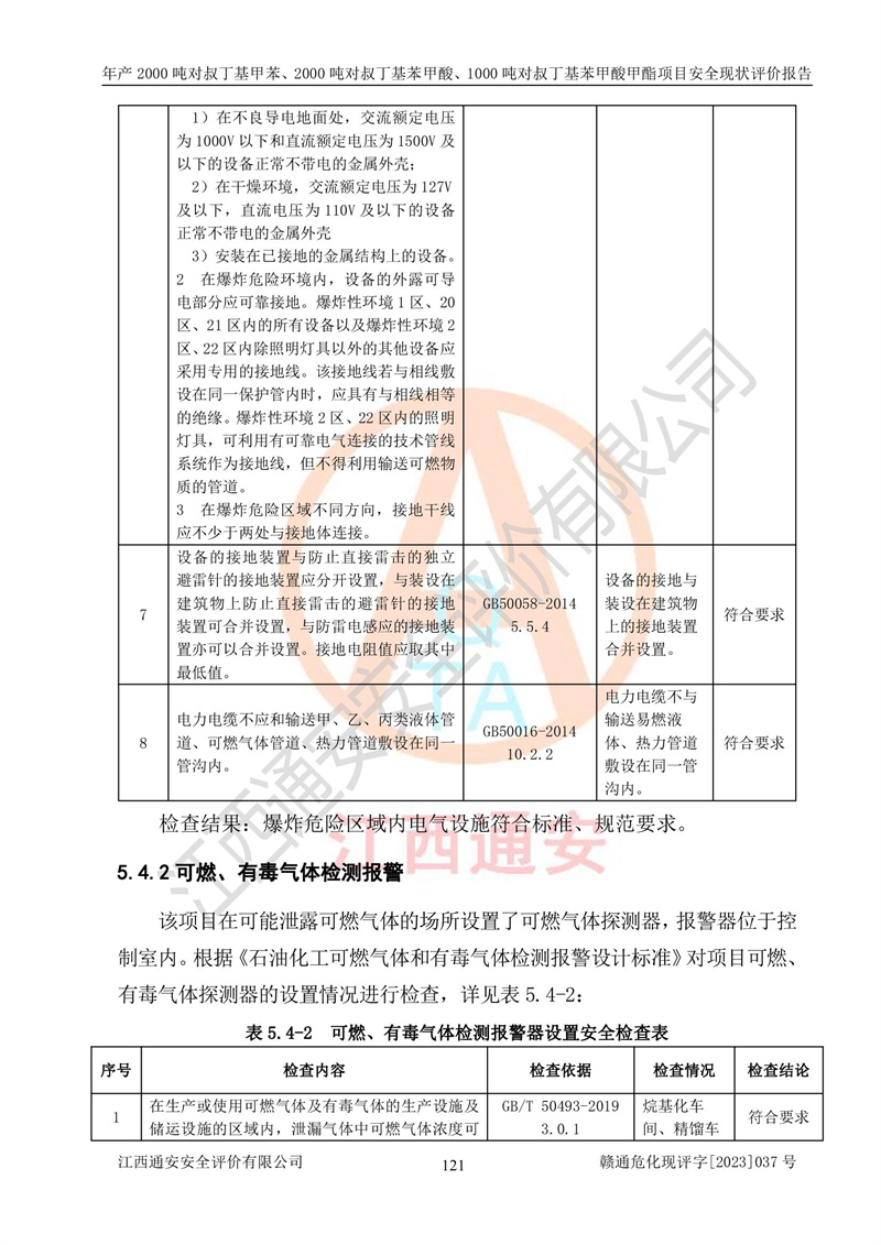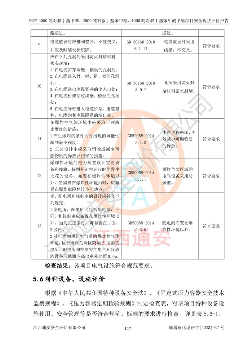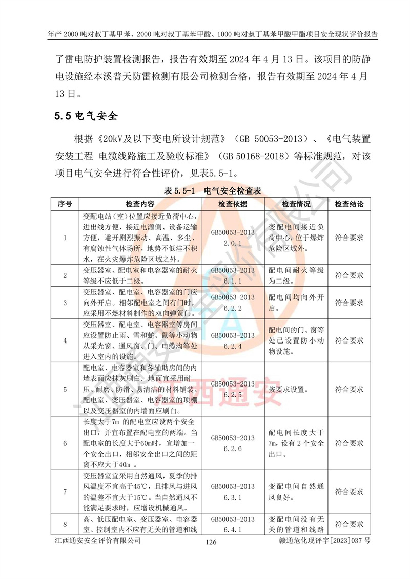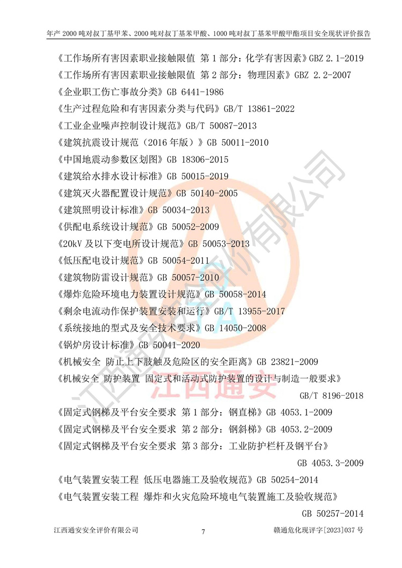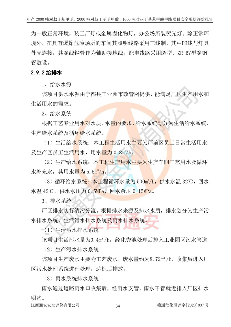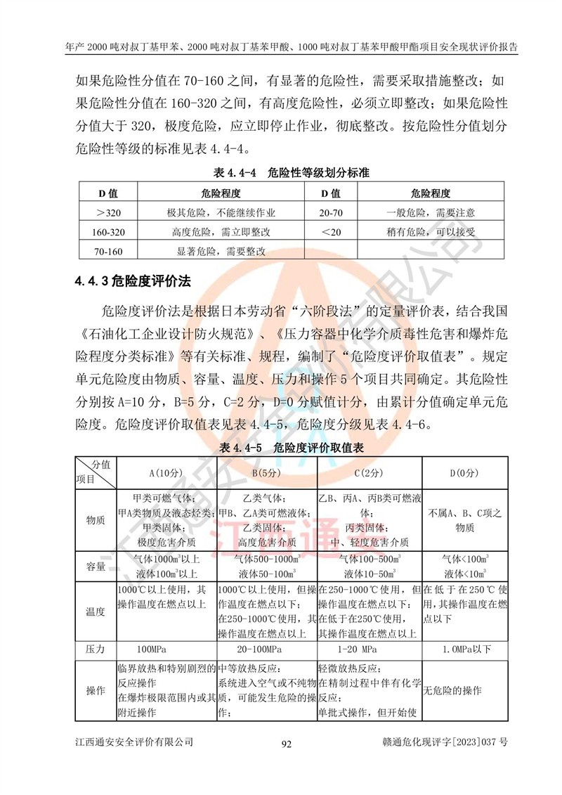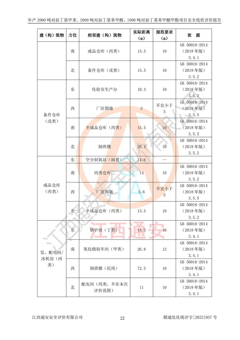 江西永通科技股份有限公司位于江西省贛州市寧都縣工業(yè)園,法定**人為劉忠春,成立于2009年09月25日,注冊資本玖仟陸佰肆拾陸萬陸仟元整,營業(yè)執(zhí)照經(jīng)營范圍為化學(xué)原料藥、醫(yī)藥中間體等研發(fā)、生產(chǎn)、銷售等。 江西永通科技股份有限公司2020年10月26日取得了《安全生產(chǎn)許可證》,許可證編號:(贛)WH安許證字[2011]0642號,許可范圍為對叔丁基甲苯(2kt/a)、對叔丁基苯甲酸(2kt/a)、對叔丁基苯甲酸甲酯(1kt/a),**期:2020年10月26日至2023年10月25日。該公司2021年10月22日取得了安全生產(chǎn)標(biāo)準(zhǔn)化證書,證書編號:贛市AQBWHⅢ[2021]168,**期至2024年10月21日。該公司現(xiàn)有員工133人,其中專職安全管理人員3人。 江西永通科技股份有限公司年產(chǎn)2000噸對叔丁基甲苯、2000噸對叔丁基苯甲酸、1000噸對叔丁基苯甲酸甲酯項(xiàng)目生產(chǎn)過程中涉及的原輔材料為甲苯、異丁烯、液氧(氧氣)、甲醇、濃硫酸、液堿(氫氧化鈉)、活性炭、硅藻土、氧化催化劑和氮?dú)?,產(chǎn)品為對叔丁基甲苯、對叔丁基苯甲酸和對叔丁基苯甲酸甲酯。根據(jù)《危險(xiǎn)化學(xué)品目錄》,該項(xiàng)目涉及的甲苯、異丁烯、液氧(氧氣)、甲醇、濃硫酸、液堿(氫氧化鈉)和氮?dú)鈱儆?/span>危險(xiǎn)化學(xué)品。經(jīng)辨識,甲苯和甲醇屬于重點(diǎn)監(jiān)管的危險(xiǎn)化學(xué)品,甲苯和硫酸屬于第三類易制毒化學(xué)品、甲醇屬于特別管控的危險(xiǎn)化學(xué)品,不涉及監(jiān)控化學(xué)品、易制爆危險(xiǎn)化學(xué)品、劇毒化學(xué)品和高毒物品,儲罐區(qū)構(gòu)成三級重大危險(xiǎn)源,其他生產(chǎn)、儲存單元不構(gòu)成危險(xiǎn)化學(xué)品重大危險(xiǎn)源,涉及的烷基化反應(yīng)和氧化反應(yīng)屬于重點(diǎn)監(jiān)管的危險(xiǎn)化工工藝。根據(jù)《安全生產(chǎn)許可證條例》、《危險(xiǎn)化學(xué)品安全管理?xiàng)l例》和《危險(xiǎn)化學(xué)品生產(chǎn)企業(yè)安全生產(chǎn)許可實(shí)施辦法》的相關(guān)規(guī)定,該項(xiàng)目涉及甲苯回收,需要辦理危險(xiǎn)化學(xué)品安全生產(chǎn)許可證。根據(jù)生產(chǎn)工藝特點(diǎn)及物料的理化特性可知,該項(xiàng)目生產(chǎn)過程中存在火災(zāi)與爆炸、中毒與窒息、觸電、機(jī)械傷害等危險(xiǎn)有害因素。 該公司自2020年10月26日取得安全生產(chǎn)許可證以來,生產(chǎn)運(yùn)行正常,未發(fā)生一般及以上生產(chǎn)安全事故。 |