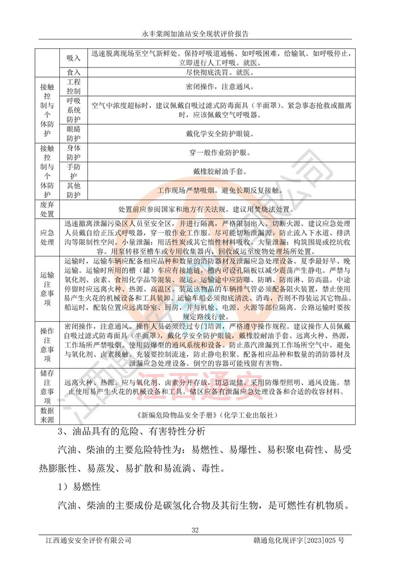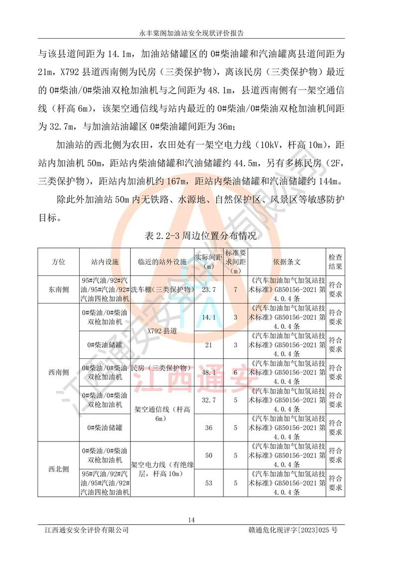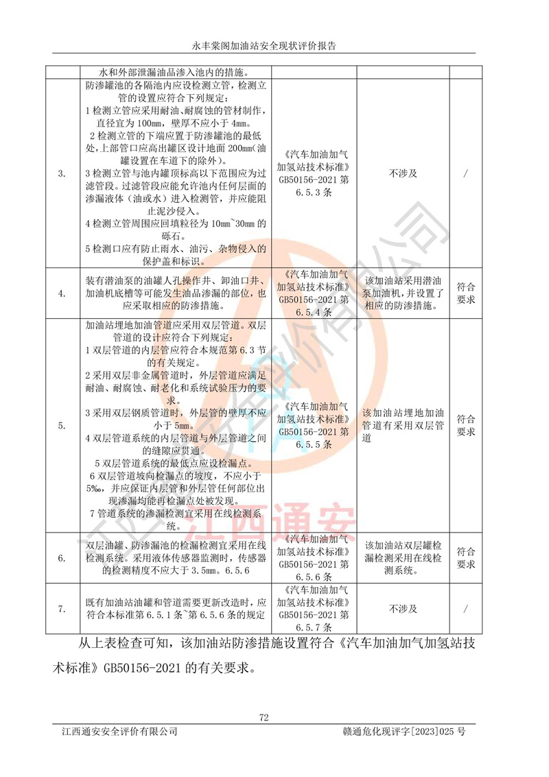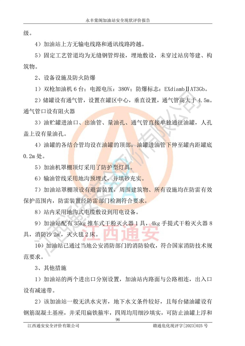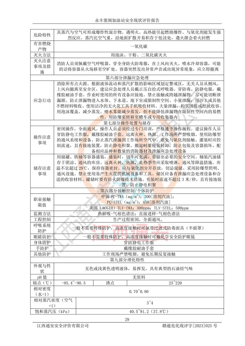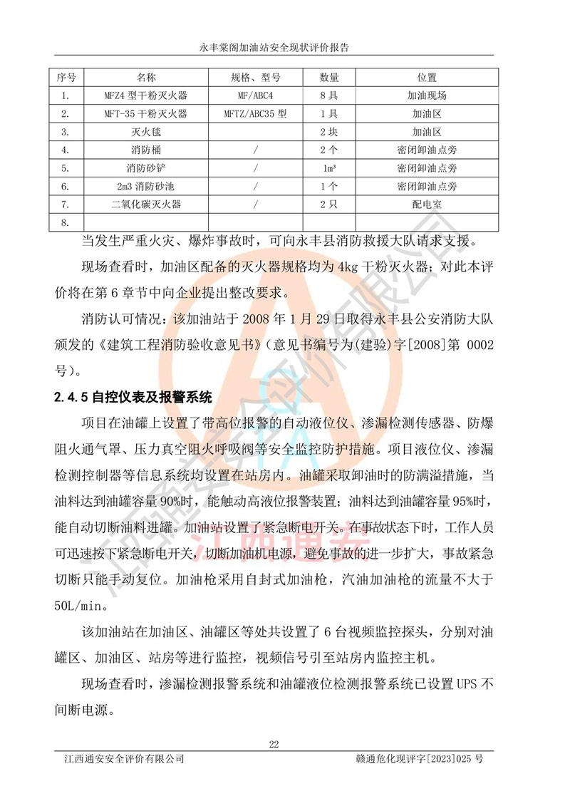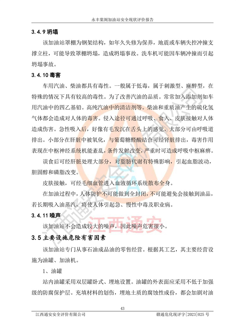 永豐棠閣加油站是一家從事成品油、潤滑油零售經(jīng)營的企業(yè)。該加油站于2018年06月28日經(jīng)永豐縣市場監(jiān)督管理局核準(zhǔn)注冊成立,營業(yè)場所位于江西省吉安市永豐縣石馬鎮(zhèn)棠閣村。該加油站屬于個人獨(dú)資企業(yè),投資人為吳柏昌,營業(yè)執(zhí)照統(tǒng)一社會信用代碼為:91360825MA380EX596。營業(yè)執(zhí)照核準(zhǔn)經(jīng)營范圍:成品油零售《**期至2023年11月27日)(依法須經(jīng)批準(zhǔn)的項(xiàng)目,經(jīng)相關(guān)部門批準(zhǔn)后方可開展經(jīng)營活動)。 永豐棠閣加油站占地面積300㎡,加油站中設(shè)有1臺0#柴油/0#柴油雙槍加油機(jī)、1臺95#汽油/92#汽油/95#汽油/92#汽油四槍加油機(jī),1臺SF雙層50m3埋地臥式0#柴油罐、一個30m3SF雙層埋地臥式汽油罐,其中汽油罐分為兩個隔倉,分別為15m392#汽油隔倉和15m395#汽油隔倉,油品*大儲存能力為80m3,油品折算總?cè)萘繛?5m3(柴油罐容積折半計(jì)入油罐總?cè)莘e),屬三級加油站,汽油卸油、加油設(shè)置了油氣回收系統(tǒng)。 |