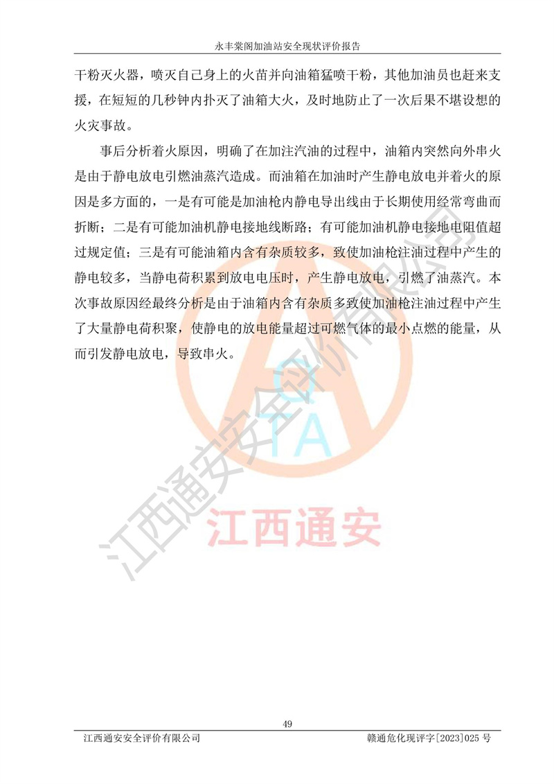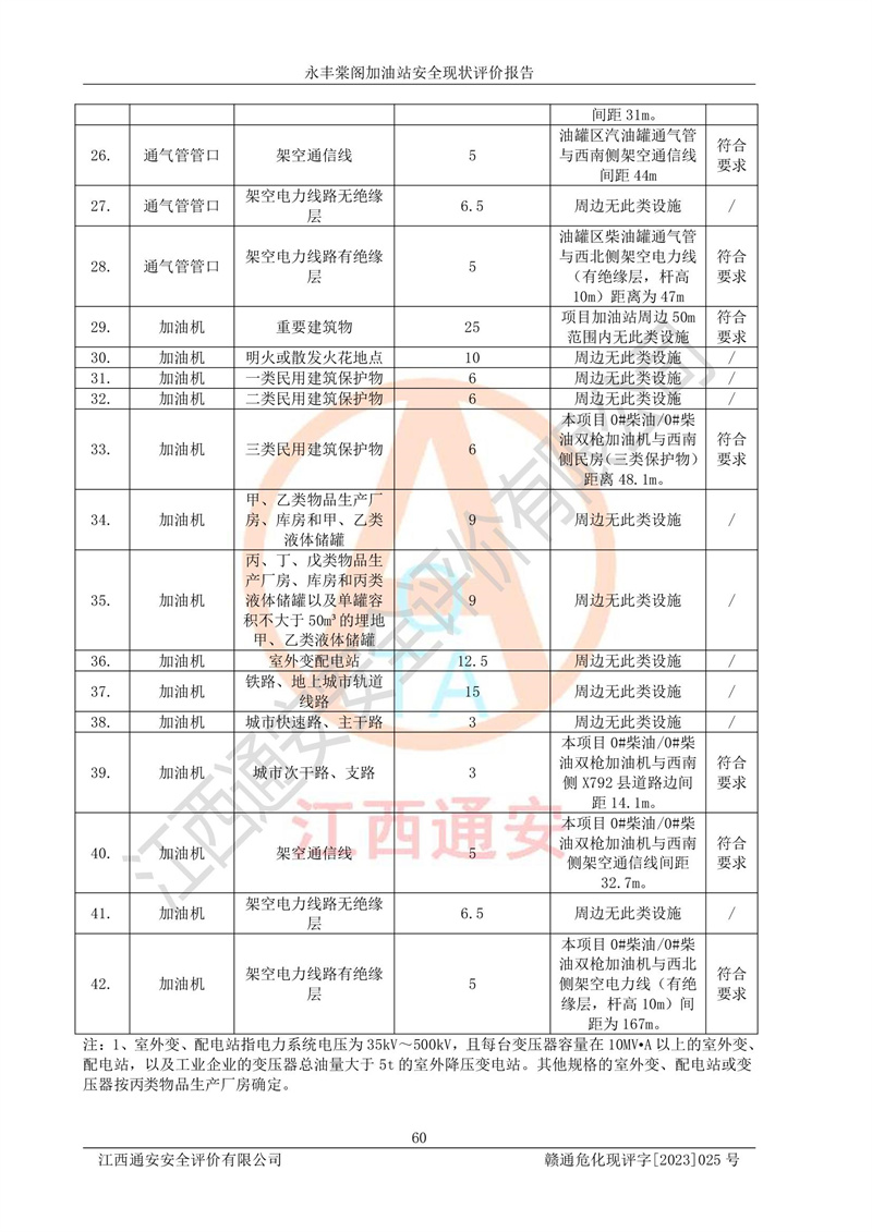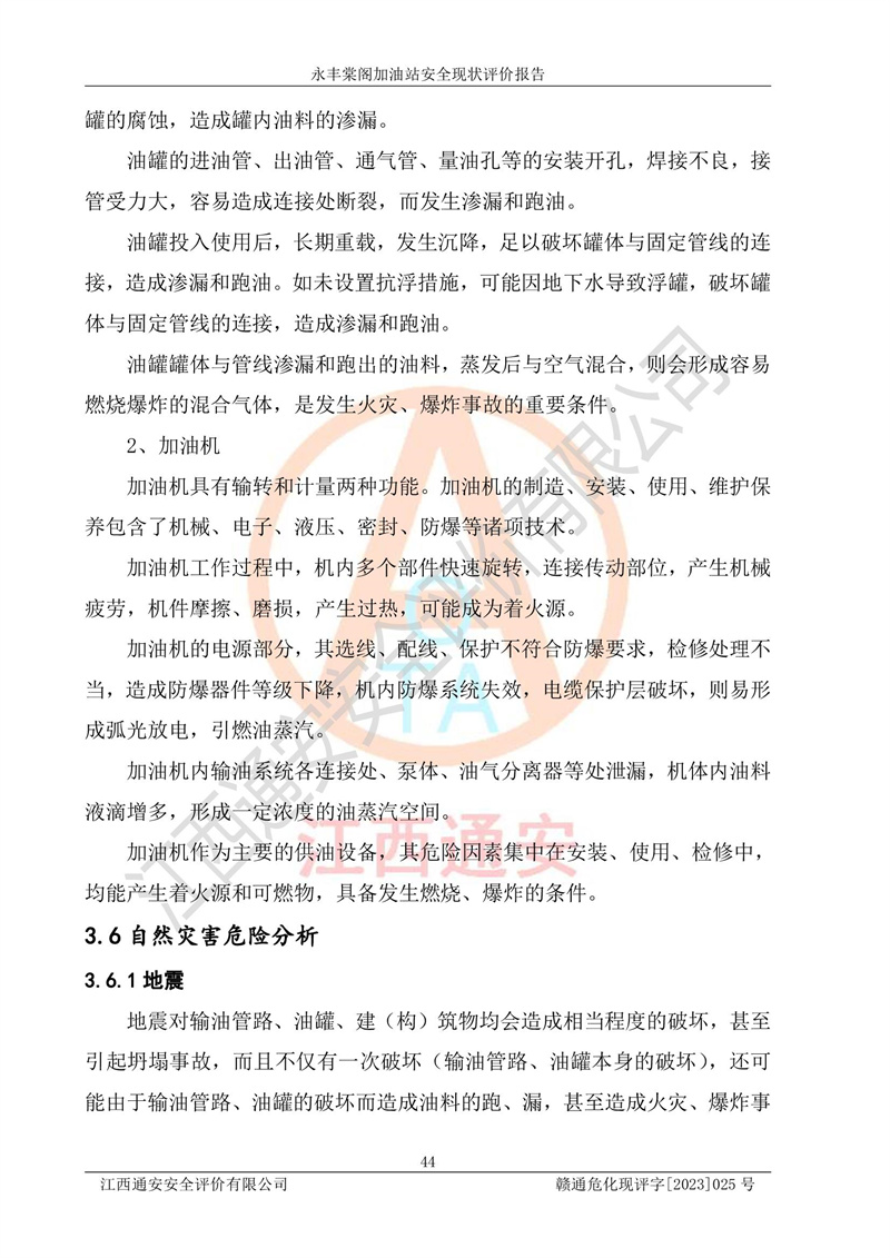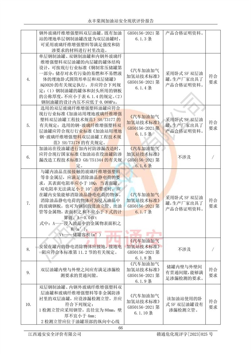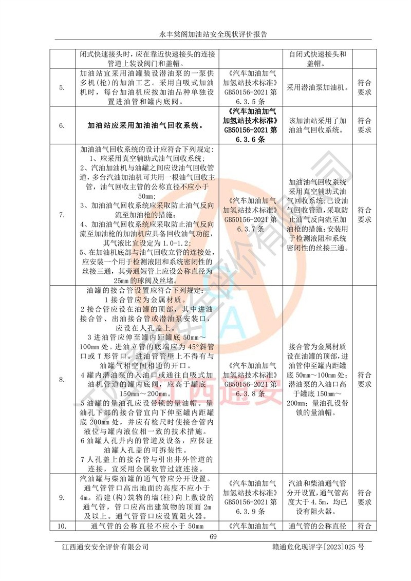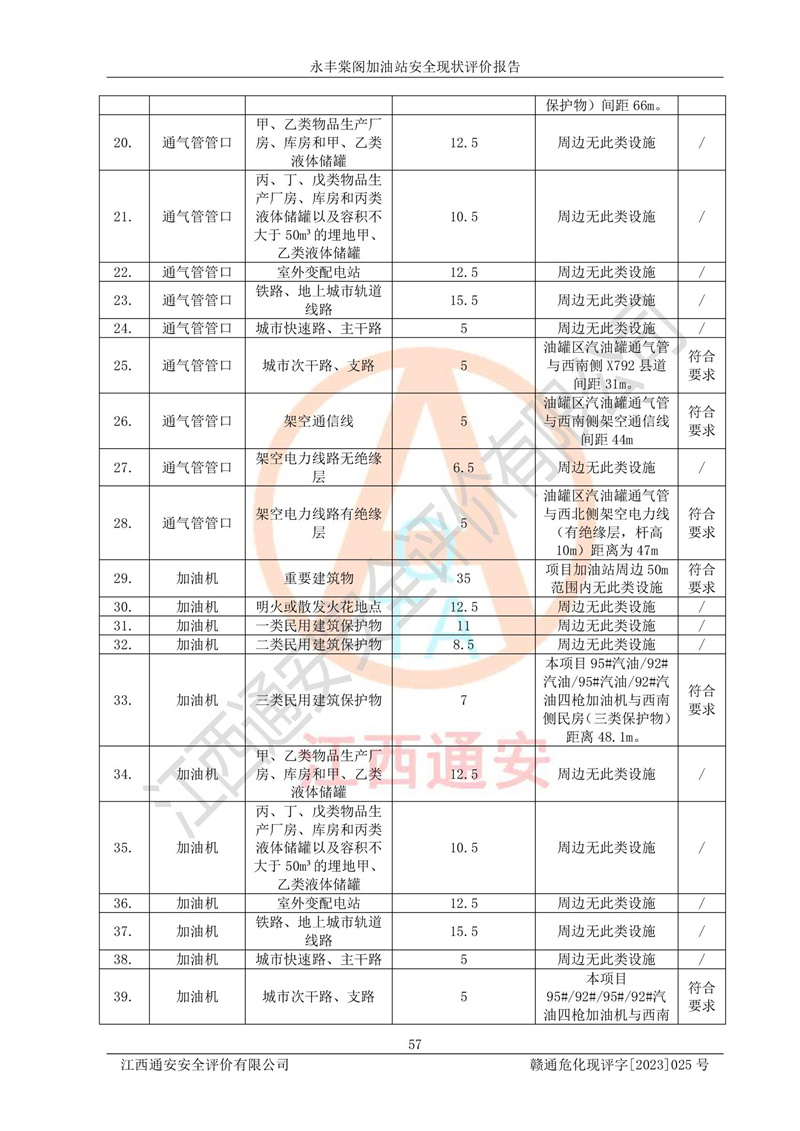 永豐棠閣加油站是一家從事成品油、潤滑油零售經(jīng)營的企業(yè)。該加油站于2018年06月28日經(jīng)永豐縣市場監(jiān)督管理局核準(zhǔn)注冊成立,營業(yè)場所位于江西省吉安市永豐縣石馬鎮(zhèn)棠閣村。該加油站屬于個人獨(dú)資企業(yè),投資人為吳柏昌,營業(yè)執(zhí)照統(tǒng)一社會信用代碼為:91360825MA380EX596。營業(yè)執(zhí)照核準(zhǔn)經(jīng)營范圍:成品油零售《**期至2023年11月27日)(依法須經(jīng)批準(zhǔn)的項(xiàng)目,經(jīng)相關(guān)部門批準(zhǔn)后方可開展經(jīng)營活動)。 永豐棠閣加油站占地面積300㎡,加油站中設(shè)有1臺0#柴油/0#柴油雙槍加油機(jī)、1臺95#汽油/92#汽油/95#汽油/92#汽油四槍加油機(jī),1臺SF雙層50m3埋地臥式0#柴油罐、一個30m3SF雙層埋地臥式汽油罐,其中汽油罐分為兩個隔倉,分別為15m392#汽油隔倉和15m395#汽油隔倉,油品*大儲存能力為80m3,油品折算總?cè)萘繛?5m3(柴油罐容積折半計(jì)入油罐總?cè)莘e),屬三級加油站,汽油卸油、加油設(shè)置了油氣回收系統(tǒng)。 |