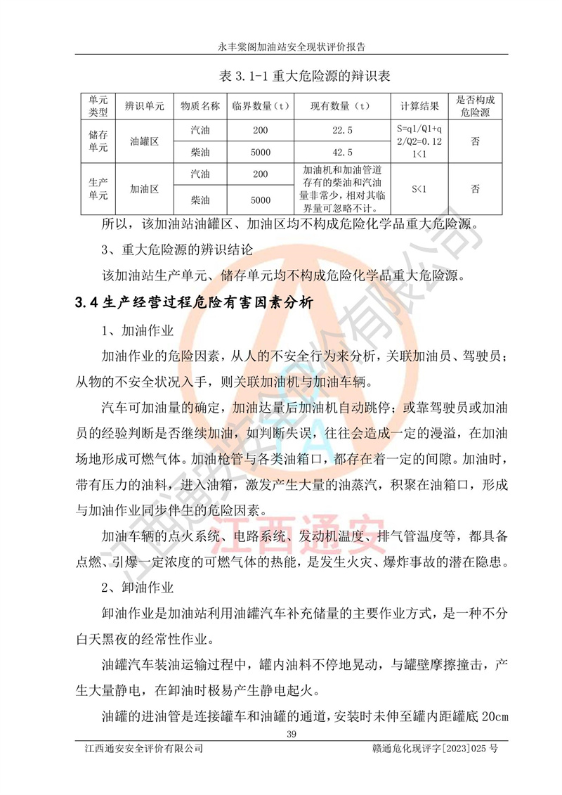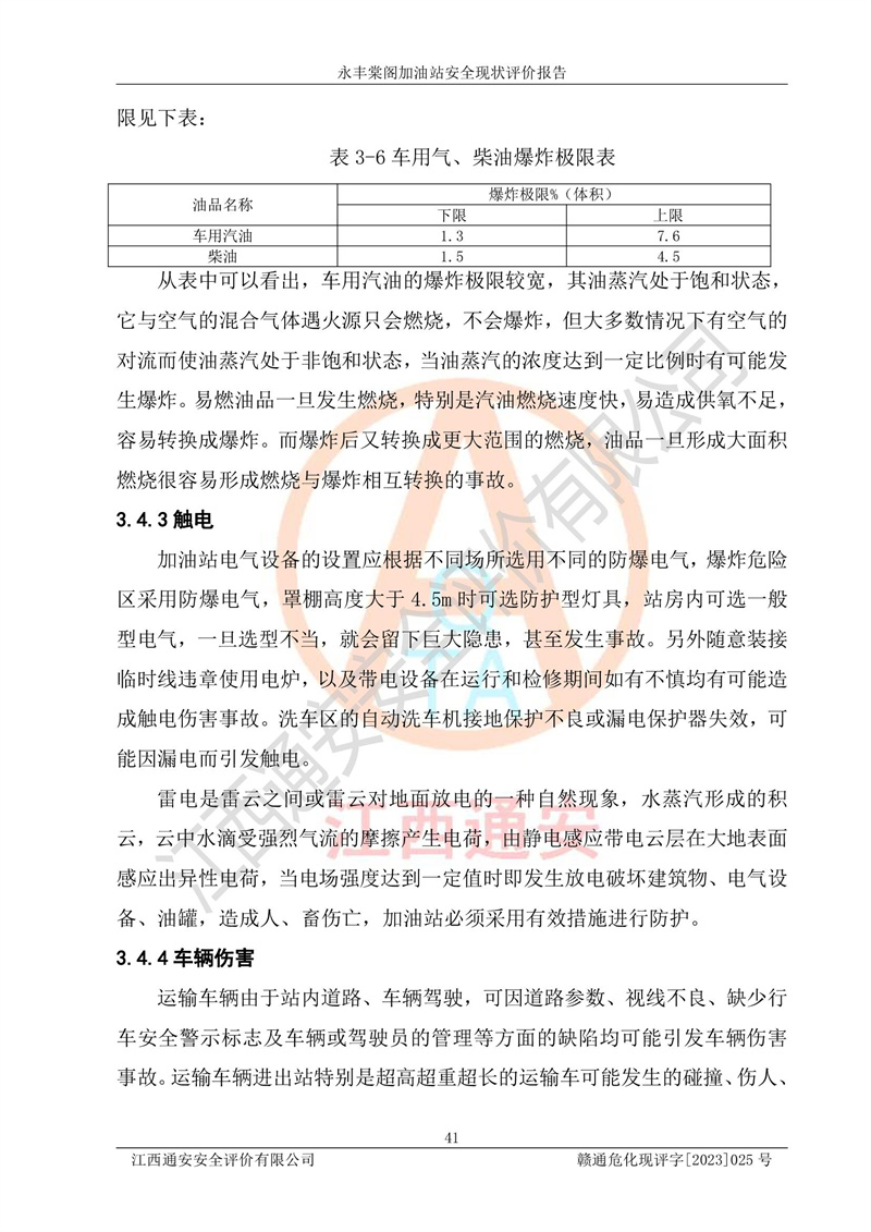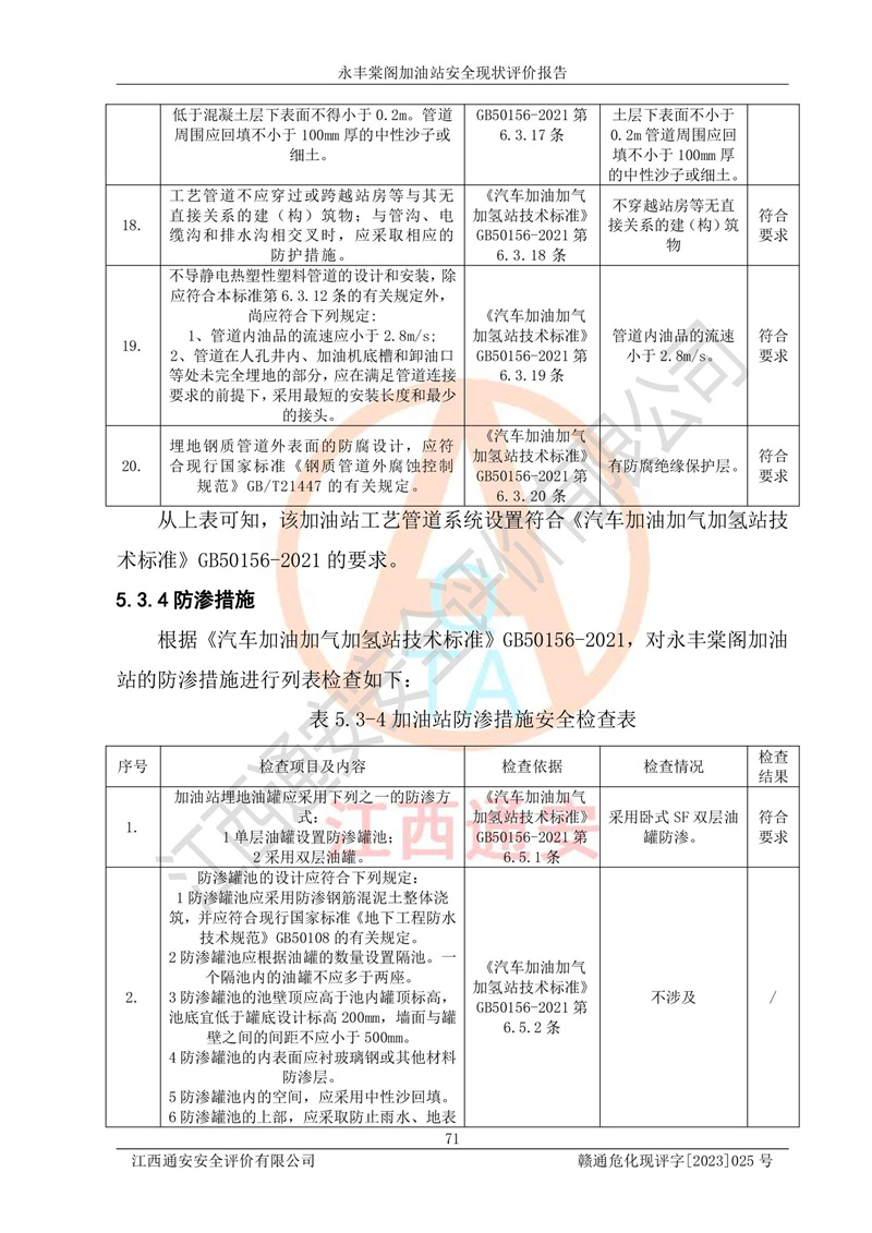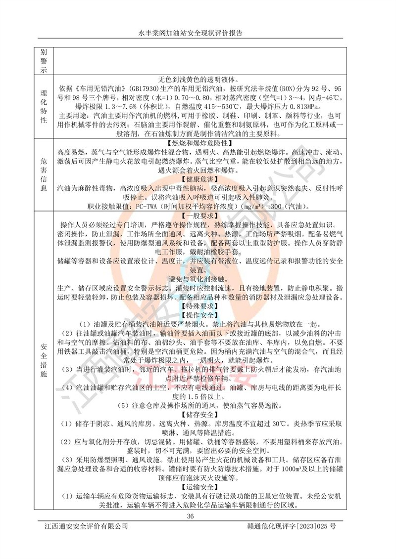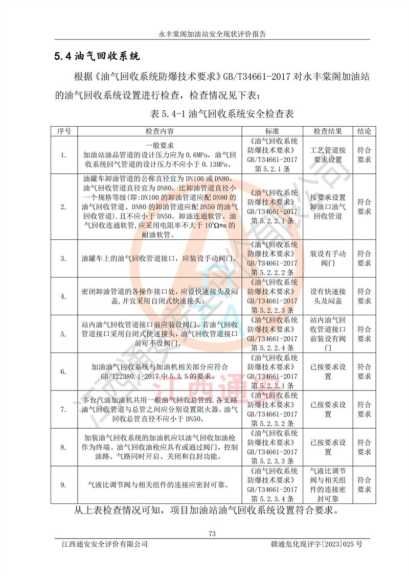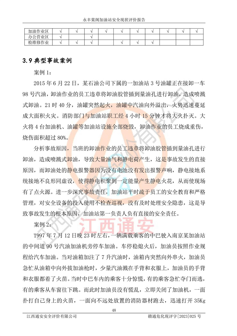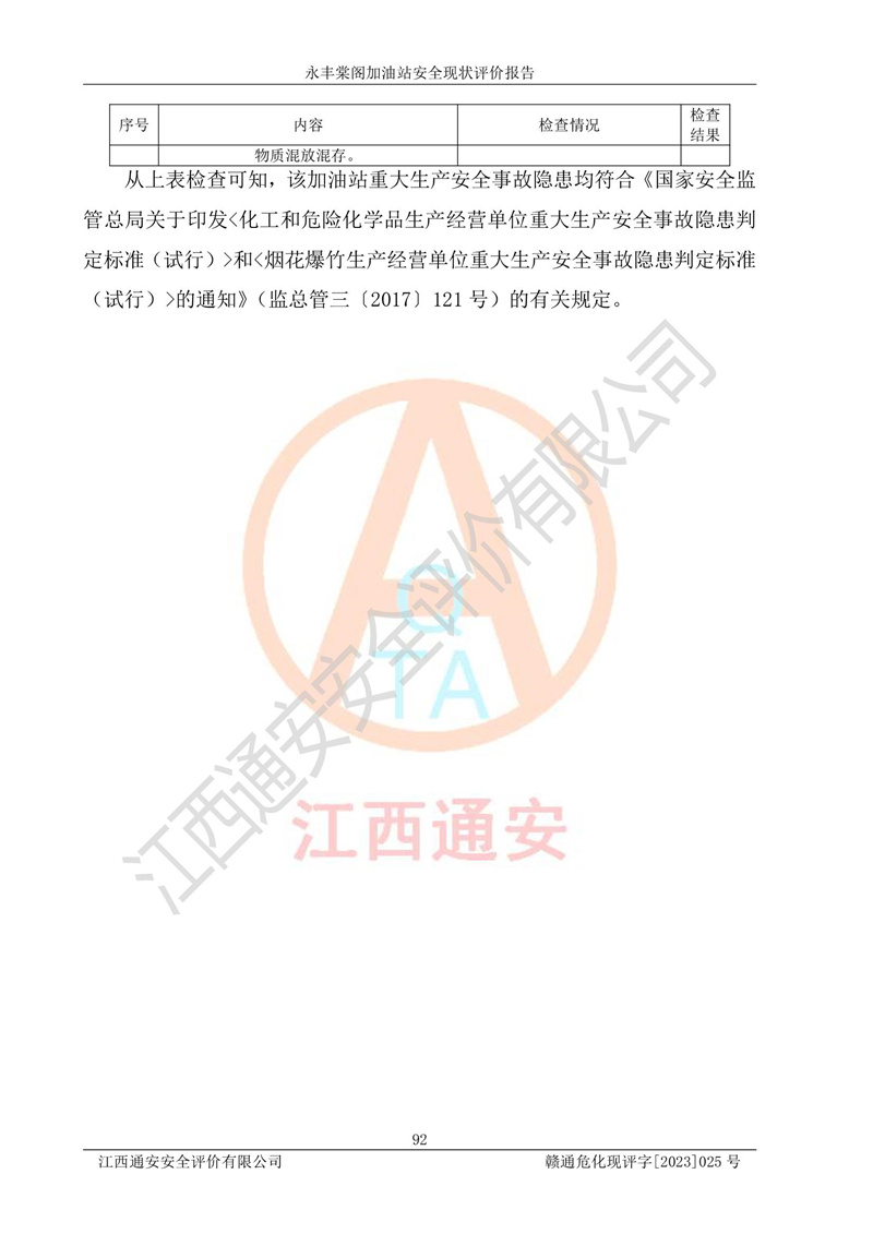 永豐棠閣加油站是一家從事成品油、潤滑油零售經(jīng)營的企業(yè)。該加油站于2018年06月28日經(jīng)永豐縣市場監(jiān)督管理局核準(zhǔn)注冊成立,營業(yè)場所位于江西省吉安市永豐縣石馬鎮(zhèn)棠閣村。該加油站屬于個人獨(dú)資企業(yè),投資人為吳柏昌,營業(yè)執(zhí)照統(tǒng)一社會信用代碼為:91360825MA380EX596。營業(yè)執(zhí)照核準(zhǔn)經(jīng)營范圍:成品油零售《**期至2023年11月27日)(依法須經(jīng)批準(zhǔn)的項(xiàng)目,經(jīng)相關(guān)部門批準(zhǔn)后方可開展經(jīng)營活動)。 永豐棠閣加油站占地面積300㎡,加油站中設(shè)有1臺0#柴油/0#柴油雙槍加油機(jī)、1臺95#汽油/92#汽油/95#汽油/92#汽油四槍加油機(jī),1臺SF雙層50m3埋地臥式0#柴油罐、一個30m3SF雙層埋地臥式汽油罐,其中汽油罐分為兩個隔倉,分別為15m392#汽油隔倉和15m395#汽油隔倉,油品*大儲存能力為80m3,油品折算總?cè)萘繛?5m3(柴油罐容積折半計(jì)入油罐總?cè)莘e),屬三級加油站,汽油卸油、加油設(shè)置了油氣回收系統(tǒng)。 |