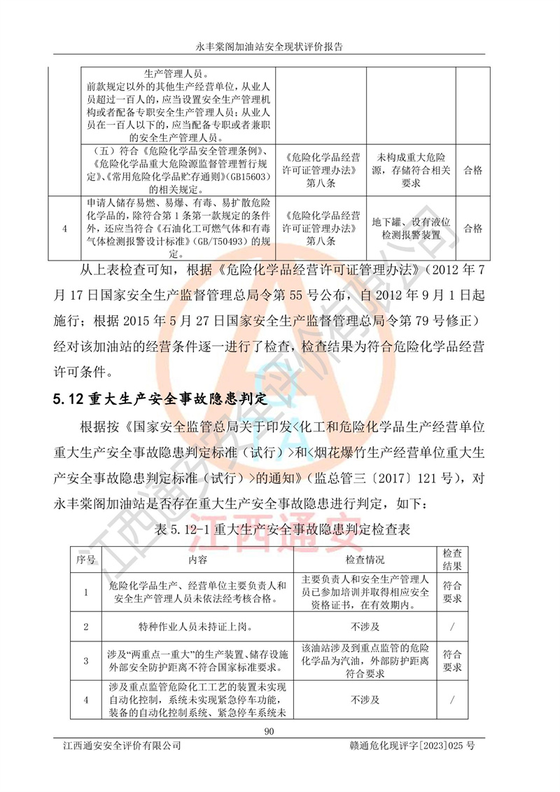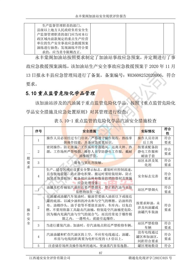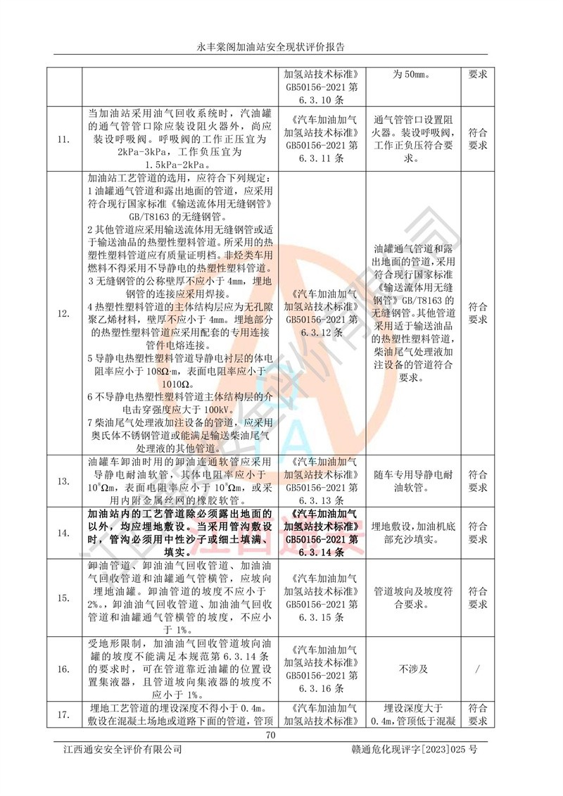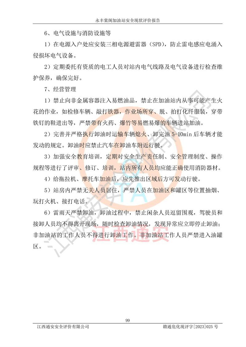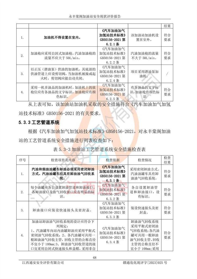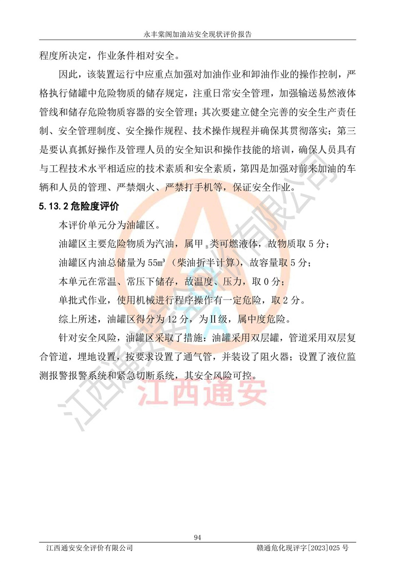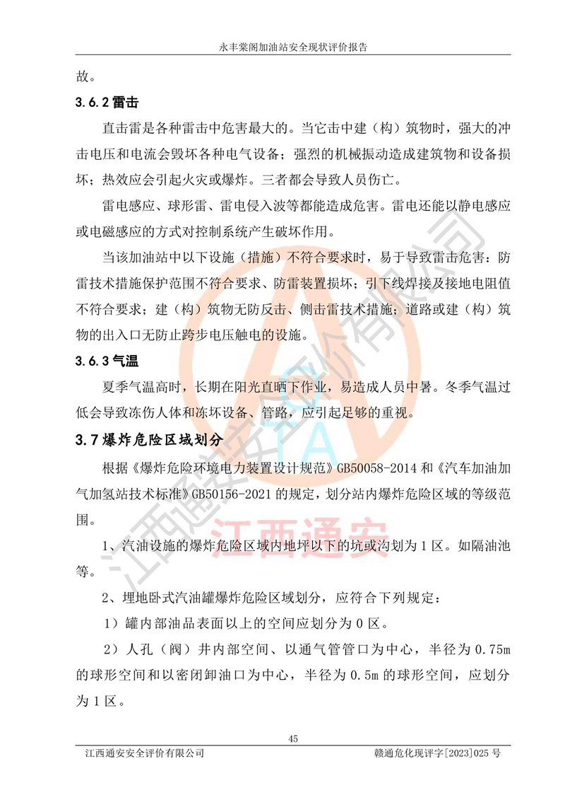 永豐棠閣加油站是一家從事成品油、潤滑油零售經(jīng)營的企業(yè)。該加油站于2018年06月28日經(jīng)永豐縣市場監(jiān)督管理局核準(zhǔn)注冊成立,營業(yè)場所位于江西省吉安市永豐縣石馬鎮(zhèn)棠閣村。該加油站屬于個人獨(dú)資企業(yè),投資人為吳柏昌,營業(yè)執(zhí)照統(tǒng)一社會信用代碼為:91360825MA380EX596。營業(yè)執(zhí)照核準(zhǔn)經(jīng)營范圍:成品油零售《**期至2023年11月27日)(依法須經(jīng)批準(zhǔn)的項(xiàng)目,經(jīng)相關(guān)部門批準(zhǔn)后方可開展經(jīng)營活動)。 永豐棠閣加油站占地面積300㎡,加油站中設(shè)有1臺0#柴油/0#柴油雙槍加油機(jī)、1臺95#汽油/92#汽油/95#汽油/92#汽油四槍加油機(jī),1臺SF雙層50m3埋地臥式0#柴油罐、一個30m3SF雙層埋地臥式汽油罐,其中汽油罐分為兩個隔倉,分別為15m392#汽油隔倉和15m395#汽油隔倉,油品*大儲存能力為80m3,油品折算總?cè)萘繛?5m3(柴油罐容積折半計(jì)入油罐總?cè)莘e),屬三級加油站,汽油卸油、加油設(shè)置了油氣回收系統(tǒng)。 |