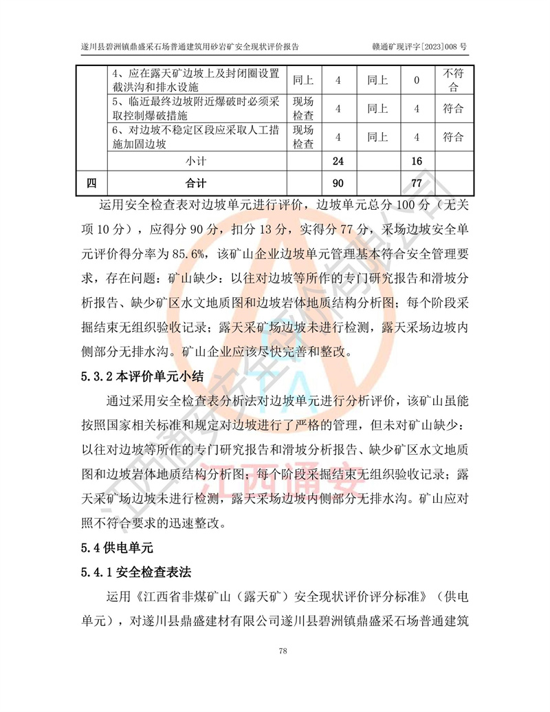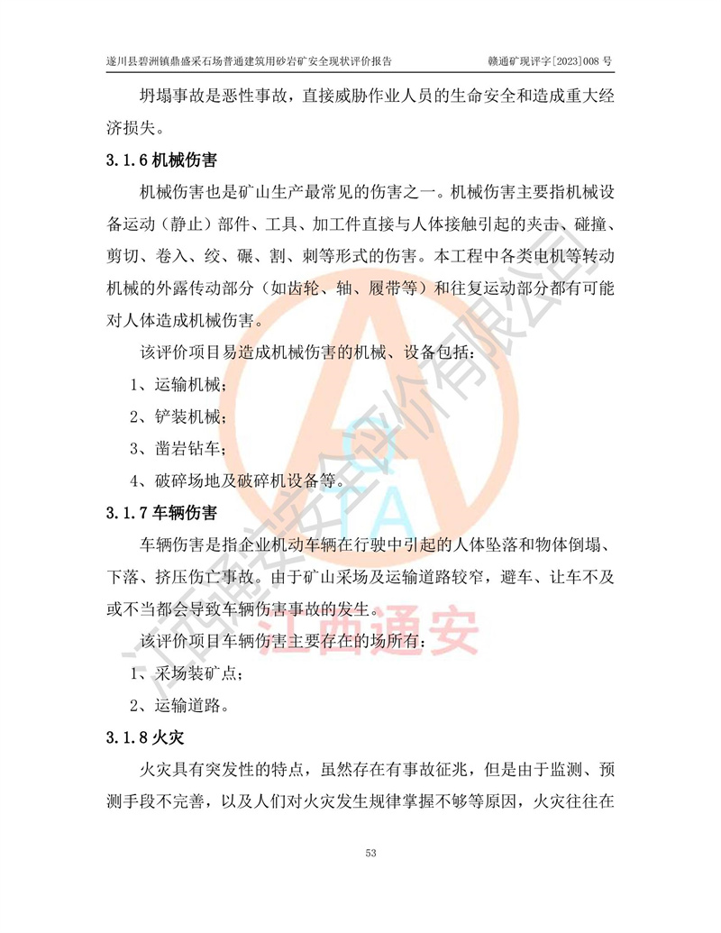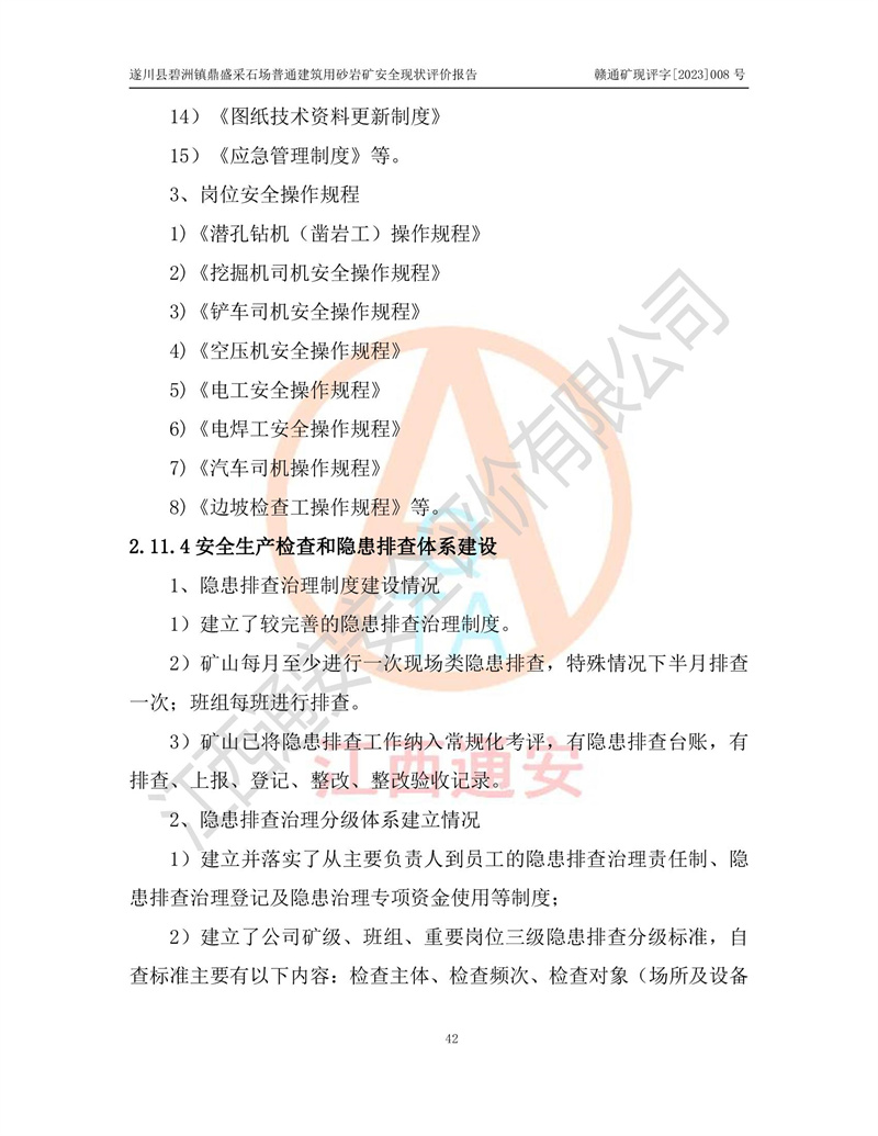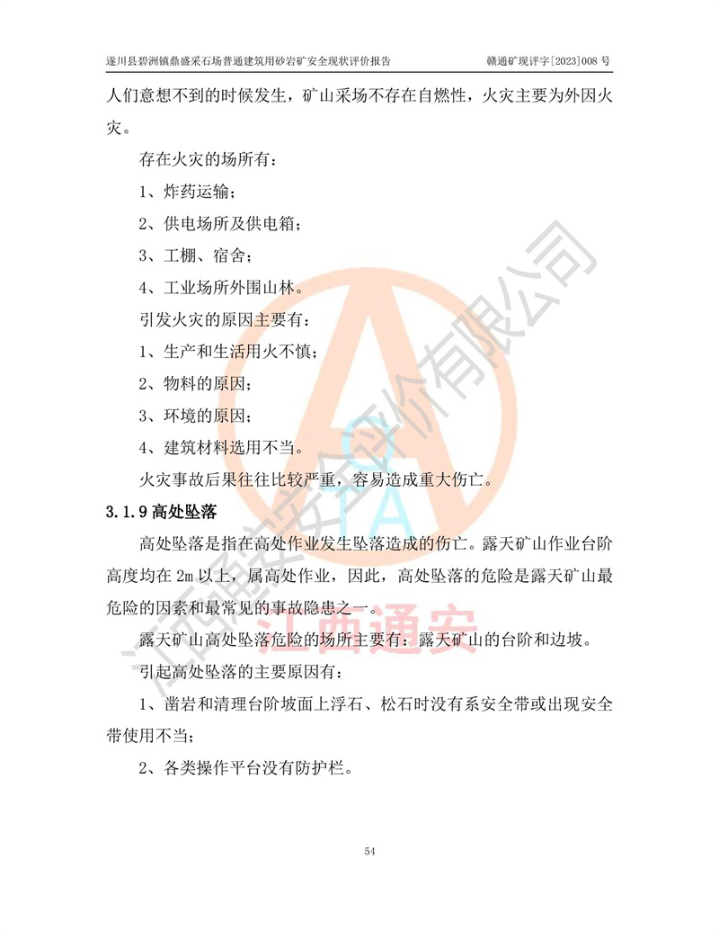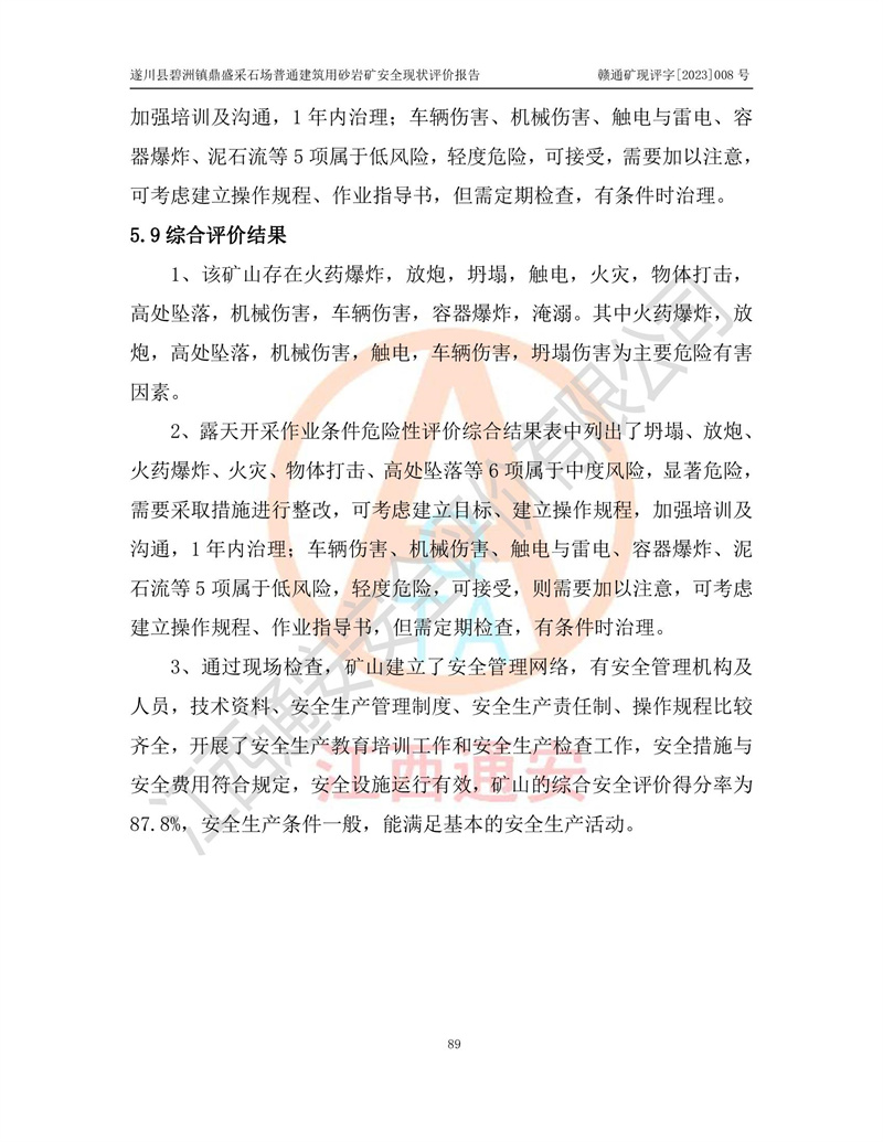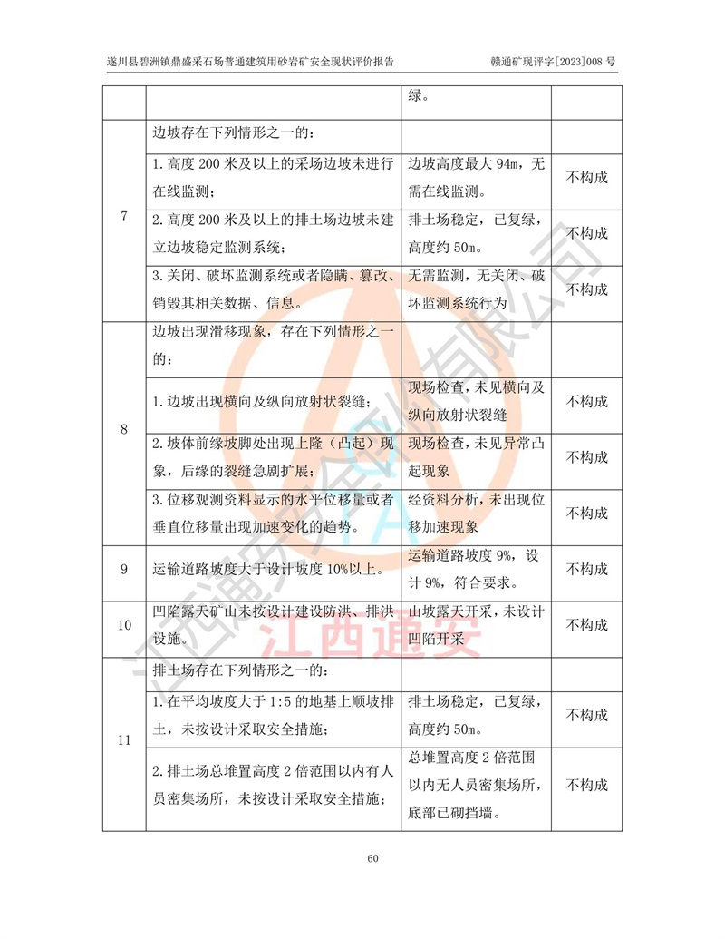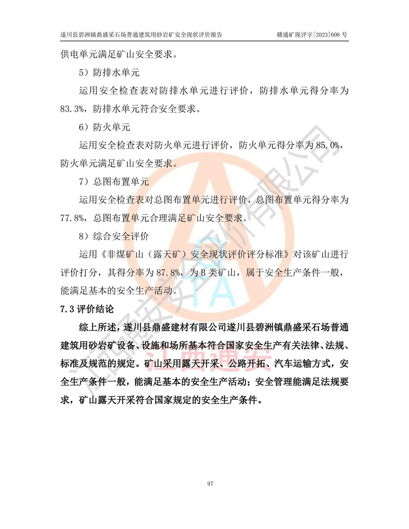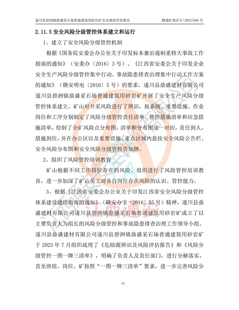 遂川縣鼎盛建材有限公司遂川縣碧洲鎮(zhèn)鼎盛采石場(chǎng)普通建筑用砂巖礦礦,屬有限責(zé)任公司。遂川縣鼎盛建材有限公司遂川縣碧洲鎮(zhèn)鼎盛采石場(chǎng)普通建筑用砂巖礦屬露天開(kāi)采礦山企業(yè),主要產(chǎn)品為建筑砂巖礦開(kāi)采、加工、銷售。礦區(qū)位于遂川縣城區(qū)88o方位直距約17**處。礦區(qū)位置地理坐標(biāo):東經(jīng)114°41′05″~114°41′12″,北緯26°19′49″~26°19′58″。礦區(qū)中心地理坐標(biāo):東經(jīng)114°41′08″,北緯26°19′54″。行政區(qū)劃屬碧洲鎮(zhèn)管轄。碧洲鎮(zhèn)有S554省道通達(dá)遂川縣城,交通方便。 礦山采用開(kāi)拓公路、礦山上山公路從礦區(qū)南側(cè)向北到+185m標(biāo)高后再折返南成“之”字形向采場(chǎng)+260m標(biāo)高修建了一條寬3.5m左右的簡(jiǎn)易上山公路至頂部剝離平臺(tái);礦山經(jīng)過(guò)多年的開(kāi)采,自上而形成了+260m、+245m、+230m、+215m、+200m、+185m、+170m共7個(gè)臺(tái)階,其中+260m、+215m為清掃平臺(tái),平臺(tái)寬度約6m,臺(tái)階**15m,臺(tái)階邊坡角約65°;+245m、+230m、+200m為安全平臺(tái),平臺(tái)寬度約5m,臺(tái)階高約15m,臺(tái)階邊坡角約65°;+185m為鑿巖平臺(tái),平臺(tái)寬度約34m,臺(tái)階高約15m,臺(tái)階邊坡角約65°;+170m鏟裝平臺(tái),鏟裝平臺(tái)寬約30m,臺(tái)階高約15m,臺(tái)階邊坡角約65。 2019年6月5日,礦山取得吉安市應(yīng)急管理局頒發(fā)的安全生產(chǎn)標(biāo)準(zhǔn)化三級(jí)企業(yè)(非煤礦山)證書,證書編號(hào):贛AQB3608KSⅢ201900005,**期至2022年6月?,F(xiàn)礦山正在準(zhǔn)備安全生產(chǎn)標(biāo)準(zhǔn)化資料,準(zhǔn)備申報(bào)申請(qǐng)?jiān)u審。 |