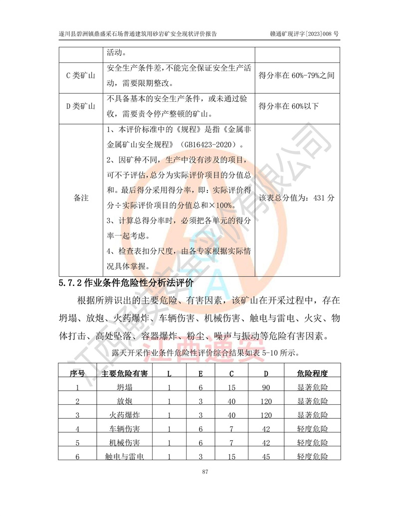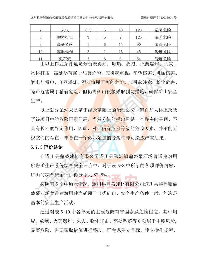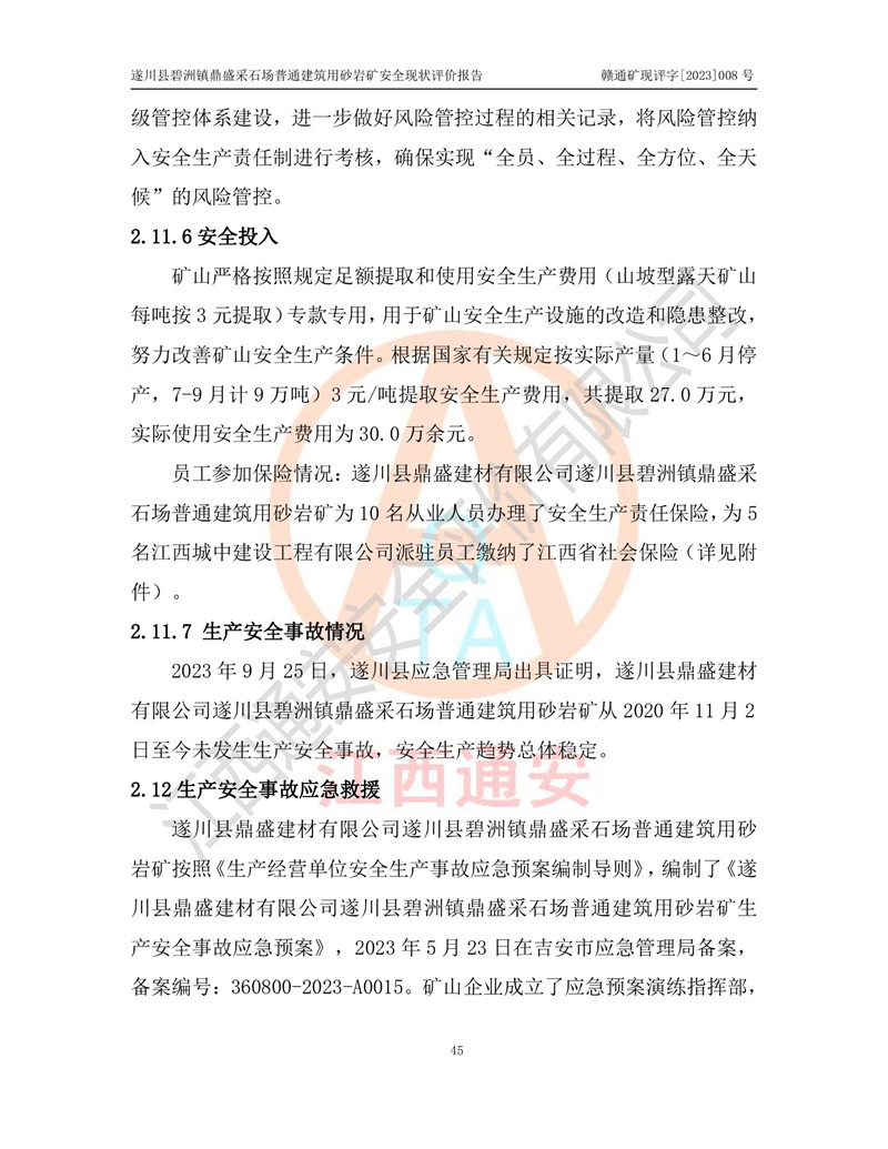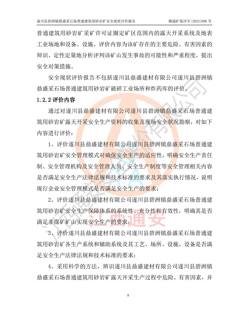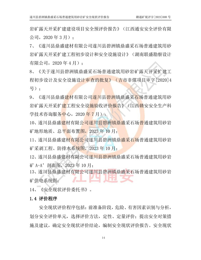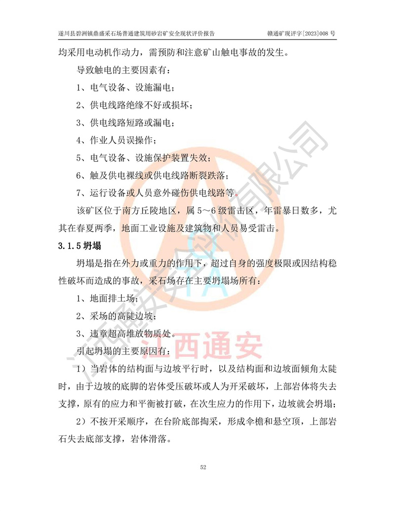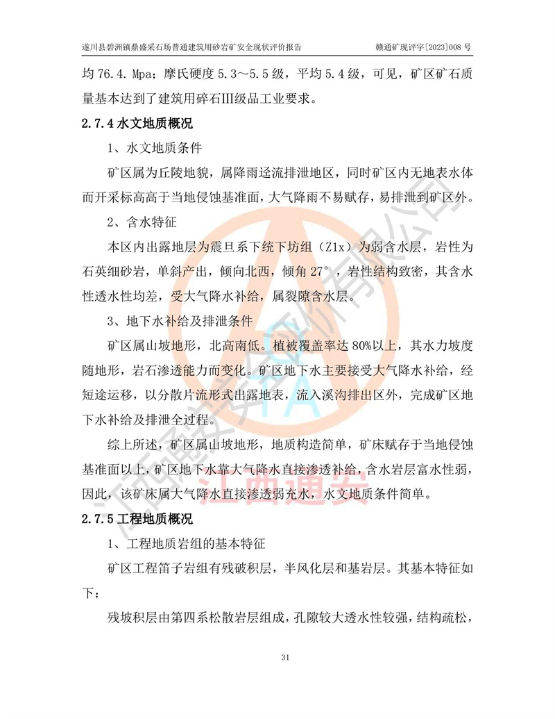 遂川縣鼎盛建材有限公司遂川縣碧洲鎮(zhèn)鼎盛采石場(chǎng)普通建筑用砂巖礦礦,屬有限責(zé)任公司。遂川縣鼎盛建材有限公司遂川縣碧洲鎮(zhèn)鼎盛采石場(chǎng)普通建筑用砂巖礦屬露天開(kāi)采礦山企業(yè),主要產(chǎn)品為建筑砂巖礦開(kāi)采、加工、銷售。礦區(qū)位于遂川縣城區(qū)88o方位直距約17**處。礦區(qū)位置地理坐標(biāo):東經(jīng)114°41′05″~114°41′12″,北緯26°19′49″~26°19′58″。礦區(qū)中心地理坐標(biāo):東經(jīng)114°41′08″,北緯26°19′54″。行政區(qū)劃屬碧洲鎮(zhèn)管轄。碧洲鎮(zhèn)有S554省道通達(dá)遂川縣城,交通方便。 礦山采用開(kāi)拓公路、礦山上山公路從礦區(qū)南側(cè)向北到+185m標(biāo)高后再折返南成“之”字形向采場(chǎng)+260m標(biāo)高修建了一條寬3.5m左右的簡(jiǎn)易上山公路至頂部剝離平臺(tái);礦山經(jīng)過(guò)多年的開(kāi)采,自上而形成了+260m、+245m、+230m、+215m、+200m、+185m、+170m共7個(gè)臺(tái)階,其中+260m、+215m為清掃平臺(tái),平臺(tái)寬度約6m,臺(tái)階**15m,臺(tái)階邊坡角約65°;+245m、+230m、+200m為安全平臺(tái),平臺(tái)寬度約5m,臺(tái)階高約15m,臺(tái)階邊坡角約65°;+185m為鑿巖平臺(tái),平臺(tái)寬度約34m,臺(tái)階高約15m,臺(tái)階邊坡角約65°;+170m鏟裝平臺(tái),鏟裝平臺(tái)寬約30m,臺(tái)階高約15m,臺(tái)階邊坡角約65。 2019年6月5日,礦山取得吉安市應(yīng)急管理局頒發(fā)的安全生產(chǎn)標(biāo)準(zhǔn)化三級(jí)企業(yè)(非煤礦山)證書,證書編號(hào):贛AQB3608KSⅢ201900005,**期至2022年6月?,F(xiàn)礦山正在準(zhǔn)備安全生產(chǎn)標(biāo)準(zhǔn)化資料,準(zhǔn)備申報(bào)申請(qǐng)?jiān)u審。 |