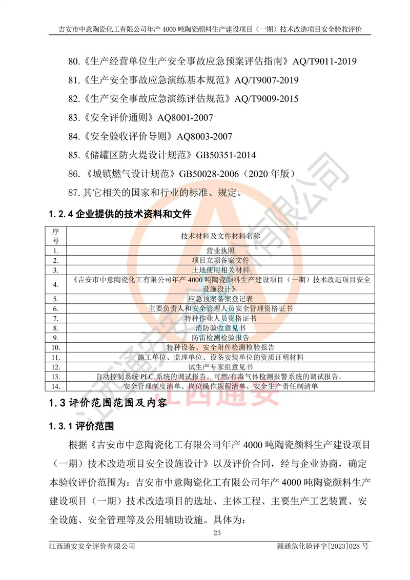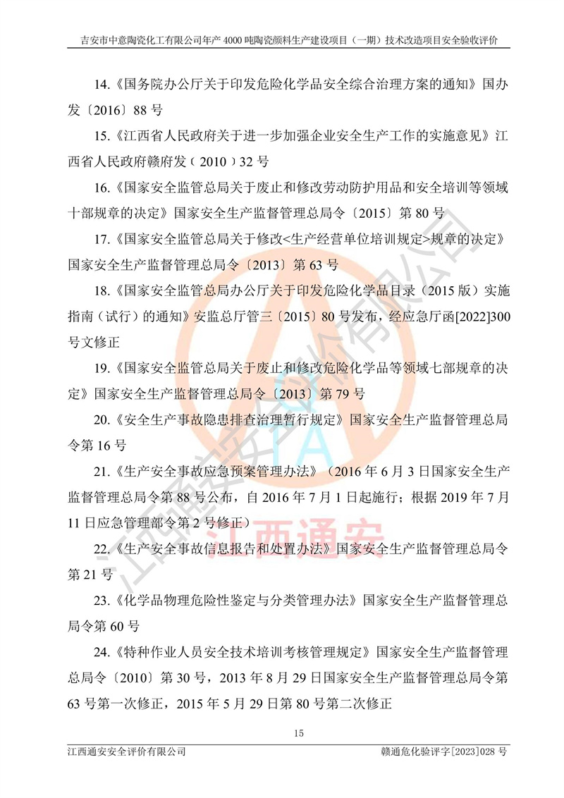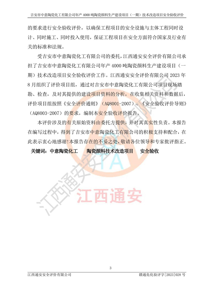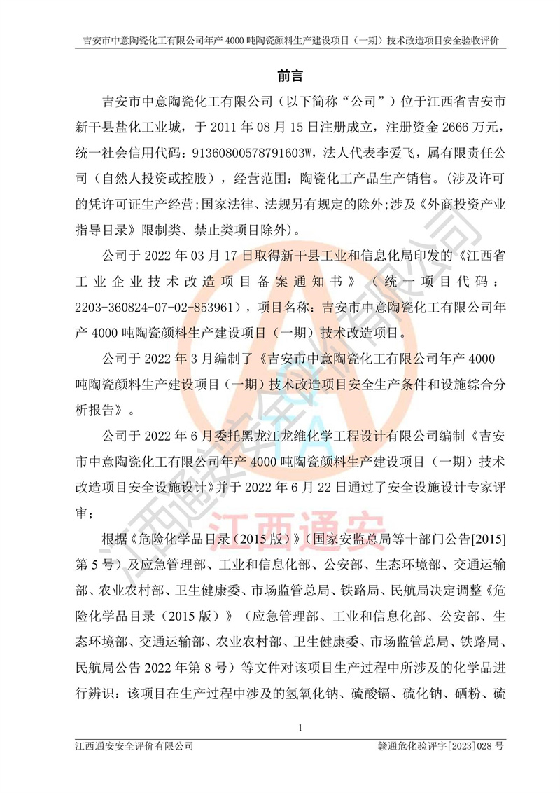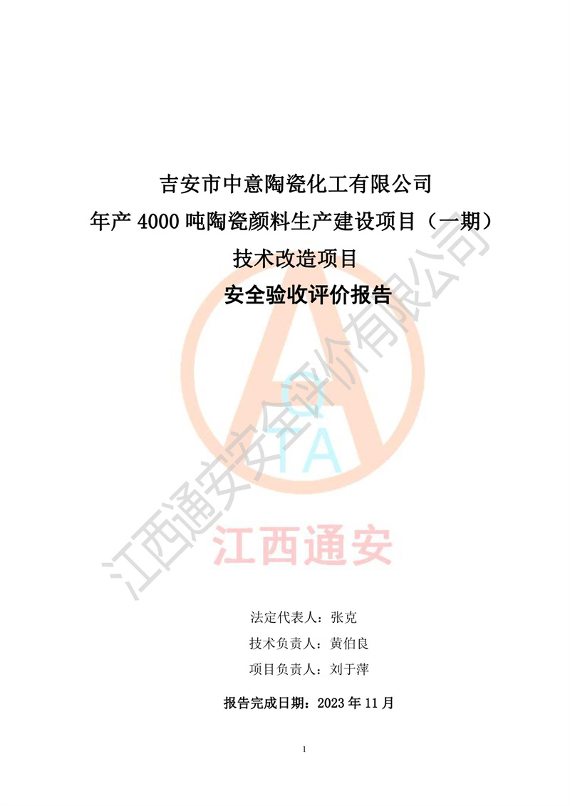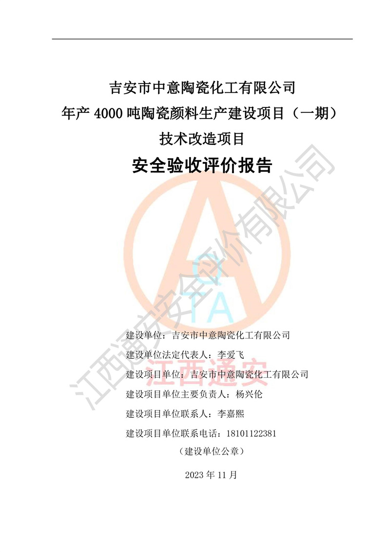 評(píng)價(jià)報(bào)告名稱 | 吉安市中意陶瓷化工有限公司安全驗(yàn)收評(píng)價(jià)報(bào)告 | |||