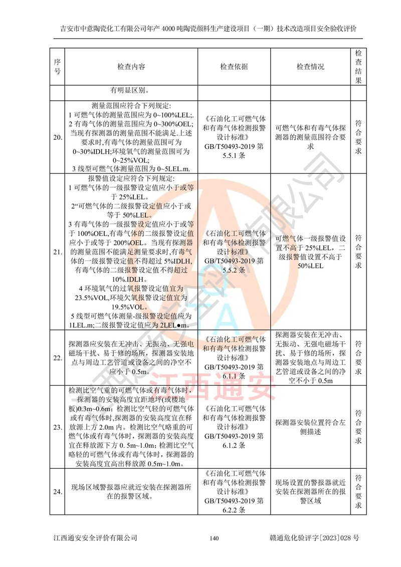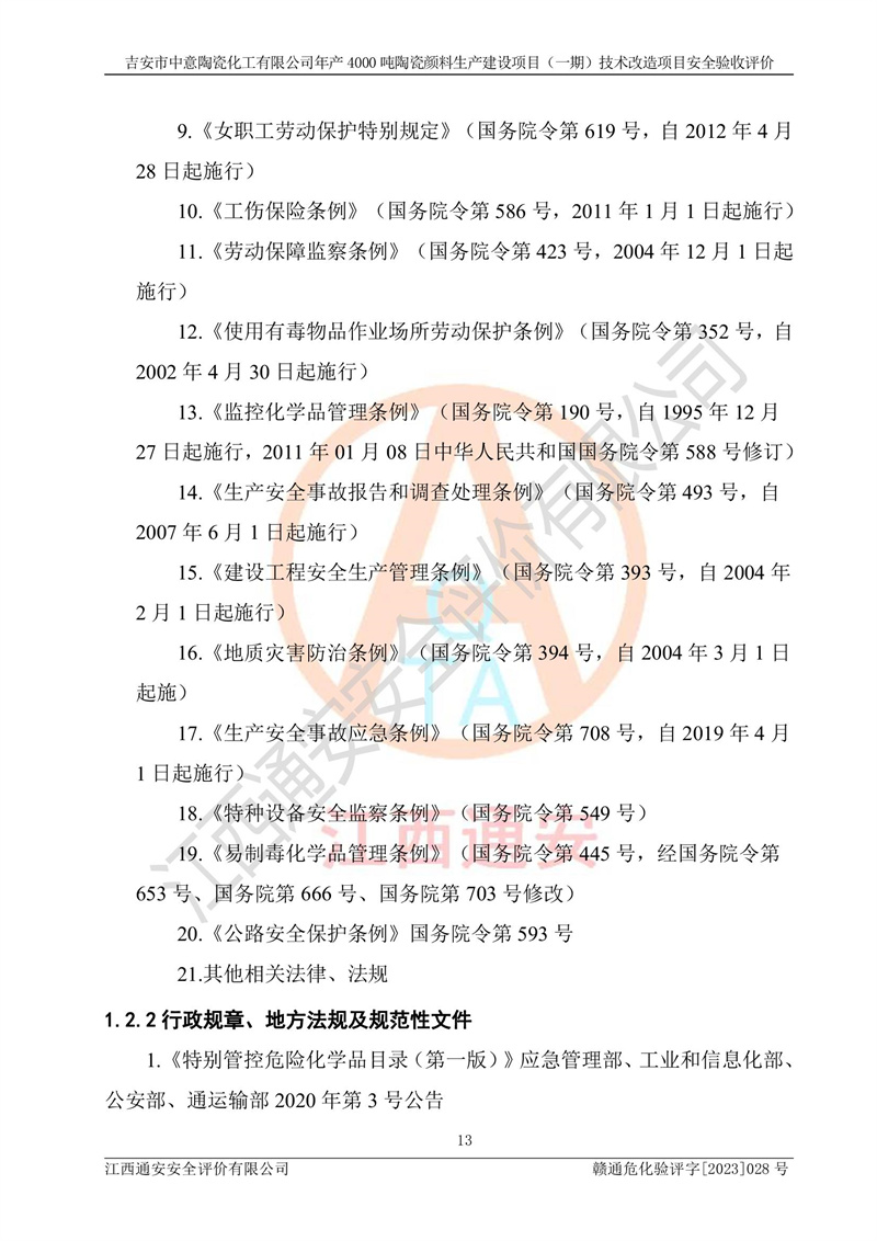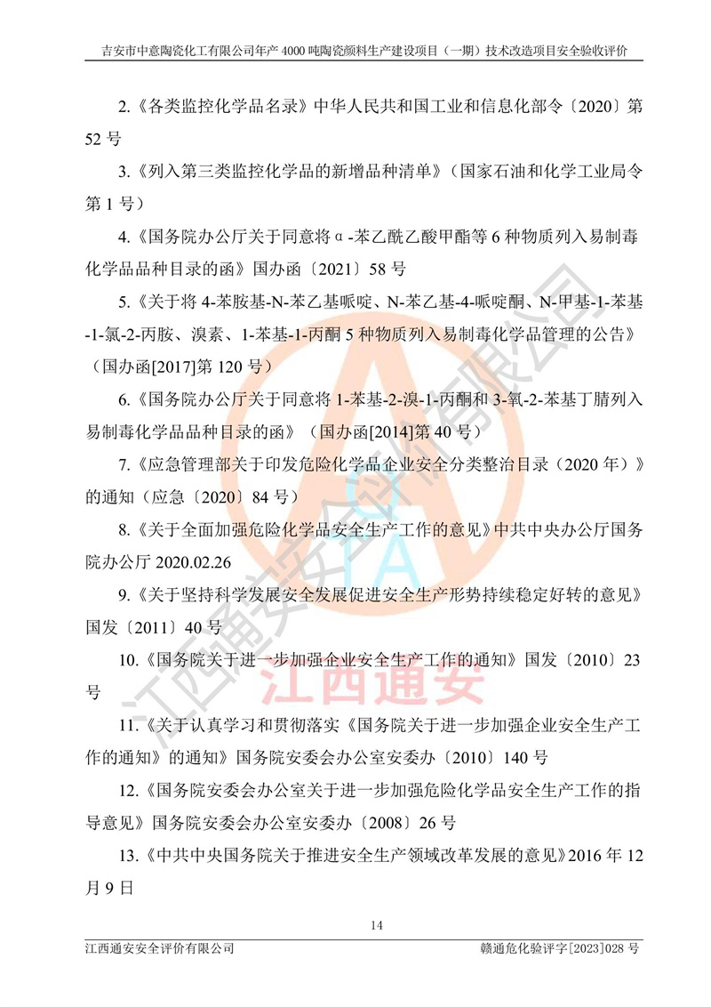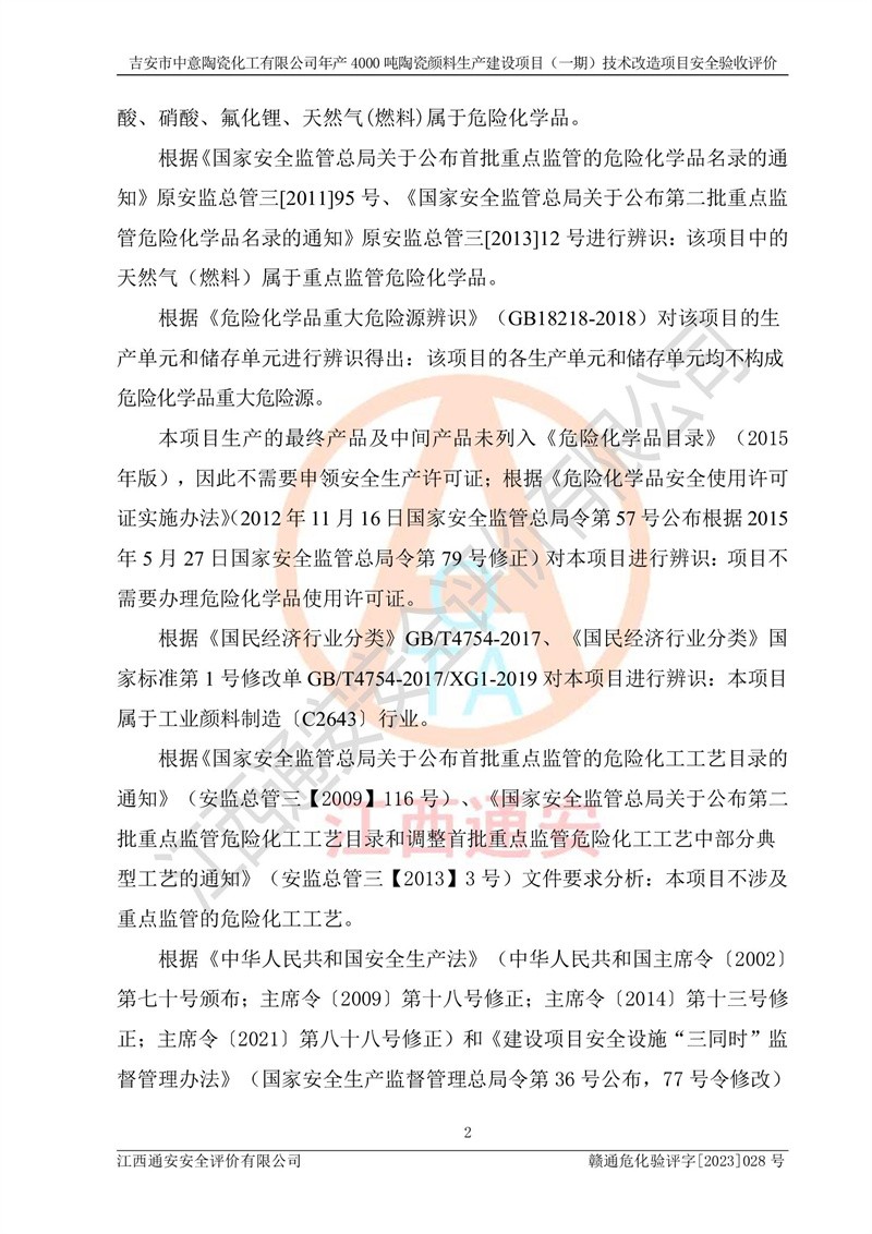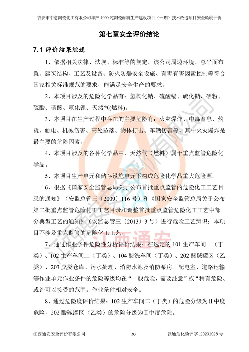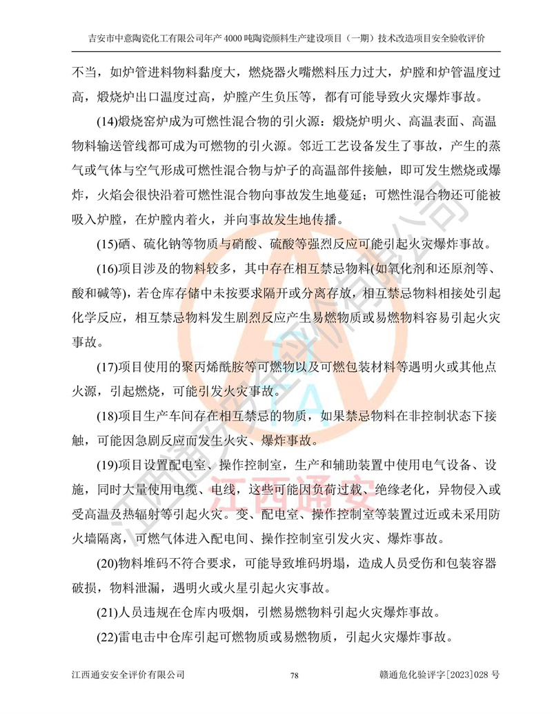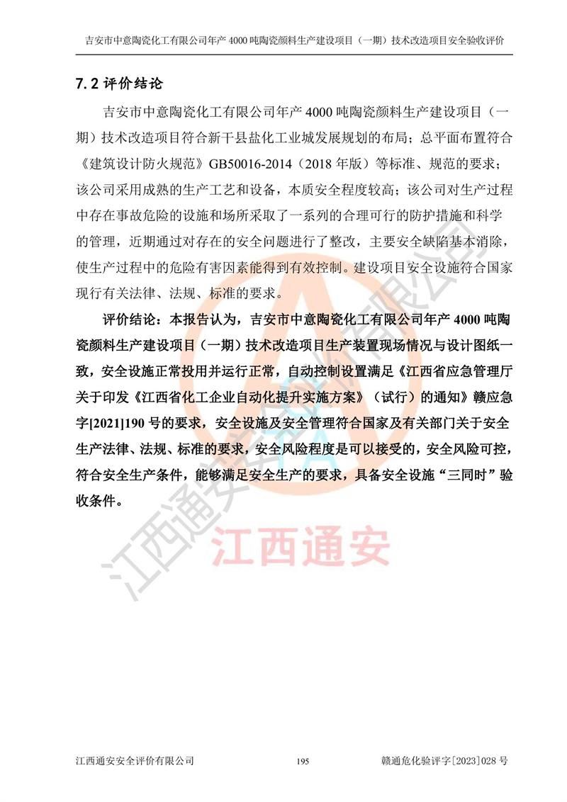 評(píng)價(jià)報(bào)告名稱 | 吉安市中意陶瓷化工有限公司安全驗(yàn)收評(píng)價(jià)報(bào)告 | |||