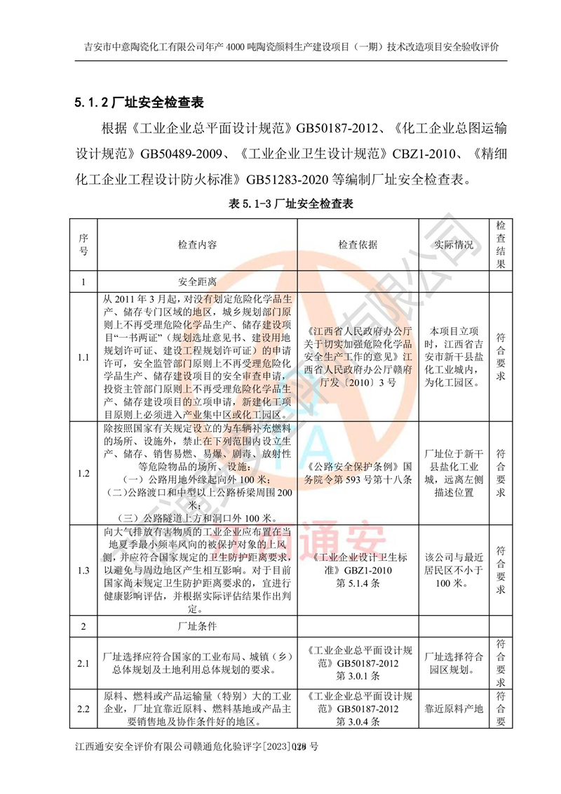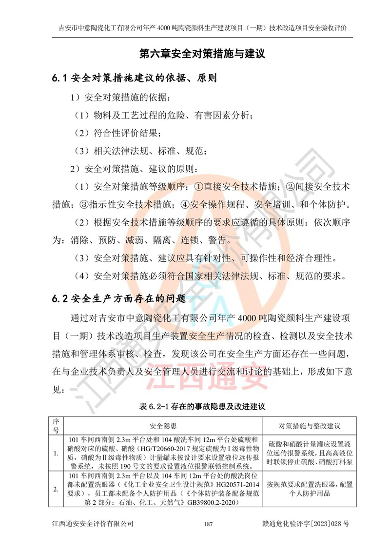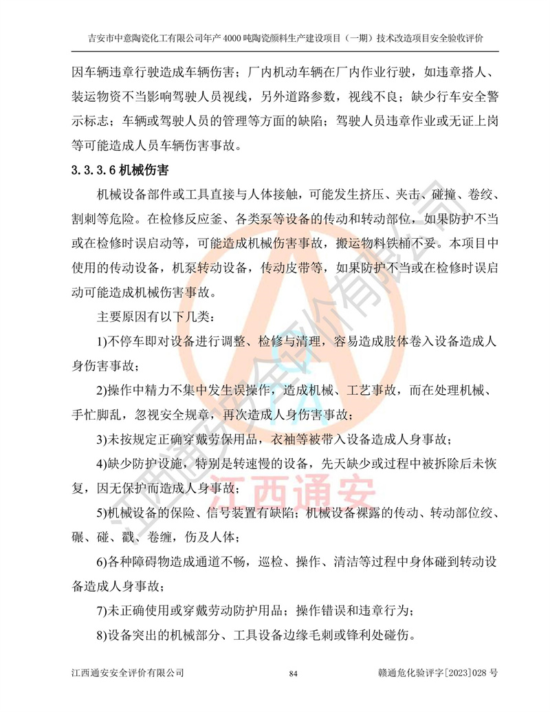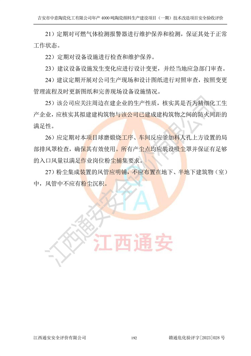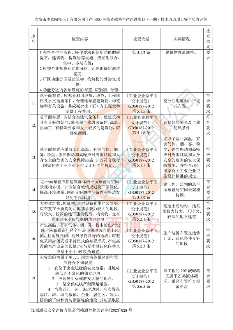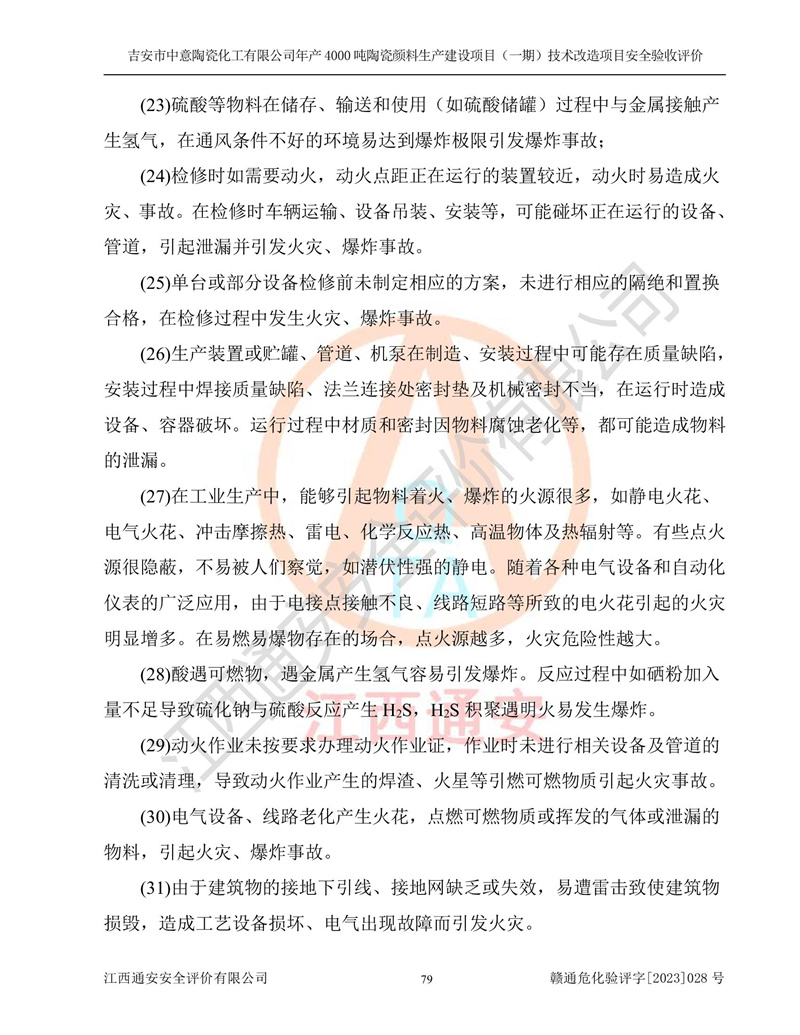 評(píng)價(jià)報(bào)告名稱 | 吉安市中意陶瓷化工有限公司安全驗(yàn)收評(píng)價(jià)報(bào)告 | |||