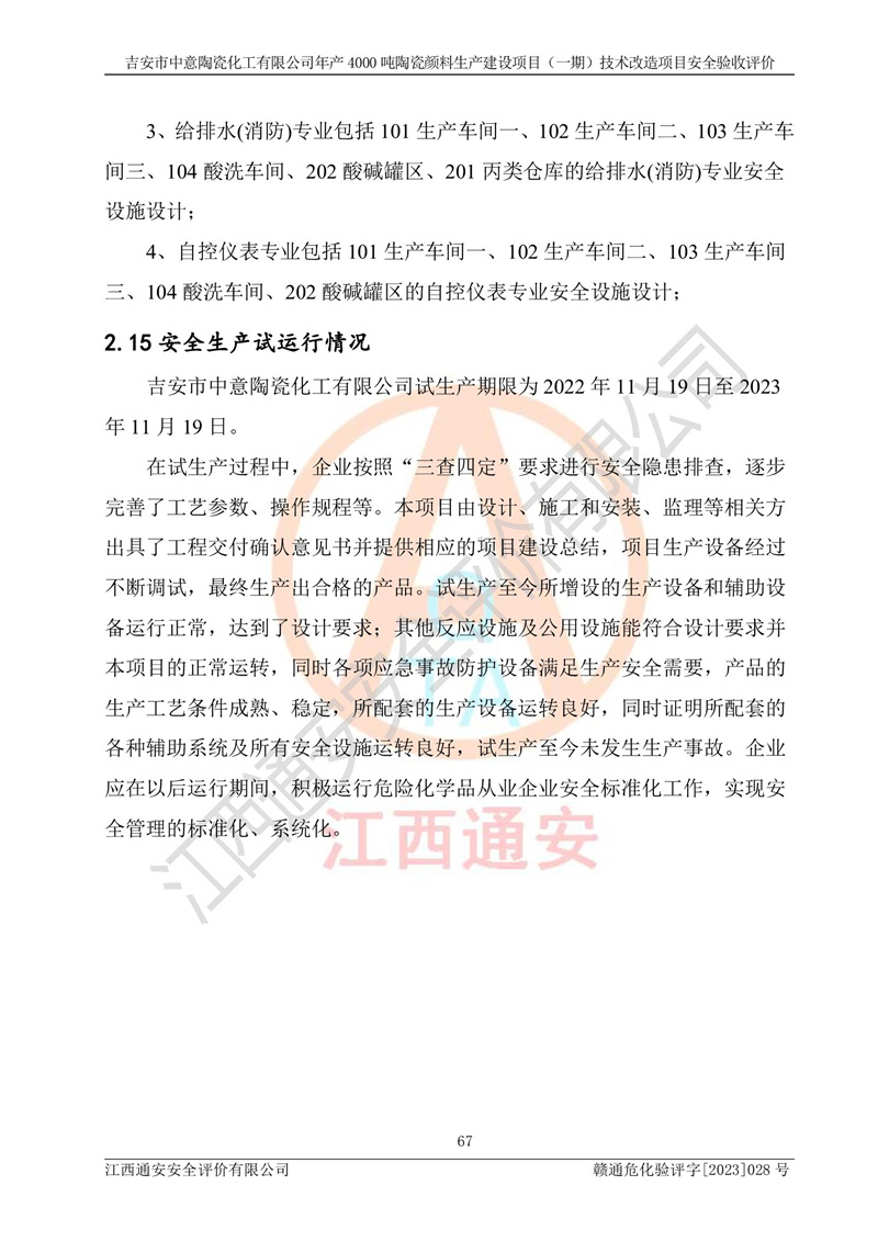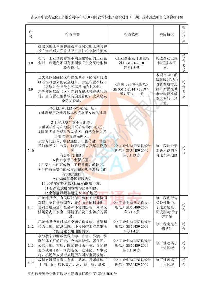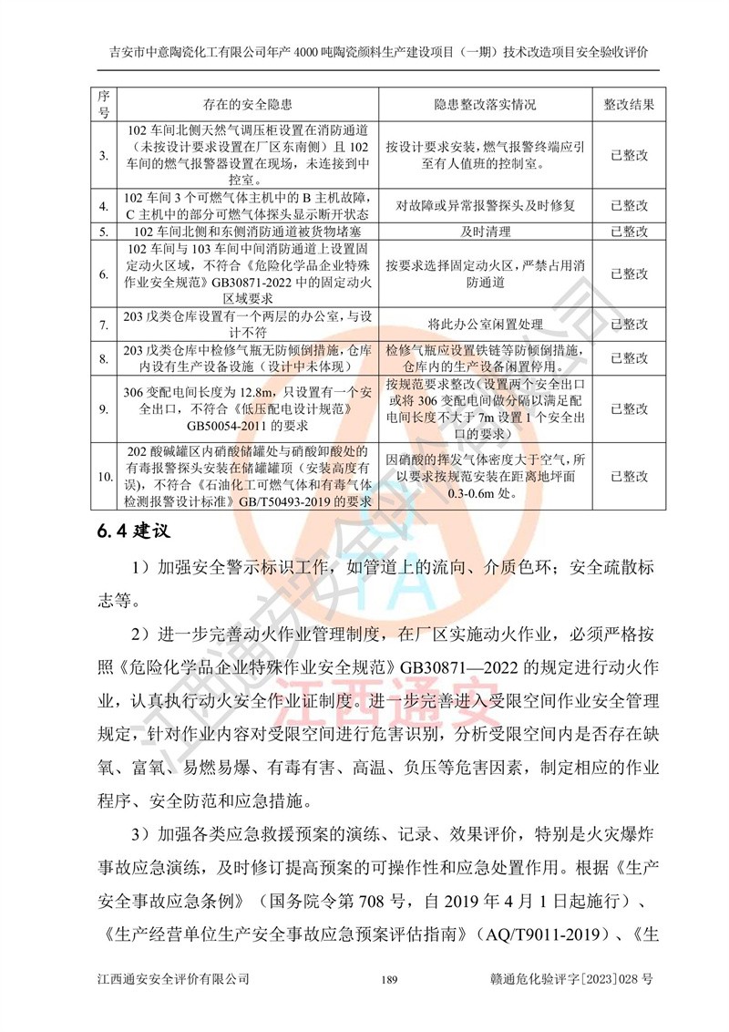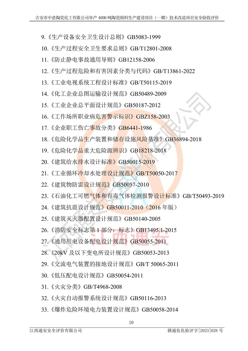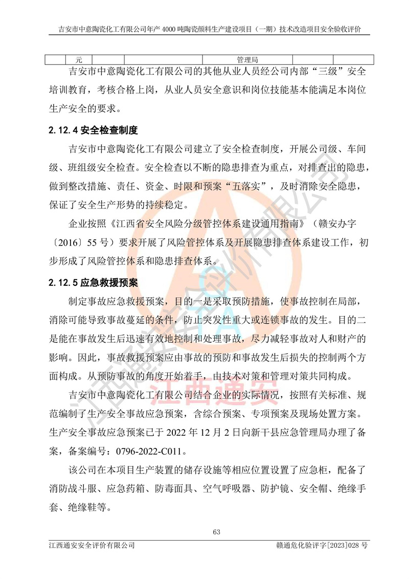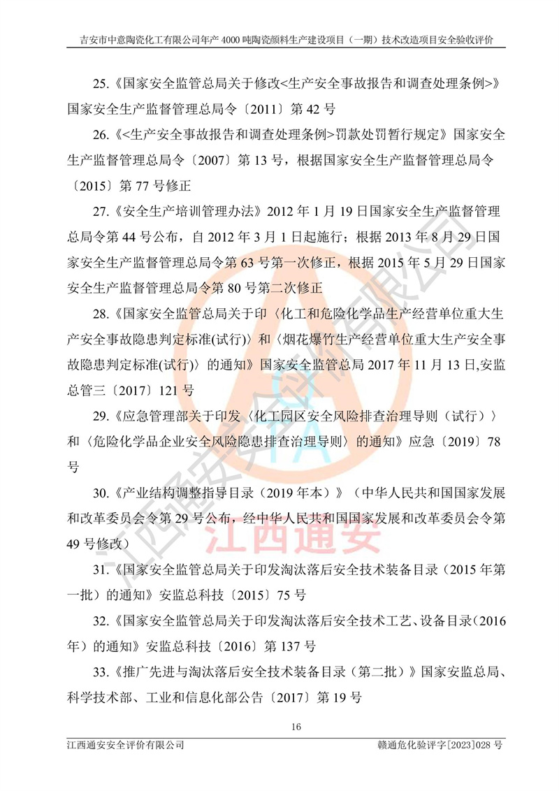 評(píng)價(jià)報(bào)告名稱 | 吉安市中意陶瓷化工有限公司安全驗(yàn)收評(píng)價(jià)報(bào)告 | |||