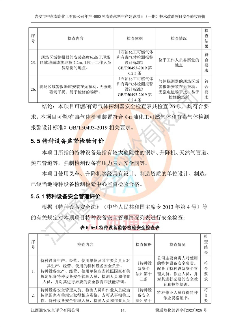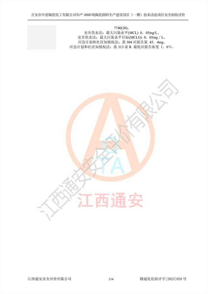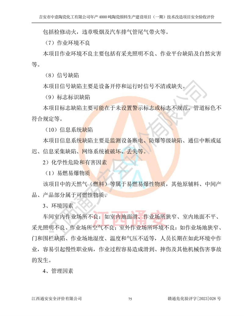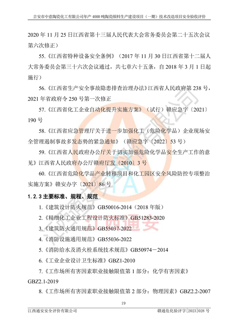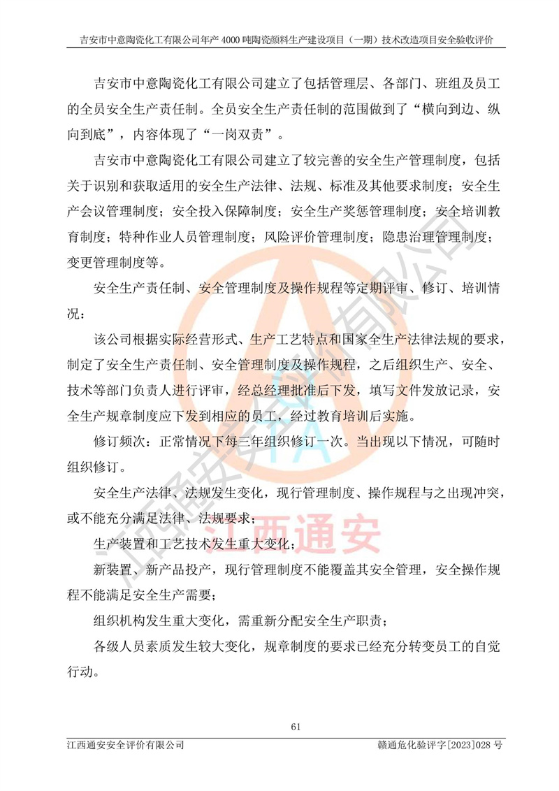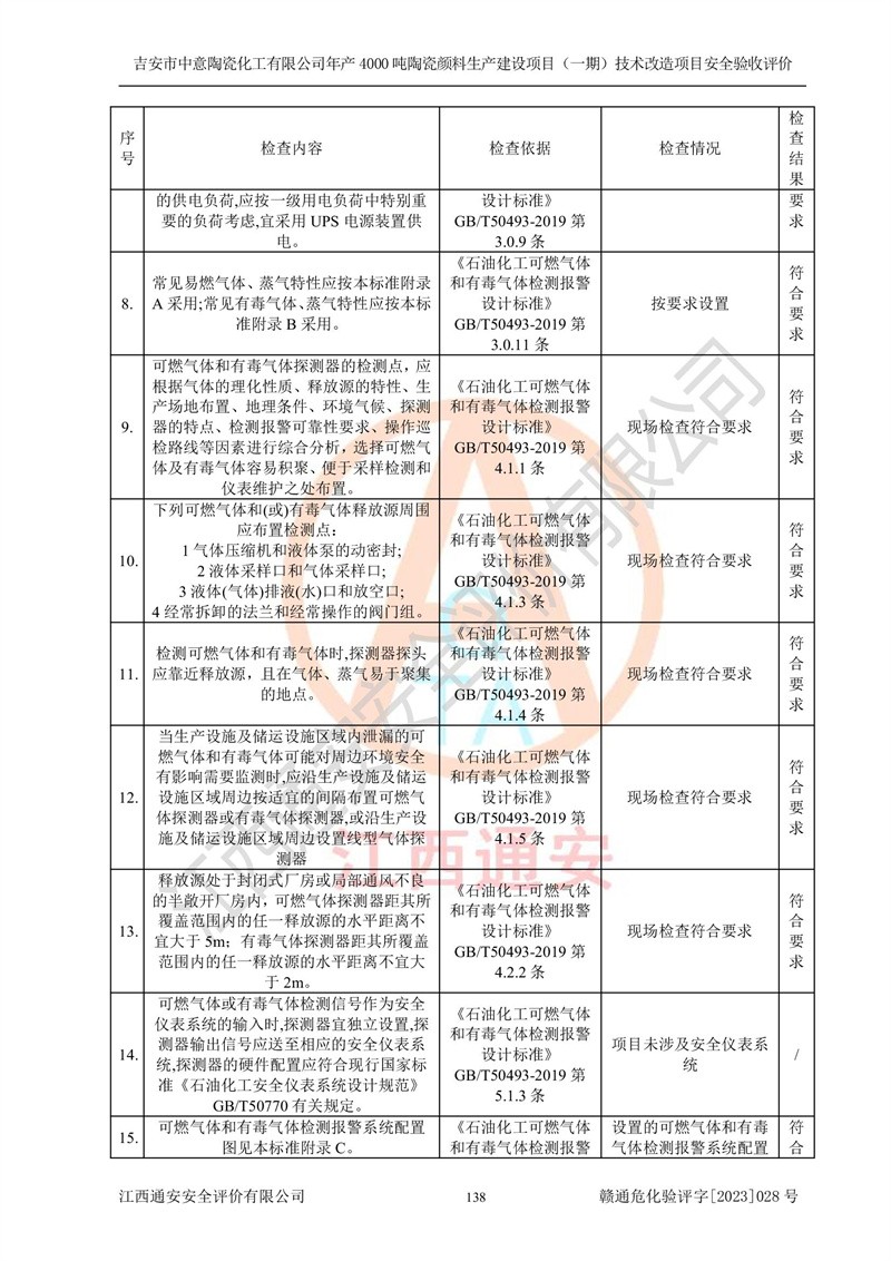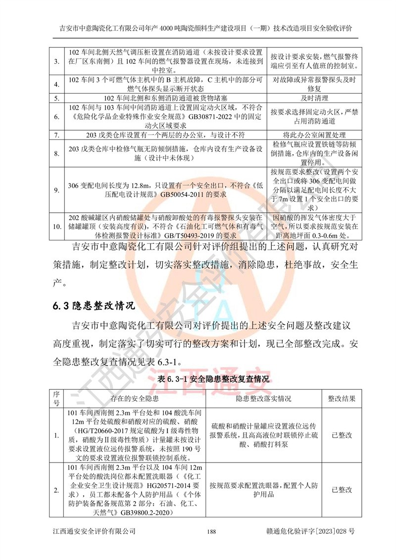評(píng)價(jià)報(bào)告名稱 | 吉安市中意陶瓷化工有限公司安全驗(yàn)收評(píng)價(jià)報(bào)告 | |||