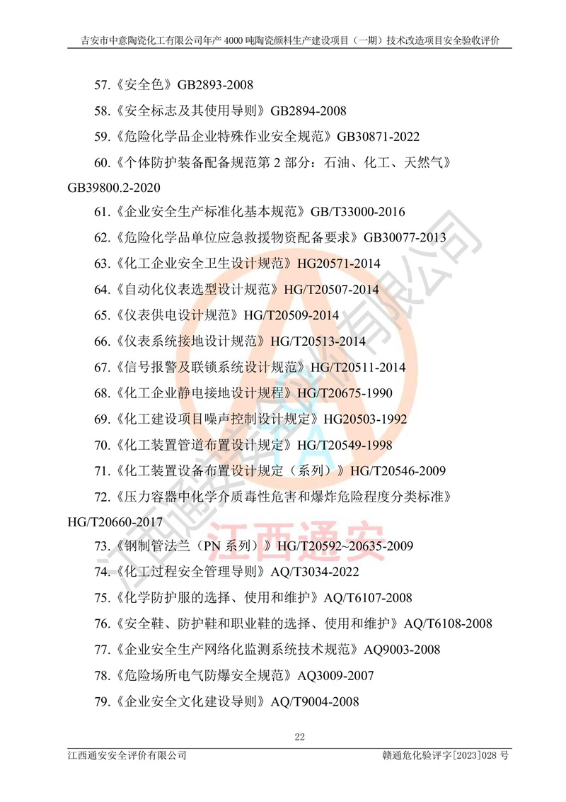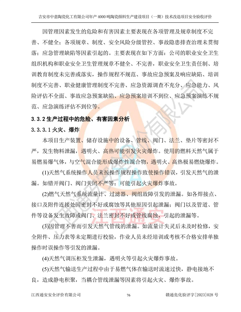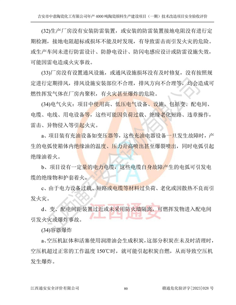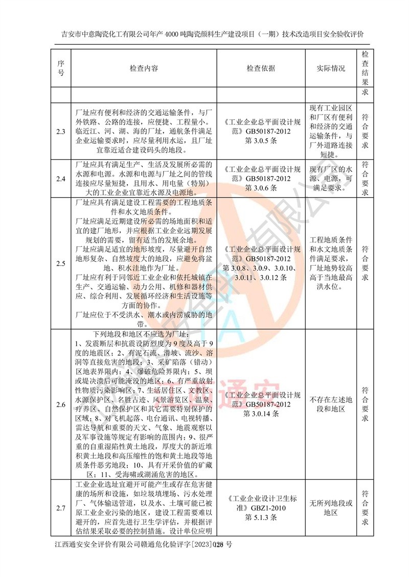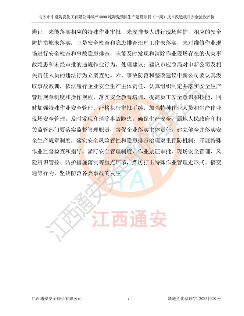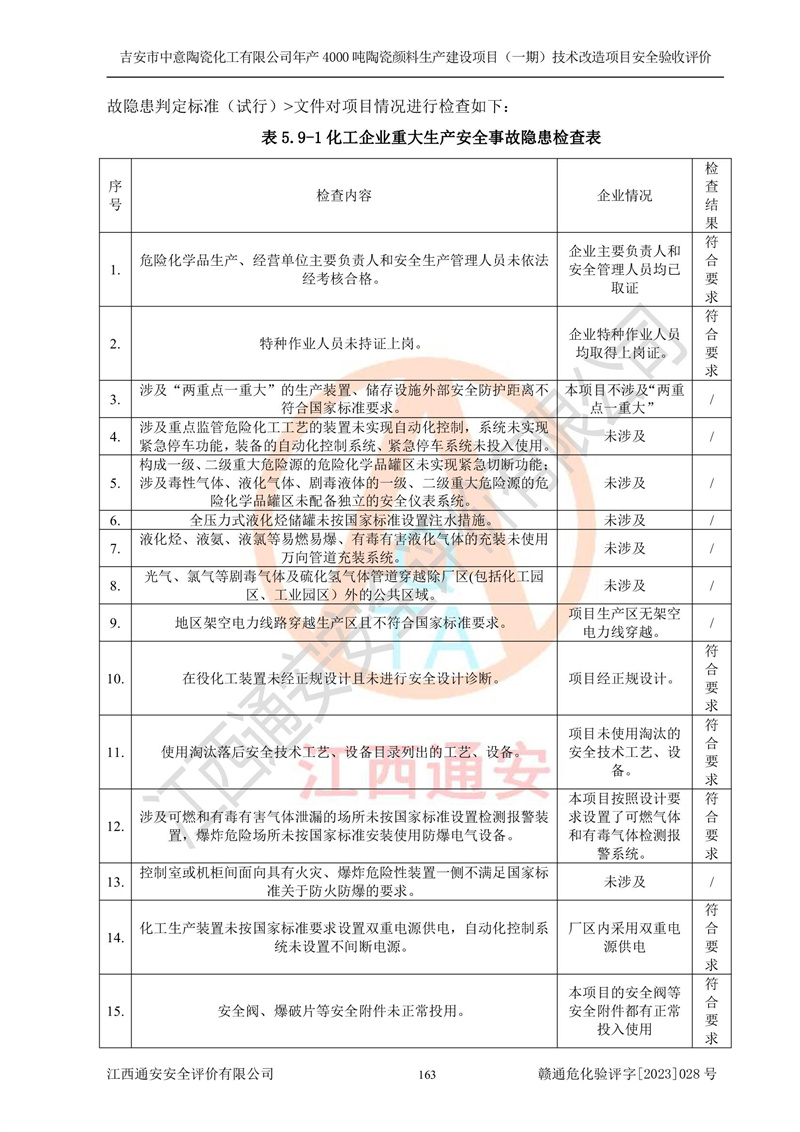 評(píng)價(jià)報(bào)告名稱 | 吉安市中意陶瓷化工有限公司安全驗(yàn)收評(píng)價(jià)報(bào)告 | |||