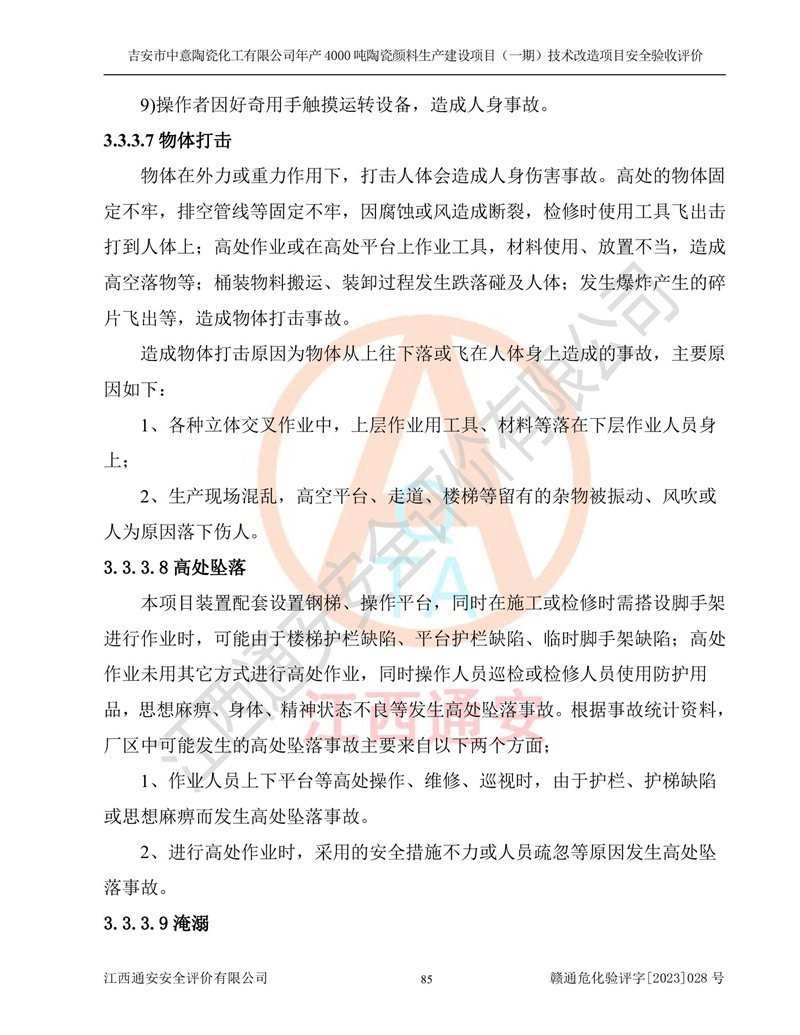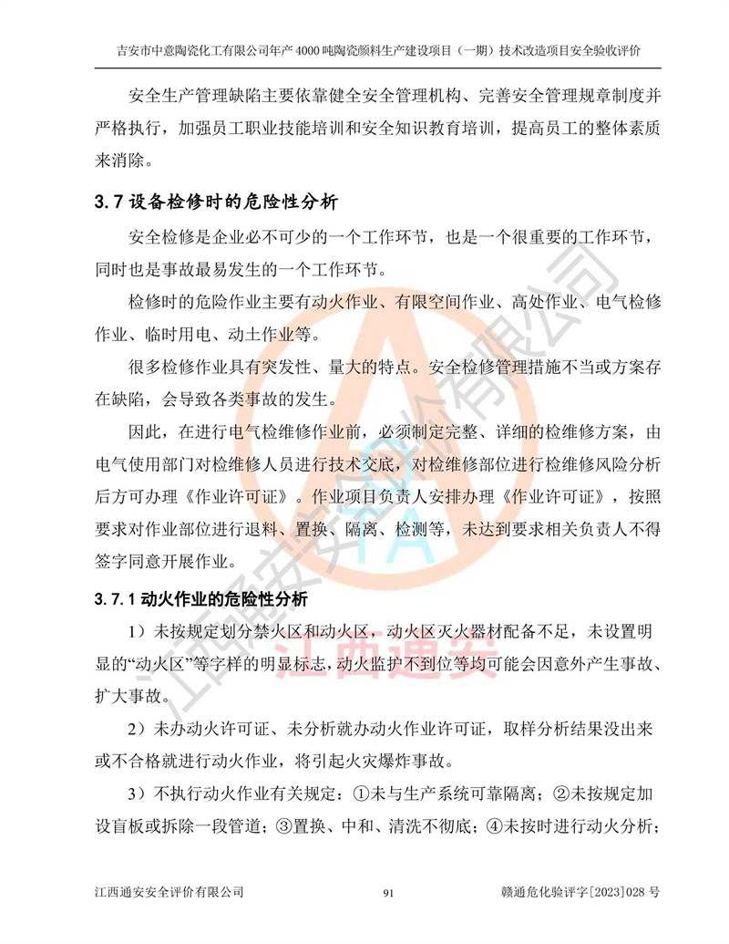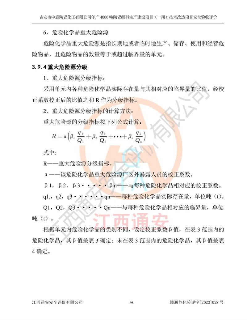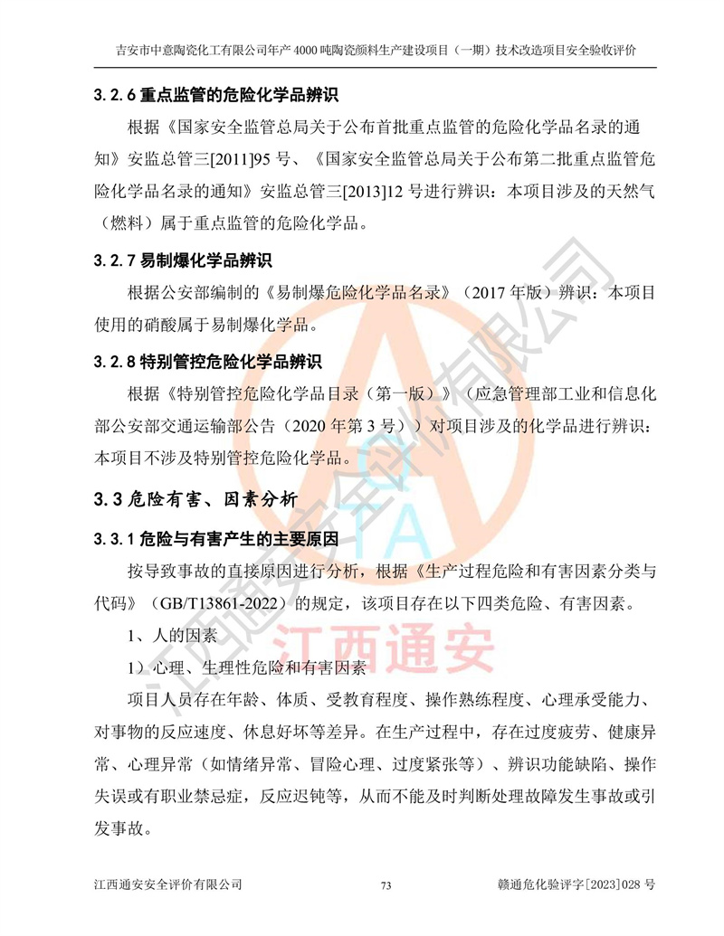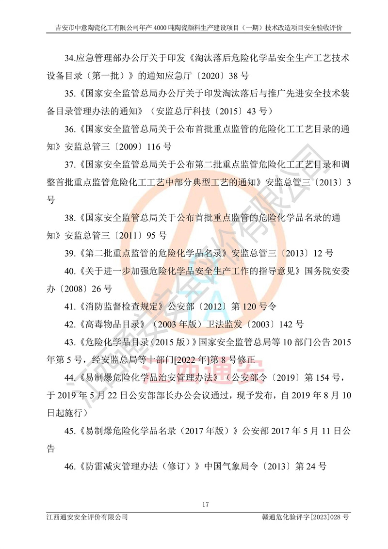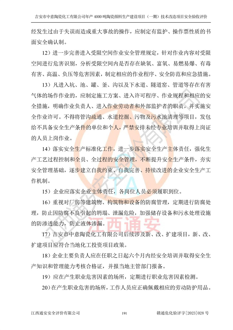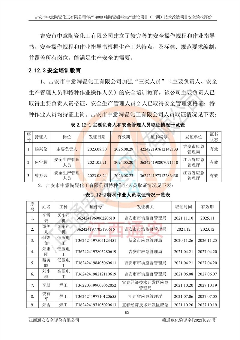 評(píng)價(jià)報(bào)告名稱 | 吉安市中意陶瓷化工有限公司安全驗(yàn)收評(píng)價(jià)報(bào)告 | |||