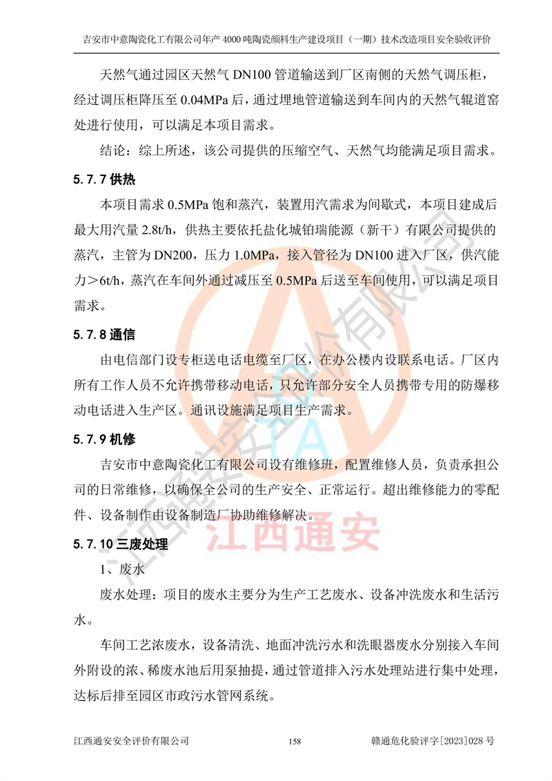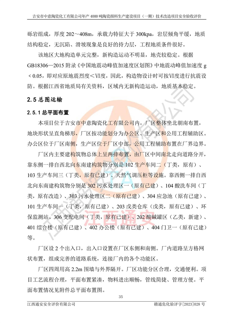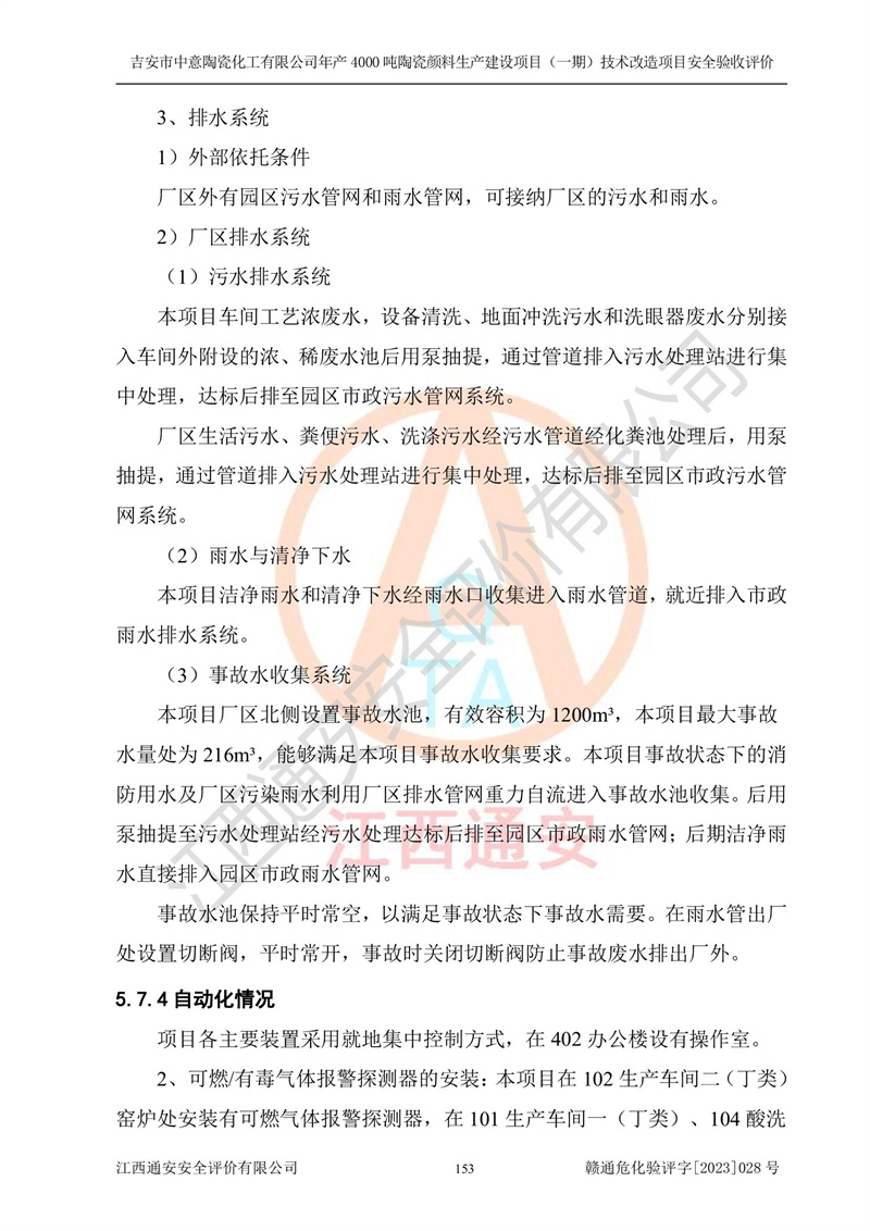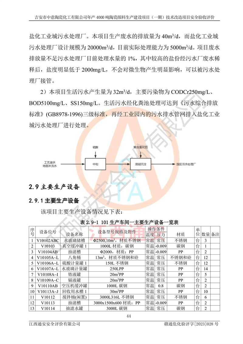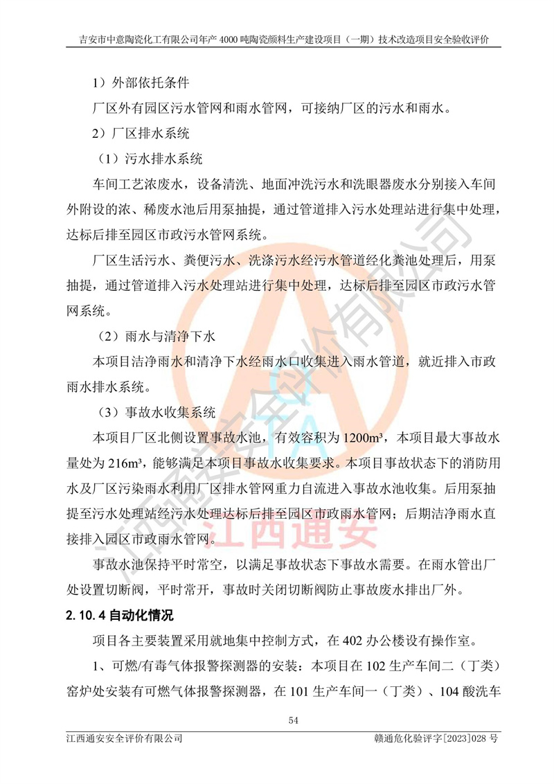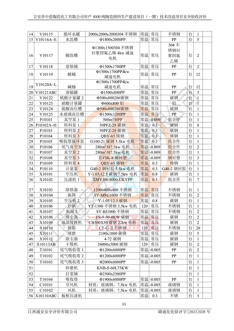項(xiàng)目簡(jiǎn)介 | 吉安市中意陶瓷化工有限公司(以下簡(jiǎn)稱“公司”)位于江西省吉安市新干縣鹽化工業(yè)城,于2011年08月15日注冊(cè)成立,注冊(cè)資金2666萬(wàn)元,統(tǒng)一社會(huì)信用代碼:91360800578791603W,法人**李愛(ài)飛,屬有限責(zé)任公司(自然人投資或控股),經(jīng)營(yíng)范圍:陶瓷化工產(chǎn)品生產(chǎn)銷售。(涉及許可的憑許可證生產(chǎn)經(jīng)營(yíng);**法律、法規(guī)另有規(guī)定的除外;涉及《外商投資產(chǎn)業(yè)指導(dǎo)目錄》限制類、禁止類項(xiàng)目除外)。 公司于2022年03月17日取得新干縣工業(yè)和信息化局印發(fā)的《江西省工業(yè)企業(yè)技術(shù)改造項(xiàng)目備案通知書》(統(tǒng)一項(xiàng)目代碼:2203-360824-07-02-853961),項(xiàng)目名稱:吉安市中意陶瓷化工有限公司年產(chǎn)4000噸陶瓷顏料生產(chǎn)建設(shè)項(xiàng)目(一期)技術(shù)改造項(xiàng)目。 公司于2022年3月編制了《吉安市中意陶瓷化工有限公司年產(chǎn)4000噸陶瓷顏料生產(chǎn)建設(shè)項(xiàng)目(一期)技術(shù)改造項(xiàng)目安全生產(chǎn)條件和設(shè)施綜合分析報(bào)告》。 公司于2022年6月委托黑龍江龍維化學(xué)工程設(shè)計(jì)有限公司編制《吉安市中意陶瓷化工有限公司年產(chǎn)4000噸陶瓷顏料生產(chǎn)建設(shè)項(xiàng)目(一期)技術(shù)改造項(xiàng)目安全設(shè)施設(shè)計(jì)》并于2022年6月22日通過(guò)了安全設(shè)施設(shè)計(jì)專家評(píng)審; | |||