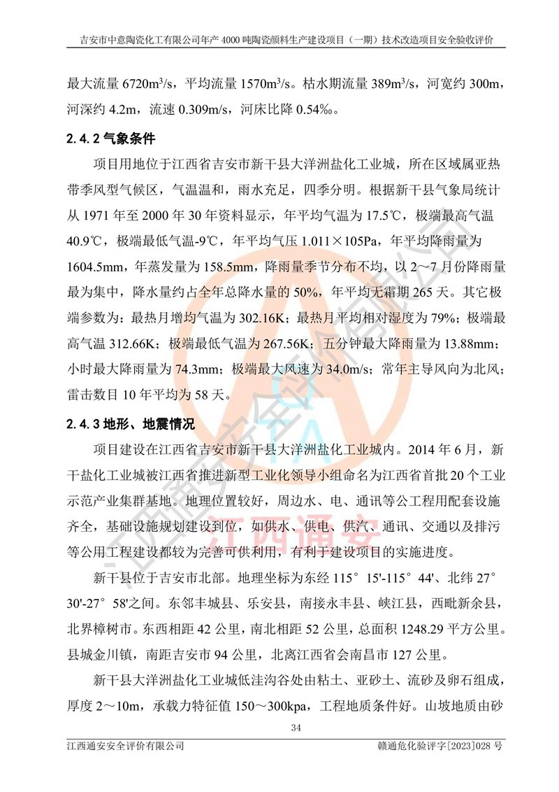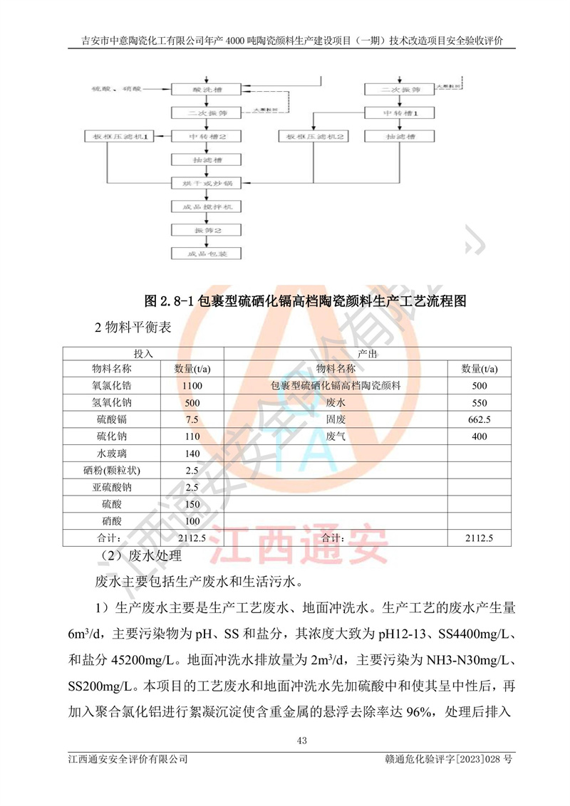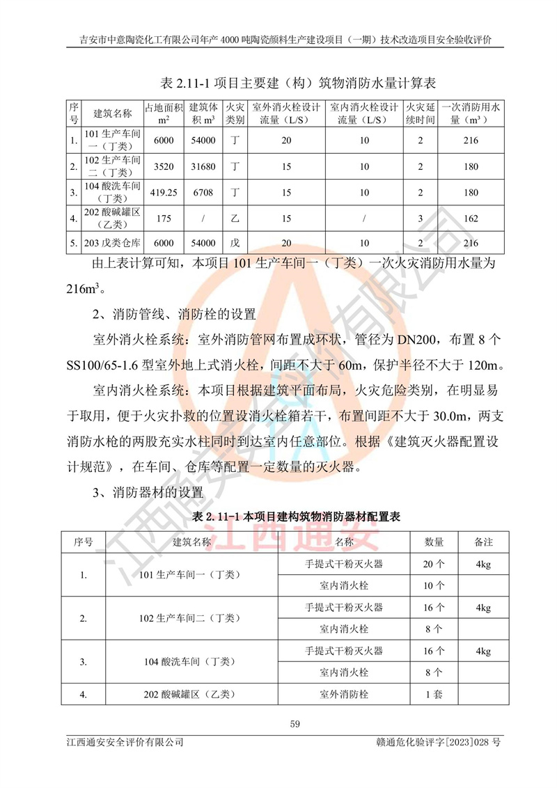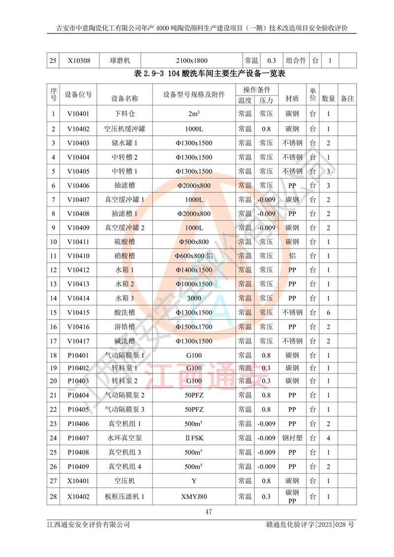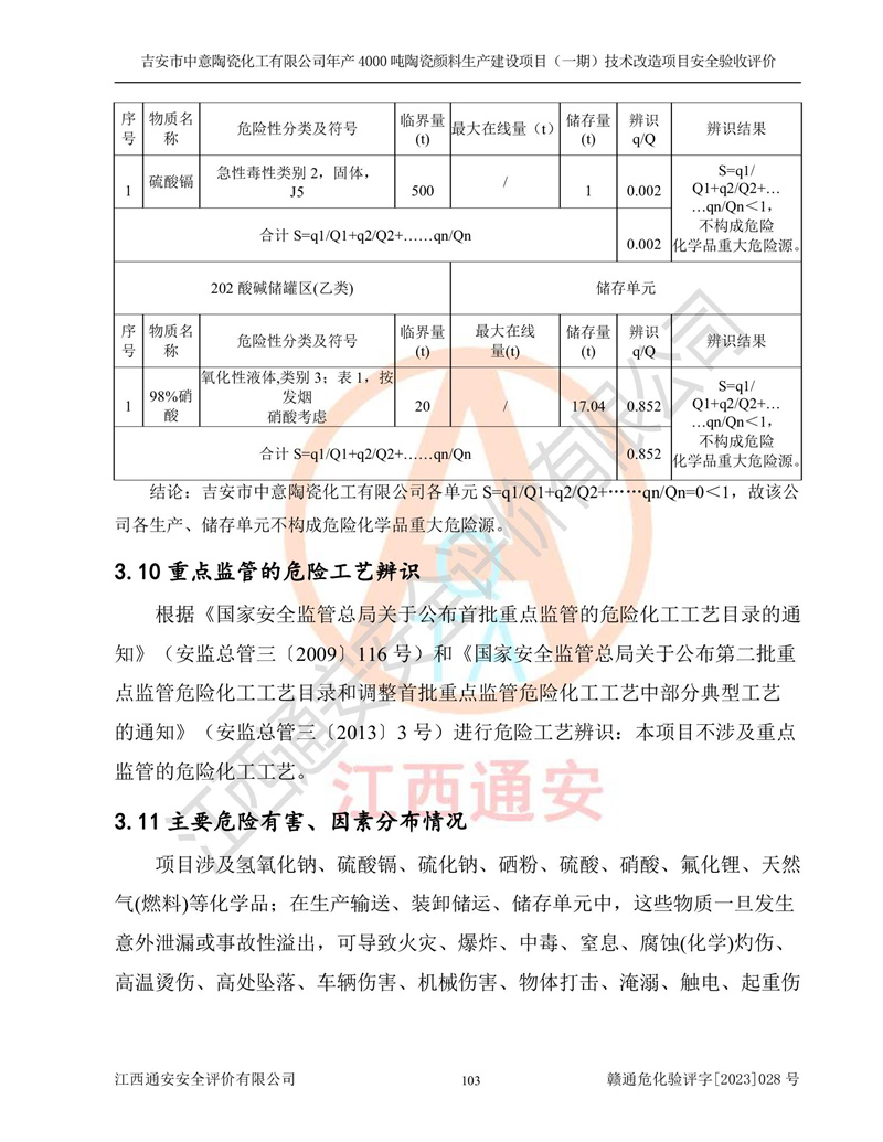 項(xiàng)目簡(jiǎn)介 | 吉安市中意陶瓷化工有限公司(以下簡(jiǎn)稱“公司”)位于江西省吉安市新干縣鹽化工業(yè)城,于2011年08月15日注冊(cè)成立,注冊(cè)資金2666萬(wàn)元,統(tǒng)一社會(huì)信用代碼:91360800578791603W,法人**李愛(ài)飛,屬有限責(zé)任公司(自然人投資或控股),經(jīng)營(yíng)范圍:陶瓷化工產(chǎn)品生產(chǎn)銷售。(涉及許可的憑許可證生產(chǎn)經(jīng)營(yíng);**法律、法規(guī)另有規(guī)定的除外;涉及《外商投資產(chǎn)業(yè)指導(dǎo)目錄》限制類、禁止類項(xiàng)目除外)。 公司于2022年03月17日取得新干縣工業(yè)和信息化局印發(fā)的《江西省工業(yè)企業(yè)技術(shù)改造項(xiàng)目備案通知書》(統(tǒng)一項(xiàng)目代碼:2203-360824-07-02-853961),項(xiàng)目名稱:吉安市中意陶瓷化工有限公司年產(chǎn)4000噸陶瓷顏料生產(chǎn)建設(shè)項(xiàng)目(一期)技術(shù)改造項(xiàng)目。 公司于2022年3月編制了《吉安市中意陶瓷化工有限公司年產(chǎn)4000噸陶瓷顏料生產(chǎn)建設(shè)項(xiàng)目(一期)技術(shù)改造項(xiàng)目安全生產(chǎn)條件和設(shè)施綜合分析報(bào)告》。 公司于2022年6月委托黑龍江龍維化學(xué)工程設(shè)計(jì)有限公司編制《吉安市中意陶瓷化工有限公司年產(chǎn)4000噸陶瓷顏料生產(chǎn)建設(shè)項(xiàng)目(一期)技術(shù)改造項(xiàng)目安全設(shè)施設(shè)計(jì)》并于2022年6月22日通過(guò)了安全設(shè)施設(shè)計(jì)專家評(píng)審; | |||