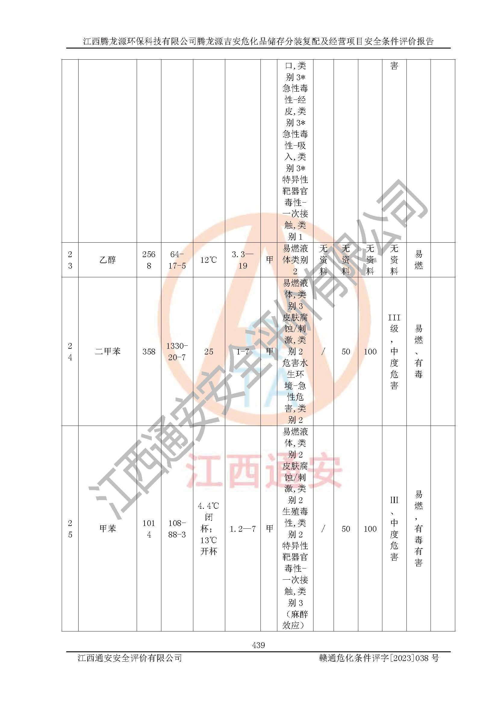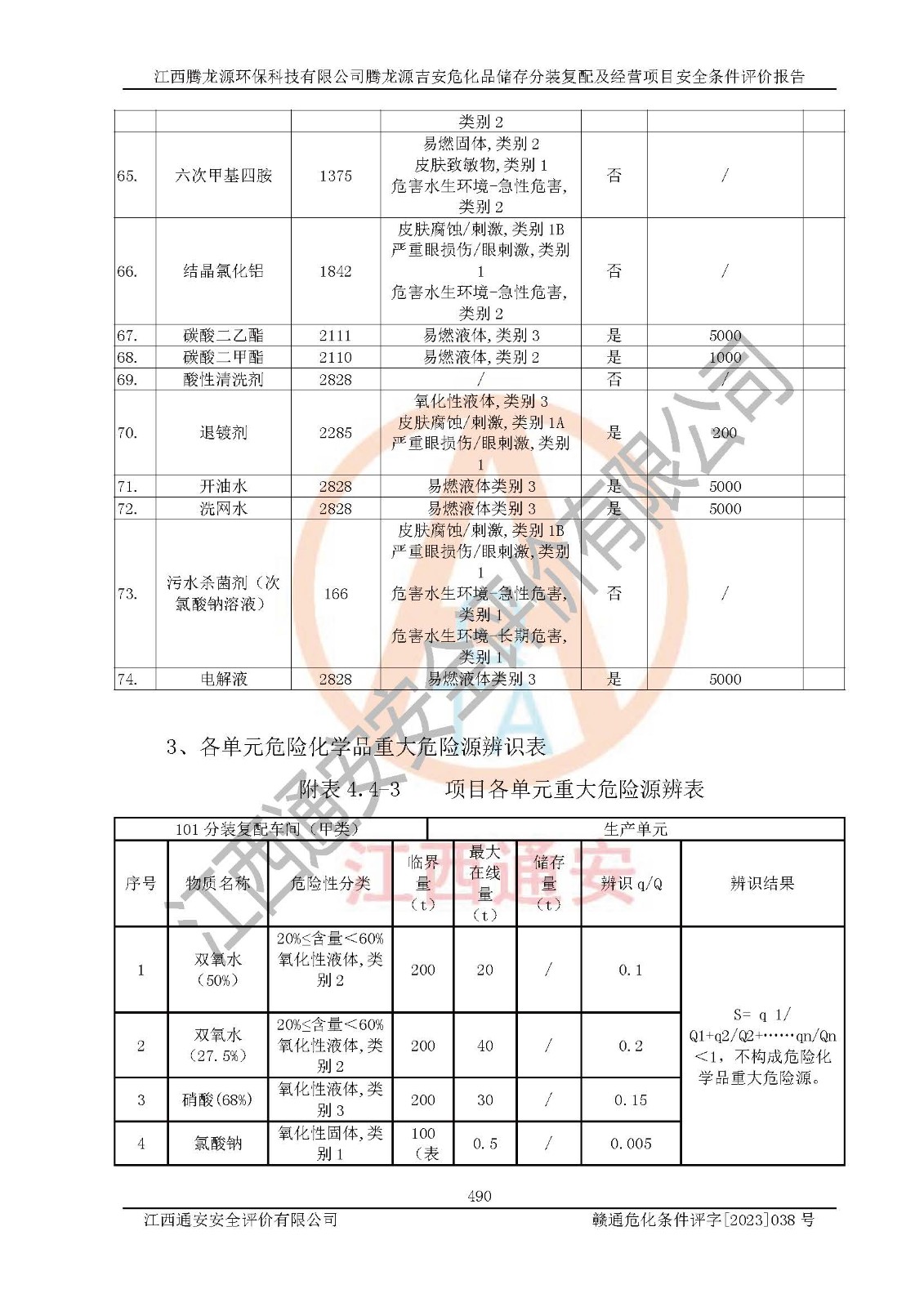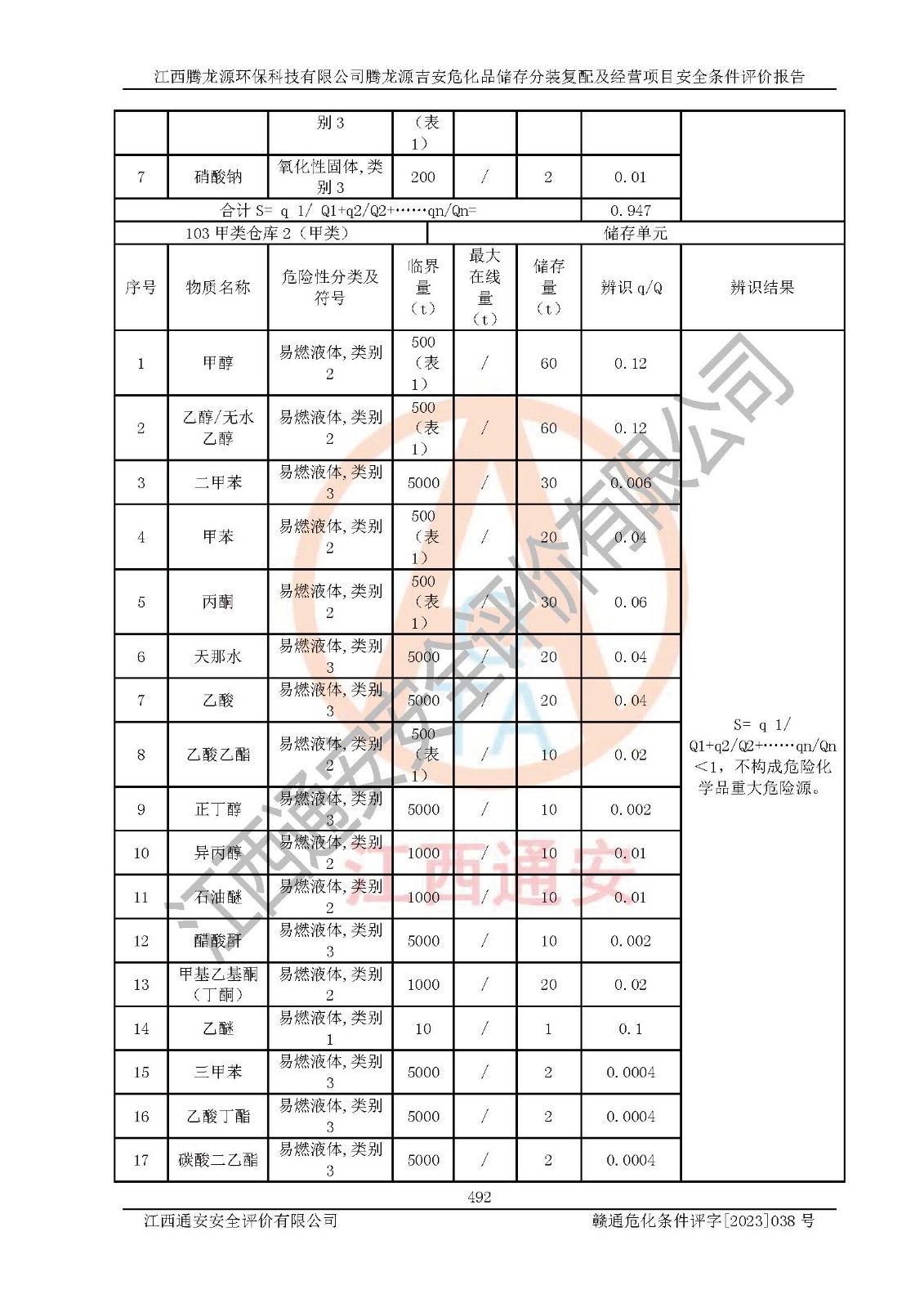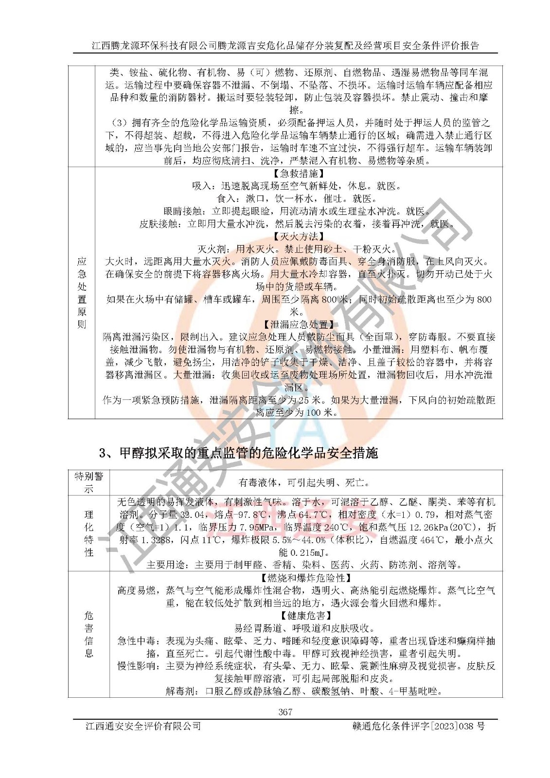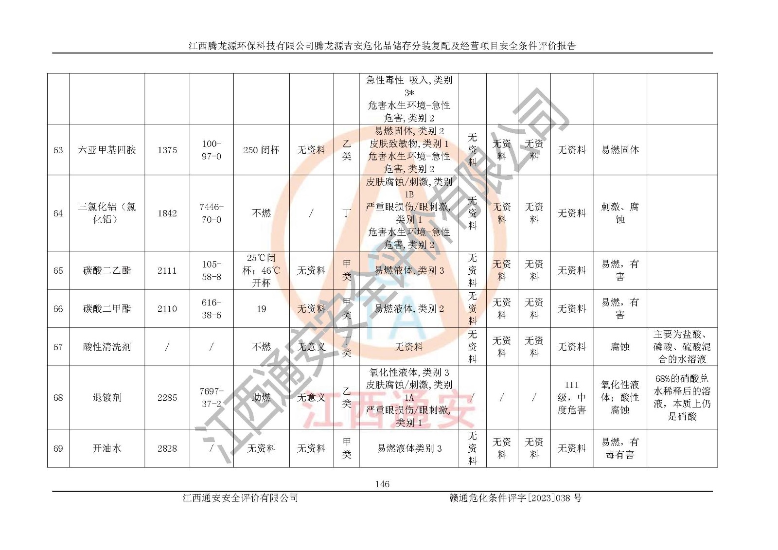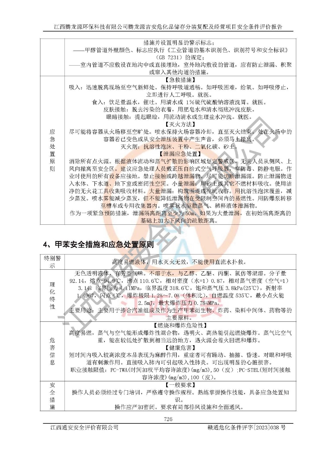 項(xiàng)目簡介 | 江西騰龍?jiān)?*科技有限公司成立于2022年6月20日,并取得吉水縣市場監(jiān)督管理局頒發(fā)的《營業(yè)執(zhí)照》,營業(yè)執(zhí)照統(tǒng)一社會信用代碼:91360822MABQK5GB5P。公司注冊住所:江西省吉安市吉水縣城西工業(yè)園區(qū)二期金龍路。法定**人:吳詩明。注冊資本壹仟萬元整。企業(yè)性質(zhì)為有限責(zé)任公司(自然人投資或控股)。營業(yè)執(zhí)照許可經(jīng)營范圍:一般項(xiàng)目:化工產(chǎn)品銷售(不含許可類化工產(chǎn)品)(除許可業(yè)務(wù)外,可自主依法經(jīng)營法律法規(guī)非禁止或限制的項(xiàng)目)。 江西騰龍?jiān)?*科技有限公司2023年2月24日取得吉水縣發(fā)展和改革委員會頒發(fā)的《江西省企業(yè)投資項(xiàng)目備案通知書》,備案項(xiàng)目名稱為:騰龍?jiān)醇参;穬Υ娣盅b復(fù)配及經(jīng)營項(xiàng)目。項(xiàng)目統(tǒng)一代碼為:2302-360822-04-01-318980。項(xiàng)目總投資20000萬元,項(xiàng)目總占地面積31.34畝。 根據(jù)《危險(xiǎn)化學(xué)品目錄(2015版)》(**安監(jiān)總局等十部門公告[2015]第5號)及應(yīng)急管理部、工業(yè)和信息化部、公安部、生態(tài)環(huán)境部、交通運(yùn)輸部、農(nóng)業(yè)農(nóng)村部、衛(wèi)生健康委、市場監(jiān)管總局、鐵路局、民航局決定調(diào)整《危險(xiǎn)化學(xué)品目錄(2015版)》(應(yīng)急管理部、工業(yè)和信息化部、公安部、生態(tài)環(huán)境部、交通運(yùn)輸部、農(nóng)業(yè)農(nóng)村部、衛(wèi)生健康委、市場監(jiān)管總局、鐵路局、民航局公告2022年第8號)等文件對該項(xiàng)目生產(chǎn)過程中所涉及的化學(xué)品進(jìn)行辨識:項(xiàng)目涉及的硫酸、鹽酸、雙氧水、硝酸、氫氧化鈉(固體和溶液)、次氯酸鈉溶液、氯酸鈉、氯酸鉀、鉻酸酐、高錳酸鈉、高錳酸鉀、硝酸鉀、重鉻酸鉀、重鉻酸鈉、硝酸鈉、亞硝酸鈉、過硫酸鈉、過硫酸銨、過硫酸鉀、漂白粉、氯化亞砜、甲醇、乙醇、二甲苯、甲苯、**、天那水、乙酸、乙酸乙酯、甲醛溶液、三氯乙烯、正丁醇、異丙醇、石油醚、醋酸酐、甲基乙基酮(丁酮)、三氯甲烷、乙醚、氨水(20%)、甲酸、二氯甲烷、**苯、乙酸丁酯、氫氟酸、磷酸、硫化鈉(無水)、氫氧化鉀、氨基磺酸、三氯化鐵、九水硝酸鐵、氯化鋅、硫脲、硼酸、硫酸鎳、氯化鎳、氟化氫銨、氟化氫鉀、氟化氫鈉、偏硅酸鈉、九水偏硅酸鈉、氟硅酸鈉、亞硫酸氫鈉、氟化鈉、氟化鉀、六次甲基四胺、結(jié)晶氯化鋁、碳酸二乙酯、碳酸二甲酯、酸性清洗劑、退鍍劑、開油水、洗網(wǎng)水、污水殺菌劑(復(fù)配的次氯酸鈉溶液)、電解液等屬于危險(xiǎn)化學(xué)品。 江西騰龍?jiān)?*科技有限公司騰龍?jiān)醇参;穬Υ娣盅b復(fù)配及經(jīng)營項(xiàng)目只進(jìn)行物理混合復(fù)配、分裝等作業(yè),不涉及化學(xué)反應(yīng)過程。因此該公司?;穫}儲經(jīng)營活動需要辦理《危險(xiǎn)化學(xué)品經(jīng)營許可證》。 根據(jù)《中華人民共和國監(jiān)控化學(xué)品管理?xiàng)l例》(中華人民共和國***令**90號,經(jīng)中華人民共和國***令第588號修改)及《各類監(jiān)控化學(xué)品名錄》(中華人民共和國工業(yè)和信息化部令第52號;2020年)、《列入第三類監(jiān)控化學(xué)品的新增品種清單》**石油和化學(xué)工業(yè)局令**號等規(guī)定進(jìn)行辨識:項(xiàng)目涉及的氯化亞砜屬于第三類監(jiān)控化學(xué)品。 根據(jù)《易制毒化學(xué)品管理?xiàng)l例》(***令第445號,經(jīng)***令第653號、***第666號、***第703號修改)及附表規(guī)定、中華人民共和國公安部 中華人民共和國商務(wù)部、**衛(wèi)生和計(jì)劃生育委員會、中華人民共和國海關(guān)總署、**安全生產(chǎn)監(jiān)督管理總局、**食品藥品監(jiān)督管理總局《關(guān)于將4-苯胺基-N-苯乙基哌啶、N-苯乙基-4-哌啶酮、N-甲基-1-苯基-1-氯-2-丙胺、溴素、1-苯基-1-**5種物質(zhì)列入易制毒化學(xué)品管理的公告》(國辦函[2017]**20號)、《***辦公廳關(guān)于同意將1-苯基-2-溴-1-**和3-氧-2-苯基丁腈列入易制毒化學(xué)品品種目錄的函》(國辦函[2014]第40號)、《***辦公廳關(guān)于同意將α-苯乙酰乙酸甲酯等6種物質(zhì)列入易制毒化學(xué)品品種目錄的函》(國辦函〔2021〕58號)等進(jìn)行辨識:項(xiàng)目涉及的硫酸、鹽酸、高錳酸鉀、甲苯、**、甲基乙基酮等屬于第三類易制毒化學(xué)品;醋酸酐、三氯甲烷、乙醚等屬于第二類易制毒化學(xué)品。 根據(jù)《危險(xiǎn)化學(xué)品名錄[2015年版]》(**安監(jiān)總局等十部門[2015]第5號)進(jìn)行劇毒化學(xué)品辨識:項(xiàng)目不涉及劇毒化學(xué)品。 根據(jù)《高毒物品目錄(2003年版)》(原衛(wèi)生部衛(wèi)法監(jiān)發(fā)[2003]142號)對項(xiàng)目涉及的化學(xué)品進(jìn)行高毒物品辨識:項(xiàng)目涉及的甲醛溶液、硫酸鎳、氯化鎳、氟化氫銨、氟化氫鉀、氟化氫鈉、氟化鈉、氟化鉀、鉻酸酐、高錳酸鉀、高錳酸鈉、重鉻酸鉀、重鉻酸鈉等屬于高毒物品。 根據(jù)中華人民共和國公安部《易制爆危險(xiǎn)化學(xué)品名錄》(2017年版)中規(guī)定進(jìn)行辨識:項(xiàng)目涉及的雙氧水、硝酸、氯酸鈉、氯酸鉀、高錳酸鉀、高錳酸鈉、硝酸鉀、重鉻酸鉀、重鉻酸鈉、硝酸鈉、六次甲基四胺等屬于易