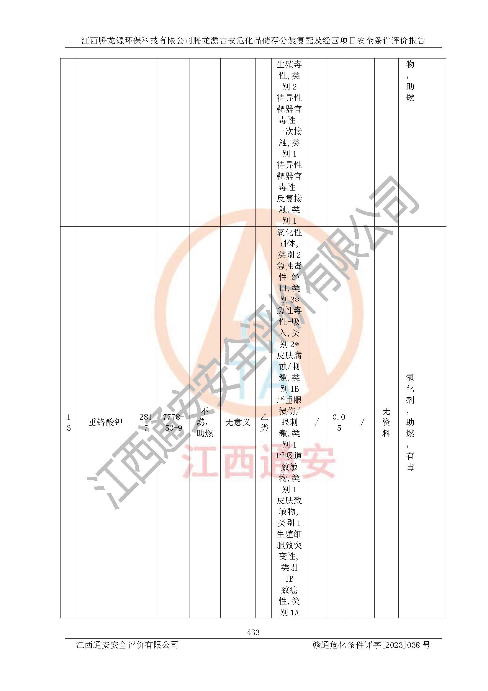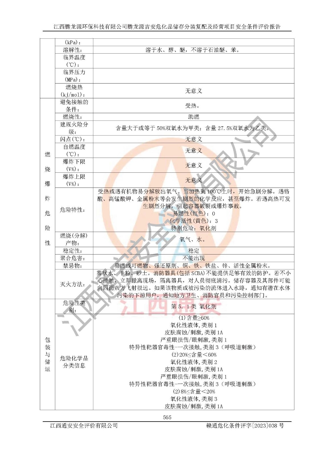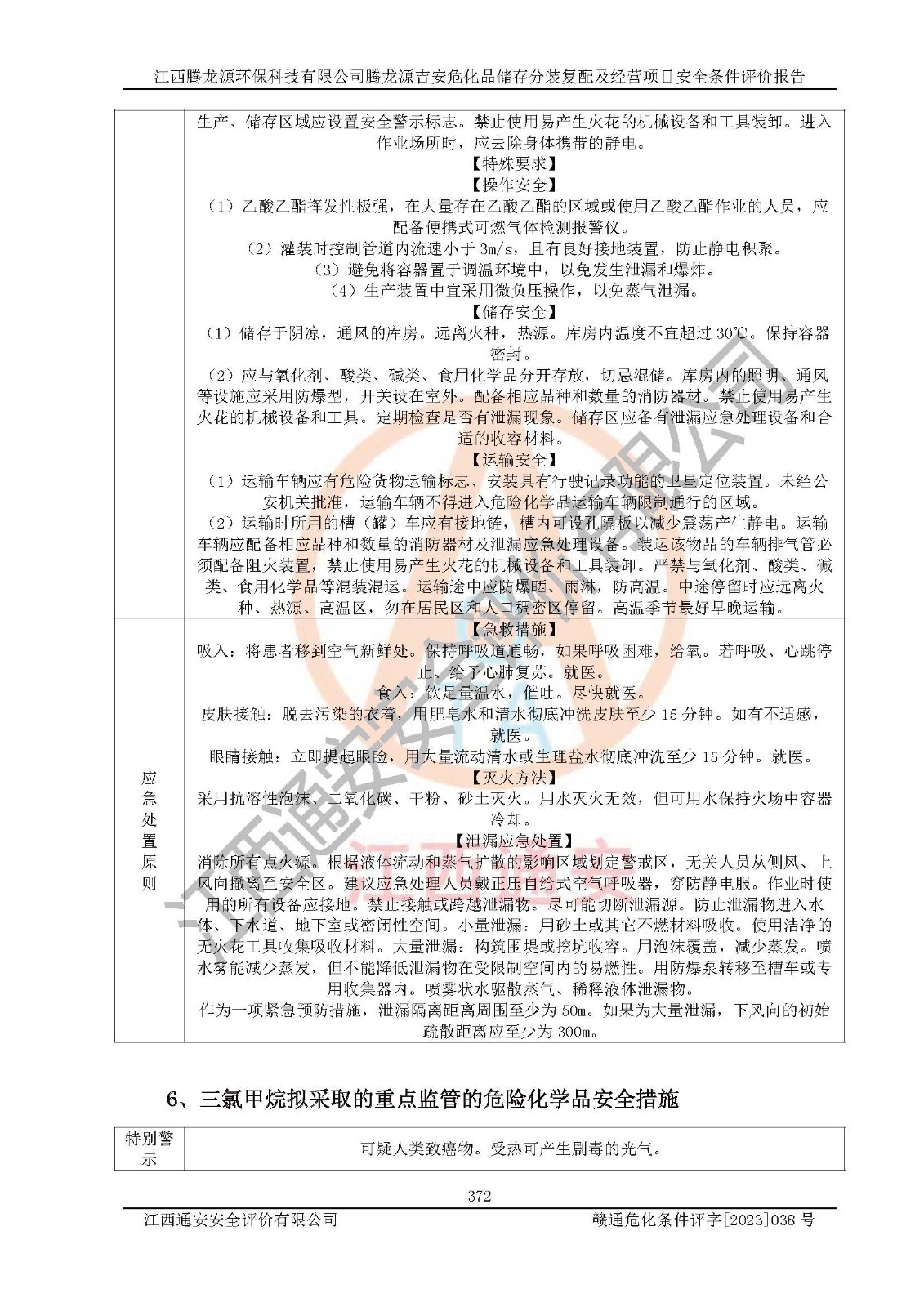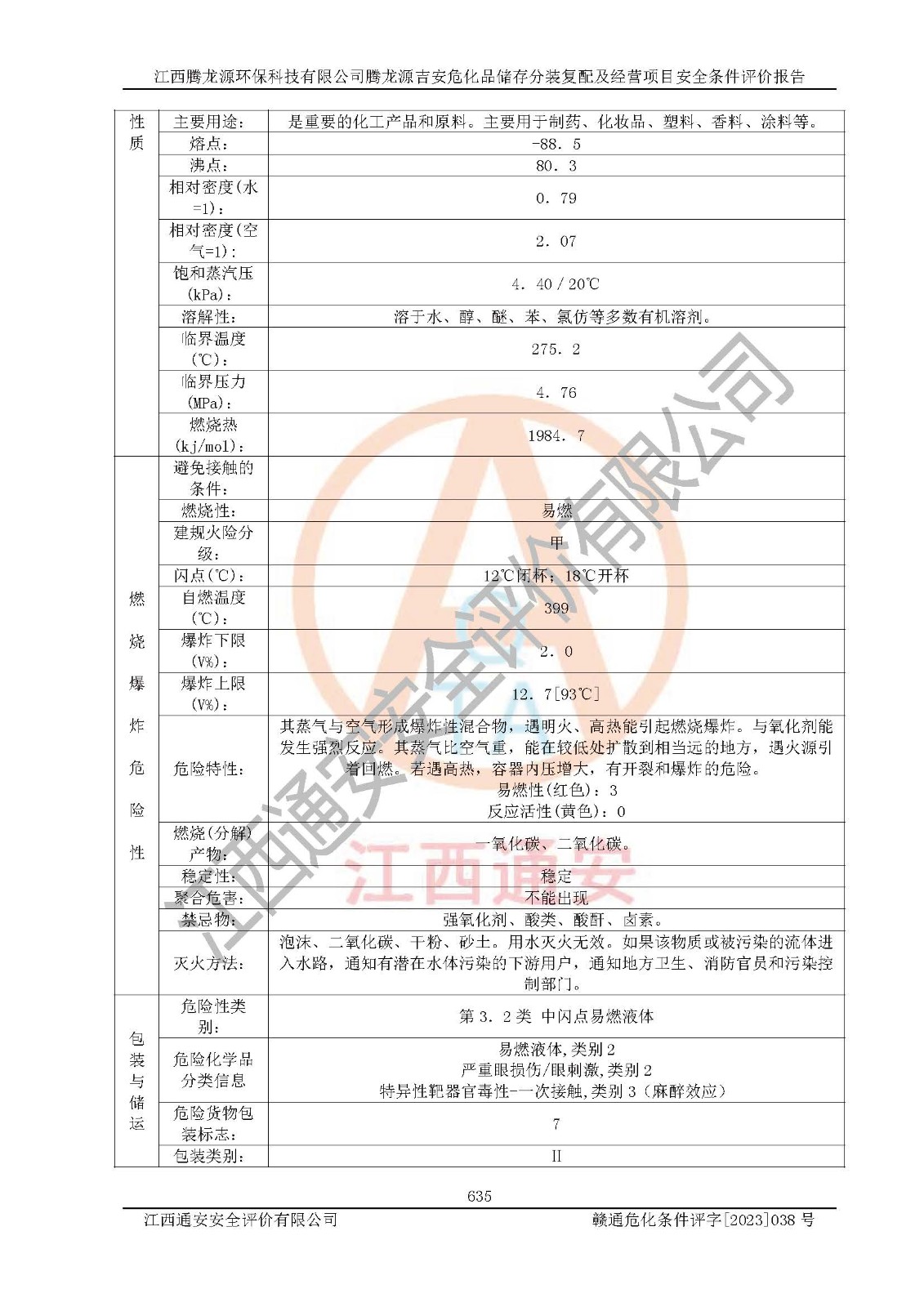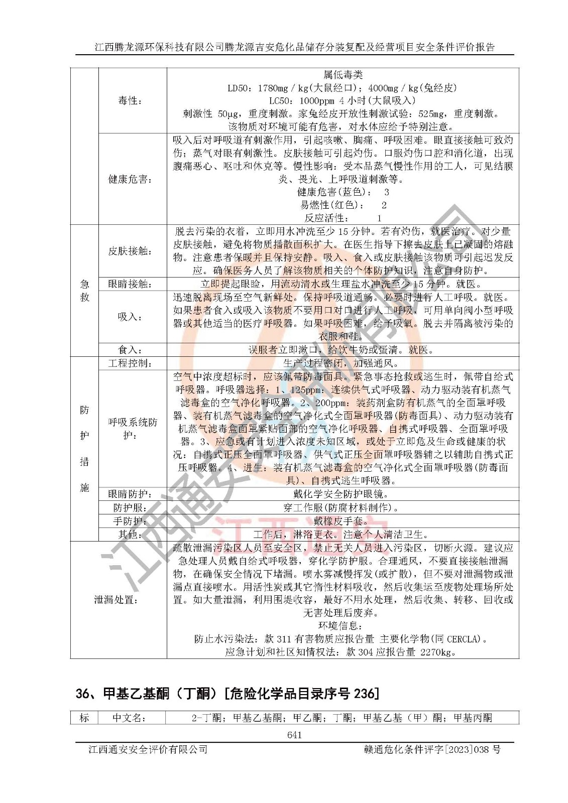 項(xiàng)目簡介 | 江西騰龍?jiān)?*科技有限公司成立于2022年6月20日,并取得吉水縣市場監(jiān)督管理局頒發(fā)的《營業(yè)執(zhí)照》,營業(yè)執(zhí)照統(tǒng)一社會信用代碼:91360822MABQK5GB5P。公司注冊住所:江西省吉安市吉水縣城西工業(yè)園區(qū)二期金龍路。法定**人:吳詩明。注冊資本壹仟萬元整。企業(yè)性質(zhì)為有限責(zé)任公司(自然人投資或控股)。營業(yè)執(zhí)照許可經(jīng)營范圍:一般項(xiàng)目:化工產(chǎn)品銷售(不含許可類化工產(chǎn)品)(除許可業(yè)務(wù)外,可自主依法經(jīng)營法律法規(guī)非禁止或限制的項(xiàng)目)。 江西騰龍?jiān)?*科技有限公司2023年2月24日取得吉水縣發(fā)展和改革委員會頒發(fā)的《江西省企業(yè)投資項(xiàng)目備案通知書》,備案項(xiàng)目名稱為:騰龍?jiān)醇参;穬Υ娣盅b復(fù)配及經(jīng)營項(xiàng)目。項(xiàng)目統(tǒng)一代碼為:2302-360822-04-01-318980。項(xiàng)目總投資20000萬元,項(xiàng)目總占地面積31.34畝。 根據(jù)《危險(xiǎn)化學(xué)品目錄(2015版)》(**安監(jiān)總局等十部門公告[2015]第5號)及應(yīng)急管理部、工業(yè)和信息化部、公安部、生態(tài)環(huán)境部、交通運(yùn)輸部、農(nóng)業(yè)農(nóng)村部、衛(wèi)生健康委、市場監(jiān)管總局、鐵路局、民航局決定調(diào)整《危險(xiǎn)化學(xué)品目錄(2015版)》(應(yīng)急管理部、工業(yè)和信息化部、公安部、生態(tài)環(huán)境部、交通運(yùn)輸部、農(nóng)業(yè)農(nóng)村部、衛(wèi)生健康委、市場監(jiān)管總局、鐵路局、民航局公告2022年第8號)等文件對該項(xiàng)目生產(chǎn)過程中所涉及的化學(xué)品進(jìn)行辨識:項(xiàng)目涉及的硫酸、鹽酸、雙氧水、硝酸、氫氧化鈉(固體和溶液)、次氯酸鈉溶液、氯酸鈉、氯酸鉀、鉻酸酐、高錳酸鈉、高錳酸鉀、硝酸鉀、重鉻酸鉀、重鉻酸鈉、硝酸鈉、亞硝酸鈉、過硫酸鈉、過硫酸銨、過硫酸鉀、漂白粉、氯化亞砜、甲醇、乙醇、二甲苯、甲苯、**、天那水、乙酸、乙酸乙酯、甲醛溶液、三氯乙烯、正丁醇、異丙醇、石油醚、醋酸酐、甲基乙基酮(丁酮)、三氯甲烷、乙醚、氨水(20%)、甲酸、二氯甲烷、**苯、乙酸丁酯、氫氟酸、磷酸、硫化鈉(無水)、氫氧化鉀、氨基磺酸、三氯化鐵、九水硝酸鐵、氯化鋅、硫脲、硼酸、硫酸鎳、氯化鎳、氟化氫銨、氟化氫鉀、氟化氫鈉、偏硅酸鈉、九水偏硅酸鈉、氟硅酸鈉、亞硫酸氫鈉、氟化鈉、氟化鉀、六次甲基四胺、結(jié)晶氯化鋁、碳酸二乙酯、碳酸二甲酯、酸性清洗劑、退鍍劑、開油水、洗網(wǎng)水、污水殺菌劑(復(fù)配的次氯酸鈉溶液)、電解液等屬于危險(xiǎn)化學(xué)品。 江西騰龍?jiān)?*科技有限公司騰龍?jiān)醇参;穬Υ娣盅b復(fù)配及經(jīng)營項(xiàng)目只進(jìn)行物理混合復(fù)配、分裝等作業(yè),不涉及化學(xué)反應(yīng)過程。因此該公司?;穫}儲經(jīng)營活動需要辦理《危險(xiǎn)化學(xué)品經(jīng)營許可證》。 根據(jù)《中華人民共和國監(jiān)控化學(xué)品管理?xiàng)l例》(中華人民共和國***令**90號,經(jīng)中華人民共和國***令第588號修改)及《各類監(jiān)控化學(xué)品名錄》(中華人民共和國工業(yè)和信息化部令第52號;2020年)、《列入第三類監(jiān)控化學(xué)品的新增品種清單》**石油和化學(xué)工業(yè)局令**號等規(guī)定進(jìn)行辨識:項(xiàng)目涉及的氯化亞砜屬于第三類監(jiān)控化學(xué)品。 根據(jù)《易制毒化學(xué)品管理?xiàng)l例》(***令第445號,經(jīng)***令第653號、***第666號、***第703號修改)及附表規(guī)定、中華人民共和國公安部 中華人民共和國商務(wù)部、**衛(wèi)生和計(jì)劃生育委員會、中華人民共和國海關(guān)總署、**安全生產(chǎn)監(jiān)督管理總局、**食品藥品監(jiān)督管理總局《關(guān)于將4-苯胺基-N-苯乙基哌啶、N-苯乙基-4-哌啶酮、N-甲基-1-苯基-1-氯-2-丙胺、溴素、1-苯基-1-**5種物質(zhì)列入易制毒化學(xué)品管理的公告》(國辦函[2017]**20號)、《***辦公廳關(guān)于同意將1-苯基-2-溴-1-**和3-氧-2-苯基丁腈列入易制毒化學(xué)品品種目錄的函》(國辦函[2014]第40號)、《***辦公廳關(guān)于同意將α-苯乙酰乙酸甲酯等6種物質(zhì)列入易制毒化學(xué)品品種目錄的函》(國辦函〔2021〕58號)等進(jìn)行辨識:項(xiàng)目涉及的硫酸、鹽酸、高錳酸鉀、甲苯、**、甲基乙基酮等屬于第三類易制毒化學(xué)品;醋酸酐、三氯甲烷、乙醚等屬于第二類易制毒化學(xué)品。 根據(jù)《危險(xiǎn)化學(xué)品名錄[2015年版]》(**安監(jiān)總局等十部門[2015]第5號)進(jìn)行劇毒化學(xué)品辨識:項(xiàng)目不涉及劇毒化學(xué)品。 根據(jù)《高毒物品目錄(2003年版)》(原衛(wèi)生部衛(wèi)法監(jiān)發(fā)[2003]142號)對項(xiàng)目涉及的化學(xué)品進(jìn)行高毒物品辨識:項(xiàng)目涉及的甲醛溶液、硫酸鎳、氯化鎳、氟化氫銨、氟化氫鉀、氟化氫鈉、氟化鈉、氟化鉀、鉻酸酐、高錳酸鉀、高錳酸鈉、重鉻酸鉀、重鉻酸鈉等屬于高毒物品。 根據(jù)中華人民共和國公安部《易制爆危險(xiǎn)化學(xué)品名錄》(2017年版)中規(guī)定進(jìn)行辨識:項(xiàng)目涉及的雙氧水、硝酸、氯酸鈉、氯酸鉀、高錳酸鉀、高錳酸鈉、硝酸鉀、重鉻酸鉀、重鉻酸鈉、硝酸鈉、六次甲基四胺等屬于易