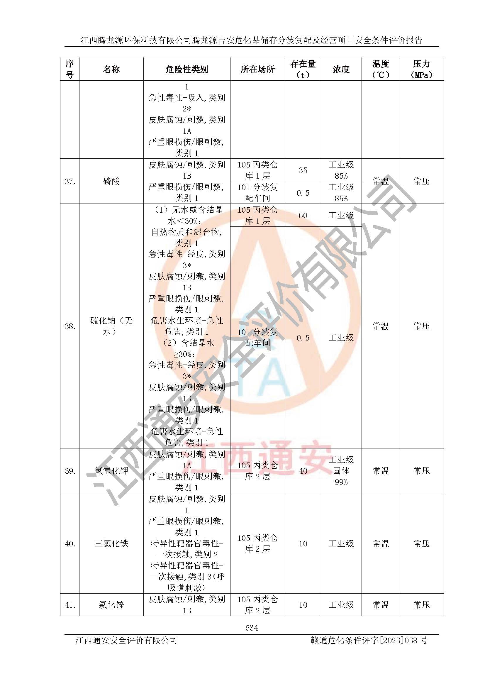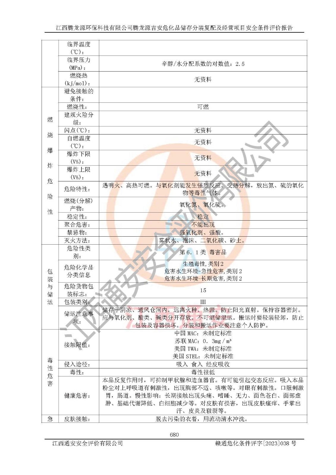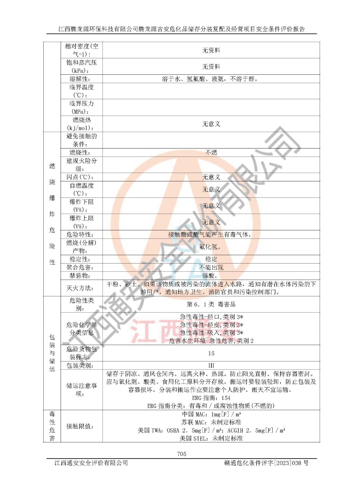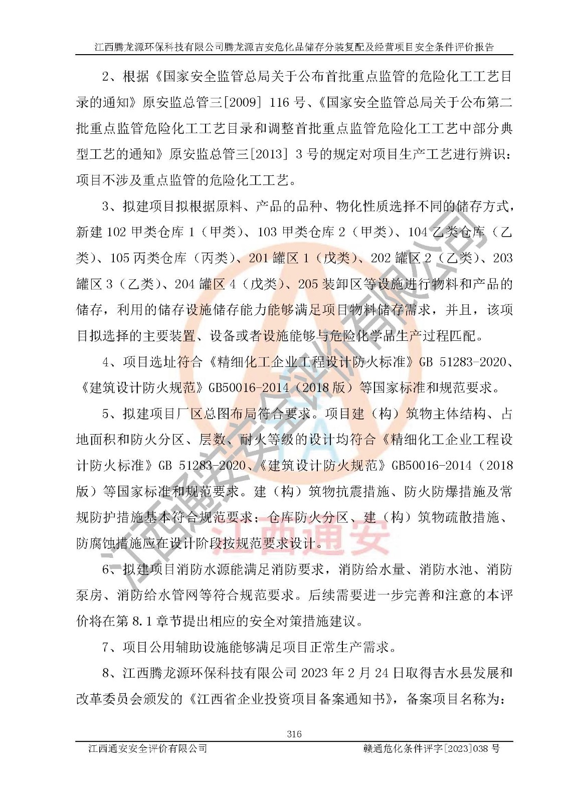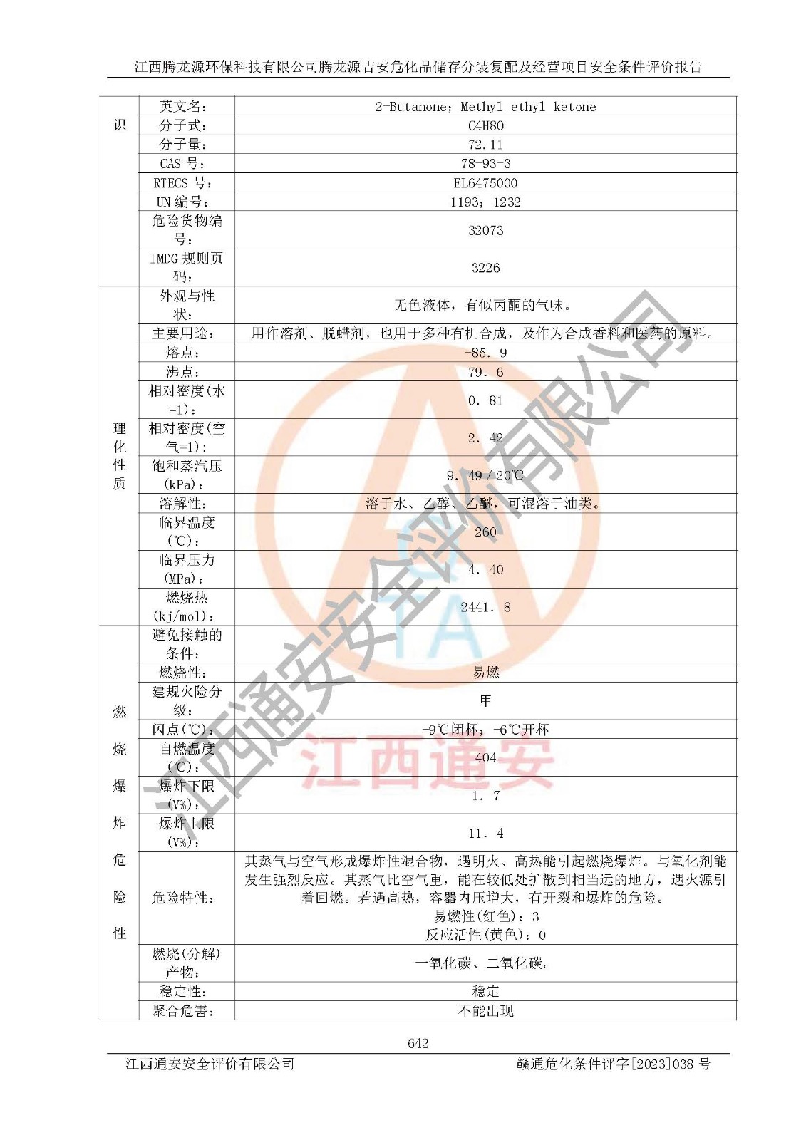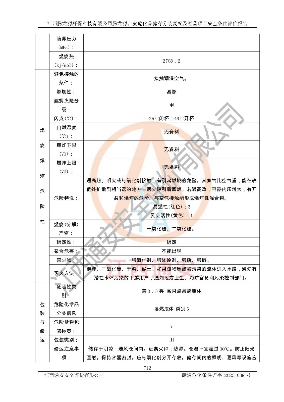 項(xiàng)目簡介 | 江西騰龍?jiān)?*科技有限公司成立于2022年6月20日,并取得吉水縣市場監(jiān)督管理局頒發(fā)的《營業(yè)執(zhí)照》,營業(yè)執(zhí)照統(tǒng)一社會信用代碼:91360822MABQK5GB5P。公司注冊住所:江西省吉安市吉水縣城西工業(yè)園區(qū)二期金龍路。法定**人:吳詩明。注冊資本壹仟萬元整。企業(yè)性質(zhì)為有限責(zé)任公司(自然人投資或控股)。營業(yè)執(zhí)照許可經(jīng)營范圍:一般項(xiàng)目:化工產(chǎn)品銷售(不含許可類化工產(chǎn)品)(除許可業(yè)務(wù)外,可自主依法經(jīng)營法律法規(guī)非禁止或限制的項(xiàng)目)。 江西騰龍?jiān)?*科技有限公司2023年2月24日取得吉水縣發(fā)展和改革委員會頒發(fā)的《江西省企業(yè)投資項(xiàng)目備案通知書》,備案項(xiàng)目名稱為:騰龍?jiān)醇参;穬Υ娣盅b復(fù)配及經(jīng)營項(xiàng)目。項(xiàng)目統(tǒng)一代碼為:2302-360822-04-01-318980。項(xiàng)目總投資20000萬元,項(xiàng)目總占地面積31.34畝。 根據(jù)《危險(xiǎn)化學(xué)品目錄(2015版)》(**安監(jiān)總局等十部門公告[2015]第5號)及應(yīng)急管理部、工業(yè)和信息化部、公安部、生態(tài)環(huán)境部、交通運(yùn)輸部、農(nóng)業(yè)農(nóng)村部、衛(wèi)生健康委、市場監(jiān)管總局、鐵路局、民航局決定調(diào)整《危險(xiǎn)化學(xué)品目錄(2015版)》(應(yīng)急管理部、工業(yè)和信息化部、公安部、生態(tài)環(huán)境部、交通運(yùn)輸部、農(nóng)業(yè)農(nóng)村部、衛(wèi)生健康委、市場監(jiān)管總局、鐵路局、民航局公告2022年第8號)等文件對該項(xiàng)目生產(chǎn)過程中所涉及的化學(xué)品進(jìn)行辨識:項(xiàng)目涉及的硫酸、鹽酸、雙氧水、硝酸、氫氧化鈉(固體和溶液)、次氯酸鈉溶液、氯酸鈉、氯酸鉀、鉻酸酐、高錳酸鈉、高錳酸鉀、硝酸鉀、重鉻酸鉀、重鉻酸鈉、硝酸鈉、亞硝酸鈉、過硫酸鈉、過硫酸銨、過硫酸鉀、漂白粉、氯化亞砜、甲醇、乙醇、二甲苯、甲苯、**、天那水、乙酸、乙酸乙酯、甲醛溶液、三氯乙烯、正丁醇、異丙醇、石油醚、醋酸酐、甲基乙基酮(丁酮)、三氯甲烷、乙醚、氨水(20%)、甲酸、二氯甲烷、**苯、乙酸丁酯、氫氟酸、磷酸、硫化鈉(無水)、氫氧化鉀、氨基磺酸、三氯化鐵、九水硝酸鐵、氯化鋅、硫脲、硼酸、硫酸鎳、氯化鎳、氟化氫銨、氟化氫鉀、氟化氫鈉、偏硅酸鈉、九水偏硅酸鈉、氟硅酸鈉、亞硫酸氫鈉、氟化鈉、氟化鉀、六次甲基四胺、結(jié)晶氯化鋁、碳酸二乙酯、碳酸二甲酯、酸性清洗劑、退鍍劑、開油水、洗網(wǎng)水、污水殺菌劑(復(fù)配的次氯酸鈉溶液)、電解液等屬于危險(xiǎn)化學(xué)品。 江西騰龍?jiān)?*科技有限公司騰龍?jiān)醇参;穬Υ娣盅b復(fù)配及經(jīng)營項(xiàng)目只進(jìn)行物理混合復(fù)配、分裝等作業(yè),不涉及化學(xué)反應(yīng)過程。因此該公司?;穫}儲經(jīng)營活動需要辦理《危險(xiǎn)化學(xué)品經(jīng)營許可證》。 根據(jù)《中華人民共和國監(jiān)控化學(xué)品管理?xiàng)l例》(中華人民共和國***令**90號,經(jīng)中華人民共和國***令第588號修改)及《各類監(jiān)控化學(xué)品名錄》(中華人民共和國工業(yè)和信息化部令第52號;2020年)、《列入第三類監(jiān)控化學(xué)品的新增品種清單》**石油和化學(xué)工業(yè)局令**號等規(guī)定進(jìn)行辨識:項(xiàng)目涉及的氯化亞砜屬于第三類監(jiān)控化學(xué)品。 根據(jù)《易制毒化學(xué)品管理?xiàng)l例》(***令第445號,經(jīng)***令第653號、***第666號、***第703號修改)及附表規(guī)定、中華人民共和國公安部 中華人民共和國商務(wù)部、**衛(wèi)生和計(jì)劃生育委員會、中華人民共和國海關(guān)總署、**安全生產(chǎn)監(jiān)督管理總局、**食品藥品監(jiān)督管理總局《關(guān)于將4-苯胺基-N-苯乙基哌啶、N-苯乙基-4-哌啶酮、N-甲基-1-苯基-1-氯-2-丙胺、溴素、1-苯基-1-**5種物質(zhì)列入易制毒化學(xué)品管理的公告》(國辦函[2017]**20號)、《***辦公廳關(guān)于同意將1-苯基-2-溴-1-**和3-氧-2-苯基丁腈列入易制毒化學(xué)品品種目錄的函》(國辦函[2014]第40號)、《***辦公廳關(guān)于同意將α-苯乙酰乙酸甲酯等6種物質(zhì)列入易制毒化學(xué)品品種目錄的函》(國辦函〔2021〕58號)等進(jìn)行辨識:項(xiàng)目涉及的硫酸、鹽酸、高錳酸鉀、甲苯、**、甲基乙基酮等屬于第三類易制毒化學(xué)品;醋酸酐、三氯甲烷、乙醚等屬于第二類易制毒化學(xué)品。 根據(jù)《危險(xiǎn)化學(xué)品名錄[2015年版]》(**安監(jiān)總局等十部門[2015]第5號)進(jìn)行劇毒化學(xué)品辨識:項(xiàng)目不涉及劇毒化學(xué)品。 根據(jù)《高毒物品目錄(2003年版)》(原衛(wèi)生部衛(wèi)法監(jiān)發(fā)[2003]142號)對項(xiàng)目涉及的化學(xué)品進(jìn)行高毒物品辨識:項(xiàng)目涉及的甲醛溶液、硫酸鎳、氯化鎳、氟化氫銨、氟化氫鉀、氟化氫鈉、氟化鈉、氟化鉀、鉻酸酐、高錳酸鉀、高錳酸鈉、重鉻酸鉀、重鉻酸鈉等屬于高毒物品。 根據(jù)中華人民共和國公安部《易制爆危險(xiǎn)化學(xué)品名錄》(2017年版)中規(guī)定進(jìn)行辨識:項(xiàng)目涉及的雙氧水、硝酸、氯酸鈉、氯酸鉀、高錳酸鉀、高錳酸鈉、硝酸鉀、重鉻酸鉀、重鉻酸鈉、硝酸鈉、六次甲基四胺等屬于易
