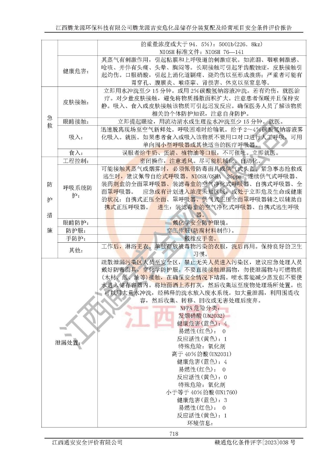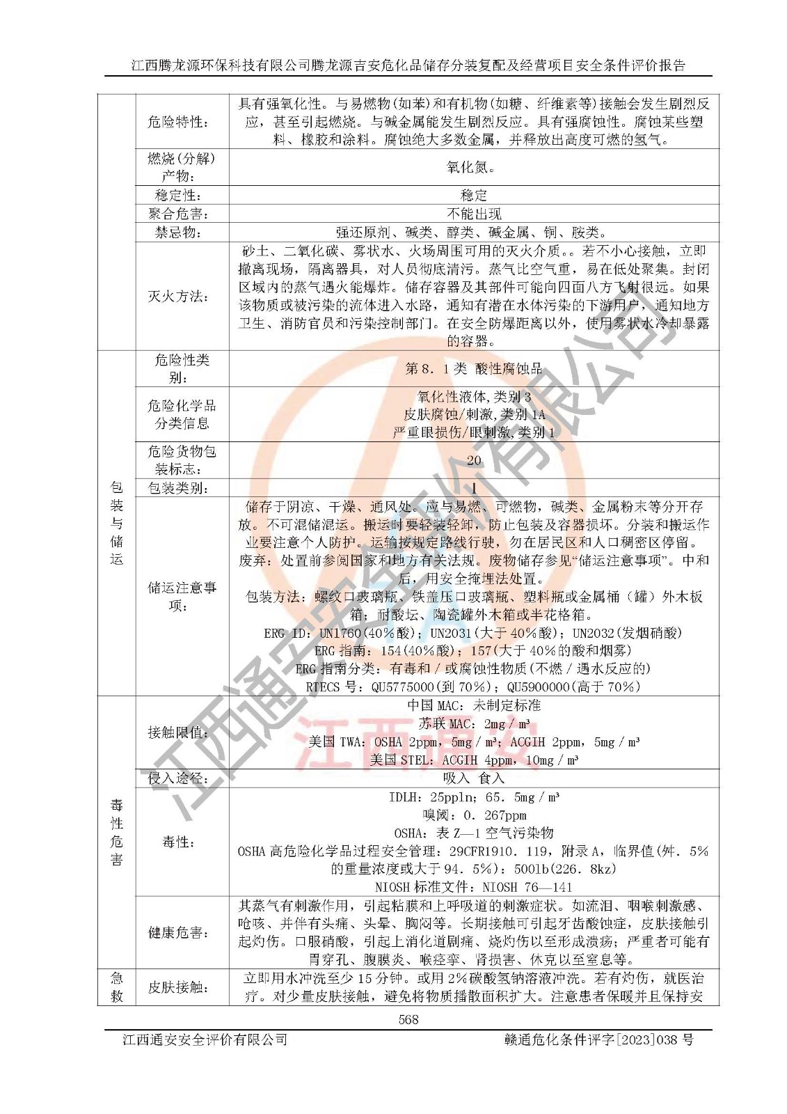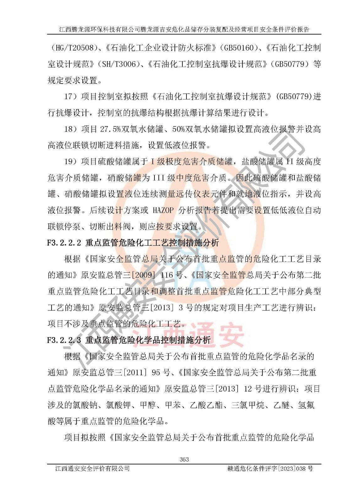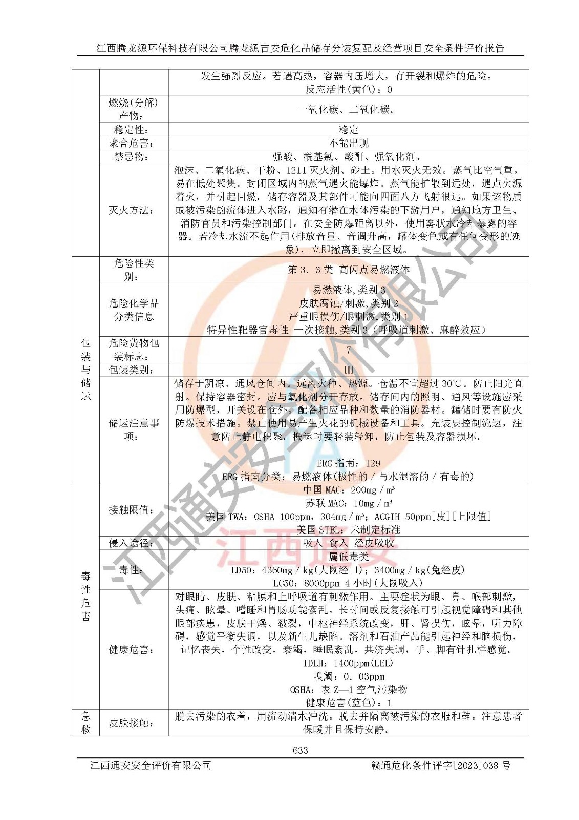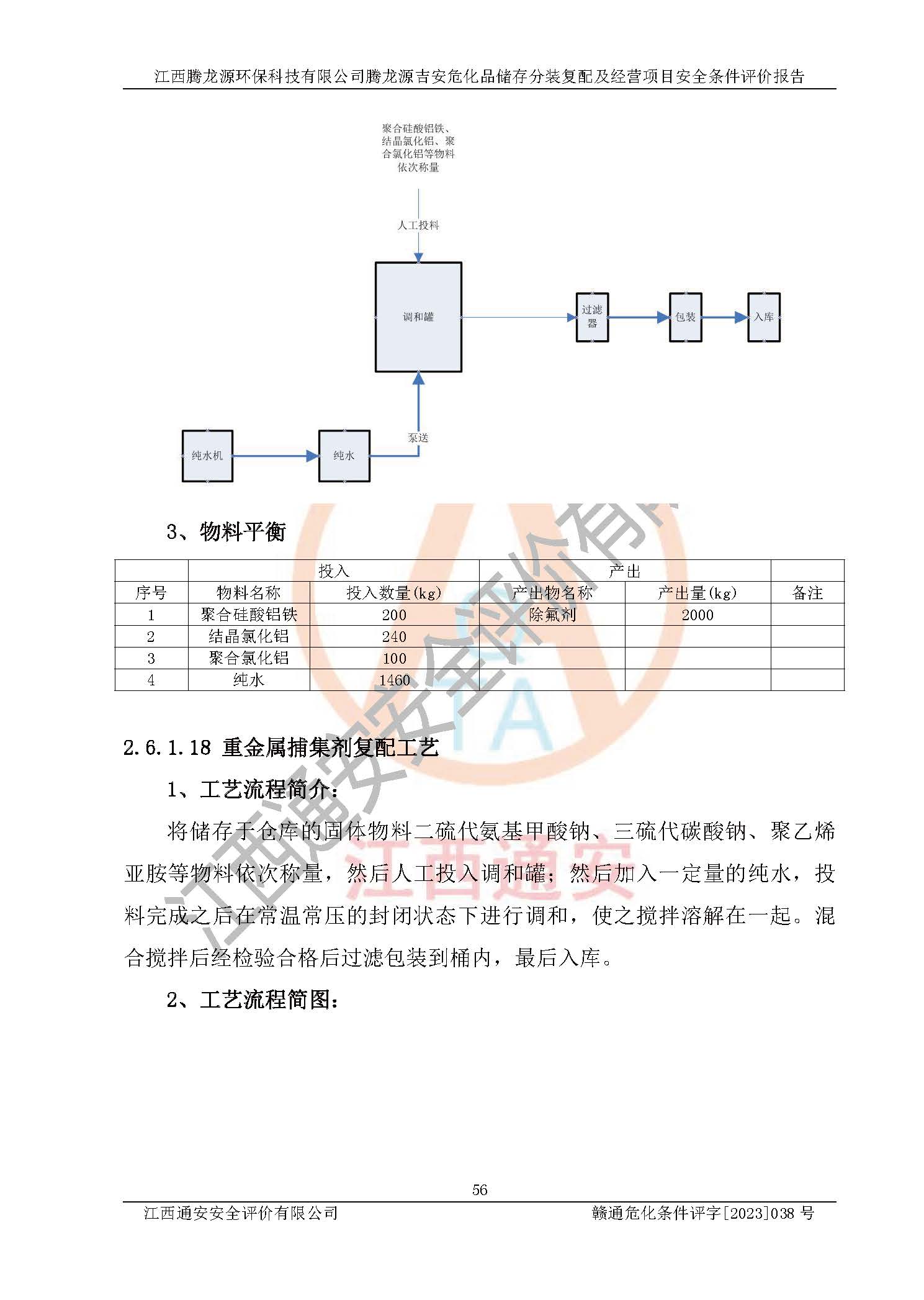 項(xiàng)目簡介 | 江西騰龍?jiān)?*科技有限公司成立于2022年6月20日,并取得吉水縣市場監(jiān)督管理局頒發(fā)的《營業(yè)執(zhí)照》,營業(yè)執(zhí)照統(tǒng)一社會信用代碼:91360822MABQK5GB5P。公司注冊住所:江西省吉安市吉水縣城西工業(yè)園區(qū)二期金龍路。法定**人:吳詩明。注冊資本壹仟萬元整。企業(yè)性質(zhì)為有限責(zé)任公司(自然人投資或控股)。營業(yè)執(zhí)照許可經(jīng)營范圍:一般項(xiàng)目:化工產(chǎn)品銷售(不含許可類化工產(chǎn)品)(除許可業(yè)務(wù)外,可自主依法經(jīng)營法律法規(guī)非禁止或限制的項(xiàng)目)。 江西騰龍?jiān)?*科技有限公司2023年2月24日取得吉水縣發(fā)展和改革委員會頒發(fā)的《江西省企業(yè)投資項(xiàng)目備案通知書》,備案項(xiàng)目名稱為:騰龍?jiān)醇参;穬Υ娣盅b復(fù)配及經(jīng)營項(xiàng)目。項(xiàng)目統(tǒng)一代碼為:2302-360822-04-01-318980。項(xiàng)目總投資20000萬元,項(xiàng)目總占地面積31.34畝。 根據(jù)《危險(xiǎn)化學(xué)品目錄(2015版)》(**安監(jiān)總局等十部門公告[2015]第5號)及應(yīng)急管理部、工業(yè)和信息化部、公安部、生態(tài)環(huán)境部、交通運(yùn)輸部、農(nóng)業(yè)農(nóng)村部、衛(wèi)生健康委、市場監(jiān)管總局、鐵路局、民航局決定調(diào)整《危險(xiǎn)化學(xué)品目錄(2015版)》(應(yīng)急管理部、工業(yè)和信息化部、公安部、生態(tài)環(huán)境部、交通運(yùn)輸部、農(nóng)業(yè)農(nóng)村部、衛(wèi)生健康委、市場監(jiān)管總局、鐵路局、民航局公告2022年第8號)等文件對該項(xiàng)目生產(chǎn)過程中所涉及的化學(xué)品進(jìn)行辨識:項(xiàng)目涉及的硫酸、鹽酸、雙氧水、硝酸、氫氧化鈉(固體和溶液)、次氯酸鈉溶液、氯酸鈉、氯酸鉀、鉻酸酐、高錳酸鈉、高錳酸鉀、硝酸鉀、重鉻酸鉀、重鉻酸鈉、硝酸鈉、亞硝酸鈉、過硫酸鈉、過硫酸銨、過硫酸鉀、漂白粉、氯化亞砜、甲醇、乙醇、二甲苯、甲苯、**、天那水、乙酸、乙酸乙酯、甲醛溶液、三氯乙烯、正丁醇、異丙醇、石油醚、醋酸酐、甲基乙基酮(丁酮)、三氯甲烷、乙醚、氨水(20%)、甲酸、二氯甲烷、**苯、乙酸丁酯、氫氟酸、磷酸、硫化鈉(無水)、氫氧化鉀、氨基磺酸、三氯化鐵、九水硝酸鐵、氯化鋅、硫脲、硼酸、硫酸鎳、氯化鎳、氟化氫銨、氟化氫鉀、氟化氫鈉、偏硅酸鈉、九水偏硅酸鈉、氟硅酸鈉、亞硫酸氫鈉、氟化鈉、氟化鉀、六次甲基四胺、結(jié)晶氯化鋁、碳酸二乙酯、碳酸二甲酯、酸性清洗劑、退鍍劑、開油水、洗網(wǎng)水、污水殺菌劑(復(fù)配的次氯酸鈉溶液)、電解液等屬于危險(xiǎn)化學(xué)品。 江西騰龍?jiān)?*科技有限公司騰龍?jiān)醇参;穬Υ娣盅b復(fù)配及經(jīng)營項(xiàng)目只進(jìn)行物理混合復(fù)配、分裝等作業(yè),不涉及化學(xué)反應(yīng)過程。因此該公司?;穫}儲經(jīng)營活動需要辦理《危險(xiǎn)化學(xué)品經(jīng)營許可證》。 根據(jù)《中華人民共和國監(jiān)控化學(xué)品管理?xiàng)l例》(中華人民共和國***令**90號,經(jīng)中華人民共和國***令第588號修改)及《各類監(jiān)控化學(xué)品名錄》(中華人民共和國工業(yè)和信息化部令第52號;2020年)、《列入第三類監(jiān)控化學(xué)品的新增品種清單》**石油和化學(xué)工業(yè)局令**號等規(guī)定進(jìn)行辨識:項(xiàng)目涉及的氯化亞砜屬于第三類監(jiān)控化學(xué)品。 根據(jù)《易制毒化學(xué)品管理?xiàng)l例》(***令第445號,經(jīng)***令第653號、***第666號、***第703號修改)及附表規(guī)定、中華人民共和國公安部 中華人民共和國商務(wù)部、**衛(wèi)生和計(jì)劃生育委員會、中華人民共和國海關(guān)總署、**安全生產(chǎn)監(jiān)督管理總局、**食品藥品監(jiān)督管理總局《關(guān)于將4-苯胺基-N-苯乙基哌啶、N-苯乙基-4-哌啶酮、N-甲基-1-苯基-1-氯-2-丙胺、溴素、1-苯基-1-**5種物質(zhì)列入易制毒化學(xué)品管理的公告》(國辦函[2017]**20號)、《***辦公廳關(guān)于同意將1-苯基-2-溴-1-**和3-氧-2-苯基丁腈列入易制毒化學(xué)品品種目錄的函》(國辦函[2014]第40號)、《***辦公廳關(guān)于同意將α-苯乙酰乙酸甲酯等6種物質(zhì)列入易制毒化學(xué)品品種目錄的函》(國辦函〔2021〕58號)等進(jìn)行辨識:項(xiàng)目涉及的硫酸、鹽酸、高錳酸鉀、甲苯、**、甲基乙基酮等屬于第三類易制毒化學(xué)品;醋酸酐、三氯甲烷、乙醚等屬于第二類易制毒化學(xué)品。 根據(jù)《危險(xiǎn)化學(xué)品名錄[2015年版]》(**安監(jiān)總局等十部門[2015]第5號)進(jìn)行劇毒化學(xué)品辨識:項(xiàng)目不涉及劇毒化學(xué)品。 根據(jù)《高毒物品目錄(2003年版)》(原衛(wèi)生部衛(wèi)法監(jiān)發(fā)[2003]142號)對項(xiàng)目涉及的化學(xué)品進(jìn)行高毒物品辨識:項(xiàng)目涉及的甲醛溶液、硫酸鎳、氯化鎳、氟化氫銨、氟化氫鉀、氟化氫鈉、氟化鈉、氟化鉀、鉻酸酐、高錳酸鉀、高錳酸鈉、重鉻酸鉀、重鉻酸鈉等屬于高毒物品。 根據(jù)中華人民共和國公安部《易制爆危險(xiǎn)化學(xué)品名錄》(2017年版)中規(guī)定進(jìn)行辨識:項(xiàng)目涉及的雙氧水、硝酸、氯酸鈉、氯酸鉀、高錳酸鉀、高錳酸鈉、硝酸鉀、重鉻酸鉀、重鉻酸鈉、硝酸鈉、六次甲基四胺等屬于易