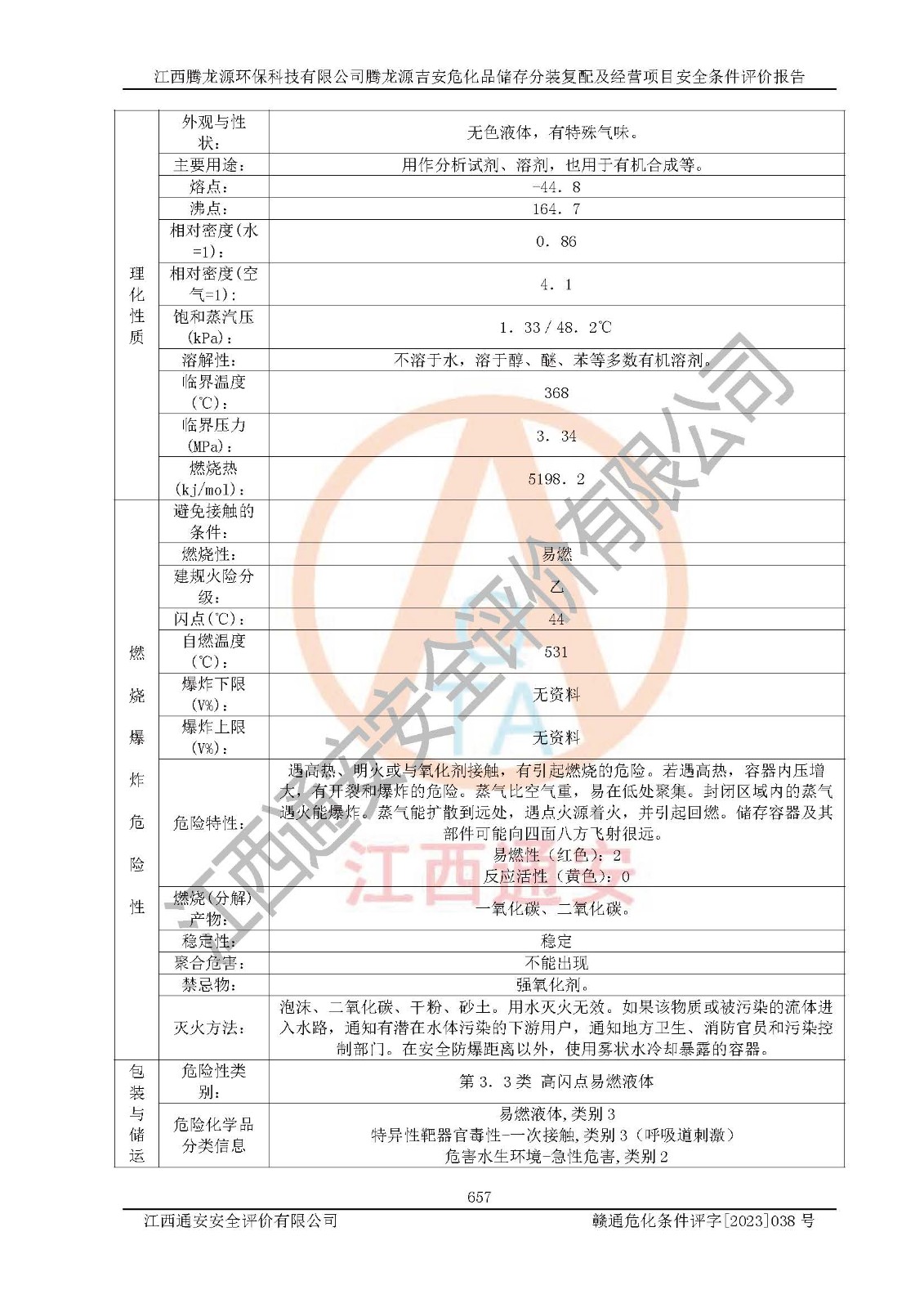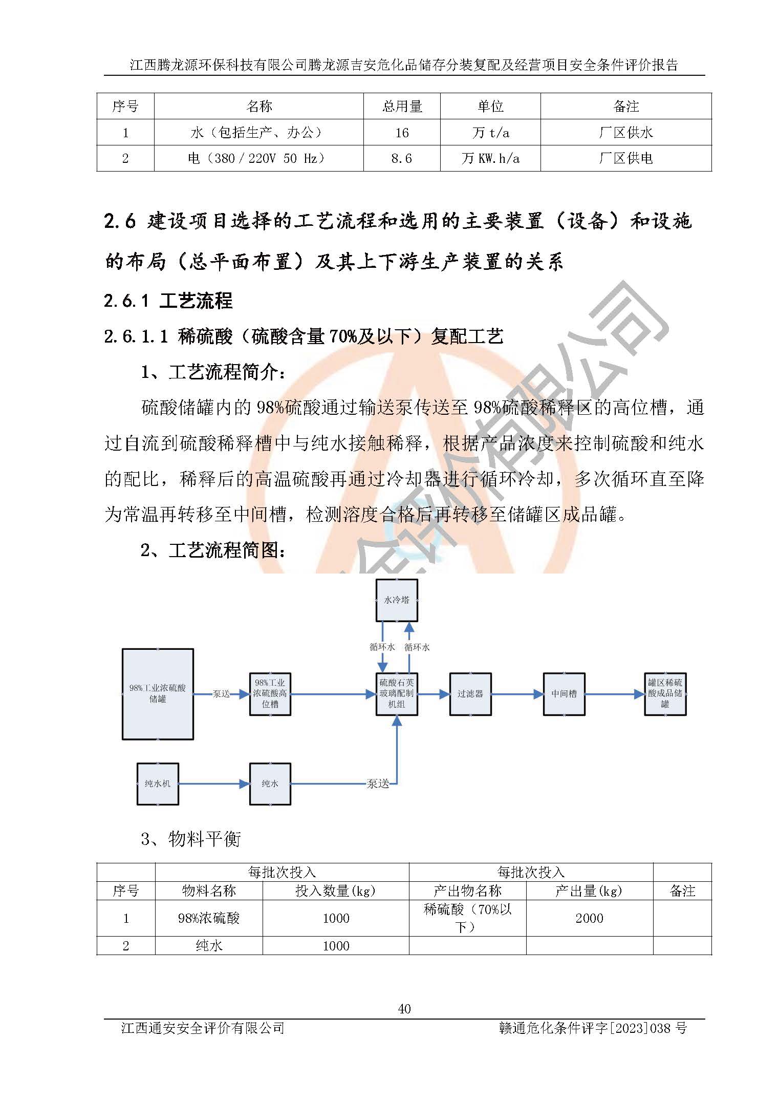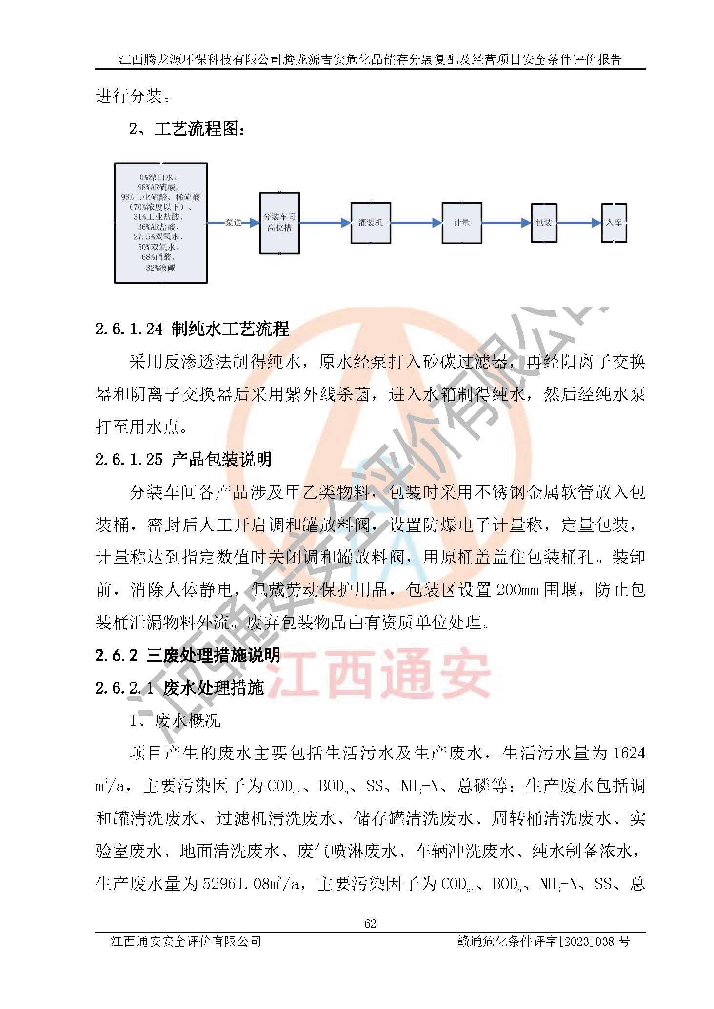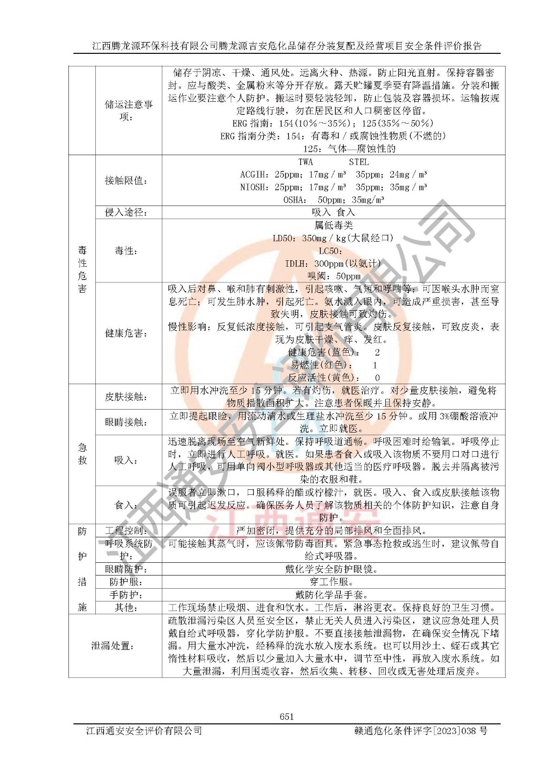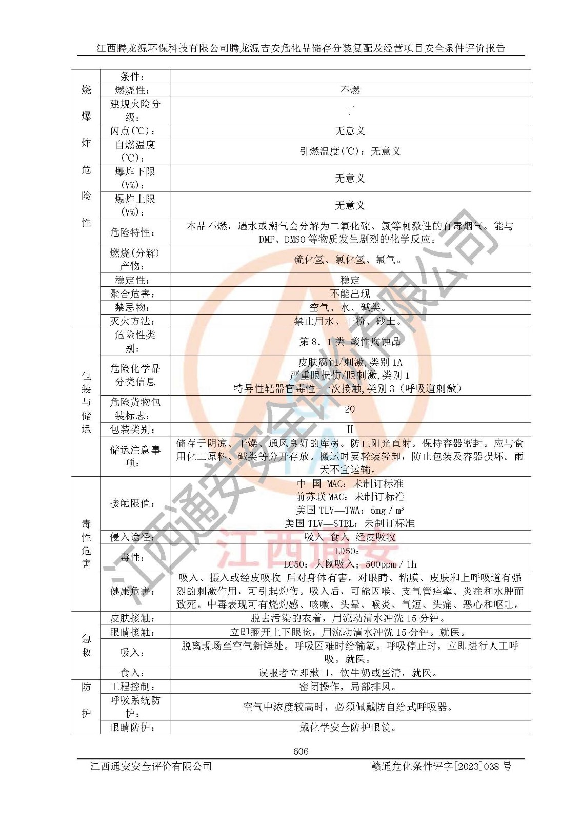 項(xiàng)目簡介 | 江西騰龍?jiān)?*科技有限公司成立于2022年6月20日,并取得吉水縣市場監(jiān)督管理局頒發(fā)的《營業(yè)執(zhí)照》,營業(yè)執(zhí)照統(tǒng)一社會信用代碼:91360822MABQK5GB5P。公司注冊住所:江西省吉安市吉水縣城西工業(yè)園區(qū)二期金龍路。法定**人:吳詩明。注冊資本壹仟萬元整。企業(yè)性質(zhì)為有限責(zé)任公司(自然人投資或控股)。營業(yè)執(zhí)照許可經(jīng)營范圍:一般項(xiàng)目:化工產(chǎn)品銷售(不含許可類化工產(chǎn)品)(除許可業(yè)務(wù)外,可自主依法經(jīng)營法律法規(guī)非禁止或限制的項(xiàng)目)。 江西騰龍?jiān)?*科技有限公司2023年2月24日取得吉水縣發(fā)展和改革委員會頒發(fā)的《江西省企業(yè)投資項(xiàng)目備案通知書》,備案項(xiàng)目名稱為:騰龍?jiān)醇参;穬Υ娣盅b復(fù)配及經(jīng)營項(xiàng)目。項(xiàng)目統(tǒng)一代碼為:2302-360822-04-01-318980。項(xiàng)目總投資20000萬元,項(xiàng)目總占地面積31.34畝。 根據(jù)《危險(xiǎn)化學(xué)品目錄(2015版)》(**安監(jiān)總局等十部門公告[2015]第5號)及應(yīng)急管理部、工業(yè)和信息化部、公安部、生態(tài)環(huán)境部、交通運(yùn)輸部、農(nóng)業(yè)農(nóng)村部、衛(wèi)生健康委、市場監(jiān)管總局、鐵路局、民航局決定調(diào)整《危險(xiǎn)化學(xué)品目錄(2015版)》(應(yīng)急管理部、工業(yè)和信息化部、公安部、生態(tài)環(huán)境部、交通運(yùn)輸部、農(nóng)業(yè)農(nóng)村部、衛(wèi)生健康委、市場監(jiān)管總局、鐵路局、民航局公告2022年第8號)等文件對該項(xiàng)目生產(chǎn)過程中所涉及的化學(xué)品進(jìn)行辨識:項(xiàng)目涉及的硫酸、鹽酸、雙氧水、硝酸、氫氧化鈉(固體和溶液)、次氯酸鈉溶液、氯酸鈉、氯酸鉀、鉻酸酐、高錳酸鈉、高錳酸鉀、硝酸鉀、重鉻酸鉀、重鉻酸鈉、硝酸鈉、亞硝酸鈉、過硫酸鈉、過硫酸銨、過硫酸鉀、漂白粉、氯化亞砜、甲醇、乙醇、二甲苯、甲苯、**、天那水、乙酸、乙酸乙酯、甲醛溶液、三氯乙烯、正丁醇、異丙醇、石油醚、醋酸酐、甲基乙基酮(丁酮)、三氯甲烷、乙醚、氨水(20%)、甲酸、二氯甲烷、**苯、乙酸丁酯、氫氟酸、磷酸、硫化鈉(無水)、氫氧化鉀、氨基磺酸、三氯化鐵、九水硝酸鐵、氯化鋅、硫脲、硼酸、硫酸鎳、氯化鎳、氟化氫銨、氟化氫鉀、氟化氫鈉、偏硅酸鈉、九水偏硅酸鈉、氟硅酸鈉、亞硫酸氫鈉、氟化鈉、氟化鉀、六次甲基四胺、結(jié)晶氯化鋁、碳酸二乙酯、碳酸二甲酯、酸性清洗劑、退鍍劑、開油水、洗網(wǎng)水、污水殺菌劑(復(fù)配的次氯酸鈉溶液)、電解液等屬于危險(xiǎn)化學(xué)品。 江西騰龍?jiān)?*科技有限公司騰龍?jiān)醇参;穬Υ娣盅b復(fù)配及經(jīng)營項(xiàng)目只進(jìn)行物理混合復(fù)配、分裝等作業(yè),不涉及化學(xué)反應(yīng)過程。因此該公司?;穫}儲經(jīng)營活動需要辦理《危險(xiǎn)化學(xué)品經(jīng)營許可證》。 根據(jù)《中華人民共和國監(jiān)控化學(xué)品管理?xiàng)l例》(中華人民共和國***令**90號,經(jīng)中華人民共和國***令第588號修改)及《各類監(jiān)控化學(xué)品名錄》(中華人民共和國工業(yè)和信息化部令第52號;2020年)、《列入第三類監(jiān)控化學(xué)品的新增品種清單》**石油和化學(xué)工業(yè)局令**號等規(guī)定進(jìn)行辨識:項(xiàng)目涉及的氯化亞砜屬于第三類監(jiān)控化學(xué)品。 根據(jù)《易制毒化學(xué)品管理?xiàng)l例》(***令第445號,經(jīng)***令第653號、***第666號、***第703號修改)及附表規(guī)定、中華人民共和國公安部 中華人民共和國商務(wù)部、**衛(wèi)生和計(jì)劃生育委員會、中華人民共和國海關(guān)總署、**安全生產(chǎn)監(jiān)督管理總局、**食品藥品監(jiān)督管理總局《關(guān)于將4-苯胺基-N-苯乙基哌啶、N-苯乙基-4-哌啶酮、N-甲基-1-苯基-1-氯-2-丙胺、溴素、1-苯基-1-**5種物質(zhì)列入易制毒化學(xué)品管理的公告》(國辦函[2017]**20號)、《***辦公廳關(guān)于同意將1-苯基-2-溴-1-**和3-氧-2-苯基丁腈列入易制毒化學(xué)品品種目錄的函》(國辦函[2014]第40號)、《***辦公廳關(guān)于同意將α-苯乙酰乙酸甲酯等6種物質(zhì)列入易制毒化學(xué)品品種目錄的函》(國辦函〔2021〕58號)等進(jìn)行辨識:項(xiàng)目涉及的硫酸、鹽酸、高錳酸鉀、甲苯、**、甲基乙基酮等屬于第三類易制毒化學(xué)品;醋酸酐、三氯甲烷、乙醚等屬于第二類易制毒化學(xué)品。 根據(jù)《危險(xiǎn)化學(xué)品名錄[2015年版]》(**安監(jiān)總局等十部門[2015]第5號)進(jìn)行劇毒化學(xué)品辨識:項(xiàng)目不涉及劇毒化學(xué)品。 根據(jù)《高毒物品目錄(2003年版)》(原衛(wèi)生部衛(wèi)法監(jiān)發(fā)[2003]142號)對項(xiàng)目涉及的化學(xué)品進(jìn)行高毒物品辨識:項(xiàng)目涉及的甲醛溶液、硫酸鎳、氯化鎳、氟化氫銨、氟化氫鉀、氟化氫鈉、氟化鈉、氟化鉀、鉻酸酐、高錳酸鉀、高錳酸鈉、重鉻酸鉀、重鉻酸鈉等屬于高毒物品。 根據(jù)中華人民共和國公安部《易制爆危險(xiǎn)化學(xué)品名錄》(2017年版)中規(guī)定進(jìn)行辨識:項(xiàng)目涉及的雙氧水、硝酸、氯酸鈉、氯酸鉀、高錳酸鉀、高錳酸鈉、硝酸鉀、重鉻酸鉀、重鉻酸鈉、硝酸鈉、六次甲基四胺等屬于易