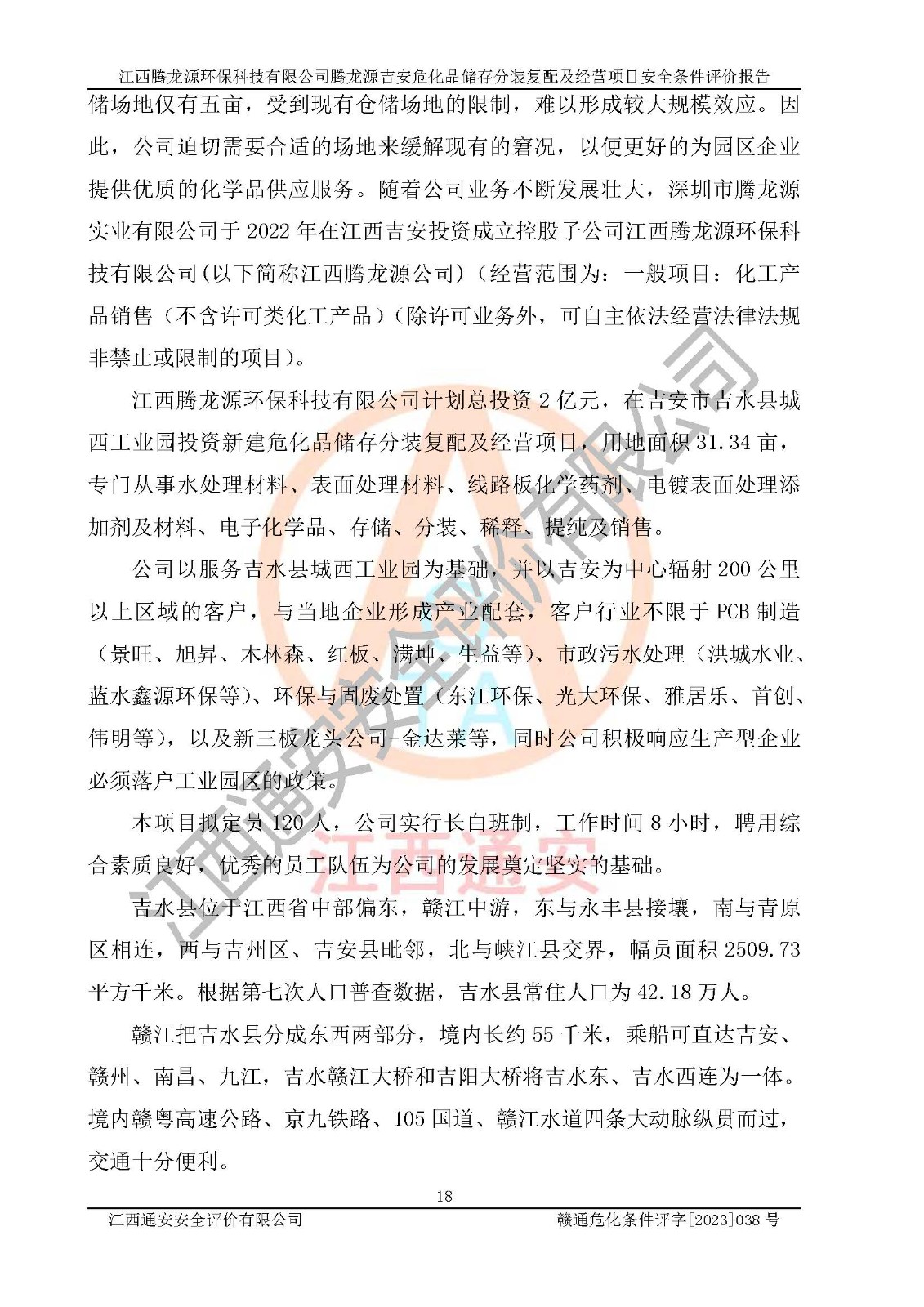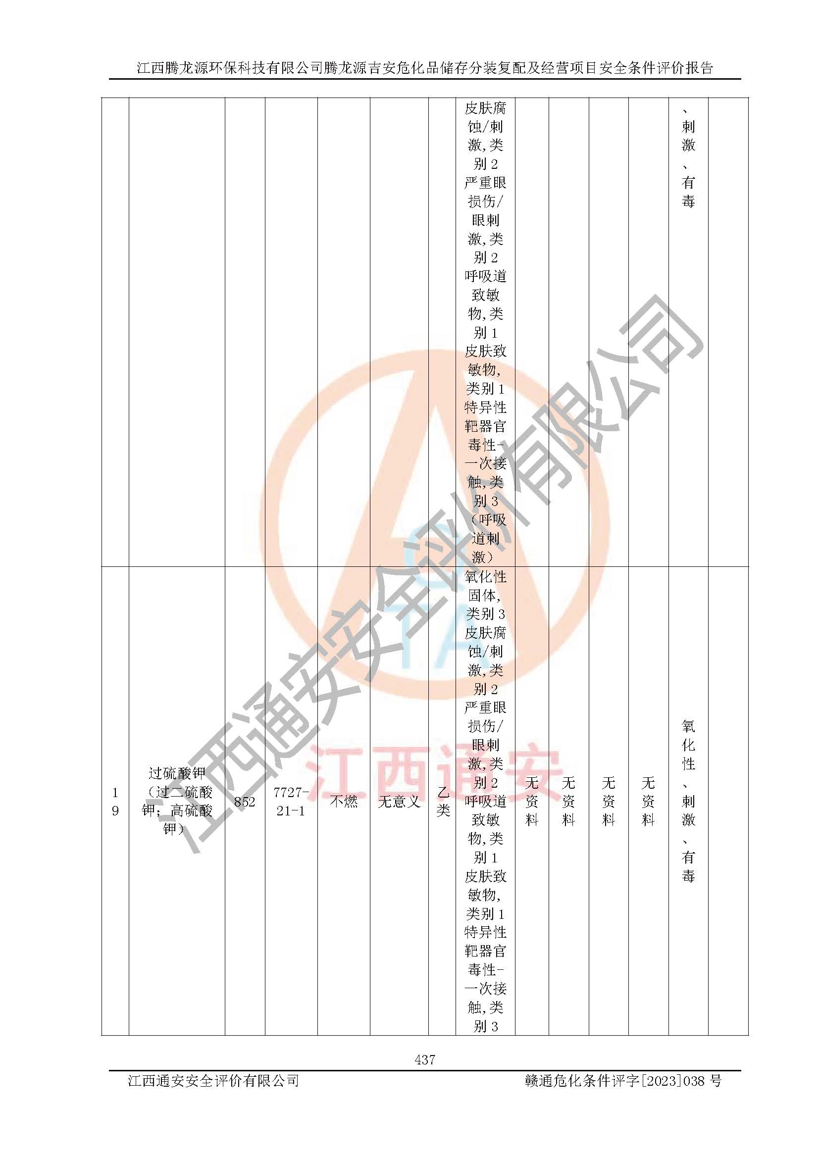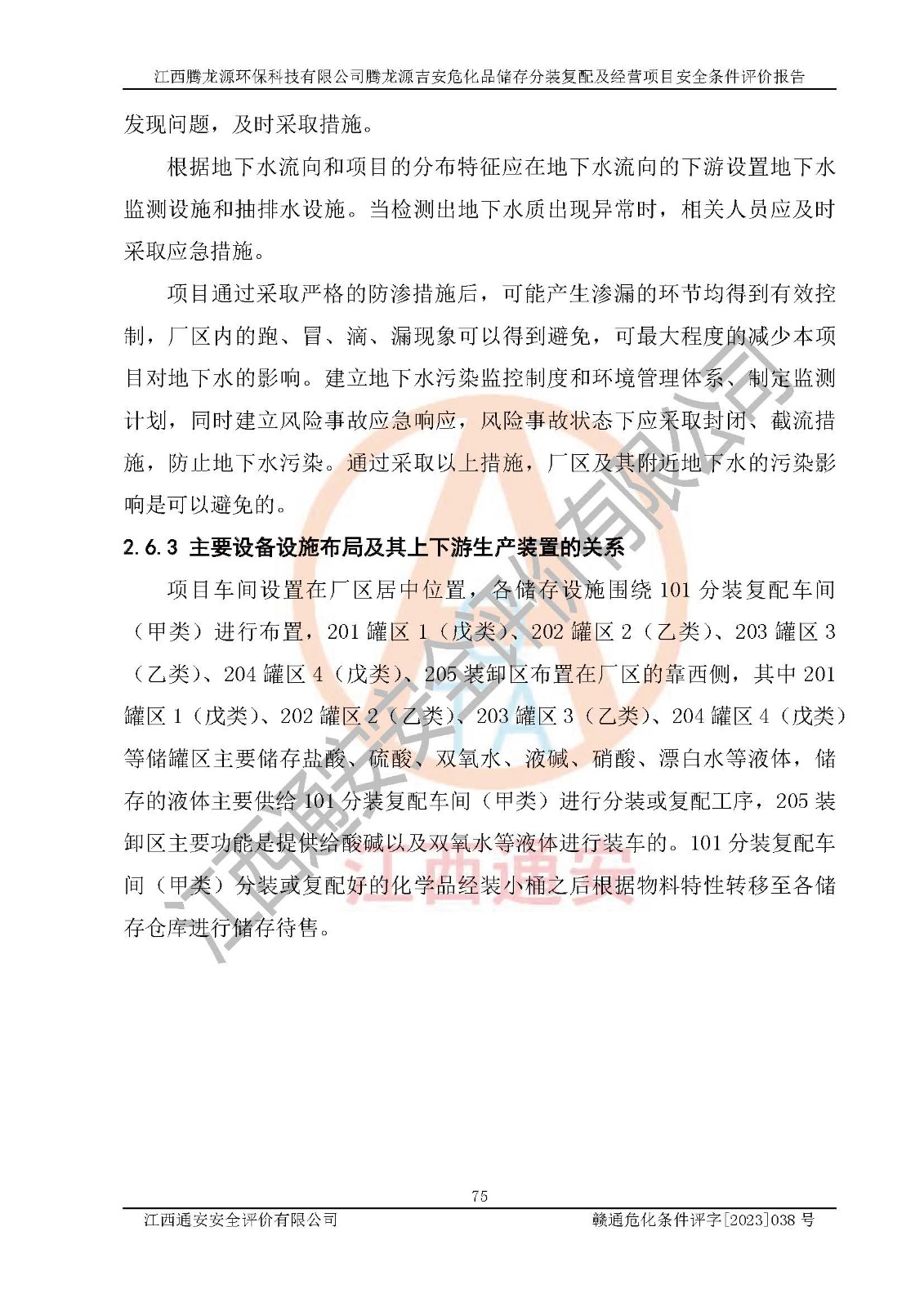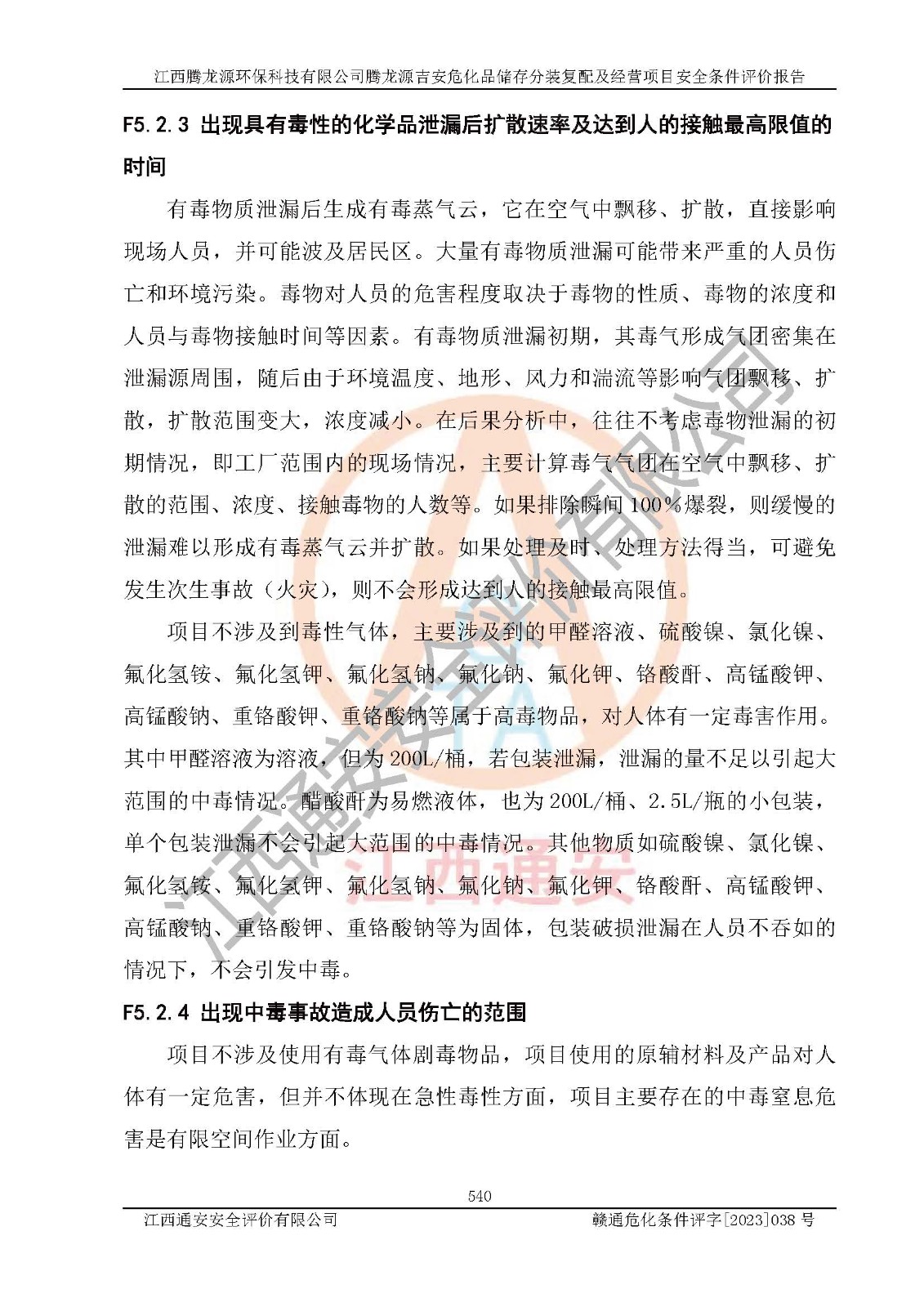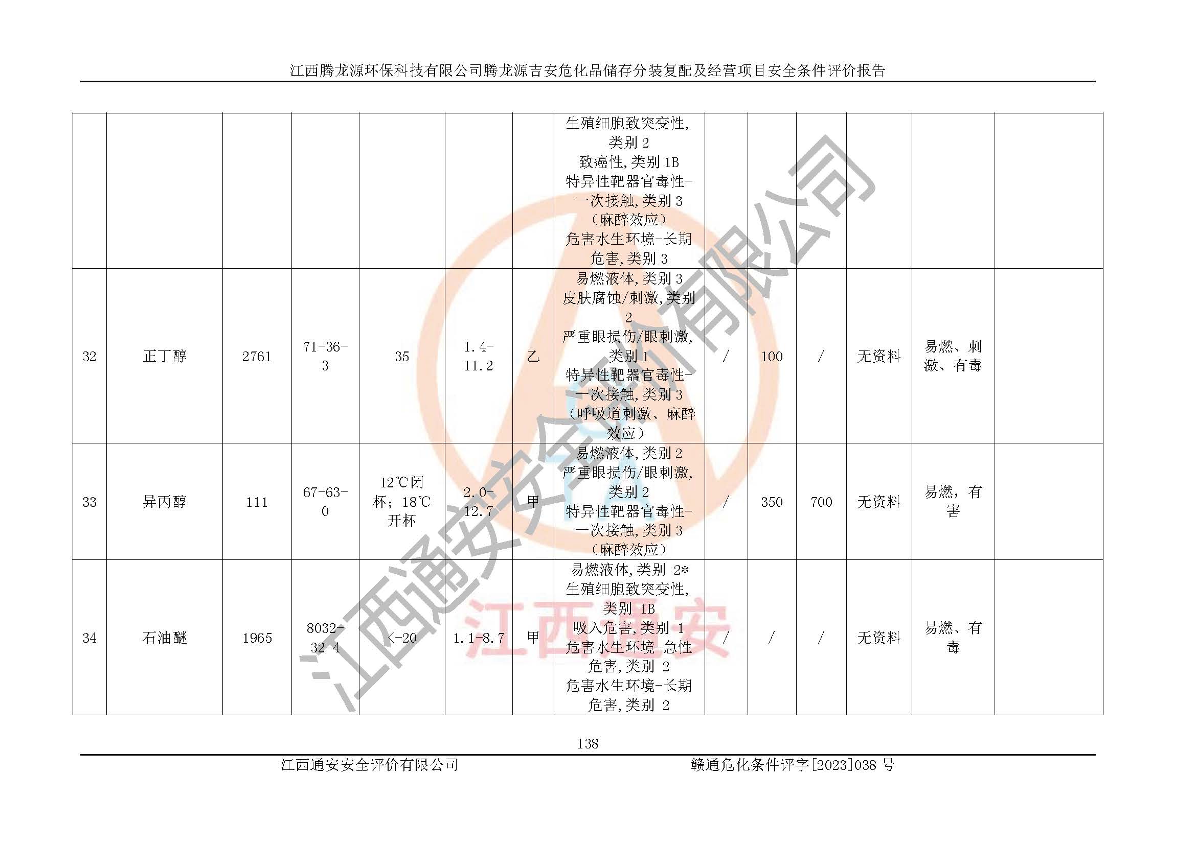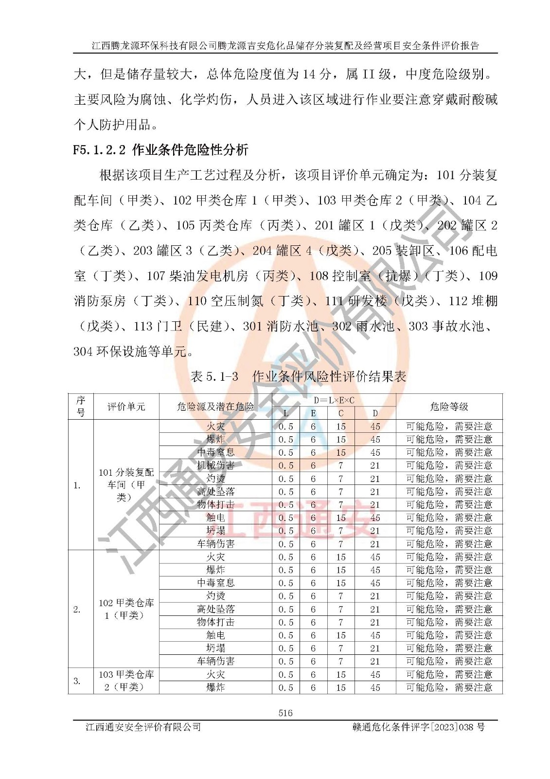 項(xiàng)目簡介 | 江西騰龍?jiān)?*科技有限公司成立于2022年6月20日,并取得吉水縣市場監(jiān)督管理局頒發(fā)的《營業(yè)執(zhí)照》,營業(yè)執(zhí)照統(tǒng)一社會信用代碼:91360822MABQK5GB5P。公司注冊住所:江西省吉安市吉水縣城西工業(yè)園區(qū)二期金龍路。法定**人:吳詩明。注冊資本壹仟萬元整。企業(yè)性質(zhì)為有限責(zé)任公司(自然人投資或控股)。營業(yè)執(zhí)照許可經(jīng)營范圍:一般項(xiàng)目:化工產(chǎn)品銷售(不含許可類化工產(chǎn)品)(除許可業(yè)務(wù)外,可自主依法經(jīng)營法律法規(guī)非禁止或限制的項(xiàng)目)。 江西騰龍?jiān)?*科技有限公司2023年2月24日取得吉水縣發(fā)展和改革委員會頒發(fā)的《江西省企業(yè)投資項(xiàng)目備案通知書》,備案項(xiàng)目名稱為:騰龍?jiān)醇参;穬Υ娣盅b復(fù)配及經(jīng)營項(xiàng)目。項(xiàng)目統(tǒng)一代碼為:2302-360822-04-01-318980。項(xiàng)目總投資20000萬元,項(xiàng)目總占地面積31.34畝。 根據(jù)《危險(xiǎn)化學(xué)品目錄(2015版)》(**安監(jiān)總局等十部門公告[2015]第5號)及應(yīng)急管理部、工業(yè)和信息化部、公安部、生態(tài)環(huán)境部、交通運(yùn)輸部、農(nóng)業(yè)農(nóng)村部、衛(wèi)生健康委、市場監(jiān)管總局、鐵路局、民航局決定調(diào)整《危險(xiǎn)化學(xué)品目錄(2015版)》(應(yīng)急管理部、工業(yè)和信息化部、公安部、生態(tài)環(huán)境部、交通運(yùn)輸部、農(nóng)業(yè)農(nóng)村部、衛(wèi)生健康委、市場監(jiān)管總局、鐵路局、民航局公告2022年第8號)等文件對該項(xiàng)目生產(chǎn)過程中所涉及的化學(xué)品進(jìn)行辨識:項(xiàng)目涉及的硫酸、鹽酸、雙氧水、硝酸、氫氧化鈉(固體和溶液)、次氯酸鈉溶液、氯酸鈉、氯酸鉀、鉻酸酐、高錳酸鈉、高錳酸鉀、硝酸鉀、重鉻酸鉀、重鉻酸鈉、硝酸鈉、亞硝酸鈉、過硫酸鈉、過硫酸銨、過硫酸鉀、漂白粉、氯化亞砜、甲醇、乙醇、二甲苯、甲苯、**、天那水、乙酸、乙酸乙酯、甲醛溶液、三氯乙烯、正丁醇、異丙醇、石油醚、醋酸酐、甲基乙基酮(丁酮)、三氯甲烷、乙醚、氨水(20%)、甲酸、二氯甲烷、**苯、乙酸丁酯、氫氟酸、磷酸、硫化鈉(無水)、氫氧化鉀、氨基磺酸、三氯化鐵、九水硝酸鐵、氯化鋅、硫脲、硼酸、硫酸鎳、氯化鎳、氟化氫銨、氟化氫鉀、氟化氫鈉、偏硅酸鈉、九水偏硅酸鈉、氟硅酸鈉、亞硫酸氫鈉、氟化鈉、氟化鉀、六次甲基四胺、結(jié)晶氯化鋁、碳酸二乙酯、碳酸二甲酯、酸性清洗劑、退鍍劑、開油水、洗網(wǎng)水、污水殺菌劑(復(fù)配的次氯酸鈉溶液)、電解液等屬于危險(xiǎn)化學(xué)品。 江西騰龍?jiān)?*科技有限公司騰龍?jiān)醇参;穬Υ娣盅b復(fù)配及經(jīng)營項(xiàng)目只進(jìn)行物理混合復(fù)配、分裝等作業(yè),不涉及化學(xué)反應(yīng)過程。因此該公司?;穫}儲經(jīng)營活動需要辦理《危險(xiǎn)化學(xué)品經(jīng)營許可證》。 根據(jù)《中華人民共和國監(jiān)控化學(xué)品管理?xiàng)l例》(中華人民共和國***令**90號,經(jīng)中華人民共和國***令第588號修改)及《各類監(jiān)控化學(xué)品名錄》(中華人民共和國工業(yè)和信息化部令第52號;2020年)、《列入第三類監(jiān)控化學(xué)品的新增品種清單》**石油和化學(xué)工業(yè)局令**號等規(guī)定進(jìn)行辨識:項(xiàng)目涉及的氯化亞砜屬于第三類監(jiān)控化學(xué)品。 根據(jù)《易制毒化學(xué)品管理?xiàng)l例》(***令第445號,經(jīng)***令第653號、***第666號、***第703號修改)及附表規(guī)定、中華人民共和國公安部 中華人民共和國商務(wù)部、**衛(wèi)生和計(jì)劃生育委員會、中華人民共和國海關(guān)總署、**安全生產(chǎn)監(jiān)督管理總局、**食品藥品監(jiān)督管理總局《關(guān)于將4-苯胺基-N-苯乙基哌啶、N-苯乙基-4-哌啶酮、N-甲基-1-苯基-1-氯-2-丙胺、溴素、1-苯基-1-**5種物質(zhì)列入易制毒化學(xué)品管理的公告》(國辦函[2017]**20號)、《***辦公廳關(guān)于同意將1-苯基-2-溴-1-**和3-氧-2-苯基丁腈列入易制毒化學(xué)品品種目錄的函》(國辦函[2014]第40號)、《***辦公廳關(guān)于同意將α-苯乙酰乙酸甲酯等6種物質(zhì)列入易制毒化學(xué)品品種目錄的函》(國辦函〔2021〕58號)等進(jìn)行辨識:項(xiàng)目涉及的硫酸、鹽酸、高錳酸鉀、甲苯、**、甲基乙基酮等屬于第三類易制毒化學(xué)品;醋酸酐、三氯甲烷、乙醚等屬于第二類易制毒化學(xué)品。 根據(jù)《危險(xiǎn)化學(xué)品名錄[2015年版]》(**安監(jiān)總局等十部門[2015]第5號)進(jìn)行劇毒化學(xué)品辨識:項(xiàng)目不涉及劇毒化學(xué)品。 根據(jù)《高毒物品目錄(2003年版)》(原衛(wèi)生部衛(wèi)法監(jiān)發(fā)[2003]142號)對項(xiàng)目涉及的化學(xué)品進(jìn)行高毒物品辨識:項(xiàng)目涉及的甲醛溶液、硫酸鎳、氯化鎳、氟化氫銨、氟化氫鉀、氟化氫鈉、氟化鈉、氟化鉀、鉻酸酐、高錳酸鉀、高錳酸鈉、重鉻酸鉀、重鉻酸鈉等屬于高毒物品。 根據(jù)中華人民共和國公安部《易制爆危險(xiǎn)化學(xué)品名錄》(2017年版)中規(guī)定進(jìn)行辨識:項(xiàng)目涉及的雙氧水、硝酸、氯酸鈉、氯酸鉀、高錳酸鉀、高錳酸鈉、硝酸鉀、重鉻酸鉀、重鉻酸鈉、硝酸鈉、六次甲基四胺等屬于易