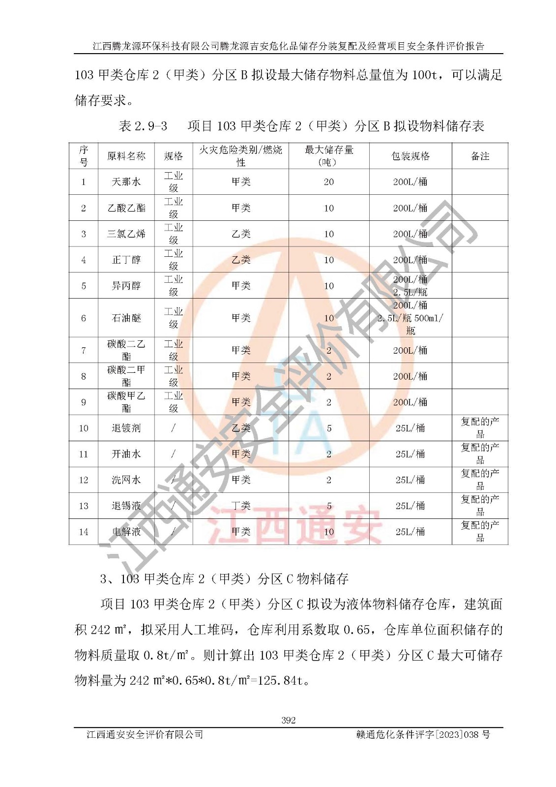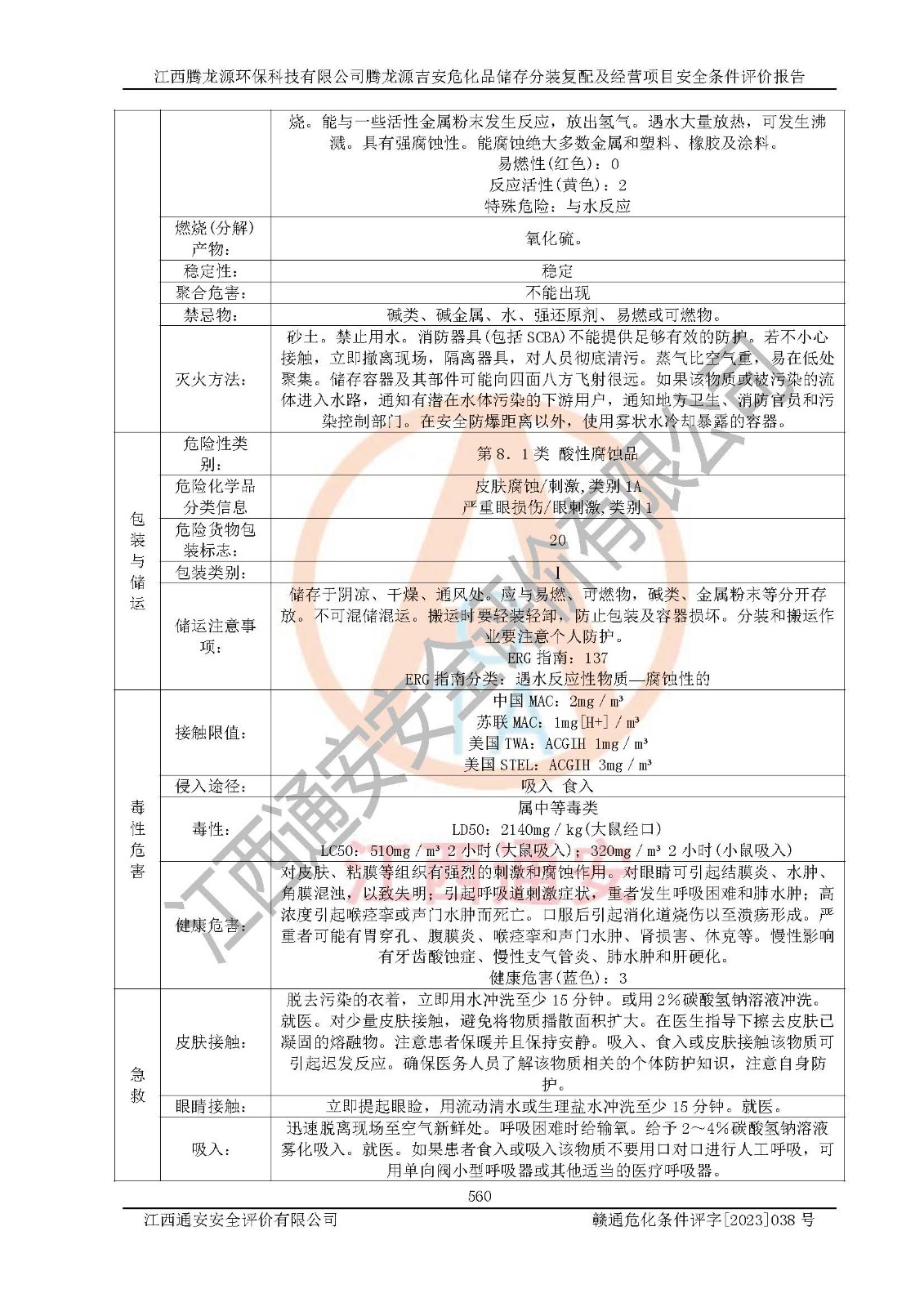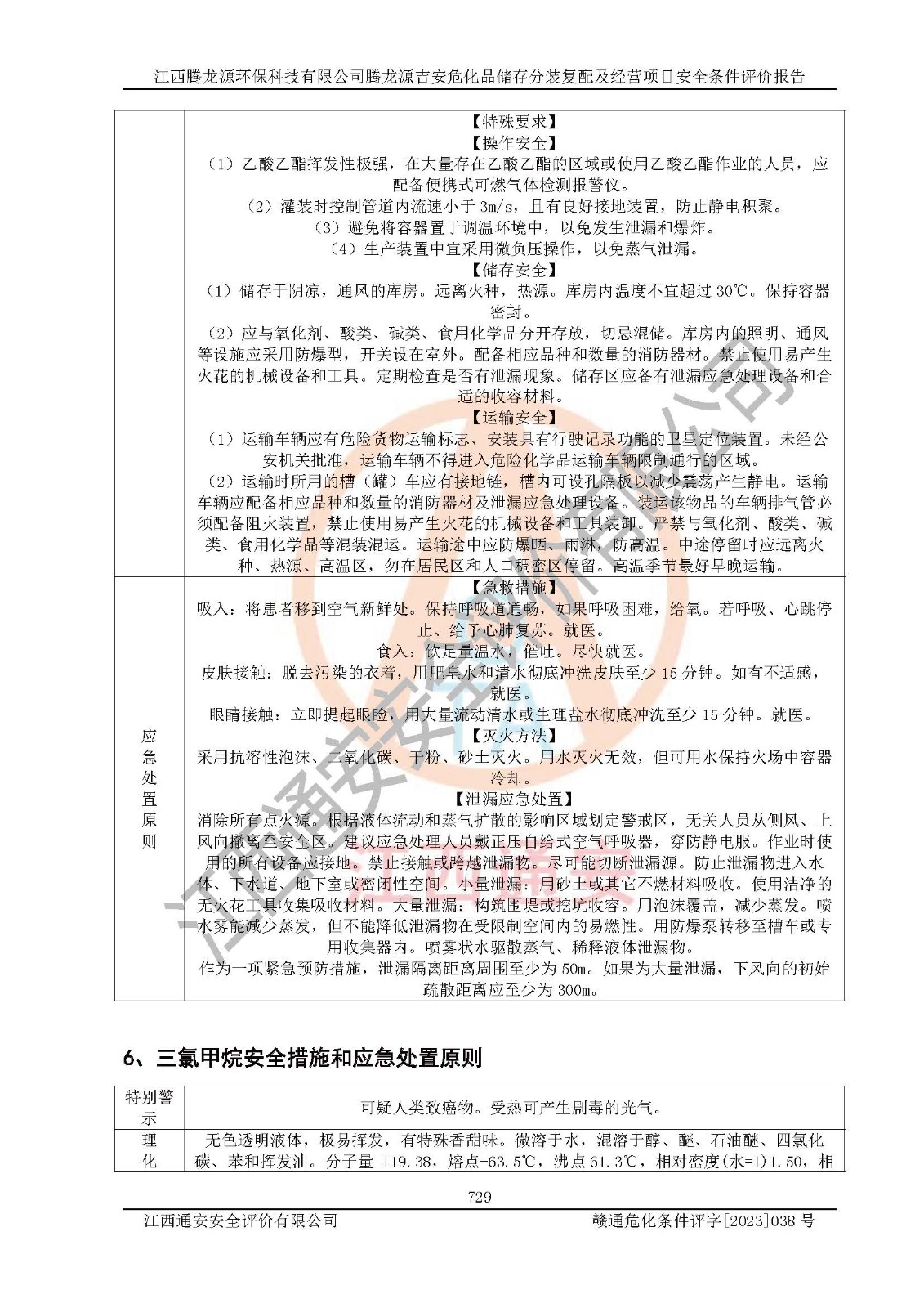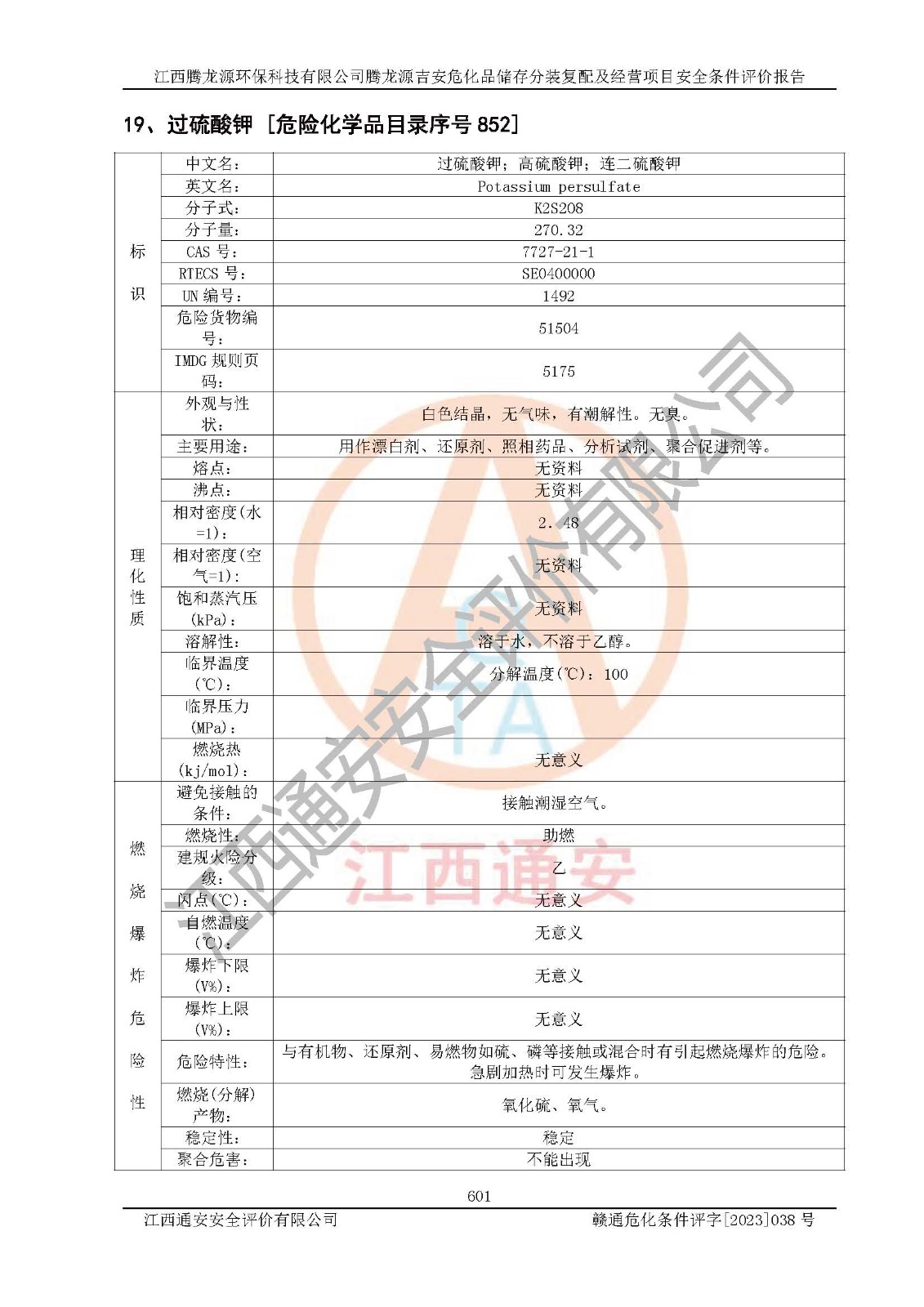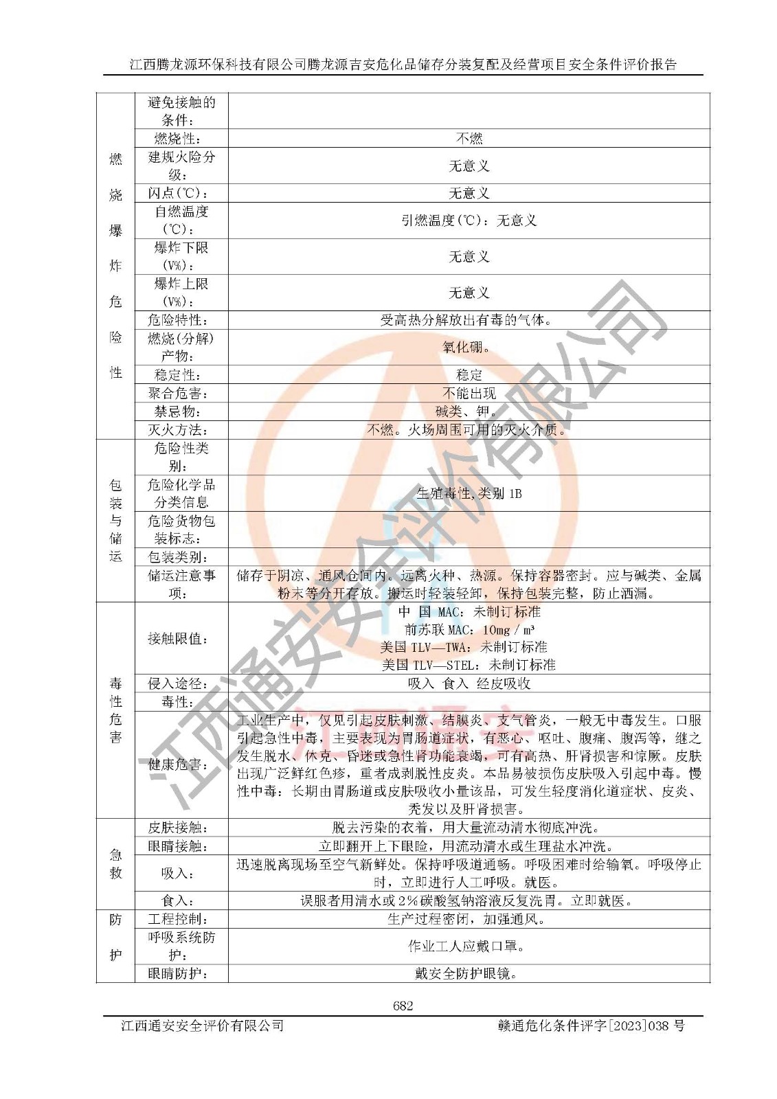 項(xiàng)目簡介 | 江西騰龍?jiān)?*科技有限公司成立于2022年6月20日,并取得吉水縣市場監(jiān)督管理局頒發(fā)的《營業(yè)執(zhí)照》,營業(yè)執(zhí)照統(tǒng)一社會信用代碼:91360822MABQK5GB5P。公司注冊住所:江西省吉安市吉水縣城西工業(yè)園區(qū)二期金龍路。法定**人:吳詩明。注冊資本壹仟萬元整。企業(yè)性質(zhì)為有限責(zé)任公司(自然人投資或控股)。營業(yè)執(zhí)照許可經(jīng)營范圍:一般項(xiàng)目:化工產(chǎn)品銷售(不含許可類化工產(chǎn)品)(除許可業(yè)務(wù)外,可自主依法經(jīng)營法律法規(guī)非禁止或限制的項(xiàng)目)。 江西騰龍?jiān)?*科技有限公司2023年2月24日取得吉水縣發(fā)展和改革委員會頒發(fā)的《江西省企業(yè)投資項(xiàng)目備案通知書》,備案項(xiàng)目名稱為:騰龍?jiān)醇参;穬Υ娣盅b復(fù)配及經(jīng)營項(xiàng)目。項(xiàng)目統(tǒng)一代碼為:2302-360822-04-01-318980。項(xiàng)目總投資20000萬元,項(xiàng)目總占地面積31.34畝。 根據(jù)《危險(xiǎn)化學(xué)品目錄(2015版)》(**安監(jiān)總局等十部門公告[2015]第5號)及應(yīng)急管理部、工業(yè)和信息化部、公安部、生態(tài)環(huán)境部、交通運(yùn)輸部、農(nóng)業(yè)農(nóng)村部、衛(wèi)生健康委、市場監(jiān)管總局、鐵路局、民航局決定調(diào)整《危險(xiǎn)化學(xué)品目錄(2015版)》(應(yīng)急管理部、工業(yè)和信息化部、公安部、生態(tài)環(huán)境部、交通運(yùn)輸部、農(nóng)業(yè)農(nóng)村部、衛(wèi)生健康委、市場監(jiān)管總局、鐵路局、民航局公告2022年第8號)等文件對該項(xiàng)目生產(chǎn)過程中所涉及的化學(xué)品進(jìn)行辨識:項(xiàng)目涉及的硫酸、鹽酸、雙氧水、硝酸、氫氧化鈉(固體和溶液)、次氯酸鈉溶液、氯酸鈉、氯酸鉀、鉻酸酐、高錳酸鈉、高錳酸鉀、硝酸鉀、重鉻酸鉀、重鉻酸鈉、硝酸鈉、亞硝酸鈉、過硫酸鈉、過硫酸銨、過硫酸鉀、漂白粉、氯化亞砜、甲醇、乙醇、二甲苯、甲苯、**、天那水、乙酸、乙酸乙酯、甲醛溶液、三氯乙烯、正丁醇、異丙醇、石油醚、醋酸酐、甲基乙基酮(丁酮)、三氯甲烷、乙醚、氨水(20%)、甲酸、二氯甲烷、**苯、乙酸丁酯、氫氟酸、磷酸、硫化鈉(無水)、氫氧化鉀、氨基磺酸、三氯化鐵、九水硝酸鐵、氯化鋅、硫脲、硼酸、硫酸鎳、氯化鎳、氟化氫銨、氟化氫鉀、氟化氫鈉、偏硅酸鈉、九水偏硅酸鈉、氟硅酸鈉、亞硫酸氫鈉、氟化鈉、氟化鉀、六次甲基四胺、結(jié)晶氯化鋁、碳酸二乙酯、碳酸二甲酯、酸性清洗劑、退鍍劑、開油水、洗網(wǎng)水、污水殺菌劑(復(fù)配的次氯酸鈉溶液)、電解液等屬于危險(xiǎn)化學(xué)品。 江西騰龍?jiān)?*科技有限公司騰龍?jiān)醇参;穬Υ娣盅b復(fù)配及經(jīng)營項(xiàng)目只進(jìn)行物理混合復(fù)配、分裝等作業(yè),不涉及化學(xué)反應(yīng)過程。因此該公司?;穫}儲經(jīng)營活動需要辦理《危險(xiǎn)化學(xué)品經(jīng)營許可證》。 根據(jù)《中華人民共和國監(jiān)控化學(xué)品管理?xiàng)l例》(中華人民共和國***令**90號,經(jīng)中華人民共和國***令第588號修改)及《各類監(jiān)控化學(xué)品名錄》(中華人民共和國工業(yè)和信息化部令第52號;2020年)、《列入第三類監(jiān)控化學(xué)品的新增品種清單》**石油和化學(xué)工業(yè)局令**號等規(guī)定進(jìn)行辨識:項(xiàng)目涉及的氯化亞砜屬于第三類監(jiān)控化學(xué)品。 根據(jù)《易制毒化學(xué)品管理?xiàng)l例》(***令第445號,經(jīng)***令第653號、***第666號、***第703號修改)及附表規(guī)定、中華人民共和國公安部 中華人民共和國商務(wù)部、**衛(wèi)生和計(jì)劃生育委員會、中華人民共和國海關(guān)總署、**安全生產(chǎn)監(jiān)督管理總局、**食品藥品監(jiān)督管理總局《關(guān)于將4-苯胺基-N-苯乙基哌啶、N-苯乙基-4-哌啶酮、N-甲基-1-苯基-1-氯-2-丙胺、溴素、1-苯基-1-**5種物質(zhì)列入易制毒化學(xué)品管理的公告》(國辦函[2017]**20號)、《***辦公廳關(guān)于同意將1-苯基-2-溴-1-**和3-氧-2-苯基丁腈列入易制毒化學(xué)品品種目錄的函》(國辦函[2014]第40號)、《***辦公廳關(guān)于同意將α-苯乙酰乙酸甲酯等6種物質(zhì)列入易制毒化學(xué)品品種目錄的函》(國辦函〔2021〕58號)等進(jìn)行辨識:項(xiàng)目涉及的硫酸、鹽酸、高錳酸鉀、甲苯、**、甲基乙基酮等屬于第三類易制毒化學(xué)品;醋酸酐、三氯甲烷、乙醚等屬于第二類易制毒化學(xué)品。 根據(jù)《危險(xiǎn)化學(xué)品名錄[2015年版]》(**安監(jiān)總局等十部門[2015]第5號)進(jìn)行劇毒化學(xué)品辨識:項(xiàng)目不涉及劇毒化學(xué)品。 根據(jù)《高毒物品目錄(2003年版)》(原衛(wèi)生部衛(wèi)法監(jiān)發(fā)[2003]142號)對項(xiàng)目涉及的化學(xué)品進(jìn)行高毒物品辨識:項(xiàng)目涉及的甲醛溶液、硫酸鎳、氯化鎳、氟化氫銨、氟化氫鉀、氟化氫鈉、氟化鈉、氟化鉀、鉻酸酐、高錳酸鉀、高錳酸鈉、重鉻酸鉀、重鉻酸鈉等屬于高毒物品。 根據(jù)中華人民共和國公安部《易制爆危險(xiǎn)化學(xué)品名錄》(2017年版)中規(guī)定進(jìn)行辨識:項(xiàng)目涉及的雙氧水、硝酸、氯酸鈉、氯酸鉀、高錳酸鉀、高錳酸鈉、硝酸鉀、重鉻酸鉀、重鉻酸鈉、硝酸鈉、六次甲基四胺等屬于易