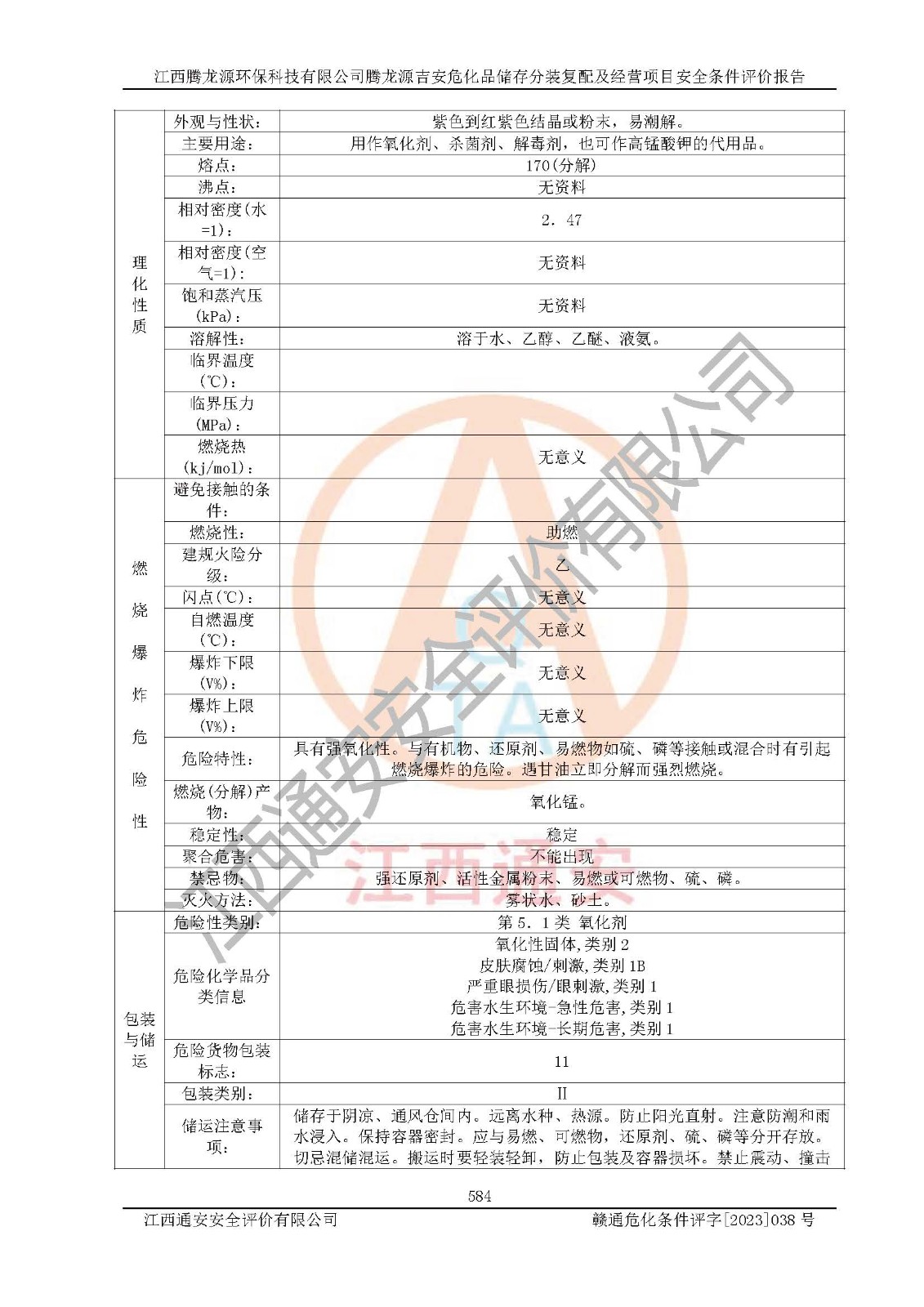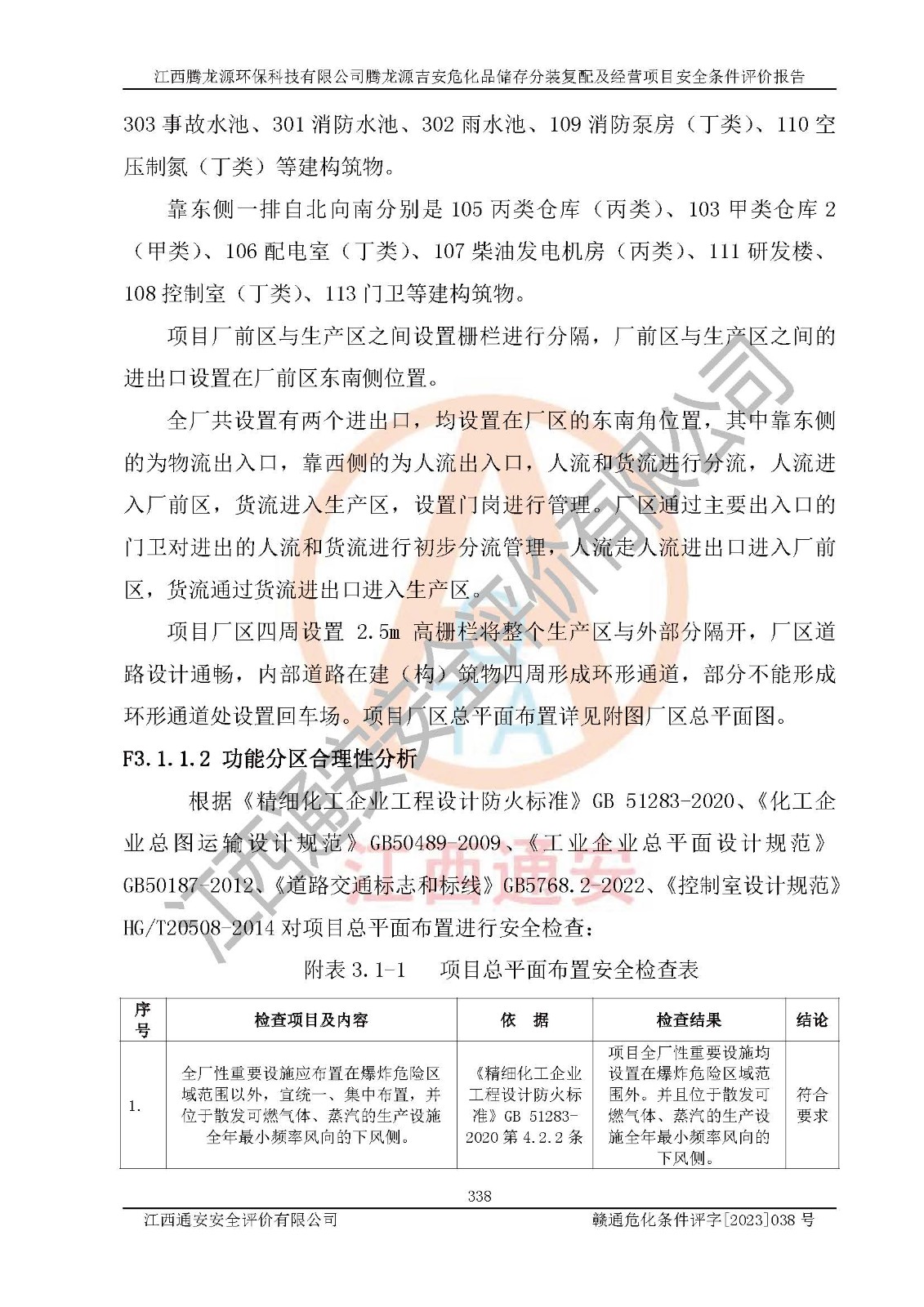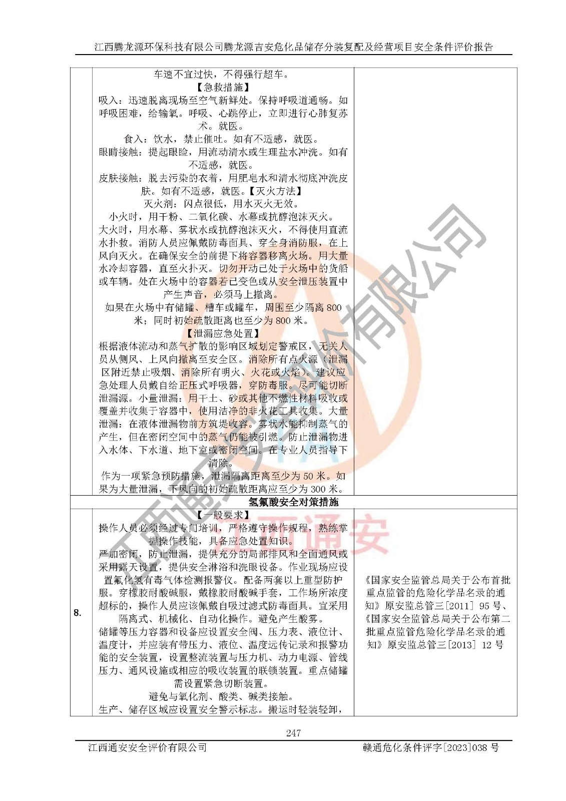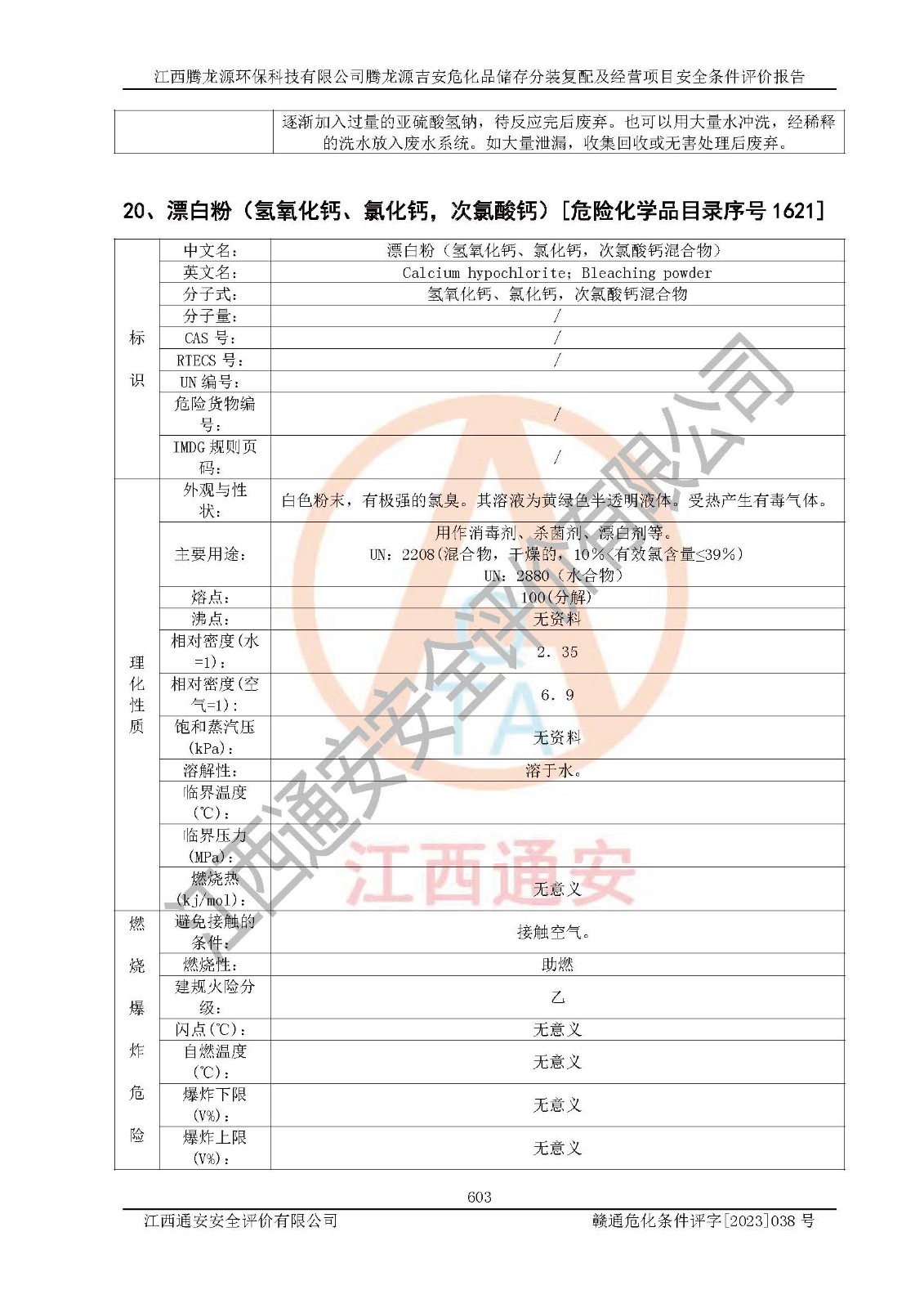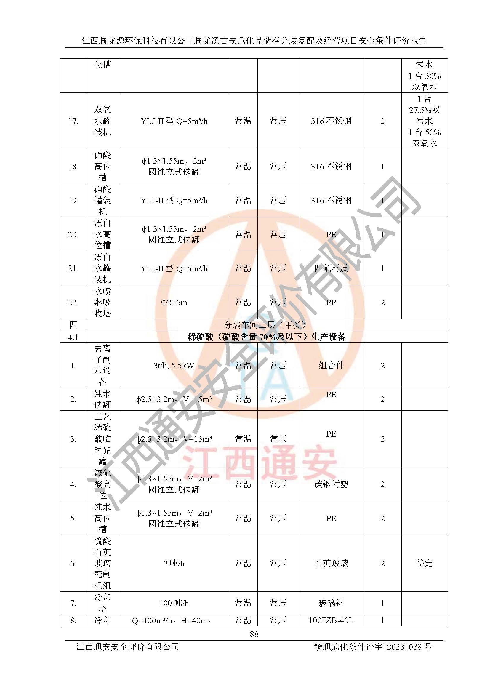 項(xiàng)目簡介 | 江西騰龍?jiān)?*科技有限公司成立于2022年6月20日,并取得吉水縣市場監(jiān)督管理局頒發(fā)的《營業(yè)執(zhí)照》,營業(yè)執(zhí)照統(tǒng)一社會信用代碼:91360822MABQK5GB5P。公司注冊住所:江西省吉安市吉水縣城西工業(yè)園區(qū)二期金龍路。法定**人:吳詩明。注冊資本壹仟萬元整。企業(yè)性質(zhì)為有限責(zé)任公司(自然人投資或控股)。營業(yè)執(zhí)照許可經(jīng)營范圍:一般項(xiàng)目:化工產(chǎn)品銷售(不含許可類化工產(chǎn)品)(除許可業(yè)務(wù)外,可自主依法經(jīng)營法律法規(guī)非禁止或限制的項(xiàng)目)。 江西騰龍?jiān)?*科技有限公司2023年2月24日取得吉水縣發(fā)展和改革委員會頒發(fā)的《江西省企業(yè)投資項(xiàng)目備案通知書》,備案項(xiàng)目名稱為:騰龍?jiān)醇参;穬Υ娣盅b復(fù)配及經(jīng)營項(xiàng)目。項(xiàng)目統(tǒng)一代碼為:2302-360822-04-01-318980。項(xiàng)目總投資20000萬元,項(xiàng)目總占地面積31.34畝。 根據(jù)《危險(xiǎn)化學(xué)品目錄(2015版)》(**安監(jiān)總局等十部門公告[2015]第5號)及應(yīng)急管理部、工業(yè)和信息化部、公安部、生態(tài)環(huán)境部、交通運(yùn)輸部、農(nóng)業(yè)農(nóng)村部、衛(wèi)生健康委、市場監(jiān)管總局、鐵路局、民航局決定調(diào)整《危險(xiǎn)化學(xué)品目錄(2015版)》(應(yīng)急管理部、工業(yè)和信息化部、公安部、生態(tài)環(huán)境部、交通運(yùn)輸部、農(nóng)業(yè)農(nóng)村部、衛(wèi)生健康委、市場監(jiān)管總局、鐵路局、民航局公告2022年第8號)等文件對該項(xiàng)目生產(chǎn)過程中所涉及的化學(xué)品進(jìn)行辨識:項(xiàng)目涉及的硫酸、鹽酸、雙氧水、硝酸、氫氧化鈉(固體和溶液)、次氯酸鈉溶液、氯酸鈉、氯酸鉀、鉻酸酐、高錳酸鈉、高錳酸鉀、硝酸鉀、重鉻酸鉀、重鉻酸鈉、硝酸鈉、亞硝酸鈉、過硫酸鈉、過硫酸銨、過硫酸鉀、漂白粉、氯化亞砜、甲醇、乙醇、二甲苯、甲苯、**、天那水、乙酸、乙酸乙酯、甲醛溶液、三氯乙烯、正丁醇、異丙醇、石油醚、醋酸酐、甲基乙基酮(丁酮)、三氯甲烷、乙醚、氨水(20%)、甲酸、二氯甲烷、**苯、乙酸丁酯、氫氟酸、磷酸、硫化鈉(無水)、氫氧化鉀、氨基磺酸、三氯化鐵、九水硝酸鐵、氯化鋅、硫脲、硼酸、硫酸鎳、氯化鎳、氟化氫銨、氟化氫鉀、氟化氫鈉、偏硅酸鈉、九水偏硅酸鈉、氟硅酸鈉、亞硫酸氫鈉、氟化鈉、氟化鉀、六次甲基四胺、結(jié)晶氯化鋁、碳酸二乙酯、碳酸二甲酯、酸性清洗劑、退鍍劑、開油水、洗網(wǎng)水、污水殺菌劑(復(fù)配的次氯酸鈉溶液)、電解液等屬于危險(xiǎn)化學(xué)品。 江西騰龍?jiān)?*科技有限公司騰龍?jiān)醇参;穬Υ娣盅b復(fù)配及經(jīng)營項(xiàng)目只進(jìn)行物理混合復(fù)配、分裝等作業(yè),不涉及化學(xué)反應(yīng)過程。因此該公司?;穫}儲經(jīng)營活動需要辦理《危險(xiǎn)化學(xué)品經(jīng)營許可證》。 根據(jù)《中華人民共和國監(jiān)控化學(xué)品管理?xiàng)l例》(中華人民共和國***令**90號,經(jīng)中華人民共和國***令第588號修改)及《各類監(jiān)控化學(xué)品名錄》(中華人民共和國工業(yè)和信息化部令第52號;2020年)、《列入第三類監(jiān)控化學(xué)品的新增品種清單》**石油和化學(xué)工業(yè)局令**號等規(guī)定進(jìn)行辨識:項(xiàng)目涉及的氯化亞砜屬于第三類監(jiān)控化學(xué)品。 根據(jù)《易制毒化學(xué)品管理?xiàng)l例》(***令第445號,經(jīng)***令第653號、***第666號、***第703號修改)及附表規(guī)定、中華人民共和國公安部 中華人民共和國商務(wù)部、**衛(wèi)生和計(jì)劃生育委員會、中華人民共和國海關(guān)總署、**安全生產(chǎn)監(jiān)督管理總局、**食品藥品監(jiān)督管理總局《關(guān)于將4-苯胺基-N-苯乙基哌啶、N-苯乙基-4-哌啶酮、N-甲基-1-苯基-1-氯-2-丙胺、溴素、1-苯基-1-**5種物質(zhì)列入易制毒化學(xué)品管理的公告》(國辦函[2017]**20號)、《***辦公廳關(guān)于同意將1-苯基-2-溴-1-**和3-氧-2-苯基丁腈列入易制毒化學(xué)品品種目錄的函》(國辦函[2014]第40號)、《***辦公廳關(guān)于同意將α-苯乙酰乙酸甲酯等6種物質(zhì)列入易制毒化學(xué)品品種目錄的函》(國辦函〔2021〕58號)等進(jìn)行辨識:項(xiàng)目涉及的硫酸、鹽酸、高錳酸鉀、甲苯、**、甲基乙基酮等屬于第三類易制毒化學(xué)品;醋酸酐、三氯甲烷、乙醚等屬于第二類易制毒化學(xué)品。 根據(jù)《危險(xiǎn)化學(xué)品名錄[2015年版]》(**安監(jiān)總局等十部門[2015]第5號)進(jìn)行劇毒化學(xué)品辨識:項(xiàng)目不涉及劇毒化學(xué)品。 根據(jù)《高毒物品目錄(2003年版)》(原衛(wèi)生部衛(wèi)法監(jiān)發(fā)[2003]142號)對項(xiàng)目涉及的化學(xué)品進(jìn)行高毒物品辨識:項(xiàng)目涉及的甲醛溶液、硫酸鎳、氯化鎳、氟化氫銨、氟化氫鉀、氟化氫鈉、氟化鈉、氟化鉀、鉻酸酐、高錳酸鉀、高錳酸鈉、重鉻酸鉀、重鉻酸鈉等屬于高毒物品。 根據(jù)中華人民共和國公安部《易制爆危險(xiǎn)化學(xué)品名錄》(2017年版)中規(guī)定進(jìn)行辨識:項(xiàng)目涉及的雙氧水、硝酸、氯酸鈉、氯酸鉀、高錳酸鉀、高錳酸鈉、硝酸鉀、重鉻酸鉀、重鉻酸鈉、硝酸鈉、六次甲基四胺等屬于易