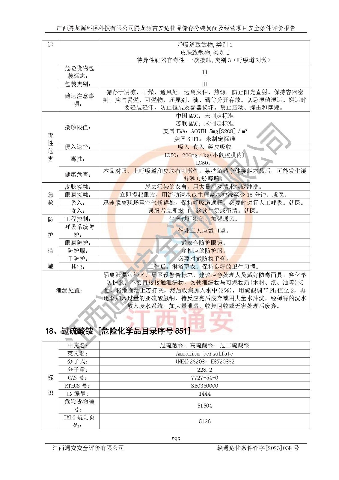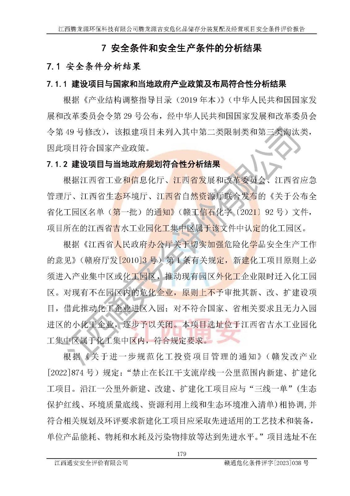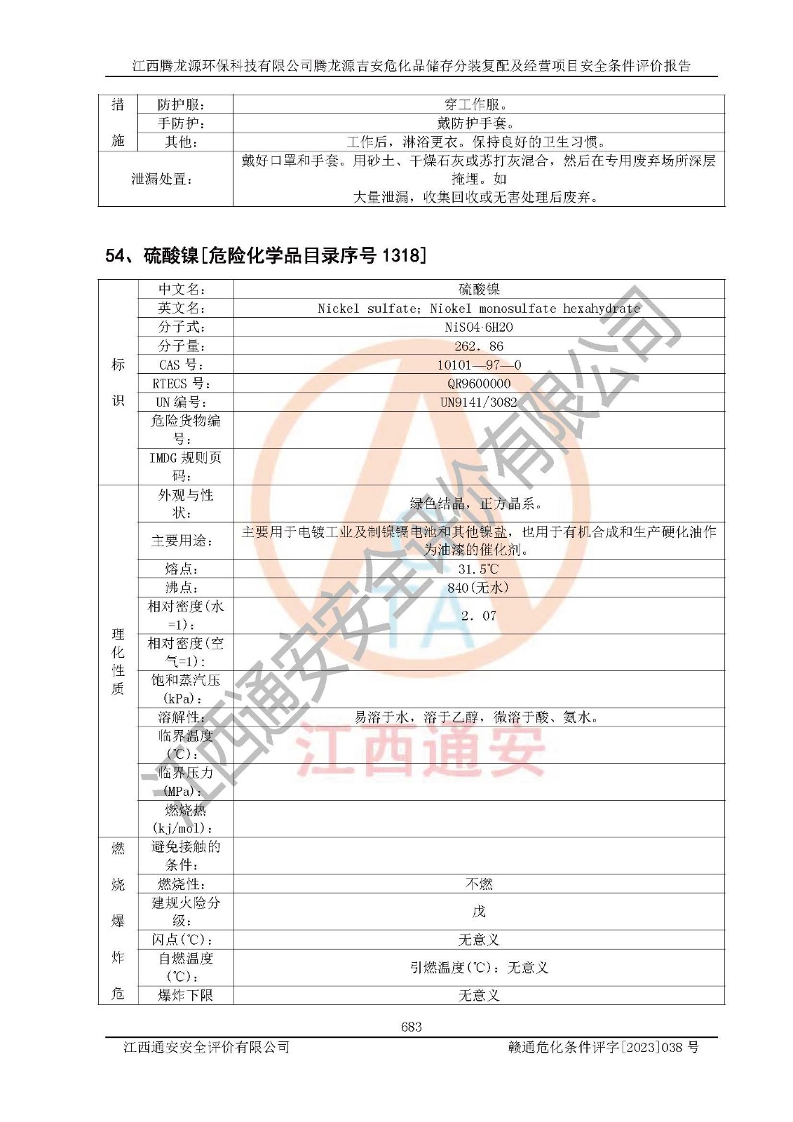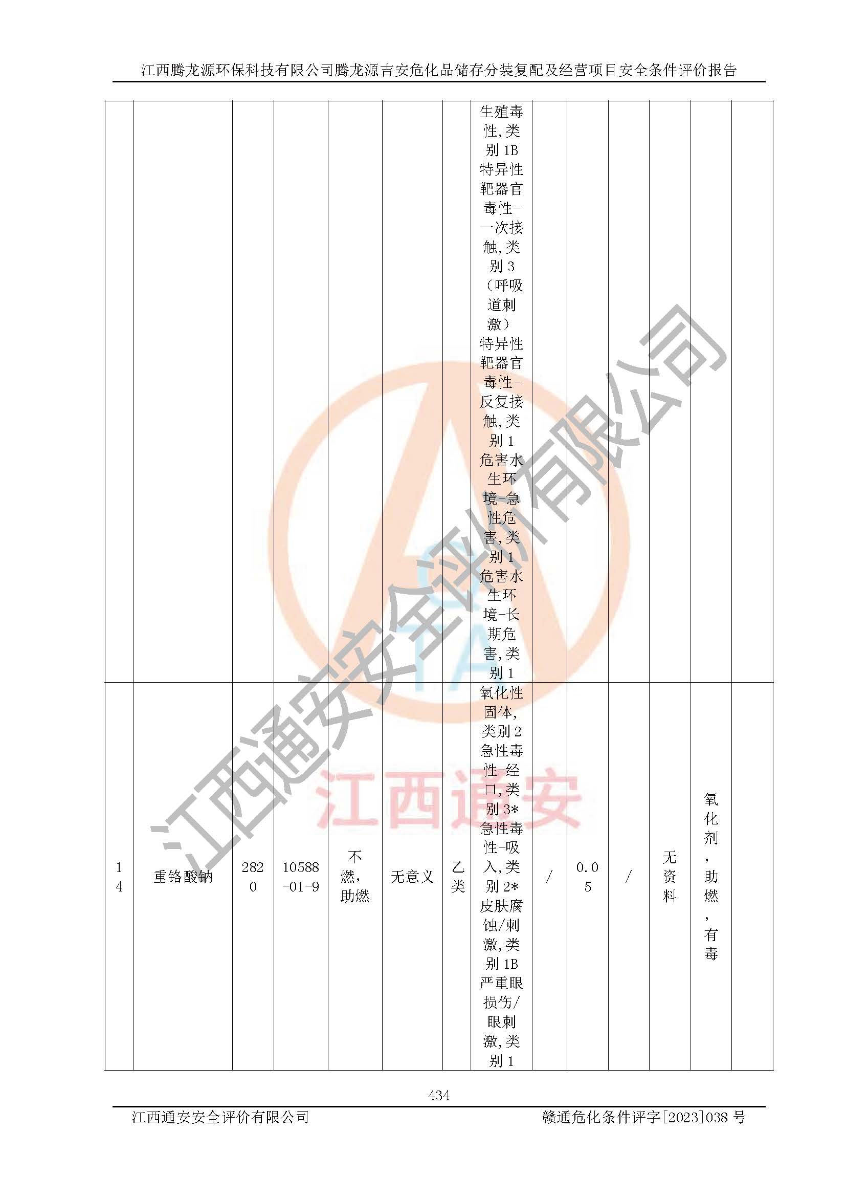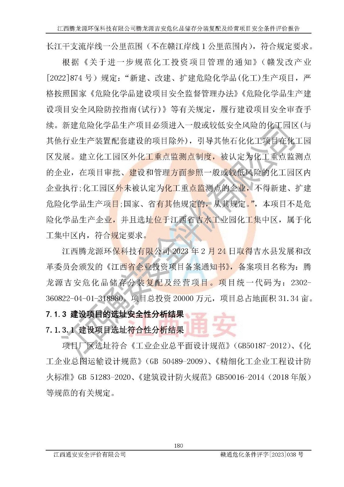項(xiàng)目簡介 | 江西騰龍?jiān)?*科技有限公司成立于2022年6月20日,并取得吉水縣市場監(jiān)督管理局頒發(fā)的《營業(yè)執(zhí)照》,營業(yè)執(zhí)照統(tǒng)一社會信用代碼:91360822MABQK5GB5P。公司注冊住所:江西省吉安市吉水縣城西工業(yè)園區(qū)二期金龍路。法定**人:吳詩明。注冊資本壹仟萬元整。企業(yè)性質(zhì)為有限責(zé)任公司(自然人投資或控股)。營業(yè)執(zhí)照許可經(jīng)營范圍:一般項(xiàng)目:化工產(chǎn)品銷售(不含許可類化工產(chǎn)品)(除許可業(yè)務(wù)外,可自主依法經(jīng)營法律法規(guī)非禁止或限制的項(xiàng)目)。 江西騰龍?jiān)?*科技有限公司2023年2月24日取得吉水縣發(fā)展和改革委員會頒發(fā)的《江西省企業(yè)投資項(xiàng)目備案通知書》,備案項(xiàng)目名稱為:騰龍?jiān)醇参;穬Υ娣盅b復(fù)配及經(jīng)營項(xiàng)目。項(xiàng)目統(tǒng)一代碼為:2302-360822-04-01-318980。項(xiàng)目總投資20000萬元,項(xiàng)目總占地面積31.34畝。 根據(jù)《危險(xiǎn)化學(xué)品目錄(2015版)》(**安監(jiān)總局等十部門公告[2015]第5號)及應(yīng)急管理部、工業(yè)和信息化部、公安部、生態(tài)環(huán)境部、交通運(yùn)輸部、農(nóng)業(yè)農(nóng)村部、衛(wèi)生健康委、市場監(jiān)管總局、鐵路局、民航局決定調(diào)整《危險(xiǎn)化學(xué)品目錄(2015版)》(應(yīng)急管理部、工業(yè)和信息化部、公安部、生態(tài)環(huán)境部、交通運(yùn)輸部、農(nóng)業(yè)農(nóng)村部、衛(wèi)生健康委、市場監(jiān)管總局、鐵路局、民航局公告2022年第8號)等文件對該項(xiàng)目生產(chǎn)過程中所涉及的化學(xué)品進(jìn)行辨識:項(xiàng)目涉及的硫酸、鹽酸、雙氧水、硝酸、氫氧化鈉(固體和溶液)、次氯酸鈉溶液、氯酸鈉、氯酸鉀、鉻酸酐、高錳酸鈉、高錳酸鉀、硝酸鉀、重鉻酸鉀、重鉻酸鈉、硝酸鈉、亞硝酸鈉、過硫酸鈉、過硫酸銨、過硫酸鉀、漂白粉、氯化亞砜、甲醇、乙醇、二甲苯、甲苯、**、天那水、乙酸、乙酸乙酯、甲醛溶液、三氯乙烯、正丁醇、異丙醇、石油醚、醋酸酐、甲基乙基酮(丁酮)、三氯甲烷、乙醚、氨水(20%)、甲酸、二氯甲烷、**苯、乙酸丁酯、氫氟酸、磷酸、硫化鈉(無水)、氫氧化鉀、氨基磺酸、三氯化鐵、九水硝酸鐵、氯化鋅、硫脲、硼酸、硫酸鎳、氯化鎳、氟化氫銨、氟化氫鉀、氟化氫鈉、偏硅酸鈉、九水偏硅酸鈉、氟硅酸鈉、亞硫酸氫鈉、氟化鈉、氟化鉀、六次甲基四胺、結(jié)晶氯化鋁、碳酸二乙酯、碳酸二甲酯、酸性清洗劑、退鍍劑、開油水、洗網(wǎng)水、污水殺菌劑(復(fù)配的次氯酸鈉溶液)、電解液等屬于危險(xiǎn)化學(xué)品。 江西騰龍?jiān)?*科技有限公司騰龍?jiān)醇参;穬Υ娣盅b復(fù)配及經(jīng)營項(xiàng)目只進(jìn)行物理混合復(fù)配、分裝等作業(yè),不涉及化學(xué)反應(yīng)過程。因此該公司?;穫}儲經(jīng)營活動需要辦理《危險(xiǎn)化學(xué)品經(jīng)營許可證》。 根據(jù)《中華人民共和國監(jiān)控化學(xué)品管理?xiàng)l例》(中華人民共和國***令**90號,經(jīng)中華人民共和國***令第588號修改)及《各類監(jiān)控化學(xué)品名錄》(中華人民共和國工業(yè)和信息化部令第52號;2020年)、《列入第三類監(jiān)控化學(xué)品的新增品種清單》**石油和化學(xué)工業(yè)局令**號等規(guī)定進(jìn)行辨識:項(xiàng)目涉及的氯化亞砜屬于第三類監(jiān)控化學(xué)品。 根據(jù)《易制毒化學(xué)品管理?xiàng)l例》(***令第445號,經(jīng)***令第653號、***第666號、***第703號修改)及附表規(guī)定、中華人民共和國公安部 中華人民共和國商務(wù)部、**衛(wèi)生和計(jì)劃生育委員會、中華人民共和國海關(guān)總署、**安全生產(chǎn)監(jiān)督管理總局、**食品藥品監(jiān)督管理總局《關(guān)于將4-苯胺基-N-苯乙基哌啶、N-苯乙基-4-哌啶酮、N-甲基-1-苯基-1-氯-2-丙胺、溴素、1-苯基-1-**5種物質(zhì)列入易制毒化學(xué)品管理的公告》(國辦函[2017]**20號)、《***辦公廳關(guān)于同意將1-苯基-2-溴-1-**和3-氧-2-苯基丁腈列入易制毒化學(xué)品品種目錄的函》(國辦函[2014]第40號)、《***辦公廳關(guān)于同意將α-苯乙酰乙酸甲酯等6種物質(zhì)列入易制毒化學(xué)品品種目錄的函》(國辦函〔2021〕58號)等進(jìn)行辨識:項(xiàng)目涉及的硫酸、鹽酸、高錳酸鉀、甲苯、**、甲基乙基酮等屬于第三類易制毒化學(xué)品;醋酸酐、三氯甲烷、乙醚等屬于第二類易制毒化學(xué)品。 根據(jù)《危險(xiǎn)化學(xué)品名錄[2015年版]》(**安監(jiān)總局等十部門[2015]第5號)進(jìn)行劇毒化學(xué)品辨識:項(xiàng)目不涉及劇毒化學(xué)品。 根據(jù)《高毒物品目錄(2003年版)》(原衛(wèi)生部衛(wèi)法監(jiān)發(fā)[2003]142號)對項(xiàng)目涉及的化學(xué)品進(jìn)行高毒物品辨識:項(xiàng)目涉及的甲醛溶液、硫酸鎳、氯化鎳、氟化氫銨、氟化氫鉀、氟化氫鈉、氟化鈉、氟化鉀、鉻酸酐、高錳酸鉀、高錳酸鈉、重鉻酸鉀、重鉻酸鈉等屬于高毒物品。 根據(jù)中華人民共和國公安部《易制爆危險(xiǎn)化學(xué)品名錄》(2017年版)中規(guī)定進(jìn)行辨識:項(xiàng)目涉及的雙氧水、硝酸、氯酸鈉、氯酸鉀、高錳酸鉀、高錳酸鈉、硝酸鉀、重鉻酸鉀、重鉻酸鈉、硝酸鈉、六次甲基四胺等屬于易