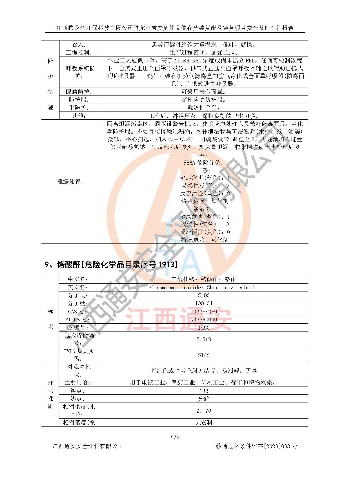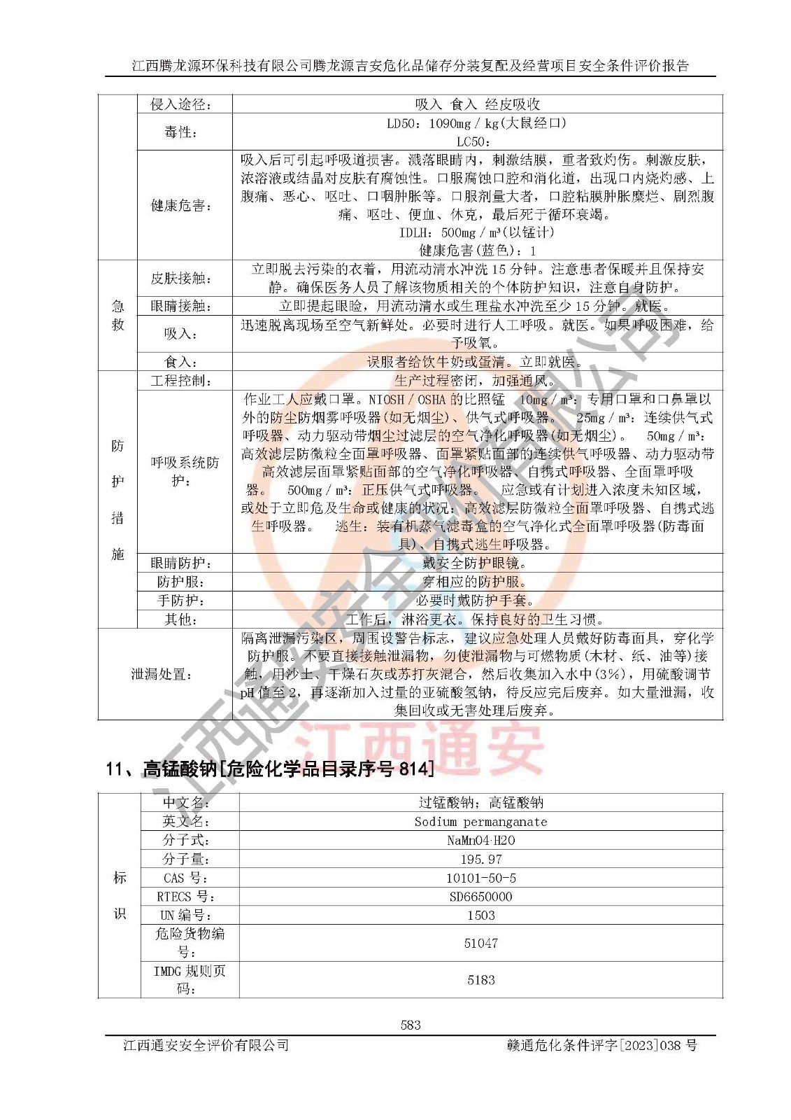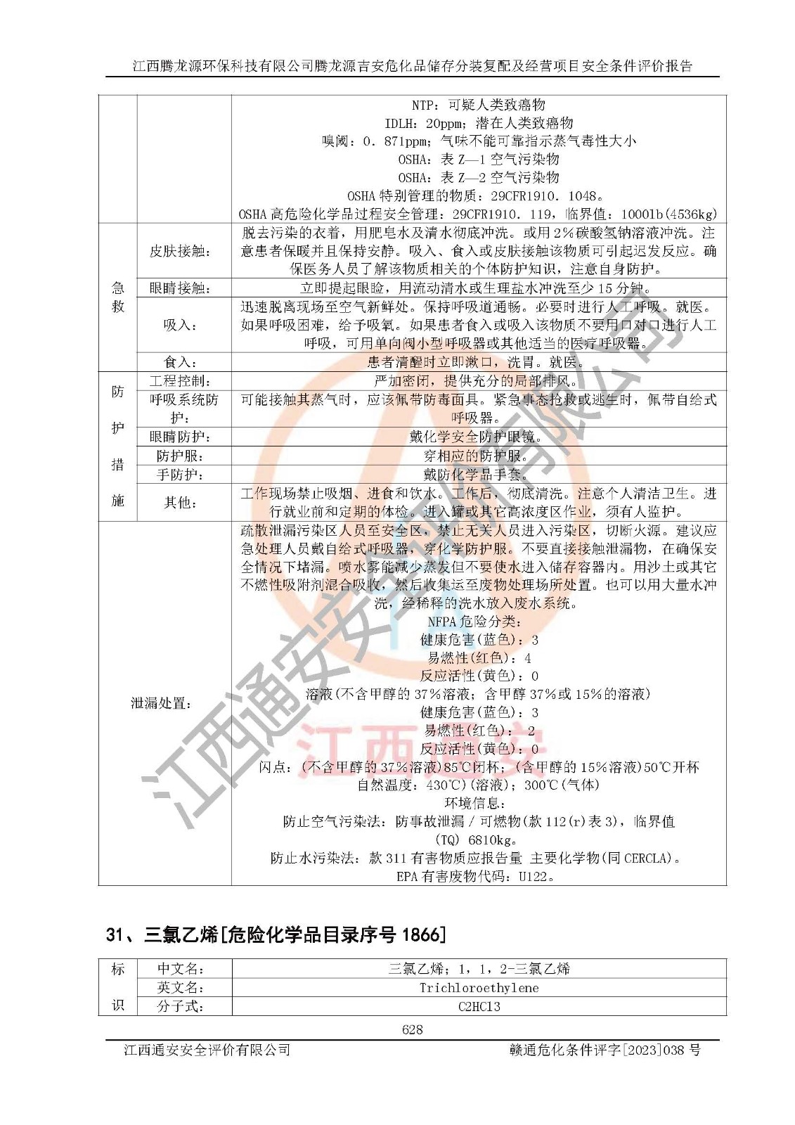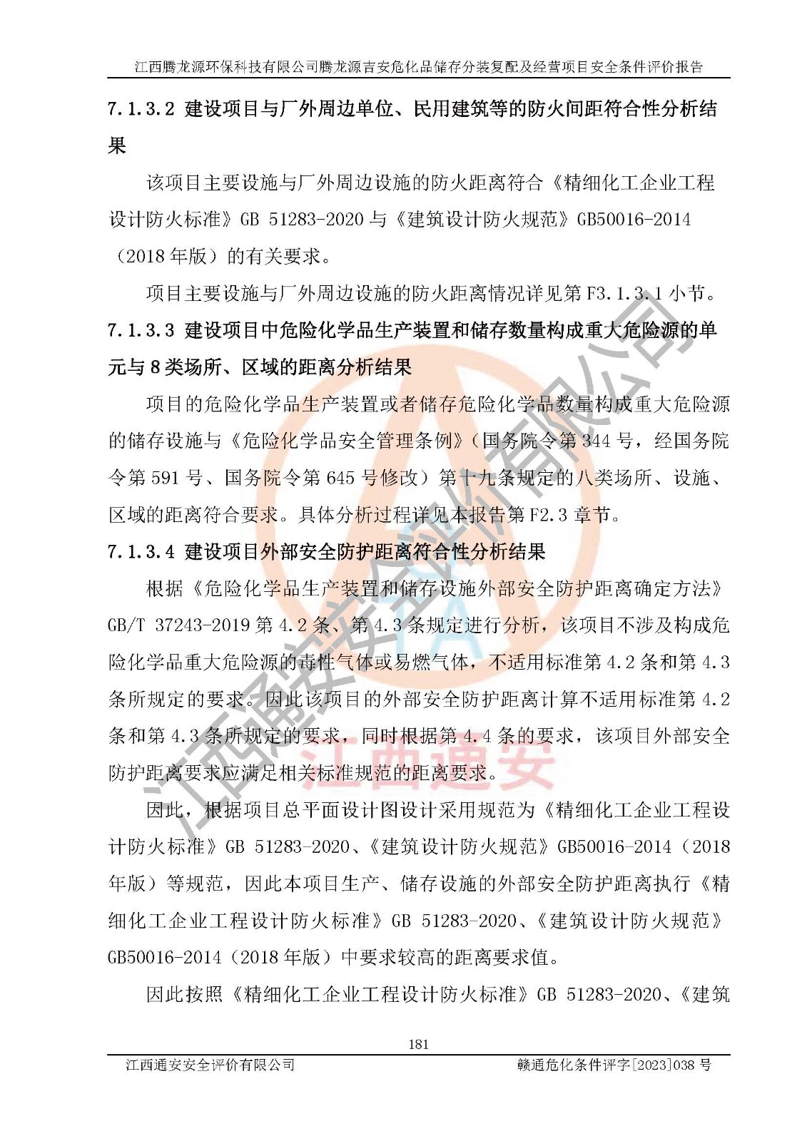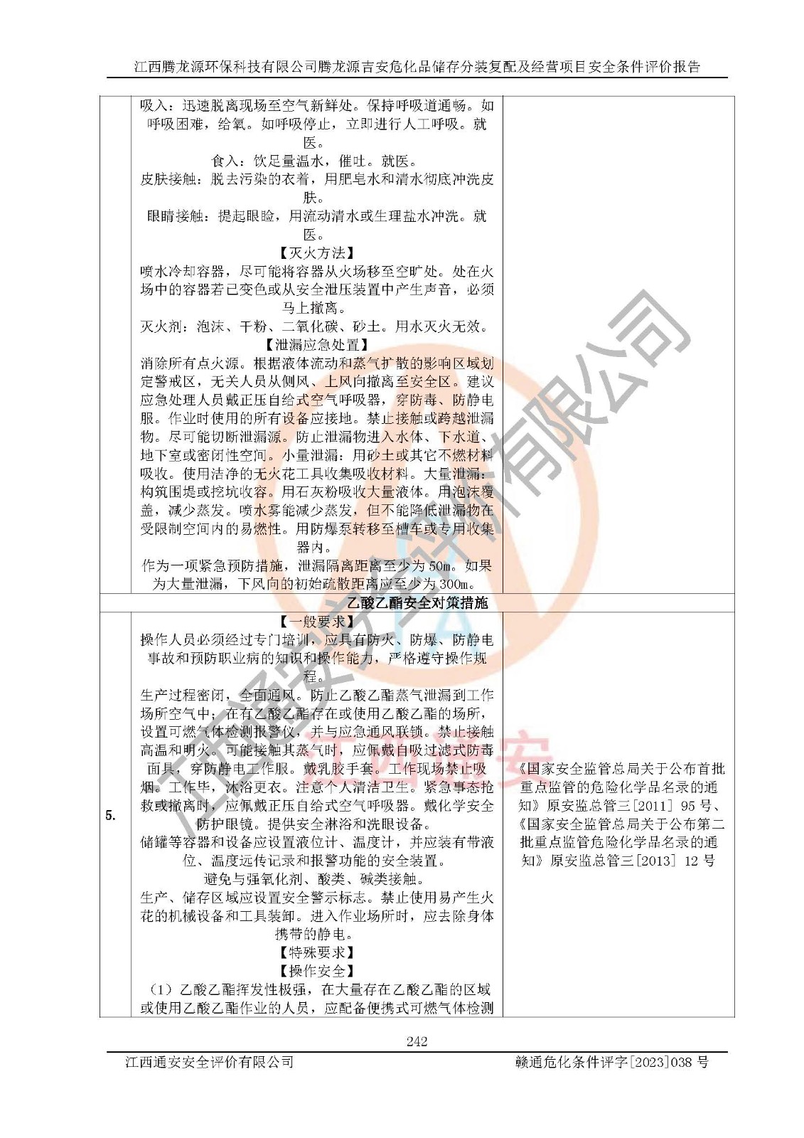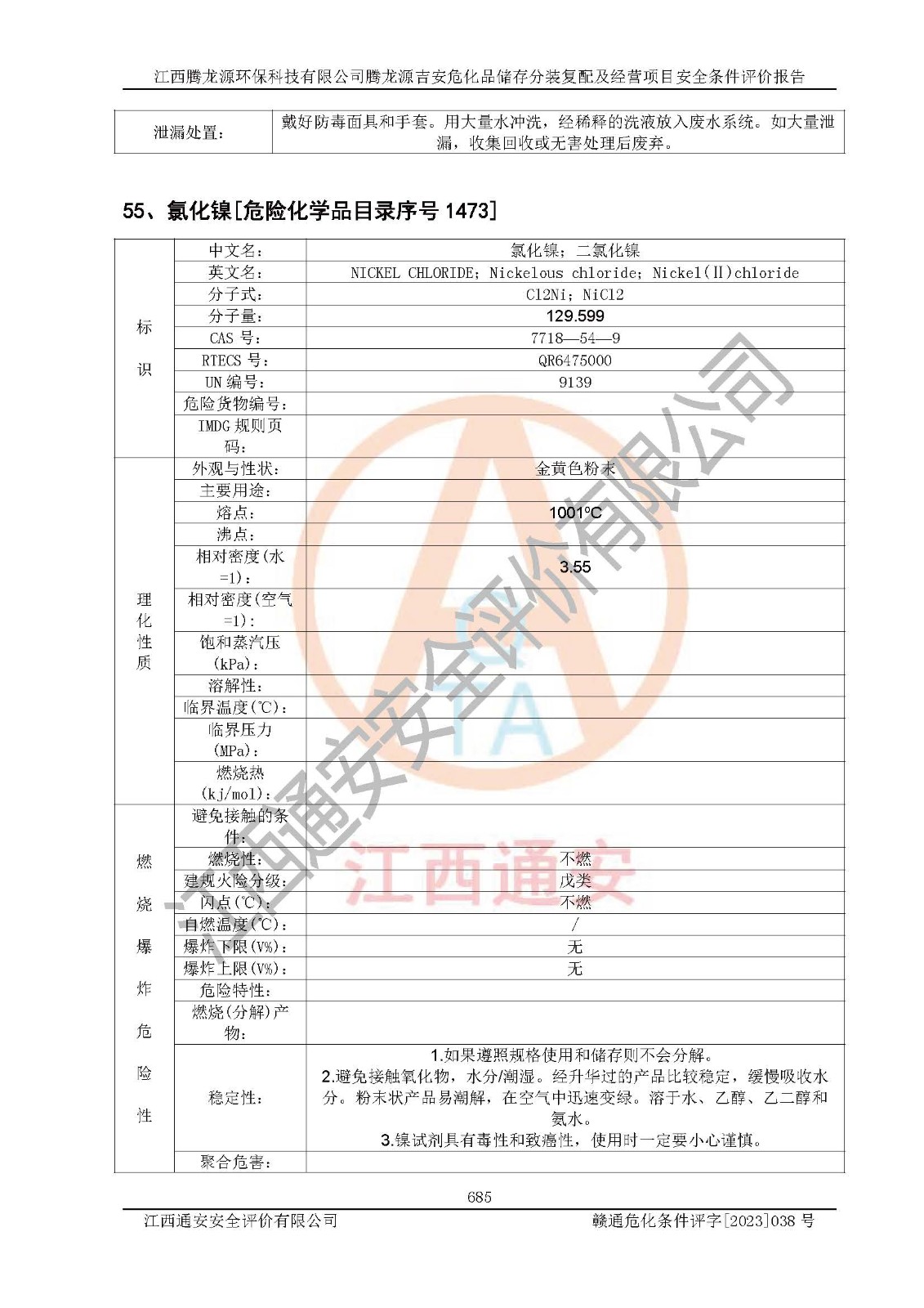項(xiàng)目簡介 | 江西騰龍?jiān)?*科技有限公司成立于2022年6月20日,并取得吉水縣市場監(jiān)督管理局頒發(fā)的《營業(yè)執(zhí)照》,營業(yè)執(zhí)照統(tǒng)一社會信用代碼:91360822MABQK5GB5P。公司注冊住所:江西省吉安市吉水縣城西工業(yè)園區(qū)二期金龍路。法定**人:吳詩明。注冊資本壹仟萬元整。企業(yè)性質(zhì)為有限責(zé)任公司(自然人投資或控股)。營業(yè)執(zhí)照許可經(jīng)營范圍:一般項(xiàng)目:化工產(chǎn)品銷售(不含許可類化工產(chǎn)品)(除許可業(yè)務(wù)外,可自主依法經(jīng)營法律法規(guī)非禁止或限制的項(xiàng)目)。 江西騰龍?jiān)?*科技有限公司2023年2月24日取得吉水縣發(fā)展和改革委員會頒發(fā)的《江西省企業(yè)投資項(xiàng)目備案通知書》,備案項(xiàng)目名稱為:騰龍?jiān)醇参;穬Υ娣盅b復(fù)配及經(jīng)營項(xiàng)目。項(xiàng)目統(tǒng)一代碼為:2302-360822-04-01-318980。項(xiàng)目總投資20000萬元,項(xiàng)目總占地面積31.34畝。 根據(jù)《危險(xiǎn)化學(xué)品目錄(2015版)》(**安監(jiān)總局等十部門公告[2015]第5號)及應(yīng)急管理部、工業(yè)和信息化部、公安部、生態(tài)環(huán)境部、交通運(yùn)輸部、農(nóng)業(yè)農(nóng)村部、衛(wèi)生健康委、市場監(jiān)管總局、鐵路局、民航局決定調(diào)整《危險(xiǎn)化學(xué)品目錄(2015版)》(應(yīng)急管理部、工業(yè)和信息化部、公安部、生態(tài)環(huán)境部、交通運(yùn)輸部、農(nóng)業(yè)農(nóng)村部、衛(wèi)生健康委、市場監(jiān)管總局、鐵路局、民航局公告2022年第8號)等文件對該項(xiàng)目生產(chǎn)過程中所涉及的化學(xué)品進(jìn)行辨識:項(xiàng)目涉及的硫酸、鹽酸、雙氧水、硝酸、氫氧化鈉(固體和溶液)、次氯酸鈉溶液、氯酸鈉、氯酸鉀、鉻酸酐、高錳酸鈉、高錳酸鉀、硝酸鉀、重鉻酸鉀、重鉻酸鈉、硝酸鈉、亞硝酸鈉、過硫酸鈉、過硫酸銨、過硫酸鉀、漂白粉、氯化亞砜、甲醇、乙醇、二甲苯、甲苯、**、天那水、乙酸、乙酸乙酯、甲醛溶液、三氯乙烯、正丁醇、異丙醇、石油醚、醋酸酐、甲基乙基酮(丁酮)、三氯甲烷、乙醚、氨水(20%)、甲酸、二氯甲烷、**苯、乙酸丁酯、氫氟酸、磷酸、硫化鈉(無水)、氫氧化鉀、氨基磺酸、三氯化鐵、九水硝酸鐵、氯化鋅、硫脲、硼酸、硫酸鎳、氯化鎳、氟化氫銨、氟化氫鉀、氟化氫鈉、偏硅酸鈉、九水偏硅酸鈉、氟硅酸鈉、亞硫酸氫鈉、氟化鈉、氟化鉀、六次甲基四胺、結(jié)晶氯化鋁、碳酸二乙酯、碳酸二甲酯、酸性清洗劑、退鍍劑、開油水、洗網(wǎng)水、污水殺菌劑(復(fù)配的次氯酸鈉溶液)、電解液等屬于危險(xiǎn)化學(xué)品。 江西騰龍?jiān)?*科技有限公司騰龍?jiān)醇参;穬Υ娣盅b復(fù)配及經(jīng)營項(xiàng)目只進(jìn)行物理混合復(fù)配、分裝等作業(yè),不涉及化學(xué)反應(yīng)過程。因此該公司?;穫}儲經(jīng)營活動需要辦理《危險(xiǎn)化學(xué)品經(jīng)營許可證》。 根據(jù)《中華人民共和國監(jiān)控化學(xué)品管理?xiàng)l例》(中華人民共和國***令**90號,經(jīng)中華人民共和國***令第588號修改)及《各類監(jiān)控化學(xué)品名錄》(中華人民共和國工業(yè)和信息化部令第52號;2020年)、《列入第三類監(jiān)控化學(xué)品的新增品種清單》**石油和化學(xué)工業(yè)局令**號等規(guī)定進(jìn)行辨識:項(xiàng)目涉及的氯化亞砜屬于第三類監(jiān)控化學(xué)品。 根據(jù)《易制毒化學(xué)品管理?xiàng)l例》(***令第445號,經(jīng)***令第653號、***第666號、***第703號修改)及附表規(guī)定、中華人民共和國公安部 中華人民共和國商務(wù)部、**衛(wèi)生和計(jì)劃生育委員會、中華人民共和國海關(guān)總署、**安全生產(chǎn)監(jiān)督管理總局、**食品藥品監(jiān)督管理總局《關(guān)于將4-苯胺基-N-苯乙基哌啶、N-苯乙基-4-哌啶酮、N-甲基-1-苯基-1-氯-2-丙胺、溴素、1-苯基-1-**5種物質(zhì)列入易制毒化學(xué)品管理的公告》(國辦函[2017]**20號)、《***辦公廳關(guān)于同意將1-苯基-2-溴-1-**和3-氧-2-苯基丁腈列入易制毒化學(xué)品品種目錄的函》(國辦函[2014]第40號)、《***辦公廳關(guān)于同意將α-苯乙酰乙酸甲酯等6種物質(zhì)列入易制毒化學(xué)品品種目錄的函》(國辦函〔2021〕58號)等進(jìn)行辨識:項(xiàng)目涉及的硫酸、鹽酸、高錳酸鉀、甲苯、**、甲基乙基酮等屬于第三類易制毒化學(xué)品;醋酸酐、三氯甲烷、乙醚等屬于第二類易制毒化學(xué)品。 根據(jù)《危險(xiǎn)化學(xué)品名錄[2015年版]》(**安監(jiān)總局等十部門[2015]第5號)進(jìn)行劇毒化學(xué)品辨識:項(xiàng)目不涉及劇毒化學(xué)品。 根據(jù)《高毒物品目錄(2003年版)》(原衛(wèi)生部衛(wèi)法監(jiān)發(fā)[2003]142號)對項(xiàng)目涉及的化學(xué)品進(jìn)行高毒物品辨識:項(xiàng)目涉及的甲醛溶液、硫酸鎳、氯化鎳、氟化氫銨、氟化氫鉀、氟化氫鈉、氟化鈉、氟化鉀、鉻酸酐、高錳酸鉀、高錳酸鈉、重鉻酸鉀、重鉻酸鈉等屬于高毒物品。 根據(jù)中華人民共和國公安部《易制爆危險(xiǎn)化學(xué)品名錄》(2017年版)中規(guī)定進(jìn)行辨識:項(xiàng)目涉及的雙氧水、硝酸、氯酸鈉、氯酸鉀、高錳酸鉀、高錳酸鈉、硝酸鉀、重鉻酸鉀、重鉻酸鈉、硝酸鈉、六次甲基四胺等屬于易