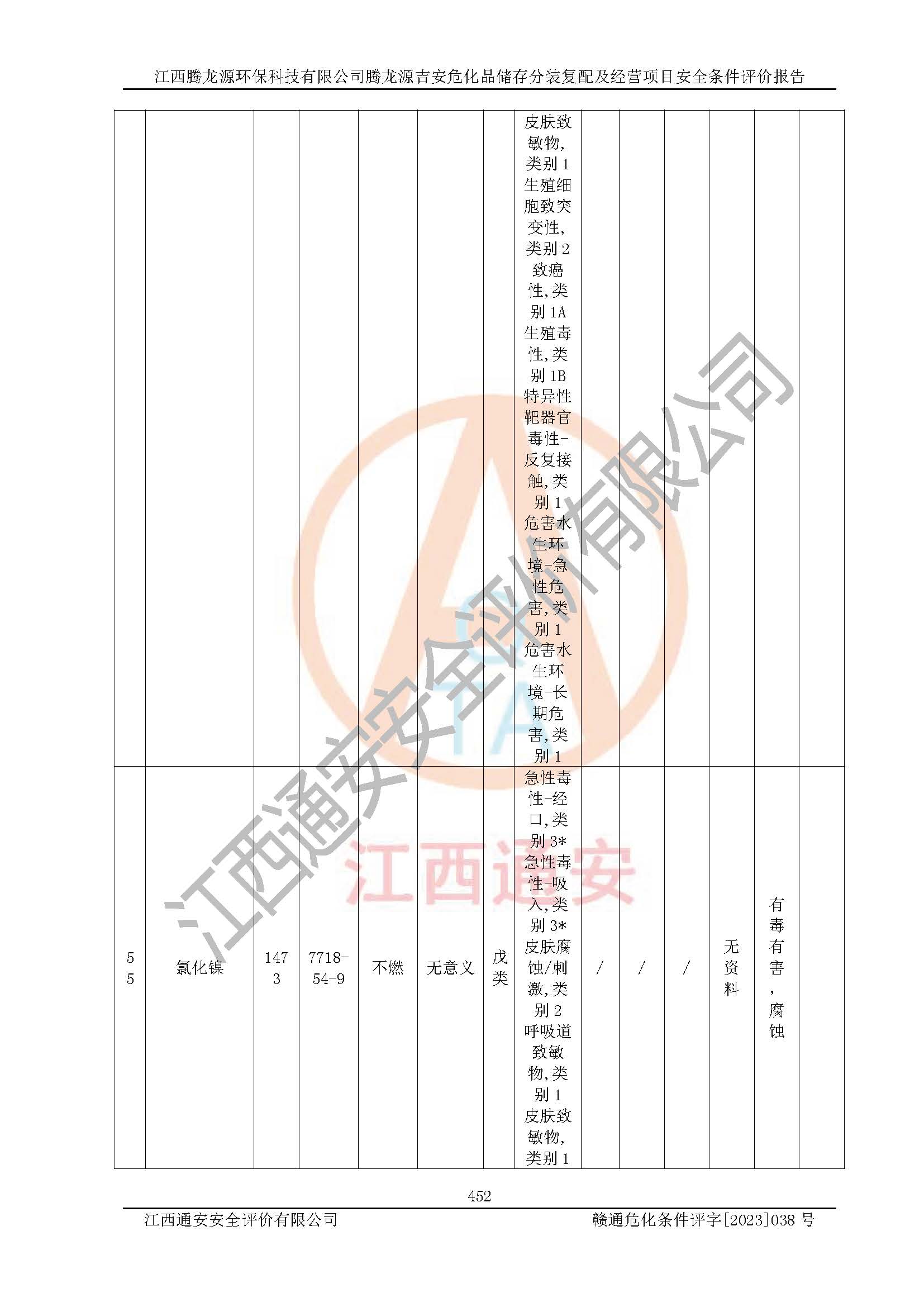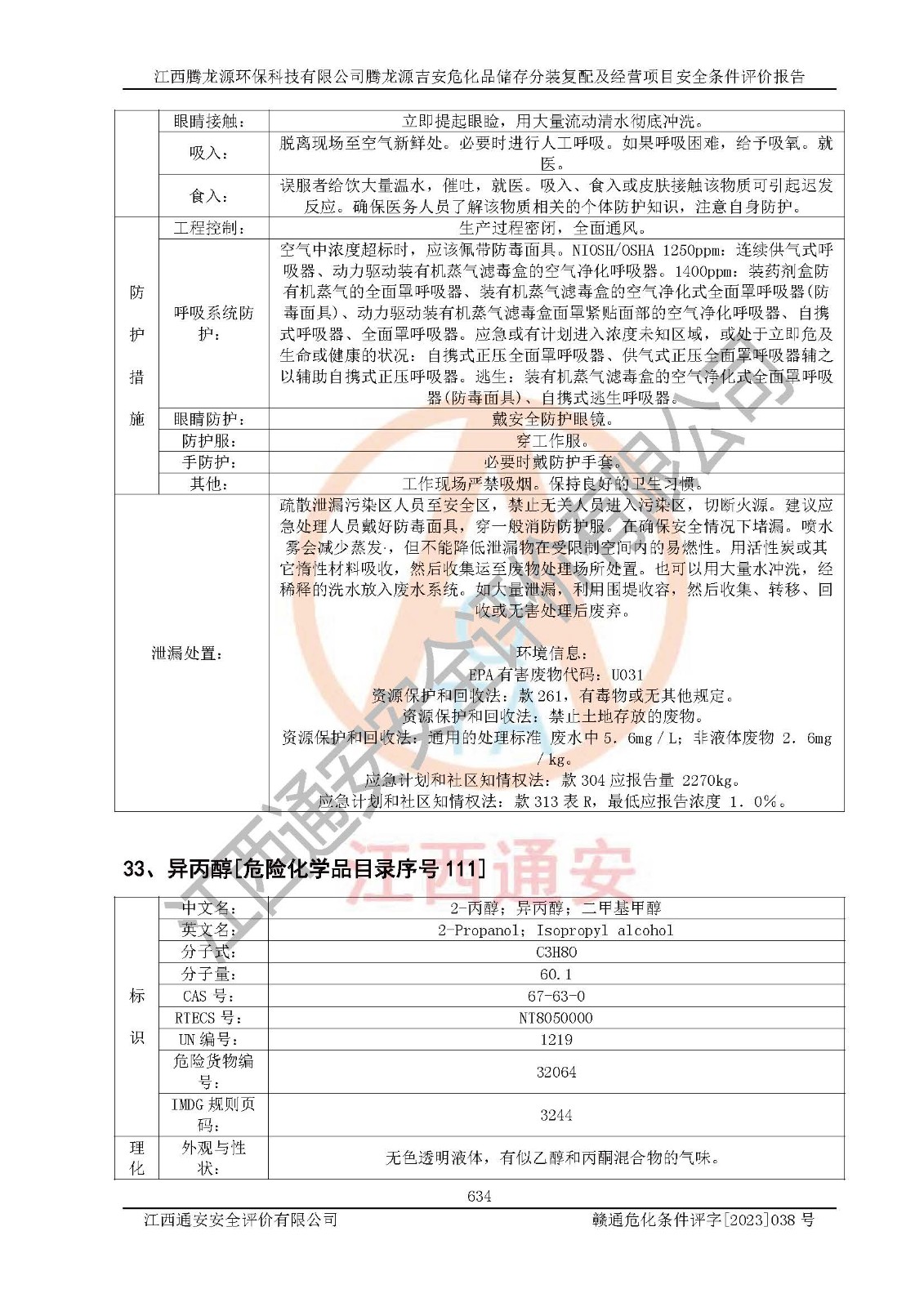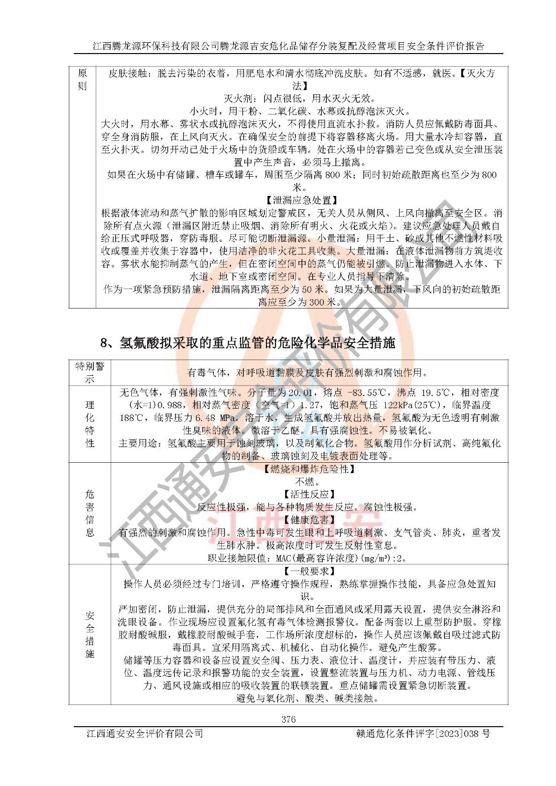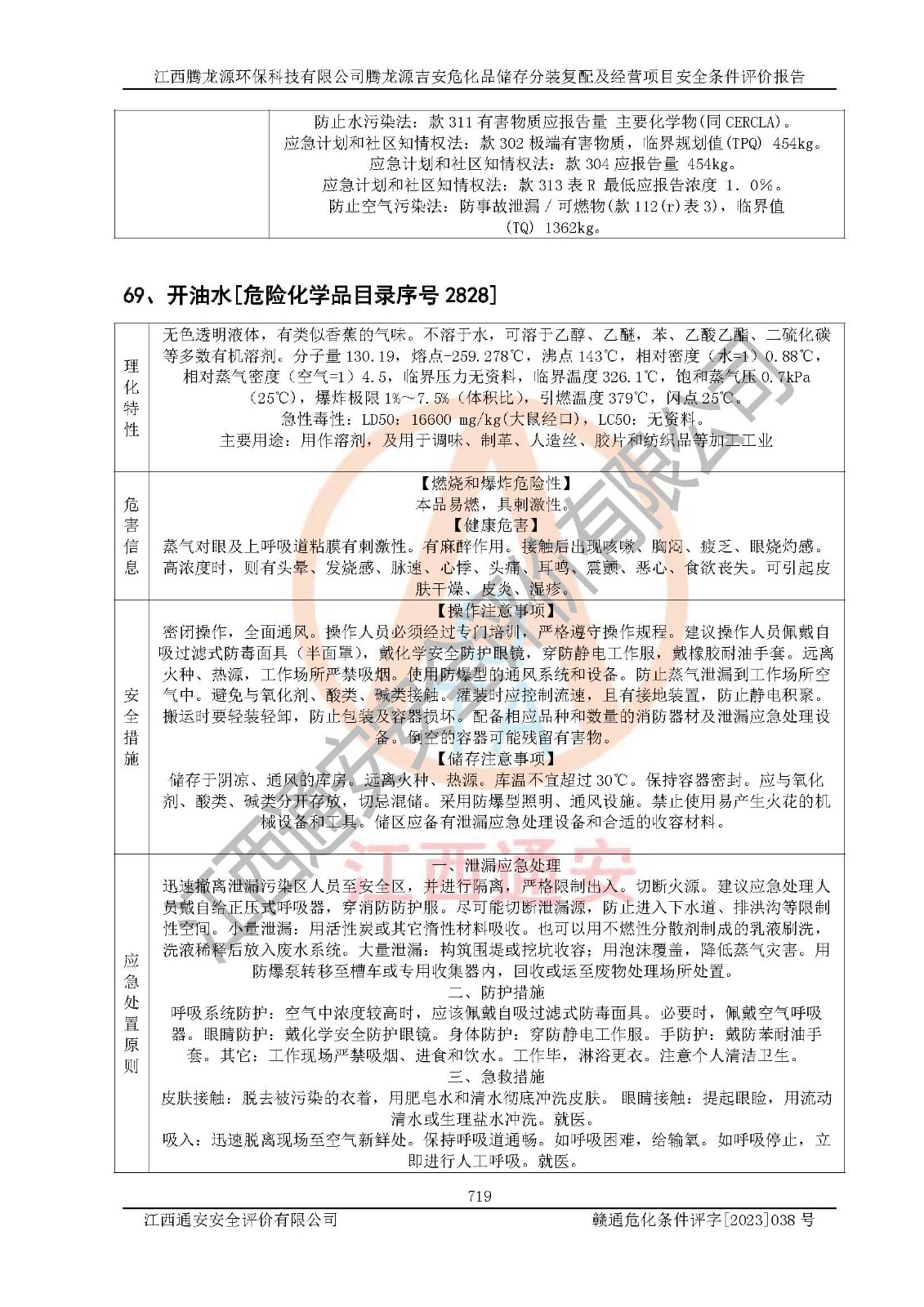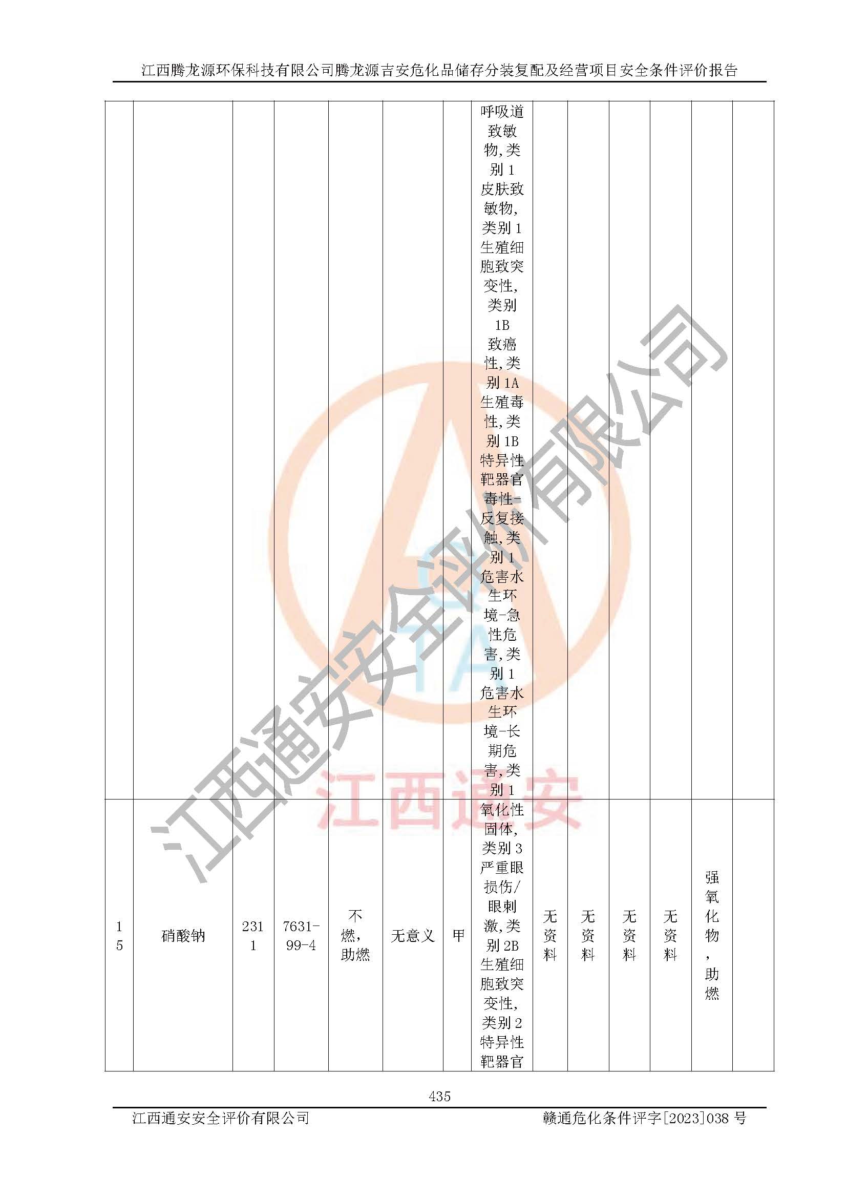 項(xiàng)目簡介 | 江西騰龍?jiān)?*科技有限公司成立于2022年6月20日,并取得吉水縣市場監(jiān)督管理局頒發(fā)的《營業(yè)執(zhí)照》,營業(yè)執(zhí)照統(tǒng)一社會信用代碼:91360822MABQK5GB5P。公司注冊住所:江西省吉安市吉水縣城西工業(yè)園區(qū)二期金龍路。法定**人:吳詩明。注冊資本壹仟萬元整。企業(yè)性質(zhì)為有限責(zé)任公司(自然人投資或控股)。營業(yè)執(zhí)照許可經(jīng)營范圍:一般項(xiàng)目:化工產(chǎn)品銷售(不含許可類化工產(chǎn)品)(除許可業(yè)務(wù)外,可自主依法經(jīng)營法律法規(guī)非禁止或限制的項(xiàng)目)。 江西騰龍?jiān)?*科技有限公司2023年2月24日取得吉水縣發(fā)展和改革委員會頒發(fā)的《江西省企業(yè)投資項(xiàng)目備案通知書》,備案項(xiàng)目名稱為:騰龍?jiān)醇参;穬Υ娣盅b復(fù)配及經(jīng)營項(xiàng)目。項(xiàng)目統(tǒng)一代碼為:2302-360822-04-01-318980。項(xiàng)目總投資20000萬元,項(xiàng)目總占地面積31.34畝。 根據(jù)《危險(xiǎn)化學(xué)品目錄(2015版)》(**安監(jiān)總局等十部門公告[2015]第5號)及應(yīng)急管理部、工業(yè)和信息化部、公安部、生態(tài)環(huán)境部、交通運(yùn)輸部、農(nóng)業(yè)農(nóng)村部、衛(wèi)生健康委、市場監(jiān)管總局、鐵路局、民航局決定調(diào)整《危險(xiǎn)化學(xué)品目錄(2015版)》(應(yīng)急管理部、工業(yè)和信息化部、公安部、生態(tài)環(huán)境部、交通運(yùn)輸部、農(nóng)業(yè)農(nóng)村部、衛(wèi)生健康委、市場監(jiān)管總局、鐵路局、民航局公告2022年第8號)等文件對該項(xiàng)目生產(chǎn)過程中所涉及的化學(xué)品進(jìn)行辨識:項(xiàng)目涉及的硫酸、鹽酸、雙氧水、硝酸、氫氧化鈉(固體和溶液)、次氯酸鈉溶液、氯酸鈉、氯酸鉀、鉻酸酐、高錳酸鈉、高錳酸鉀、硝酸鉀、重鉻酸鉀、重鉻酸鈉、硝酸鈉、亞硝酸鈉、過硫酸鈉、過硫酸銨、過硫酸鉀、漂白粉、氯化亞砜、甲醇、乙醇、二甲苯、甲苯、**、天那水、乙酸、乙酸乙酯、甲醛溶液、三氯乙烯、正丁醇、異丙醇、石油醚、醋酸酐、甲基乙基酮(丁酮)、三氯甲烷、乙醚、氨水(20%)、甲酸、二氯甲烷、**苯、乙酸丁酯、氫氟酸、磷酸、硫化鈉(無水)、氫氧化鉀、氨基磺酸、三氯化鐵、九水硝酸鐵、氯化鋅、硫脲、硼酸、硫酸鎳、氯化鎳、氟化氫銨、氟化氫鉀、氟化氫鈉、偏硅酸鈉、九水偏硅酸鈉、氟硅酸鈉、亞硫酸氫鈉、氟化鈉、氟化鉀、六次甲基四胺、結(jié)晶氯化鋁、碳酸二乙酯、碳酸二甲酯、酸性清洗劑、退鍍劑、開油水、洗網(wǎng)水、污水殺菌劑(復(fù)配的次氯酸鈉溶液)、電解液等屬于危險(xiǎn)化學(xué)品。 江西騰龍?jiān)?*科技有限公司騰龍?jiān)醇参;穬Υ娣盅b復(fù)配及經(jīng)營項(xiàng)目只進(jìn)行物理混合復(fù)配、分裝等作業(yè),不涉及化學(xué)反應(yīng)過程。因此該公司?;穫}儲經(jīng)營活動需要辦理《危險(xiǎn)化學(xué)品經(jīng)營許可證》。 根據(jù)《中華人民共和國監(jiān)控化學(xué)品管理?xiàng)l例》(中華人民共和國***令**90號,經(jīng)中華人民共和國***令第588號修改)及《各類監(jiān)控化學(xué)品名錄》(中華人民共和國工業(yè)和信息化部令第52號;2020年)、《列入第三類監(jiān)控化學(xué)品的新增品種清單》**石油和化學(xué)工業(yè)局令**號等規(guī)定進(jìn)行辨識:項(xiàng)目涉及的氯化亞砜屬于第三類監(jiān)控化學(xué)品。 根據(jù)《易制毒化學(xué)品管理?xiàng)l例》(***令第445號,經(jīng)***令第653號、***第666號、***第703號修改)及附表規(guī)定、中華人民共和國公安部 中華人民共和國商務(wù)部、**衛(wèi)生和計(jì)劃生育委員會、中華人民共和國海關(guān)總署、**安全生產(chǎn)監(jiān)督管理總局、**食品藥品監(jiān)督管理總局《關(guān)于將4-苯胺基-N-苯乙基哌啶、N-苯乙基-4-哌啶酮、N-甲基-1-苯基-1-氯-2-丙胺、溴素、1-苯基-1-**5種物質(zhì)列入易制毒化學(xué)品管理的公告》(國辦函[2017]**20號)、《***辦公廳關(guān)于同意將1-苯基-2-溴-1-**和3-氧-2-苯基丁腈列入易制毒化學(xué)品品種目錄的函》(國辦函[2014]第40號)、《***辦公廳關(guān)于同意將α-苯乙酰乙酸甲酯等6種物質(zhì)列入易制毒化學(xué)品品種目錄的函》(國辦函〔2021〕58號)等進(jìn)行辨識:項(xiàng)目涉及的硫酸、鹽酸、高錳酸鉀、甲苯、**、甲基乙基酮等屬于第三類易制毒化學(xué)品;醋酸酐、三氯甲烷、乙醚等屬于第二類易制毒化學(xué)品。 根據(jù)《危險(xiǎn)化學(xué)品名錄[2015年版]》(**安監(jiān)總局等十部門[2015]第5號)進(jìn)行劇毒化學(xué)品辨識:項(xiàng)目不涉及劇毒化學(xué)品。 根據(jù)《高毒物品目錄(2003年版)》(原衛(wèi)生部衛(wèi)法監(jiān)發(fā)[2003]142號)對項(xiàng)目涉及的化學(xué)品進(jìn)行高毒物品辨識:項(xiàng)目涉及的甲醛溶液、硫酸鎳、氯化鎳、氟化氫銨、氟化氫鉀、氟化氫鈉、氟化鈉、氟化鉀、鉻酸酐、高錳酸鉀、高錳酸鈉、重鉻酸鉀、重鉻酸鈉等屬于高毒物品。 根據(jù)中華人民共和國公安部《易制爆危險(xiǎn)化學(xué)品名錄》(2017年版)中規(guī)定進(jìn)行辨識:項(xiàng)目涉及的雙氧水、硝酸、氯酸鈉、氯酸鉀、高錳酸鉀、高錳酸鈉、硝酸鉀、重鉻酸鉀、重鉻酸鈉、硝酸鈉、六次甲基四胺等屬于易