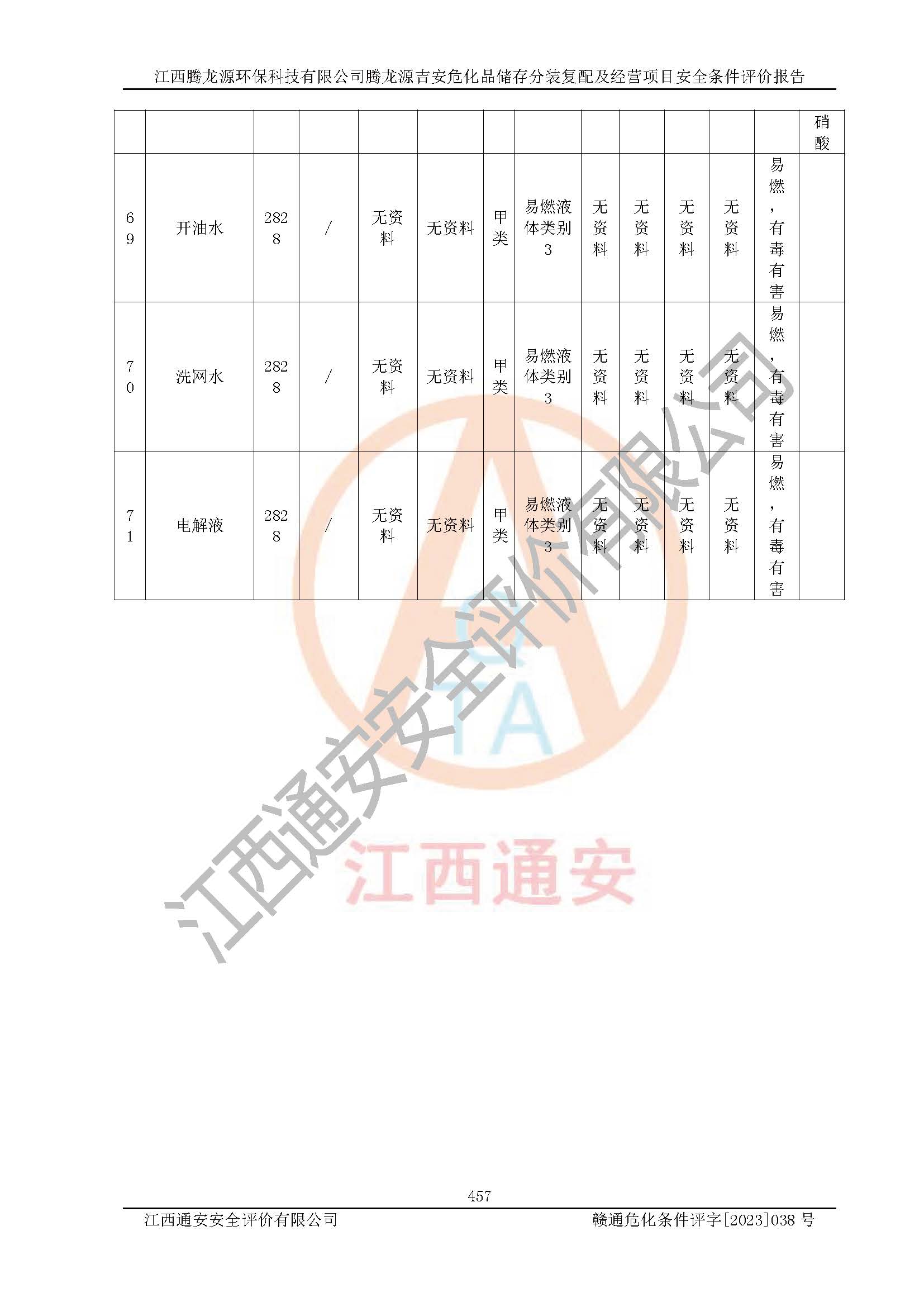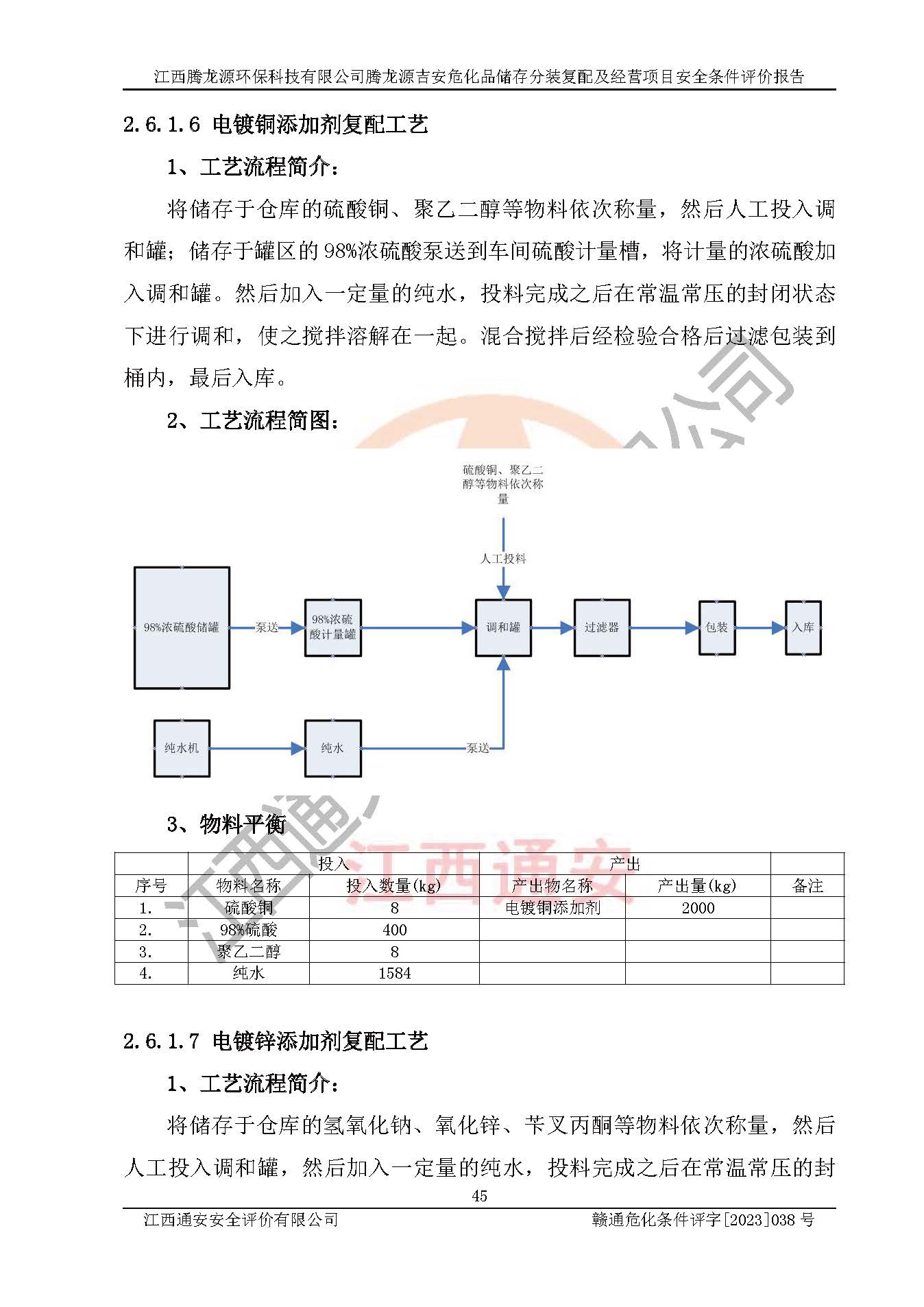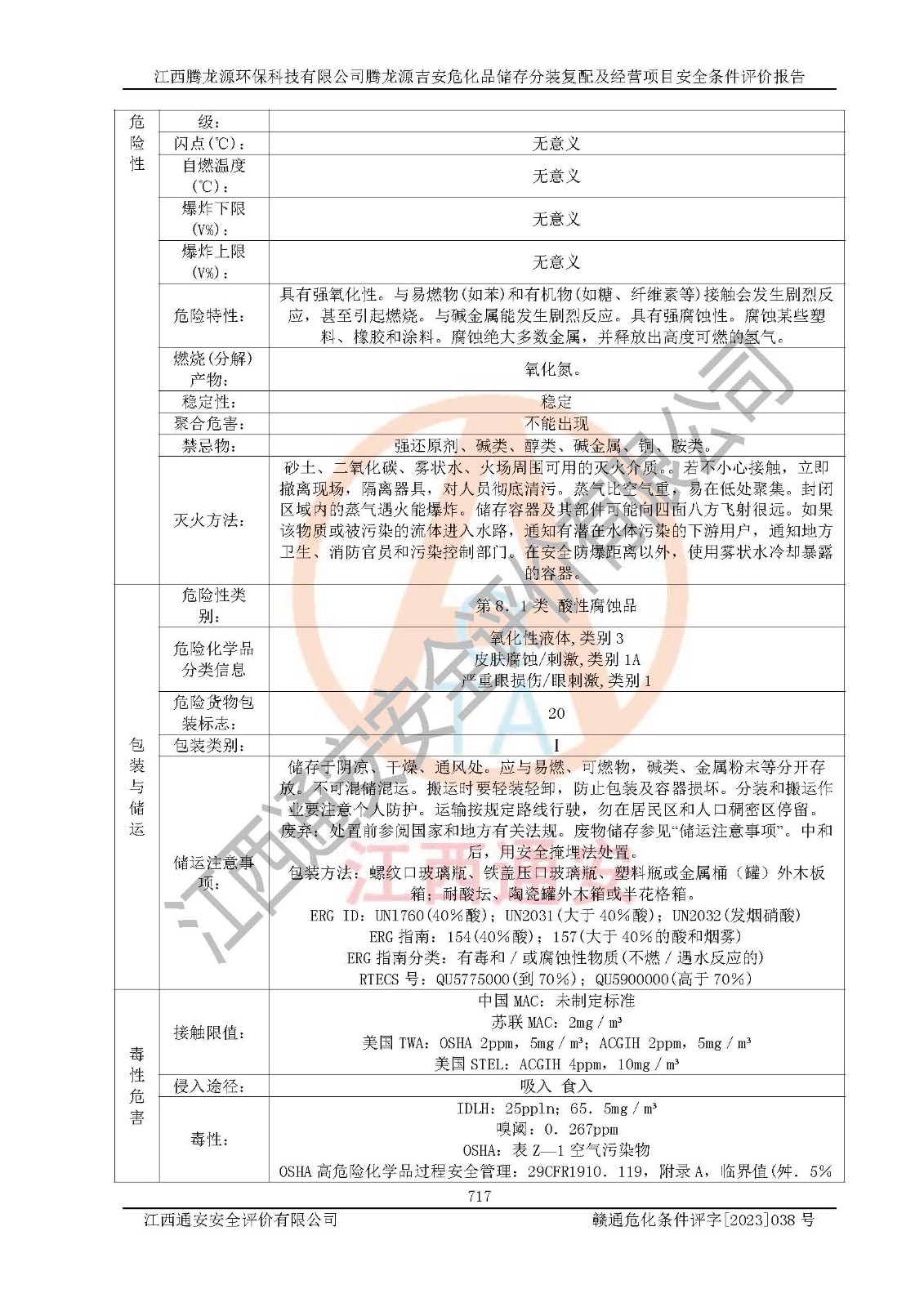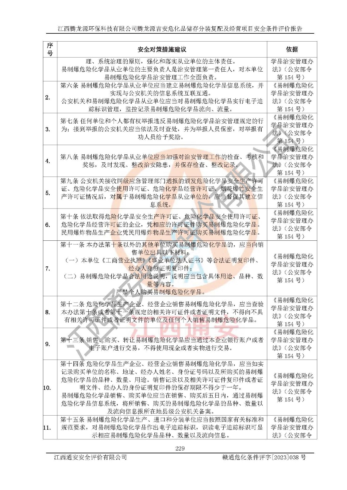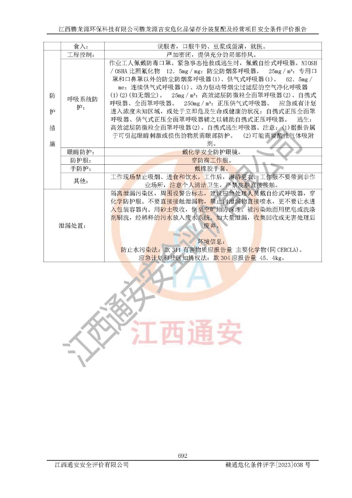 項(xiàng)目簡介 | 江西騰龍?jiān)?*科技有限公司成立于2022年6月20日,并取得吉水縣市場監(jiān)督管理局頒發(fā)的《營業(yè)執(zhí)照》,營業(yè)執(zhí)照統(tǒng)一社會信用代碼:91360822MABQK5GB5P。公司注冊住所:江西省吉安市吉水縣城西工業(yè)園區(qū)二期金龍路。法定**人:吳詩明。注冊資本壹仟萬元整。企業(yè)性質(zhì)為有限責(zé)任公司(自然人投資或控股)。營業(yè)執(zhí)照許可經(jīng)營范圍:一般項(xiàng)目:化工產(chǎn)品銷售(不含許可類化工產(chǎn)品)(除許可業(yè)務(wù)外,可自主依法經(jīng)營法律法規(guī)非禁止或限制的項(xiàng)目)。 江西騰龍?jiān)?*科技有限公司2023年2月24日取得吉水縣發(fā)展和改革委員會頒發(fā)的《江西省企業(yè)投資項(xiàng)目備案通知書》,備案項(xiàng)目名稱為:騰龍?jiān)醇参;穬Υ娣盅b復(fù)配及經(jīng)營項(xiàng)目。項(xiàng)目統(tǒng)一代碼為:2302-360822-04-01-318980。項(xiàng)目總投資20000萬元,項(xiàng)目總占地面積31.34畝。 根據(jù)《危險(xiǎn)化學(xué)品目錄(2015版)》(**安監(jiān)總局等十部門公告[2015]第5號)及應(yīng)急管理部、工業(yè)和信息化部、公安部、生態(tài)環(huán)境部、交通運(yùn)輸部、農(nóng)業(yè)農(nóng)村部、衛(wèi)生健康委、市場監(jiān)管總局、鐵路局、民航局決定調(diào)整《危險(xiǎn)化學(xué)品目錄(2015版)》(應(yīng)急管理部、工業(yè)和信息化部、公安部、生態(tài)環(huán)境部、交通運(yùn)輸部、農(nóng)業(yè)農(nóng)村部、衛(wèi)生健康委、市場監(jiān)管總局、鐵路局、民航局公告2022年第8號)等文件對該項(xiàng)目生產(chǎn)過程中所涉及的化學(xué)品進(jìn)行辨識:項(xiàng)目涉及的硫酸、鹽酸、雙氧水、硝酸、氫氧化鈉(固體和溶液)、次氯酸鈉溶液、氯酸鈉、氯酸鉀、鉻酸酐、高錳酸鈉、高錳酸鉀、硝酸鉀、重鉻酸鉀、重鉻酸鈉、硝酸鈉、亞硝酸鈉、過硫酸鈉、過硫酸銨、過硫酸鉀、漂白粉、氯化亞砜、甲醇、乙醇、二甲苯、甲苯、**、天那水、乙酸、乙酸乙酯、甲醛溶液、三氯乙烯、正丁醇、異丙醇、石油醚、醋酸酐、甲基乙基酮(丁酮)、三氯甲烷、乙醚、氨水(20%)、甲酸、二氯甲烷、**苯、乙酸丁酯、氫氟酸、磷酸、硫化鈉(無水)、氫氧化鉀、氨基磺酸、三氯化鐵、九水硝酸鐵、氯化鋅、硫脲、硼酸、硫酸鎳、氯化鎳、氟化氫銨、氟化氫鉀、氟化氫鈉、偏硅酸鈉、九水偏硅酸鈉、氟硅酸鈉、亞硫酸氫鈉、氟化鈉、氟化鉀、六次甲基四胺、結(jié)晶氯化鋁、碳酸二乙酯、碳酸二甲酯、酸性清洗劑、退鍍劑、開油水、洗網(wǎng)水、污水殺菌劑(復(fù)配的次氯酸鈉溶液)、電解液等屬于危險(xiǎn)化學(xué)品。 江西騰龍?jiān)?*科技有限公司騰龍?jiān)醇参;穬Υ娣盅b復(fù)配及經(jīng)營項(xiàng)目只進(jìn)行物理混合復(fù)配、分裝等作業(yè),不涉及化學(xué)反應(yīng)過程。因此該公司?;穫}儲經(jīng)營活動需要辦理《危險(xiǎn)化學(xué)品經(jīng)營許可證》。 根據(jù)《中華人民共和國監(jiān)控化學(xué)品管理?xiàng)l例》(中華人民共和國***令**90號,經(jīng)中華人民共和國***令第588號修改)及《各類監(jiān)控化學(xué)品名錄》(中華人民共和國工業(yè)和信息化部令第52號;2020年)、《列入第三類監(jiān)控化學(xué)品的新增品種清單》**石油和化學(xué)工業(yè)局令**號等規(guī)定進(jìn)行辨識:項(xiàng)目涉及的氯化亞砜屬于第三類監(jiān)控化學(xué)品。 根據(jù)《易制毒化學(xué)品管理?xiàng)l例》(***令第445號,經(jīng)***令第653號、***第666號、***第703號修改)及附表規(guī)定、中華人民共和國公安部 中華人民共和國商務(wù)部、**衛(wèi)生和計(jì)劃生育委員會、中華人民共和國海關(guān)總署、**安全生產(chǎn)監(jiān)督管理總局、**食品藥品監(jiān)督管理總局《關(guān)于將4-苯胺基-N-苯乙基哌啶、N-苯乙基-4-哌啶酮、N-甲基-1-苯基-1-氯-2-丙胺、溴素、1-苯基-1-**5種物質(zhì)列入易制毒化學(xué)品管理的公告》(國辦函[2017]**20號)、《***辦公廳關(guān)于同意將1-苯基-2-溴-1-**和3-氧-2-苯基丁腈列入易制毒化學(xué)品品種目錄的函》(國辦函[2014]第40號)、《***辦公廳關(guān)于同意將α-苯乙酰乙酸甲酯等6種物質(zhì)列入易制毒化學(xué)品品種目錄的函》(國辦函〔2021〕58號)等進(jìn)行辨識:項(xiàng)目涉及的硫酸、鹽酸、高錳酸鉀、甲苯、**、甲基乙基酮等屬于第三類易制毒化學(xué)品;醋酸酐、三氯甲烷、乙醚等屬于第二類易制毒化學(xué)品。 根據(jù)《危險(xiǎn)化學(xué)品名錄[2015年版]》(**安監(jiān)總局等十部門[2015]第5號)進(jìn)行劇毒化學(xué)品辨識:項(xiàng)目不涉及劇毒化學(xué)品。 根據(jù)《高毒物品目錄(2003年版)》(原衛(wèi)生部衛(wèi)法監(jiān)發(fā)[2003]142號)對項(xiàng)目涉及的化學(xué)品進(jìn)行高毒物品辨識:項(xiàng)目涉及的甲醛溶液、硫酸鎳、氯化鎳、氟化氫銨、氟化氫鉀、氟化氫鈉、氟化鈉、氟化鉀、鉻酸酐、高錳酸鉀、高錳酸鈉、重鉻酸鉀、重鉻酸鈉等屬于高毒物品。 根據(jù)中華人民共和國公安部《易制爆危險(xiǎn)化學(xué)品名錄》(2017年版)中規(guī)定進(jìn)行辨識:項(xiàng)目涉及的雙氧水、硝酸、氯酸鈉、氯酸鉀、高錳酸鉀、高錳酸鈉、硝酸鉀、重鉻酸鉀、重鉻酸鈉、硝酸鈉、六次甲基四胺等屬于易