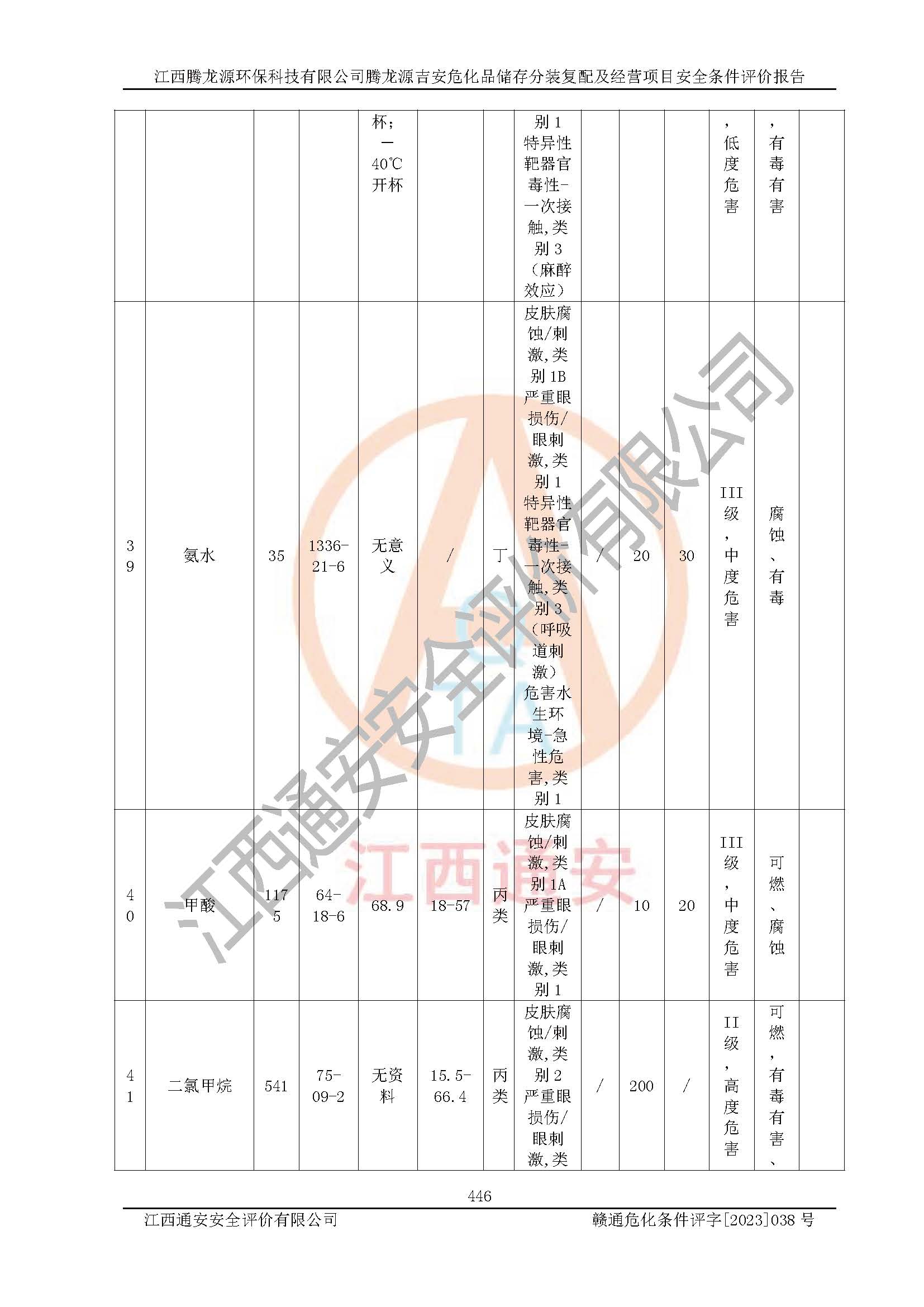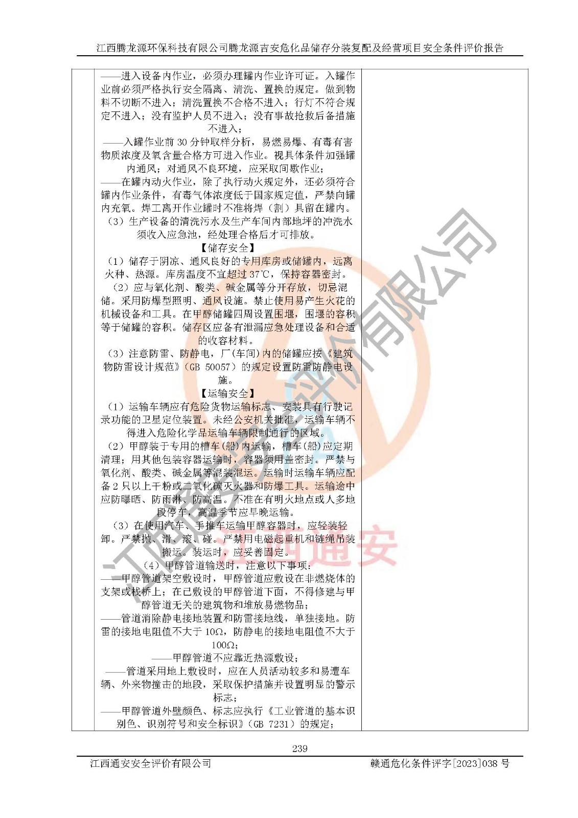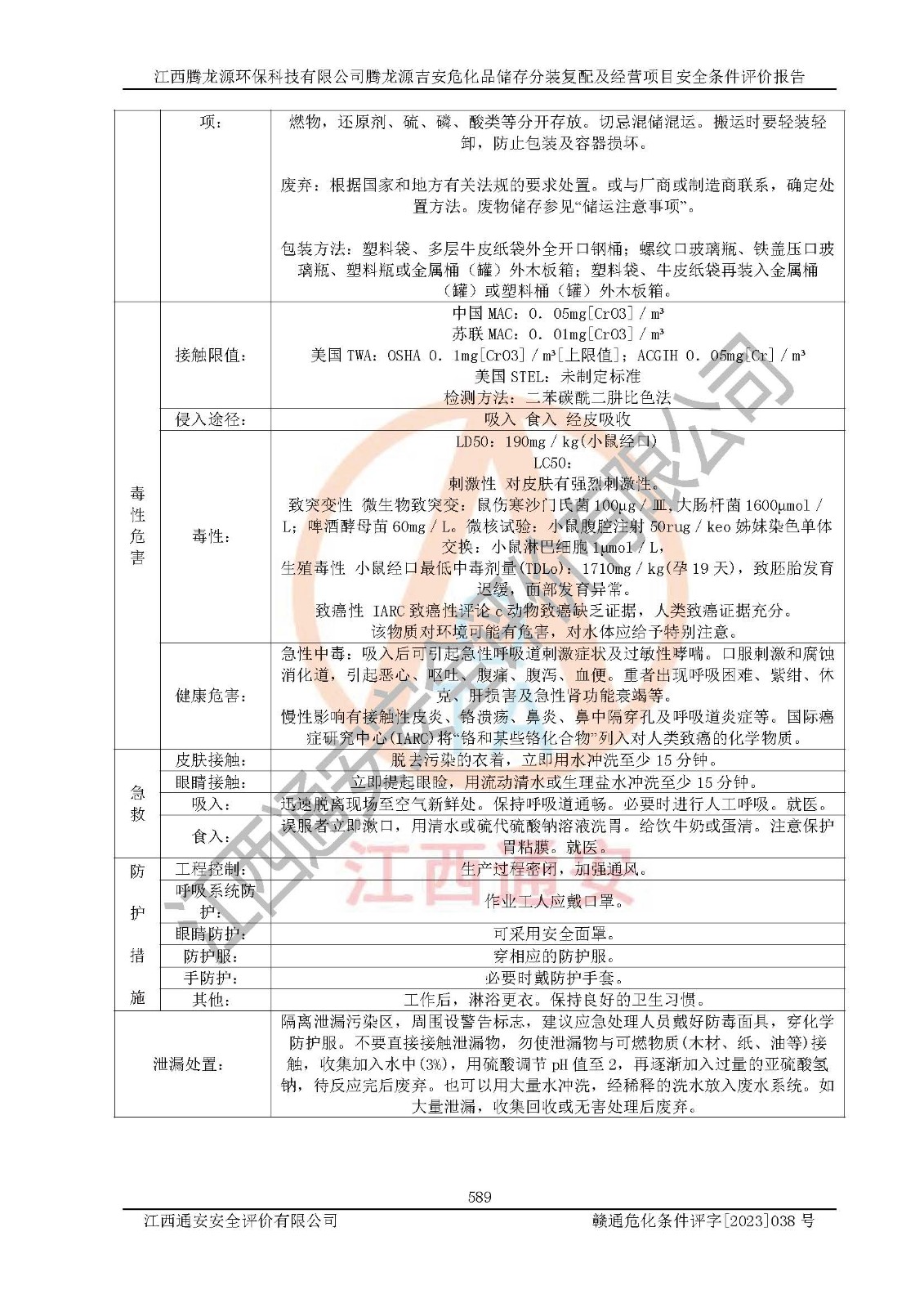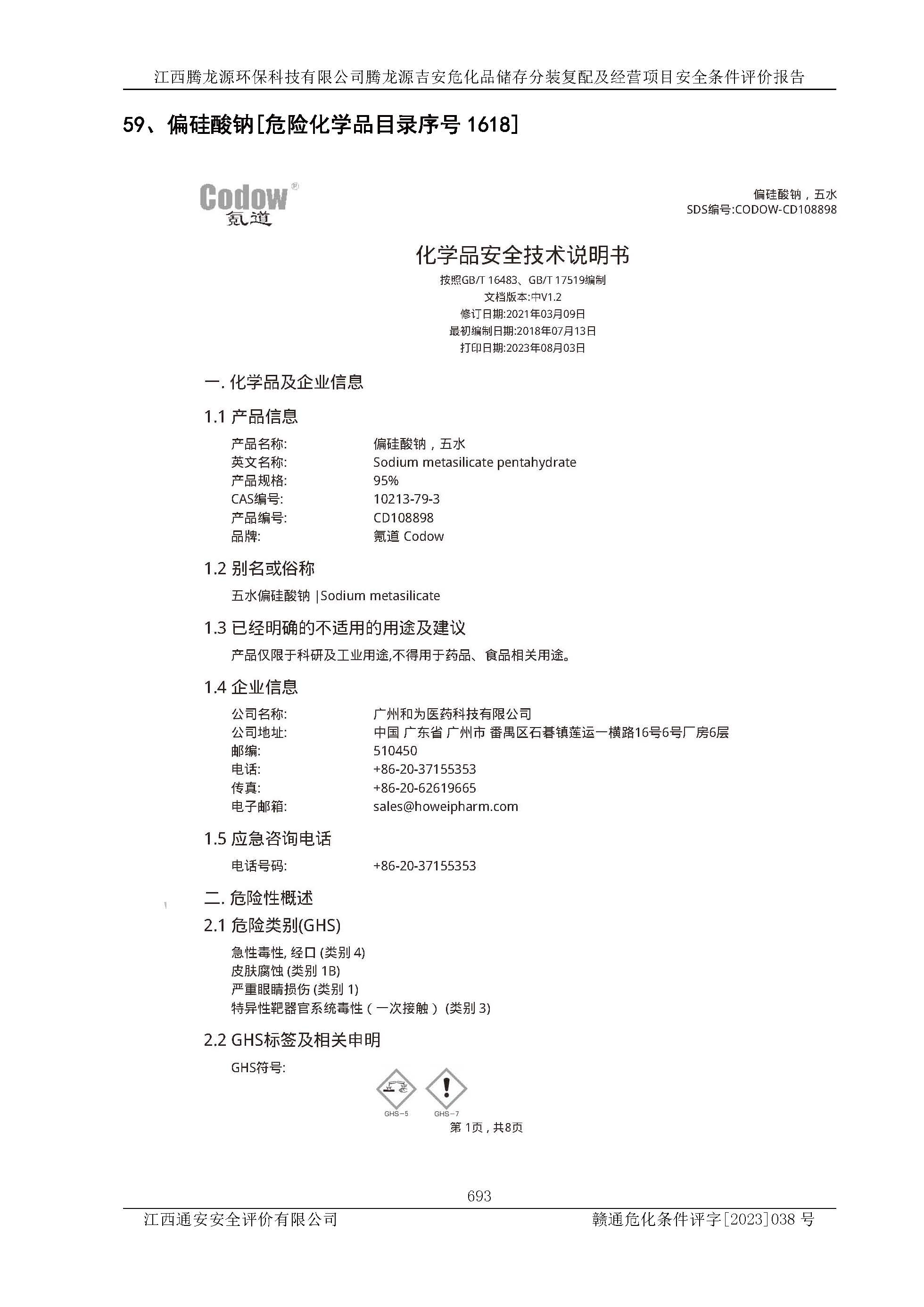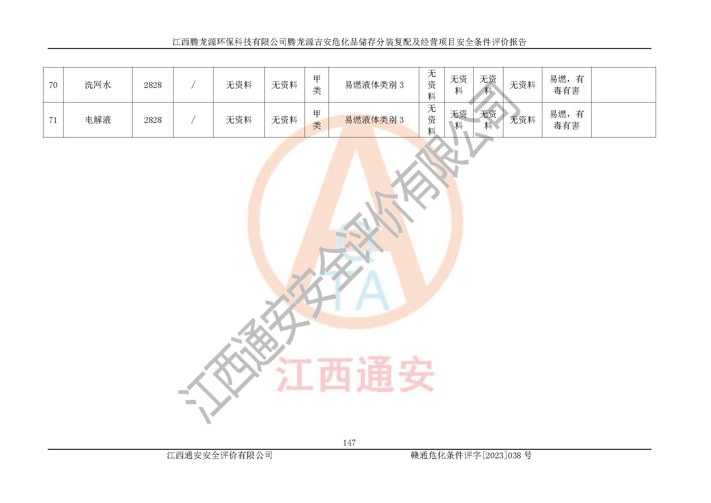 項(xiàng)目簡介 | 江西騰龍?jiān)?*科技有限公司成立于2022年6月20日,并取得吉水縣市場監(jiān)督管理局頒發(fā)的《營業(yè)執(zhí)照》,營業(yè)執(zhí)照統(tǒng)一社會信用代碼:91360822MABQK5GB5P。公司注冊住所:江西省吉安市吉水縣城西工業(yè)園區(qū)二期金龍路。法定**人:吳詩明。注冊資本壹仟萬元整。企業(yè)性質(zhì)為有限責(zé)任公司(自然人投資或控股)。營業(yè)執(zhí)照許可經(jīng)營范圍:一般項(xiàng)目:化工產(chǎn)品銷售(不含許可類化工產(chǎn)品)(除許可業(yè)務(wù)外,可自主依法經(jīng)營法律法規(guī)非禁止或限制的項(xiàng)目)。 江西騰龍?jiān)?*科技有限公司2023年2月24日取得吉水縣發(fā)展和改革委員會頒發(fā)的《江西省企業(yè)投資項(xiàng)目備案通知書》,備案項(xiàng)目名稱為:騰龍?jiān)醇参;穬Υ娣盅b復(fù)配及經(jīng)營項(xiàng)目。項(xiàng)目統(tǒng)一代碼為:2302-360822-04-01-318980。項(xiàng)目總投資20000萬元,項(xiàng)目總占地面積31.34畝。 根據(jù)《危險(xiǎn)化學(xué)品目錄(2015版)》(**安監(jiān)總局等十部門公告[2015]第5號)及應(yīng)急管理部、工業(yè)和信息化部、公安部、生態(tài)環(huán)境部、交通運(yùn)輸部、農(nóng)業(yè)農(nóng)村部、衛(wèi)生健康委、市場監(jiān)管總局、鐵路局、民航局決定調(diào)整《危險(xiǎn)化學(xué)品目錄(2015版)》(應(yīng)急管理部、工業(yè)和信息化部、公安部、生態(tài)環(huán)境部、交通運(yùn)輸部、農(nóng)業(yè)農(nóng)村部、衛(wèi)生健康委、市場監(jiān)管總局、鐵路局、民航局公告2022年第8號)等文件對該項(xiàng)目生產(chǎn)過程中所涉及的化學(xué)品進(jìn)行辨識:項(xiàng)目涉及的硫酸、鹽酸、雙氧水、硝酸、氫氧化鈉(固體和溶液)、次氯酸鈉溶液、氯酸鈉、氯酸鉀、鉻酸酐、高錳酸鈉、高錳酸鉀、硝酸鉀、重鉻酸鉀、重鉻酸鈉、硝酸鈉、亞硝酸鈉、過硫酸鈉、過硫酸銨、過硫酸鉀、漂白粉、氯化亞砜、甲醇、乙醇、二甲苯、甲苯、**、天那水、乙酸、乙酸乙酯、甲醛溶液、三氯乙烯、正丁醇、異丙醇、石油醚、醋酸酐、甲基乙基酮(丁酮)、三氯甲烷、乙醚、氨水(20%)、甲酸、二氯甲烷、**苯、乙酸丁酯、氫氟酸、磷酸、硫化鈉(無水)、氫氧化鉀、氨基磺酸、三氯化鐵、九水硝酸鐵、氯化鋅、硫脲、硼酸、硫酸鎳、氯化鎳、氟化氫銨、氟化氫鉀、氟化氫鈉、偏硅酸鈉、九水偏硅酸鈉、氟硅酸鈉、亞硫酸氫鈉、氟化鈉、氟化鉀、六次甲基四胺、結(jié)晶氯化鋁、碳酸二乙酯、碳酸二甲酯、酸性清洗劑、退鍍劑、開油水、洗網(wǎng)水、污水殺菌劑(復(fù)配的次氯酸鈉溶液)、電解液等屬于危險(xiǎn)化學(xué)品。 江西騰龍?jiān)?*科技有限公司騰龍?jiān)醇参;穬Υ娣盅b復(fù)配及經(jīng)營項(xiàng)目只進(jìn)行物理混合復(fù)配、分裝等作業(yè),不涉及化學(xué)反應(yīng)過程。因此該公司?;穫}儲經(jīng)營活動需要辦理《危險(xiǎn)化學(xué)品經(jīng)營許可證》。 根據(jù)《中華人民共和國監(jiān)控化學(xué)品管理?xiàng)l例》(中華人民共和國***令**90號,經(jīng)中華人民共和國***令第588號修改)及《各類監(jiān)控化學(xué)品名錄》(中華人民共和國工業(yè)和信息化部令第52號;2020年)、《列入第三類監(jiān)控化學(xué)品的新增品種清單》**石油和化學(xué)工業(yè)局令**號等規(guī)定進(jìn)行辨識:項(xiàng)目涉及的氯化亞砜屬于第三類監(jiān)控化學(xué)品。 根據(jù)《易制毒化學(xué)品管理?xiàng)l例》(***令第445號,經(jīng)***令第653號、***第666號、***第703號修改)及附表規(guī)定、中華人民共和國公安部 中華人民共和國商務(wù)部、**衛(wèi)生和計(jì)劃生育委員會、中華人民共和國海關(guān)總署、**安全生產(chǎn)監(jiān)督管理總局、**食品藥品監(jiān)督管理總局《關(guān)于將4-苯胺基-N-苯乙基哌啶、N-苯乙基-4-哌啶酮、N-甲基-1-苯基-1-氯-2-丙胺、溴素、1-苯基-1-**5種物質(zhì)列入易制毒化學(xué)品管理的公告》(國辦函[2017]**20號)、《***辦公廳關(guān)于同意將1-苯基-2-溴-1-**和3-氧-2-苯基丁腈列入易制毒化學(xué)品品種目錄的函》(國辦函[2014]第40號)、《***辦公廳關(guān)于同意將α-苯乙酰乙酸甲酯等6種物質(zhì)列入易制毒化學(xué)品品種目錄的函》(國辦函〔2021〕58號)等進(jìn)行辨識:項(xiàng)目涉及的硫酸、鹽酸、高錳酸鉀、甲苯、**、甲基乙基酮等屬于第三類易制毒化學(xué)品;醋酸酐、三氯甲烷、乙醚等屬于第二類易制毒化學(xué)品。 根據(jù)《危險(xiǎn)化學(xué)品名錄[2015年版]》(**安監(jiān)總局等十部門[2015]第5號)進(jìn)行劇毒化學(xué)品辨識:項(xiàng)目不涉及劇毒化學(xué)品。 根據(jù)《高毒物品目錄(2003年版)》(原衛(wèi)生部衛(wèi)法監(jiān)發(fā)[2003]142號)對項(xiàng)目涉及的化學(xué)品進(jìn)行高毒物品辨識:項(xiàng)目涉及的甲醛溶液、硫酸鎳、氯化鎳、氟化氫銨、氟化氫鉀、氟化氫鈉、氟化鈉、氟化鉀、鉻酸酐、高錳酸鉀、高錳酸鈉、重鉻酸鉀、重鉻酸鈉等屬于高毒物品。 根據(jù)中華人民共和國公安部《易制爆危險(xiǎn)化學(xué)品名錄》(2017年版)中規(guī)定進(jìn)行辨識:項(xiàng)目涉及的雙氧水、硝酸、氯酸鈉、氯酸鉀、高錳酸鉀、高錳酸鈉、硝酸鉀、重鉻酸鉀、重鉻酸鈉、硝酸鈉、六次甲基四胺等屬于易