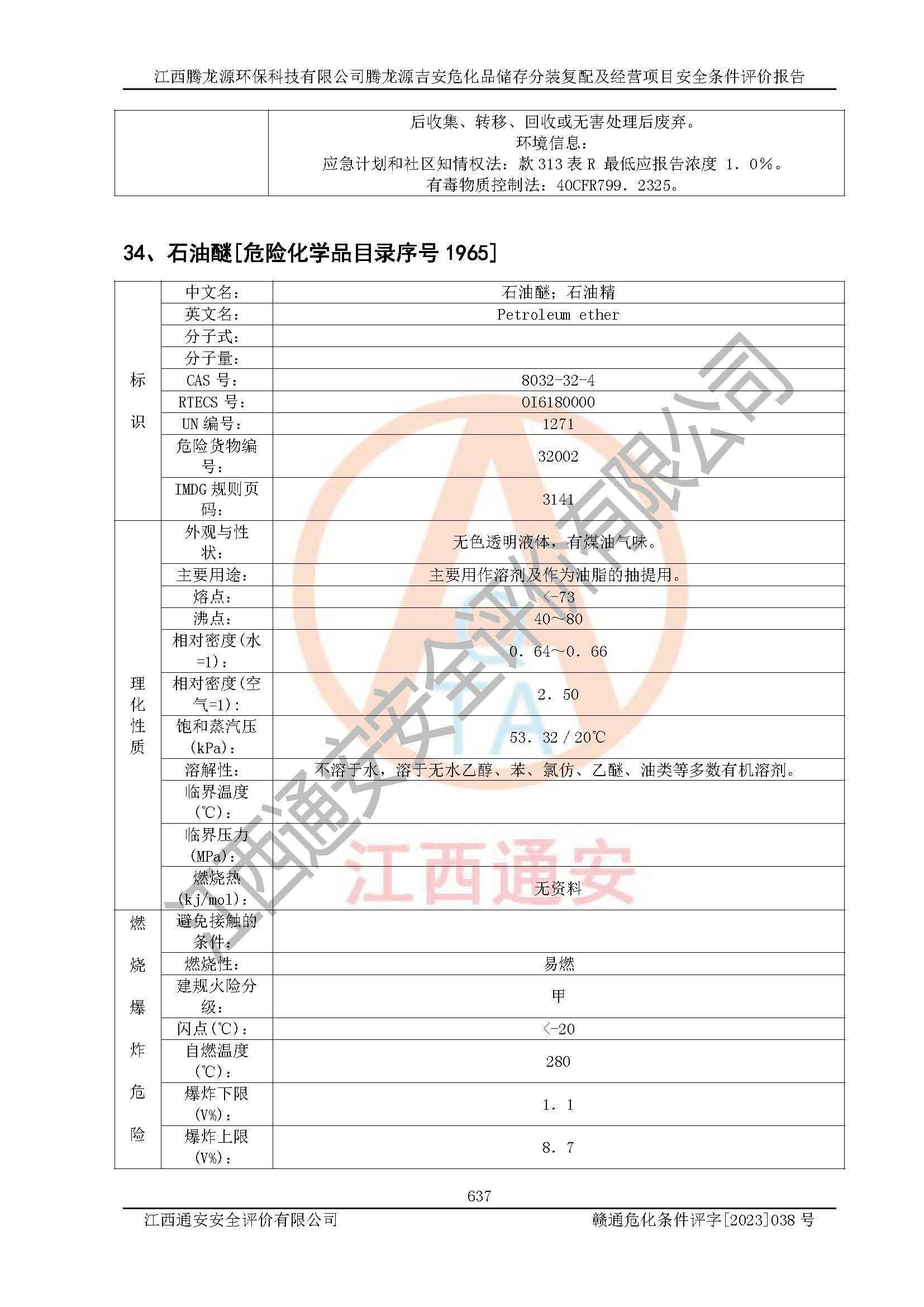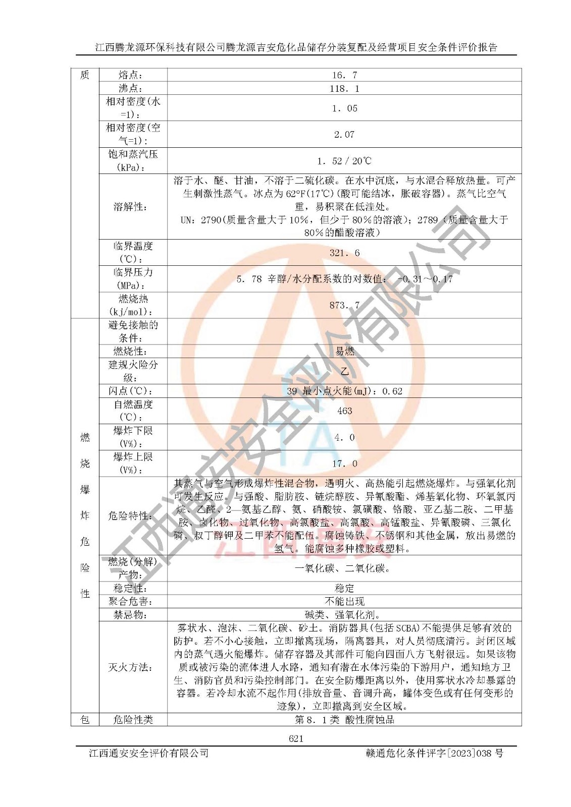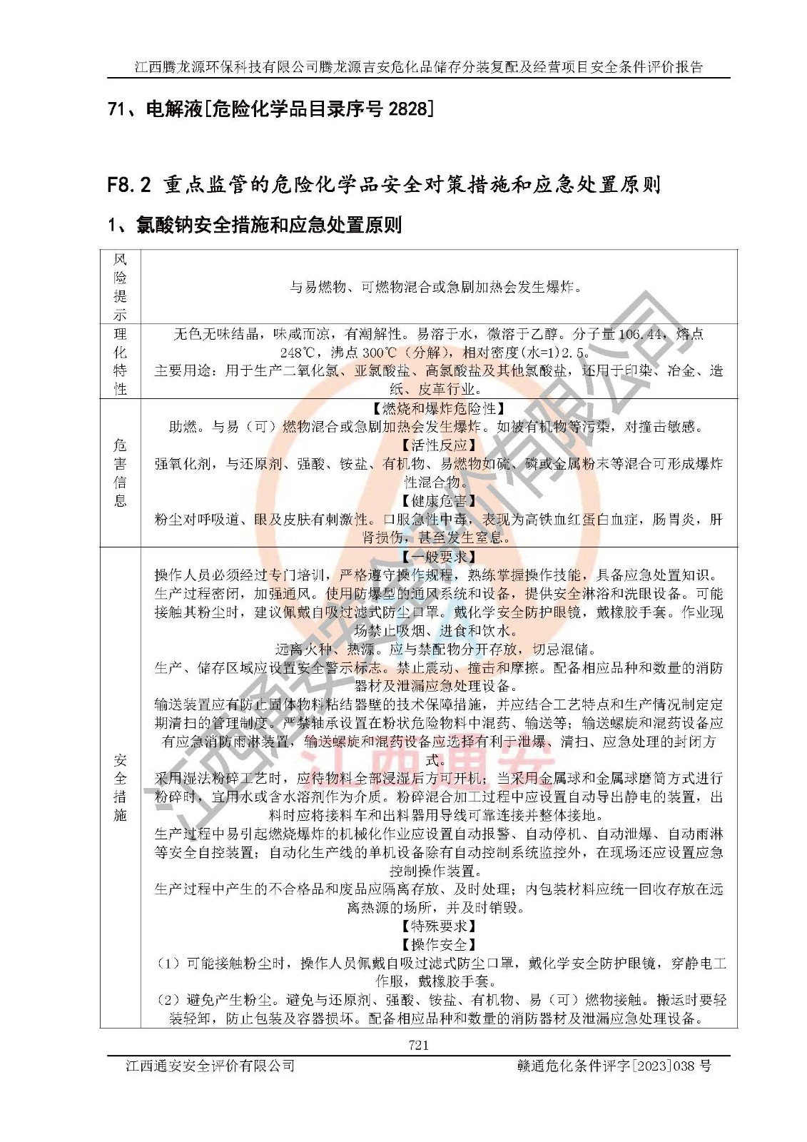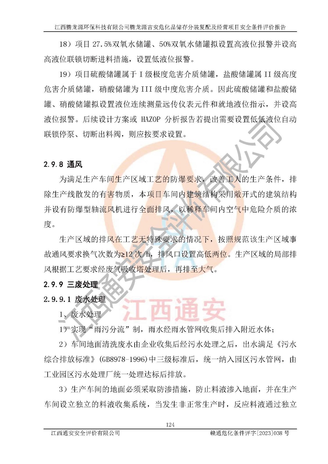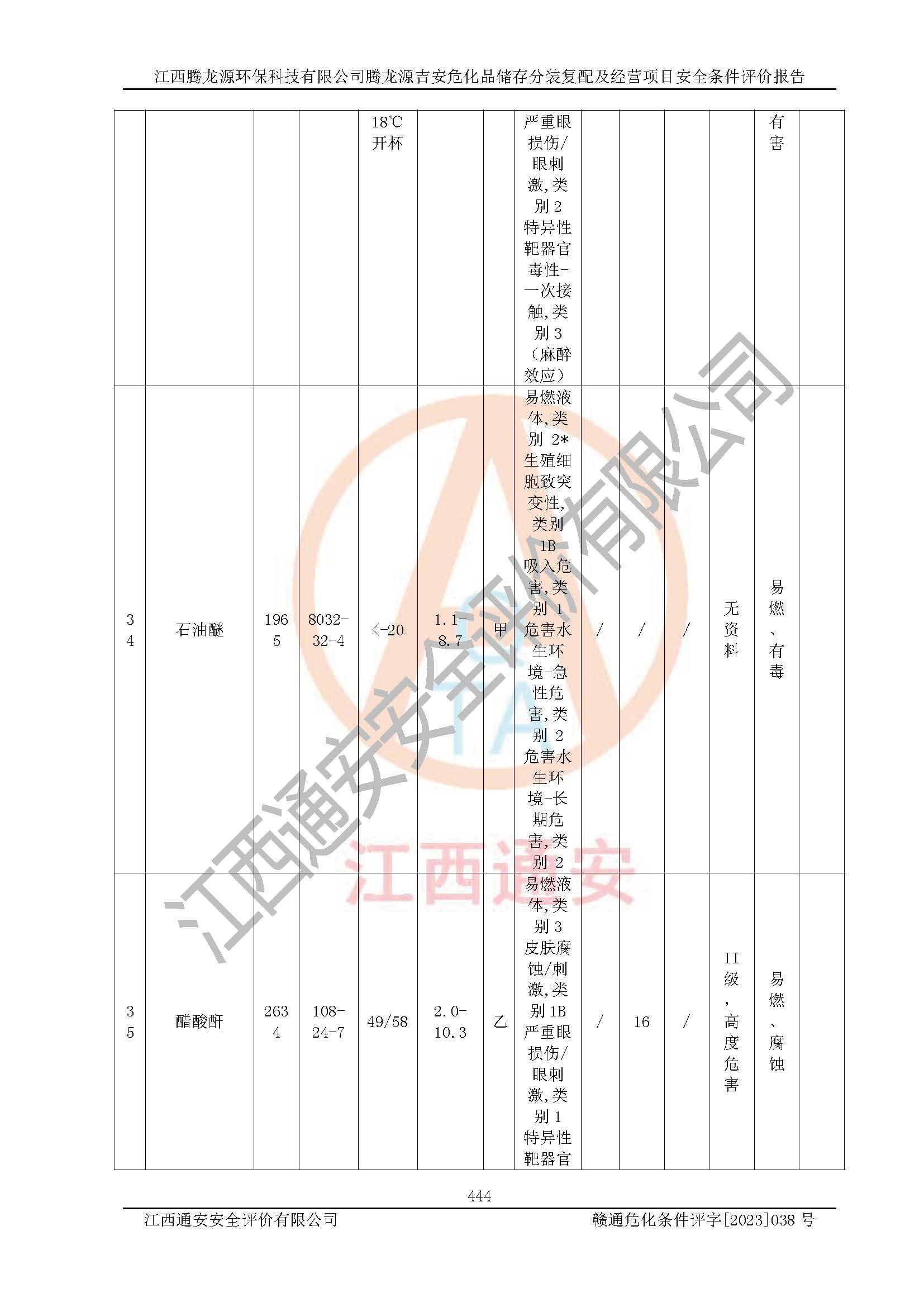 項(xiàng)目簡介 | 江西騰龍?jiān)?*科技有限公司成立于2022年6月20日,并取得吉水縣市場監(jiān)督管理局頒發(fā)的《營業(yè)執(zhí)照》,營業(yè)執(zhí)照統(tǒng)一社會信用代碼:91360822MABQK5GB5P。公司注冊住所:江西省吉安市吉水縣城西工業(yè)園區(qū)二期金龍路。法定**人:吳詩明。注冊資本壹仟萬元整。企業(yè)性質(zhì)為有限責(zé)任公司(自然人投資或控股)。營業(yè)執(zhí)照許可經(jīng)營范圍:一般項(xiàng)目:化工產(chǎn)品銷售(不含許可類化工產(chǎn)品)(除許可業(yè)務(wù)外,可自主依法經(jīng)營法律法規(guī)非禁止或限制的項(xiàng)目)。 江西騰龍?jiān)?*科技有限公司2023年2月24日取得吉水縣發(fā)展和改革委員會頒發(fā)的《江西省企業(yè)投資項(xiàng)目備案通知書》,備案項(xiàng)目名稱為:騰龍?jiān)醇参;穬Υ娣盅b復(fù)配及經(jīng)營項(xiàng)目。項(xiàng)目統(tǒng)一代碼為:2302-360822-04-01-318980。項(xiàng)目總投資20000萬元,項(xiàng)目總占地面積31.34畝。 根據(jù)《危險(xiǎn)化學(xué)品目錄(2015版)》(**安監(jiān)總局等十部門公告[2015]第5號)及應(yīng)急管理部、工業(yè)和信息化部、公安部、生態(tài)環(huán)境部、交通運(yùn)輸部、農(nóng)業(yè)農(nóng)村部、衛(wèi)生健康委、市場監(jiān)管總局、鐵路局、民航局決定調(diào)整《危險(xiǎn)化學(xué)品目錄(2015版)》(應(yīng)急管理部、工業(yè)和信息化部、公安部、生態(tài)環(huán)境部、交通運(yùn)輸部、農(nóng)業(yè)農(nóng)村部、衛(wèi)生健康委、市場監(jiān)管總局、鐵路局、民航局公告2022年第8號)等文件對該項(xiàng)目生產(chǎn)過程中所涉及的化學(xué)品進(jìn)行辨識:項(xiàng)目涉及的硫酸、鹽酸、雙氧水、硝酸、氫氧化鈉(固體和溶液)、次氯酸鈉溶液、氯酸鈉、氯酸鉀、鉻酸酐、高錳酸鈉、高錳酸鉀、硝酸鉀、重鉻酸鉀、重鉻酸鈉、硝酸鈉、亞硝酸鈉、過硫酸鈉、過硫酸銨、過硫酸鉀、漂白粉、氯化亞砜、甲醇、乙醇、二甲苯、甲苯、**、天那水、乙酸、乙酸乙酯、甲醛溶液、三氯乙烯、正丁醇、異丙醇、石油醚、醋酸酐、甲基乙基酮(丁酮)、三氯甲烷、乙醚、氨水(20%)、甲酸、二氯甲烷、**苯、乙酸丁酯、氫氟酸、磷酸、硫化鈉(無水)、氫氧化鉀、氨基磺酸、三氯化鐵、九水硝酸鐵、氯化鋅、硫脲、硼酸、硫酸鎳、氯化鎳、氟化氫銨、氟化氫鉀、氟化氫鈉、偏硅酸鈉、九水偏硅酸鈉、氟硅酸鈉、亞硫酸氫鈉、氟化鈉、氟化鉀、六次甲基四胺、結(jié)晶氯化鋁、碳酸二乙酯、碳酸二甲酯、酸性清洗劑、退鍍劑、開油水、洗網(wǎng)水、污水殺菌劑(復(fù)配的次氯酸鈉溶液)、電解液等屬于危險(xiǎn)化學(xué)品。 江西騰龍?jiān)?*科技有限公司騰龍?jiān)醇参;穬Υ娣盅b復(fù)配及經(jīng)營項(xiàng)目只進(jìn)行物理混合復(fù)配、分裝等作業(yè),不涉及化學(xué)反應(yīng)過程。因此該公司?;穫}儲經(jīng)營活動需要辦理《危險(xiǎn)化學(xué)品經(jīng)營許可證》。 根據(jù)《中華人民共和國監(jiān)控化學(xué)品管理?xiàng)l例》(中華人民共和國***令**90號,經(jīng)中華人民共和國***令第588號修改)及《各類監(jiān)控化學(xué)品名錄》(中華人民共和國工業(yè)和信息化部令第52號;2020年)、《列入第三類監(jiān)控化學(xué)品的新增品種清單》**石油和化學(xué)工業(yè)局令**號等規(guī)定進(jìn)行辨識:項(xiàng)目涉及的氯化亞砜屬于第三類監(jiān)控化學(xué)品。 根據(jù)《易制毒化學(xué)品管理?xiàng)l例》(***令第445號,經(jīng)***令第653號、***第666號、***第703號修改)及附表規(guī)定、中華人民共和國公安部 中華人民共和國商務(wù)部、**衛(wèi)生和計(jì)劃生育委員會、中華人民共和國海關(guān)總署、**安全生產(chǎn)監(jiān)督管理總局、**食品藥品監(jiān)督管理總局《關(guān)于將4-苯胺基-N-苯乙基哌啶、N-苯乙基-4-哌啶酮、N-甲基-1-苯基-1-氯-2-丙胺、溴素、1-苯基-1-**5種物質(zhì)列入易制毒化學(xué)品管理的公告》(國辦函[2017]**20號)、《***辦公廳關(guān)于同意將1-苯基-2-溴-1-**和3-氧-2-苯基丁腈列入易制毒化學(xué)品品種目錄的函》(國辦函[2014]第40號)、《***辦公廳關(guān)于同意將α-苯乙酰乙酸甲酯等6種物質(zhì)列入易制毒化學(xué)品品種目錄的函》(國辦函〔2021〕58號)等進(jìn)行辨識:項(xiàng)目涉及的硫酸、鹽酸、高錳酸鉀、甲苯、**、甲基乙基酮等屬于第三類易制毒化學(xué)品;醋酸酐、三氯甲烷、乙醚等屬于第二類易制毒化學(xué)品。 根據(jù)《危險(xiǎn)化學(xué)品名錄[2015年版]》(**安監(jiān)總局等十部門[2015]第5號)進(jìn)行劇毒化學(xué)品辨識:項(xiàng)目不涉及劇毒化學(xué)品。 根據(jù)《高毒物品目錄(2003年版)》(原衛(wèi)生部衛(wèi)法監(jiān)發(fā)[2003]142號)對項(xiàng)目涉及的化學(xué)品進(jìn)行高毒物品辨識:項(xiàng)目涉及的甲醛溶液、硫酸鎳、氯化鎳、氟化氫銨、氟化氫鉀、氟化氫鈉、氟化鈉、氟化鉀、鉻酸酐、高錳酸鉀、高錳酸鈉、重鉻酸鉀、重鉻酸鈉等屬于高毒物品。 根據(jù)中華人民共和國公安部《易制爆危險(xiǎn)化學(xué)品名錄》(2017年版)中規(guī)定進(jìn)行辨識:項(xiàng)目涉及的雙氧水、硝酸、氯酸鈉、氯酸鉀、高錳酸鉀、高錳酸鈉、硝酸鉀、重鉻酸鉀、重鉻酸鈉、硝酸鈉、六次甲基四胺等屬于易