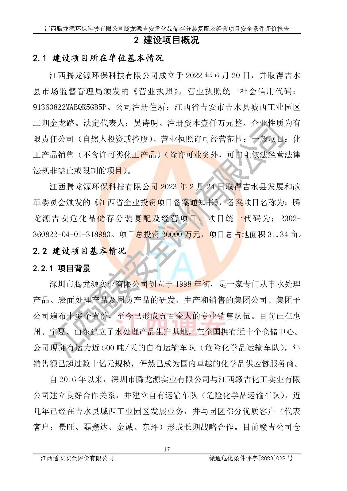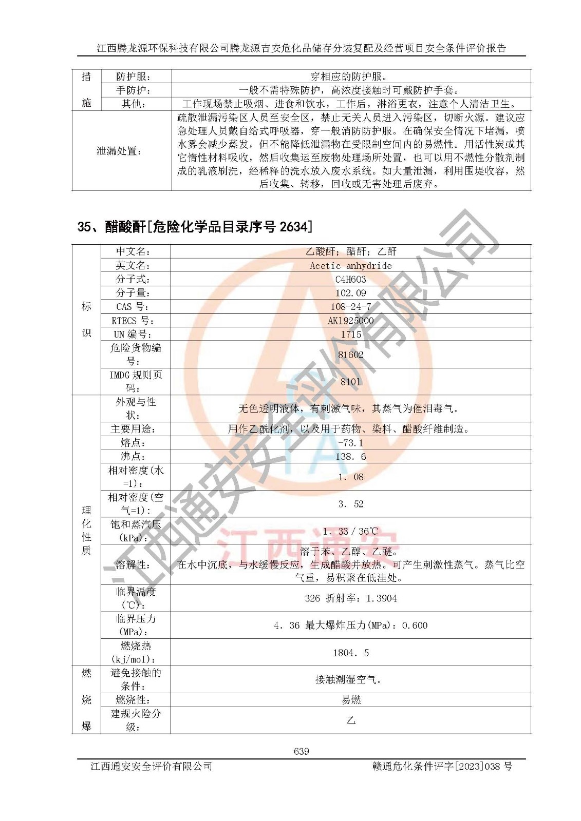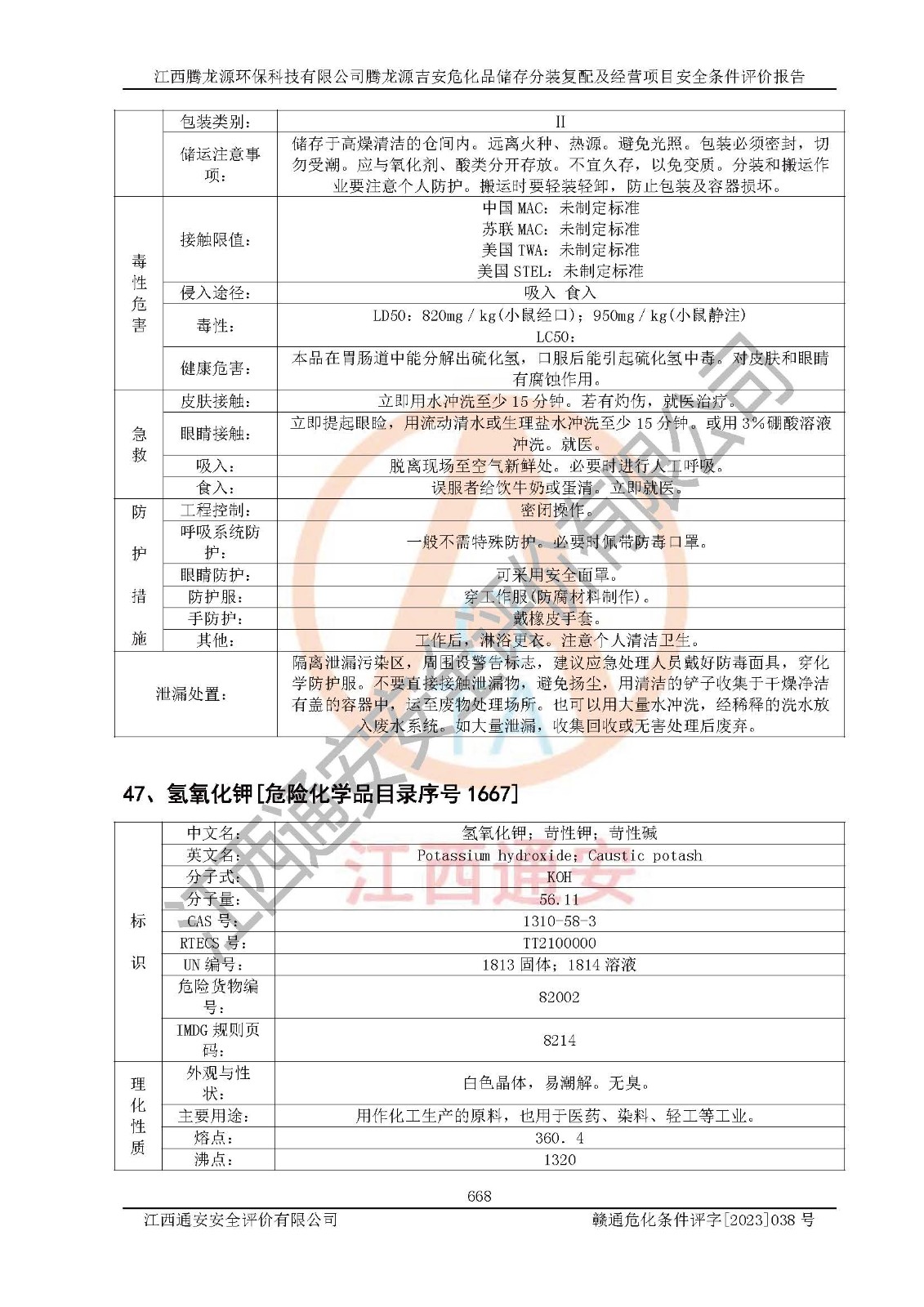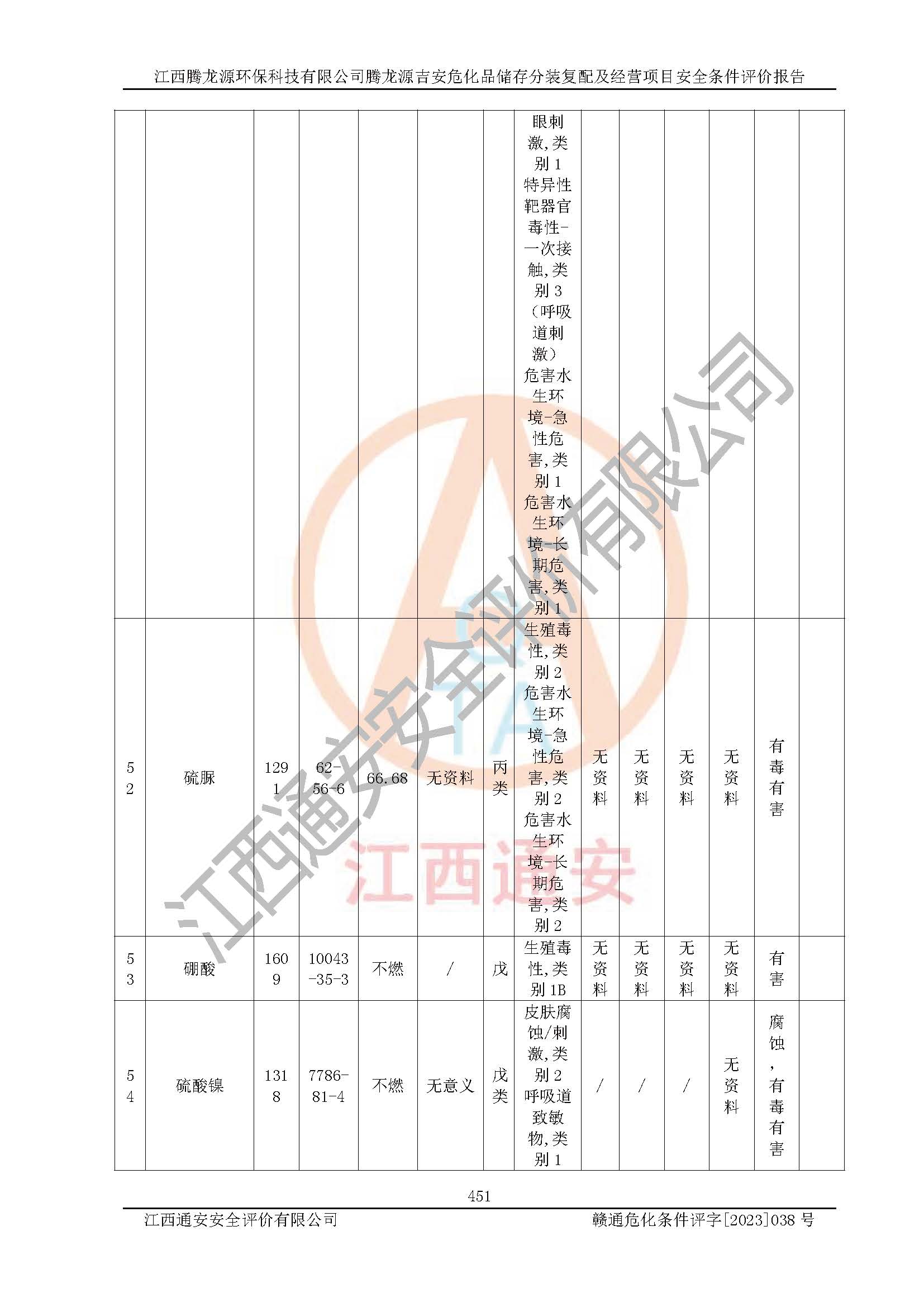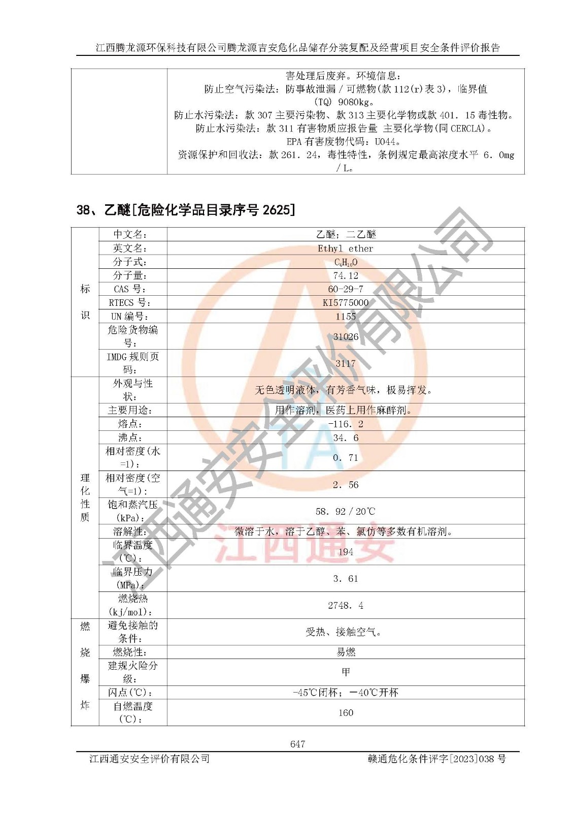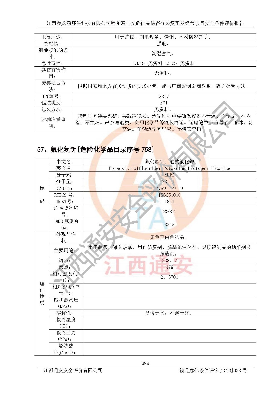 項(xiàng)目簡介 | 江西騰龍?jiān)?*科技有限公司成立于2022年6月20日,并取得吉水縣市場監(jiān)督管理局頒發(fā)的《營業(yè)執(zhí)照》,營業(yè)執(zhí)照統(tǒng)一社會信用代碼:91360822MABQK5GB5P。公司注冊住所:江西省吉安市吉水縣城西工業(yè)園區(qū)二期金龍路。法定**人:吳詩明。注冊資本壹仟萬元整。企業(yè)性質(zhì)為有限責(zé)任公司(自然人投資或控股)。營業(yè)執(zhí)照許可經(jīng)營范圍:一般項(xiàng)目:化工產(chǎn)品銷售(不含許可類化工產(chǎn)品)(除許可業(yè)務(wù)外,可自主依法經(jīng)營法律法規(guī)非禁止或限制的項(xiàng)目)。 江西騰龍?jiān)?*科技有限公司2023年2月24日取得吉水縣發(fā)展和改革委員會頒發(fā)的《江西省企業(yè)投資項(xiàng)目備案通知書》,備案項(xiàng)目名稱為:騰龍?jiān)醇参;穬Υ娣盅b復(fù)配及經(jīng)營項(xiàng)目。項(xiàng)目統(tǒng)一代碼為:2302-360822-04-01-318980。項(xiàng)目總投資20000萬元,項(xiàng)目總占地面積31.34畝。 根據(jù)《危險(xiǎn)化學(xué)品目錄(2015版)》(**安監(jiān)總局等十部門公告[2015]第5號)及應(yīng)急管理部、工業(yè)和信息化部、公安部、生態(tài)環(huán)境部、交通運(yùn)輸部、農(nóng)業(yè)農(nóng)村部、衛(wèi)生健康委、市場監(jiān)管總局、鐵路局、民航局決定調(diào)整《危險(xiǎn)化學(xué)品目錄(2015版)》(應(yīng)急管理部、工業(yè)和信息化部、公安部、生態(tài)環(huán)境部、交通運(yùn)輸部、農(nóng)業(yè)農(nóng)村部、衛(wèi)生健康委、市場監(jiān)管總局、鐵路局、民航局公告2022年第8號)等文件對該項(xiàng)目生產(chǎn)過程中所涉及的化學(xué)品進(jìn)行辨識:項(xiàng)目涉及的硫酸、鹽酸、雙氧水、硝酸、氫氧化鈉(固體和溶液)、次氯酸鈉溶液、氯酸鈉、氯酸鉀、鉻酸酐、高錳酸鈉、高錳酸鉀、硝酸鉀、重鉻酸鉀、重鉻酸鈉、硝酸鈉、亞硝酸鈉、過硫酸鈉、過硫酸銨、過硫酸鉀、漂白粉、氯化亞砜、甲醇、乙醇、二甲苯、甲苯、**、天那水、乙酸、乙酸乙酯、甲醛溶液、三氯乙烯、正丁醇、異丙醇、石油醚、醋酸酐、甲基乙基酮(丁酮)、三氯甲烷、乙醚、氨水(20%)、甲酸、二氯甲烷、**苯、乙酸丁酯、氫氟酸、磷酸、硫化鈉(無水)、氫氧化鉀、氨基磺酸、三氯化鐵、九水硝酸鐵、氯化鋅、硫脲、硼酸、硫酸鎳、氯化鎳、氟化氫銨、氟化氫鉀、氟化氫鈉、偏硅酸鈉、九水偏硅酸鈉、氟硅酸鈉、亞硫酸氫鈉、氟化鈉、氟化鉀、六次甲基四胺、結(jié)晶氯化鋁、碳酸二乙酯、碳酸二甲酯、酸性清洗劑、退鍍劑、開油水、洗網(wǎng)水、污水殺菌劑(復(fù)配的次氯酸鈉溶液)、電解液等屬于危險(xiǎn)化學(xué)品。 江西騰龍?jiān)?*科技有限公司騰龍?jiān)醇参;穬Υ娣盅b復(fù)配及經(jīng)營項(xiàng)目只進(jìn)行物理混合復(fù)配、分裝等作業(yè),不涉及化學(xué)反應(yīng)過程。因此該公司?;穫}儲經(jīng)營活動需要辦理《危險(xiǎn)化學(xué)品經(jīng)營許可證》。 根據(jù)《中華人民共和國監(jiān)控化學(xué)品管理?xiàng)l例》(中華人民共和國***令**90號,經(jīng)中華人民共和國***令第588號修改)及《各類監(jiān)控化學(xué)品名錄》(中華人民共和國工業(yè)和信息化部令第52號;2020年)、《列入第三類監(jiān)控化學(xué)品的新增品種清單》**石油和化學(xué)工業(yè)局令**號等規(guī)定進(jìn)行辨識:項(xiàng)目涉及的氯化亞砜屬于第三類監(jiān)控化學(xué)品。 根據(jù)《易制毒化學(xué)品管理?xiàng)l例》(***令第445號,經(jīng)***令第653號、***第666號、***第703號修改)及附表規(guī)定、中華人民共和國公安部 中華人民共和國商務(wù)部、**衛(wèi)生和計(jì)劃生育委員會、中華人民共和國海關(guān)總署、**安全生產(chǎn)監(jiān)督管理總局、**食品藥品監(jiān)督管理總局《關(guān)于將4-苯胺基-N-苯乙基哌啶、N-苯乙基-4-哌啶酮、N-甲基-1-苯基-1-氯-2-丙胺、溴素、1-苯基-1-**5種物質(zhì)列入易制毒化學(xué)品管理的公告》(國辦函[2017]**20號)、《***辦公廳關(guān)于同意將1-苯基-2-溴-1-**和3-氧-2-苯基丁腈列入易制毒化學(xué)品品種目錄的函》(國辦函[2014]第40號)、《***辦公廳關(guān)于同意將α-苯乙酰乙酸甲酯等6種物質(zhì)列入易制毒化學(xué)品品種目錄的函》(國辦函〔2021〕58號)等進(jìn)行辨識:項(xiàng)目涉及的硫酸、鹽酸、高錳酸鉀、甲苯、**、甲基乙基酮等屬于第三類易制毒化學(xué)品;醋酸酐、三氯甲烷、乙醚等屬于第二類易制毒化學(xué)品。 根據(jù)《危險(xiǎn)化學(xué)品名錄[2015年版]》(**安監(jiān)總局等十部門[2015]第5號)進(jìn)行劇毒化學(xué)品辨識:項(xiàng)目不涉及劇毒化學(xué)品。 根據(jù)《高毒物品目錄(2003年版)》(原衛(wèi)生部衛(wèi)法監(jiān)發(fā)[2003]142號)對項(xiàng)目涉及的化學(xué)品進(jìn)行高毒物品辨識:項(xiàng)目涉及的甲醛溶液、硫酸鎳、氯化鎳、氟化氫銨、氟化氫鉀、氟化氫鈉、氟化鈉、氟化鉀、鉻酸酐、高錳酸鉀、高錳酸鈉、重鉻酸鉀、重鉻酸鈉等屬于高毒物品。 根據(jù)中華人民共和國公安部《易制爆危險(xiǎn)化學(xué)品名錄》(2017年版)中規(guī)定進(jìn)行辨識:項(xiàng)目涉及的雙氧水、硝酸、氯酸鈉、氯酸鉀、高錳酸鉀、高錳酸鈉、硝酸鉀、重鉻酸鉀、重鉻酸鈉、硝酸鈉、六次甲基四胺等屬于易