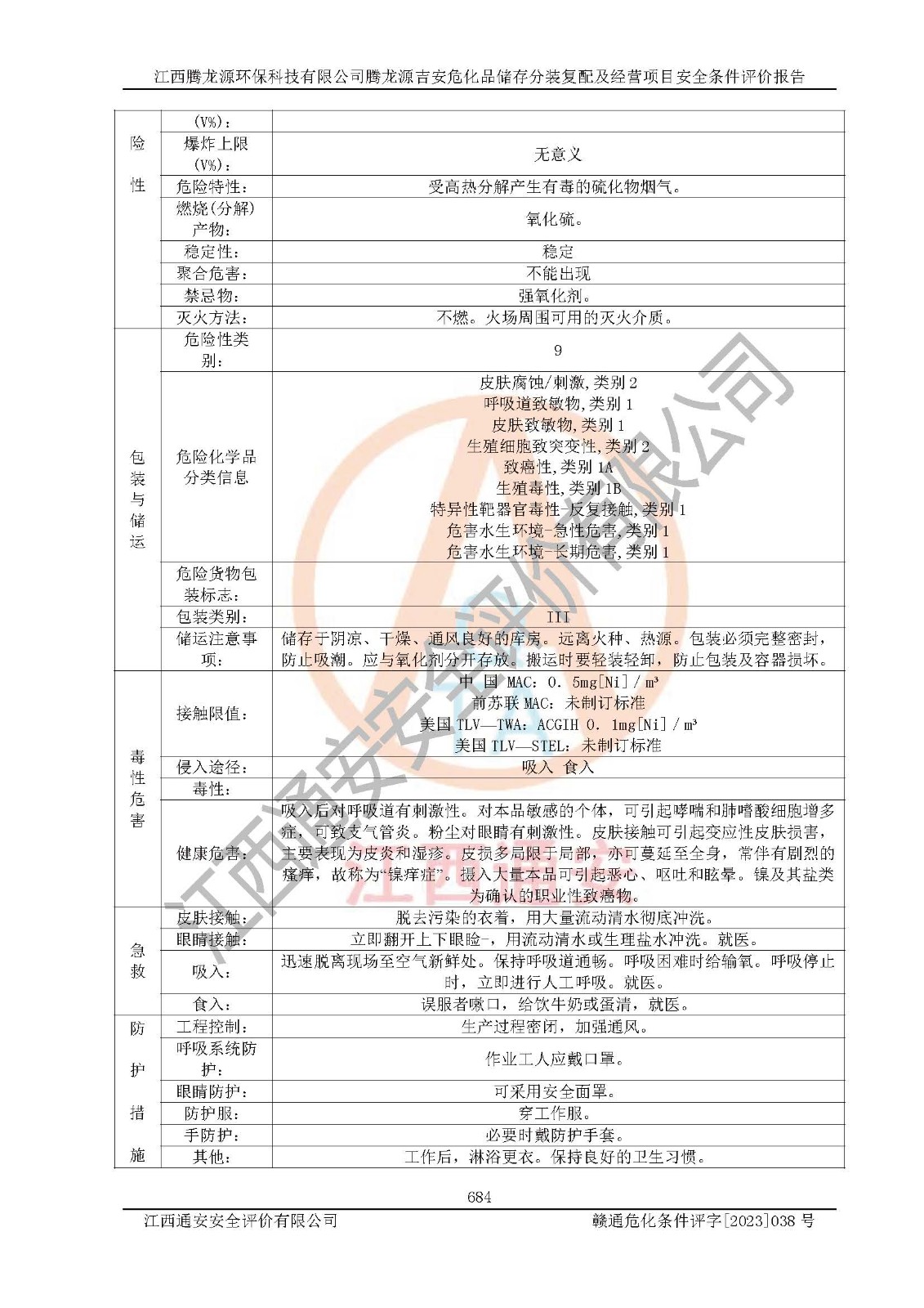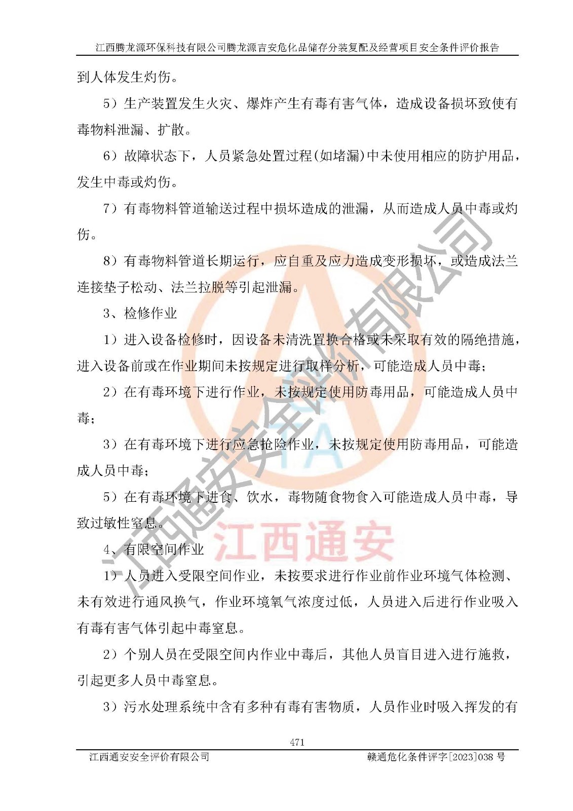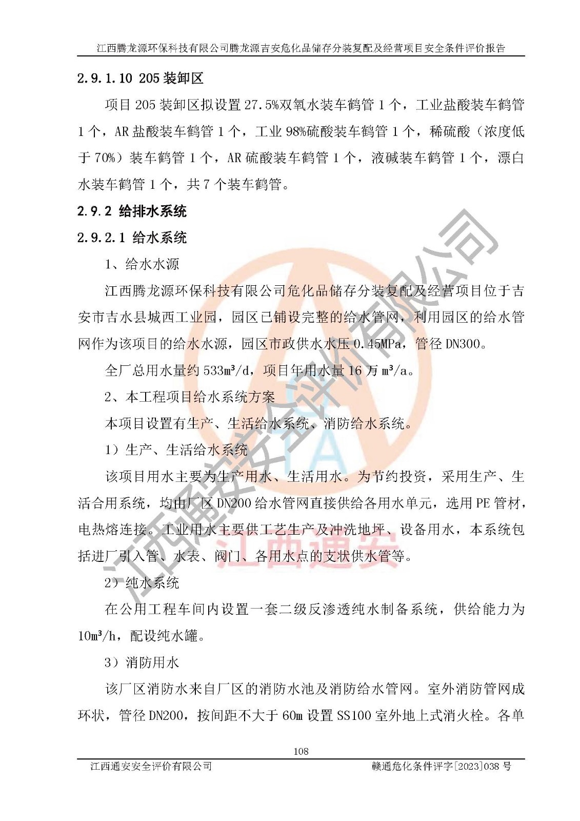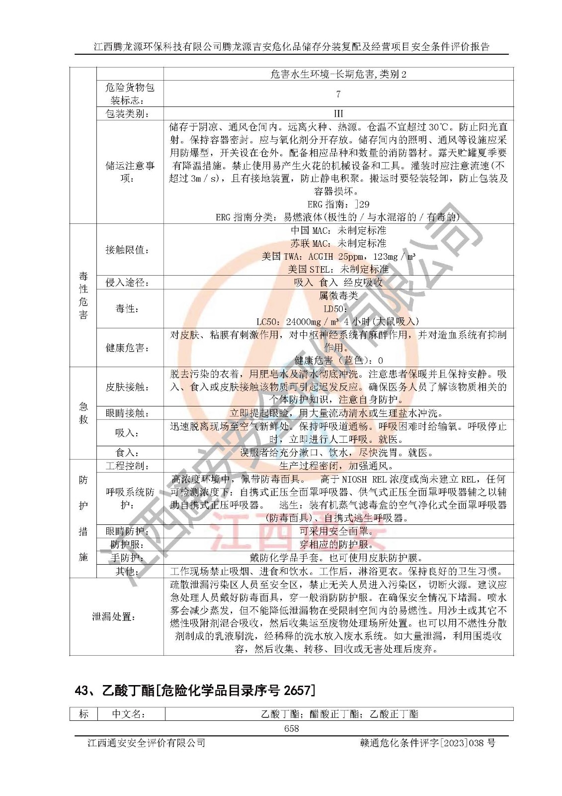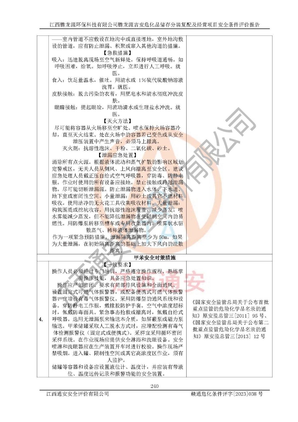 項(xiàng)目簡介 | 江西騰龍?jiān)?*科技有限公司成立于2022年6月20日,并取得吉水縣市場監(jiān)督管理局頒發(fā)的《營業(yè)執(zhí)照》,營業(yè)執(zhí)照統(tǒng)一社會信用代碼:91360822MABQK5GB5P。公司注冊住所:江西省吉安市吉水縣城西工業(yè)園區(qū)二期金龍路。法定**人:吳詩明。注冊資本壹仟萬元整。企業(yè)性質(zhì)為有限責(zé)任公司(自然人投資或控股)。營業(yè)執(zhí)照許可經(jīng)營范圍:一般項(xiàng)目:化工產(chǎn)品銷售(不含許可類化工產(chǎn)品)(除許可業(yè)務(wù)外,可自主依法經(jīng)營法律法規(guī)非禁止或限制的項(xiàng)目)。 江西騰龍?jiān)?*科技有限公司2023年2月24日取得吉水縣發(fā)展和改革委員會頒發(fā)的《江西省企業(yè)投資項(xiàng)目備案通知書》,備案項(xiàng)目名稱為:騰龍?jiān)醇参;穬Υ娣盅b復(fù)配及經(jīng)營項(xiàng)目。項(xiàng)目統(tǒng)一代碼為:2302-360822-04-01-318980。項(xiàng)目總投資20000萬元,項(xiàng)目總占地面積31.34畝。 根據(jù)《危險(xiǎn)化學(xué)品目錄(2015版)》(**安監(jiān)總局等十部門公告[2015]第5號)及應(yīng)急管理部、工業(yè)和信息化部、公安部、生態(tài)環(huán)境部、交通運(yùn)輸部、農(nóng)業(yè)農(nóng)村部、衛(wèi)生健康委、市場監(jiān)管總局、鐵路局、民航局決定調(diào)整《危險(xiǎn)化學(xué)品目錄(2015版)》(應(yīng)急管理部、工業(yè)和信息化部、公安部、生態(tài)環(huán)境部、交通運(yùn)輸部、農(nóng)業(yè)農(nóng)村部、衛(wèi)生健康委、市場監(jiān)管總局、鐵路局、民航局公告2022年第8號)等文件對該項(xiàng)目生產(chǎn)過程中所涉及的化學(xué)品進(jìn)行辨識:項(xiàng)目涉及的硫酸、鹽酸、雙氧水、硝酸、氫氧化鈉(固體和溶液)、次氯酸鈉溶液、氯酸鈉、氯酸鉀、鉻酸酐、高錳酸鈉、高錳酸鉀、硝酸鉀、重鉻酸鉀、重鉻酸鈉、硝酸鈉、亞硝酸鈉、過硫酸鈉、過硫酸銨、過硫酸鉀、漂白粉、氯化亞砜、甲醇、乙醇、二甲苯、甲苯、**、天那水、乙酸、乙酸乙酯、甲醛溶液、三氯乙烯、正丁醇、異丙醇、石油醚、醋酸酐、甲基乙基酮(丁酮)、三氯甲烷、乙醚、氨水(20%)、甲酸、二氯甲烷、**苯、乙酸丁酯、氫氟酸、磷酸、硫化鈉(無水)、氫氧化鉀、氨基磺酸、三氯化鐵、九水硝酸鐵、氯化鋅、硫脲、硼酸、硫酸鎳、氯化鎳、氟化氫銨、氟化氫鉀、氟化氫鈉、偏硅酸鈉、九水偏硅酸鈉、氟硅酸鈉、亞硫酸氫鈉、氟化鈉、氟化鉀、六次甲基四胺、結(jié)晶氯化鋁、碳酸二乙酯、碳酸二甲酯、酸性清洗劑、退鍍劑、開油水、洗網(wǎng)水、污水殺菌劑(復(fù)配的次氯酸鈉溶液)、電解液等屬于危險(xiǎn)化學(xué)品。 江西騰龍?jiān)?*科技有限公司騰龍?jiān)醇参;穬Υ娣盅b復(fù)配及經(jīng)營項(xiàng)目只進(jìn)行物理混合復(fù)配、分裝等作業(yè),不涉及化學(xué)反應(yīng)過程。因此該公司?;穫}儲經(jīng)營活動需要辦理《危險(xiǎn)化學(xué)品經(jīng)營許可證》。 根據(jù)《中華人民共和國監(jiān)控化學(xué)品管理?xiàng)l例》(中華人民共和國***令**90號,經(jīng)中華人民共和國***令第588號修改)及《各類監(jiān)控化學(xué)品名錄》(中華人民共和國工業(yè)和信息化部令第52號;2020年)、《列入第三類監(jiān)控化學(xué)品的新增品種清單》**石油和化學(xué)工業(yè)局令**號等規(guī)定進(jìn)行辨識:項(xiàng)目涉及的氯化亞砜屬于第三類監(jiān)控化學(xué)品。 根據(jù)《易制毒化學(xué)品管理?xiàng)l例》(***令第445號,經(jīng)***令第653號、***第666號、***第703號修改)及附表規(guī)定、中華人民共和國公安部 中華人民共和國商務(wù)部、**衛(wèi)生和計(jì)劃生育委員會、中華人民共和國海關(guān)總署、**安全生產(chǎn)監(jiān)督管理總局、**食品藥品監(jiān)督管理總局《關(guān)于將4-苯胺基-N-苯乙基哌啶、N-苯乙基-4-哌啶酮、N-甲基-1-苯基-1-氯-2-丙胺、溴素、1-苯基-1-**5種物質(zhì)列入易制毒化學(xué)品管理的公告》(國辦函[2017]**20號)、《***辦公廳關(guān)于同意將1-苯基-2-溴-1-**和3-氧-2-苯基丁腈列入易制毒化學(xué)品品種目錄的函》(國辦函[2014]第40號)、《***辦公廳關(guān)于同意將α-苯乙酰乙酸甲酯等6種物質(zhì)列入易制毒化學(xué)品品種目錄的函》(國辦函〔2021〕58號)等進(jìn)行辨識:項(xiàng)目涉及的硫酸、鹽酸、高錳酸鉀、甲苯、**、甲基乙基酮等屬于第三類易制毒化學(xué)品;醋酸酐、三氯甲烷、乙醚等屬于第二類易制毒化學(xué)品。 根據(jù)《危險(xiǎn)化學(xué)品名錄[2015年版]》(**安監(jiān)總局等十部門[2015]第5號)進(jìn)行劇毒化學(xué)品辨識:項(xiàng)目不涉及劇毒化學(xué)品。 根據(jù)《高毒物品目錄(2003年版)》(原衛(wèi)生部衛(wèi)法監(jiān)發(fā)[2003]142號)對項(xiàng)目涉及的化學(xué)品進(jìn)行高毒物品辨識:項(xiàng)目涉及的甲醛溶液、硫酸鎳、氯化鎳、氟化氫銨、氟化氫鉀、氟化氫鈉、氟化鈉、氟化鉀、鉻酸酐、高錳酸鉀、高錳酸鈉、重鉻酸鉀、重鉻酸鈉等屬于高毒物品。 根據(jù)中華人民共和國公安部《易制爆危險(xiǎn)化學(xué)品名錄》(2017年版)中規(guī)定進(jìn)行辨識:項(xiàng)目涉及的雙氧水、硝酸、氯酸鈉、氯酸鉀、高錳酸鉀、高錳酸鈉、硝酸鉀、重鉻酸鉀、重鉻酸鈉、硝酸鈉、六次甲基四胺等屬于易