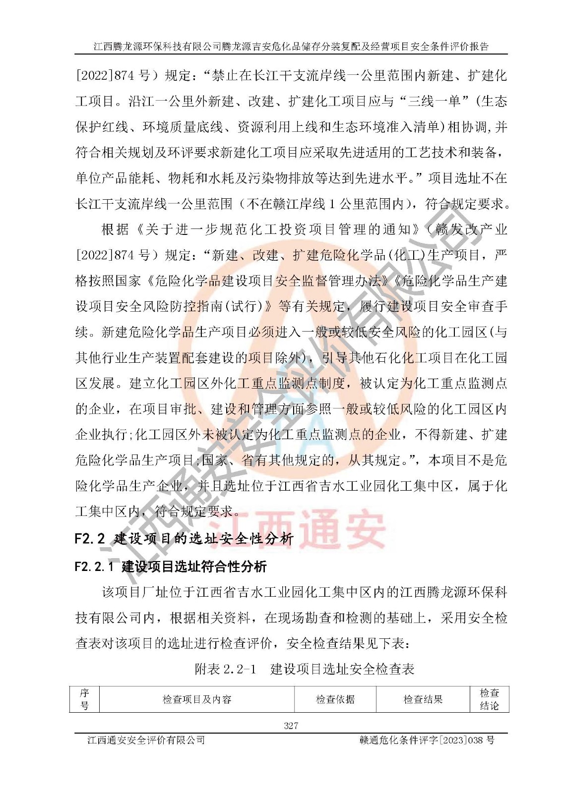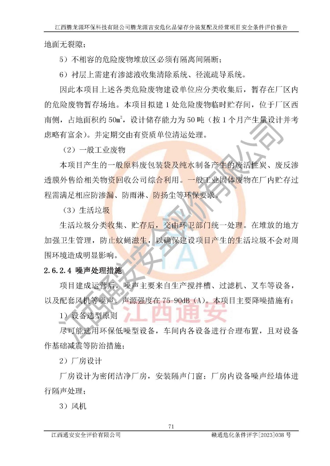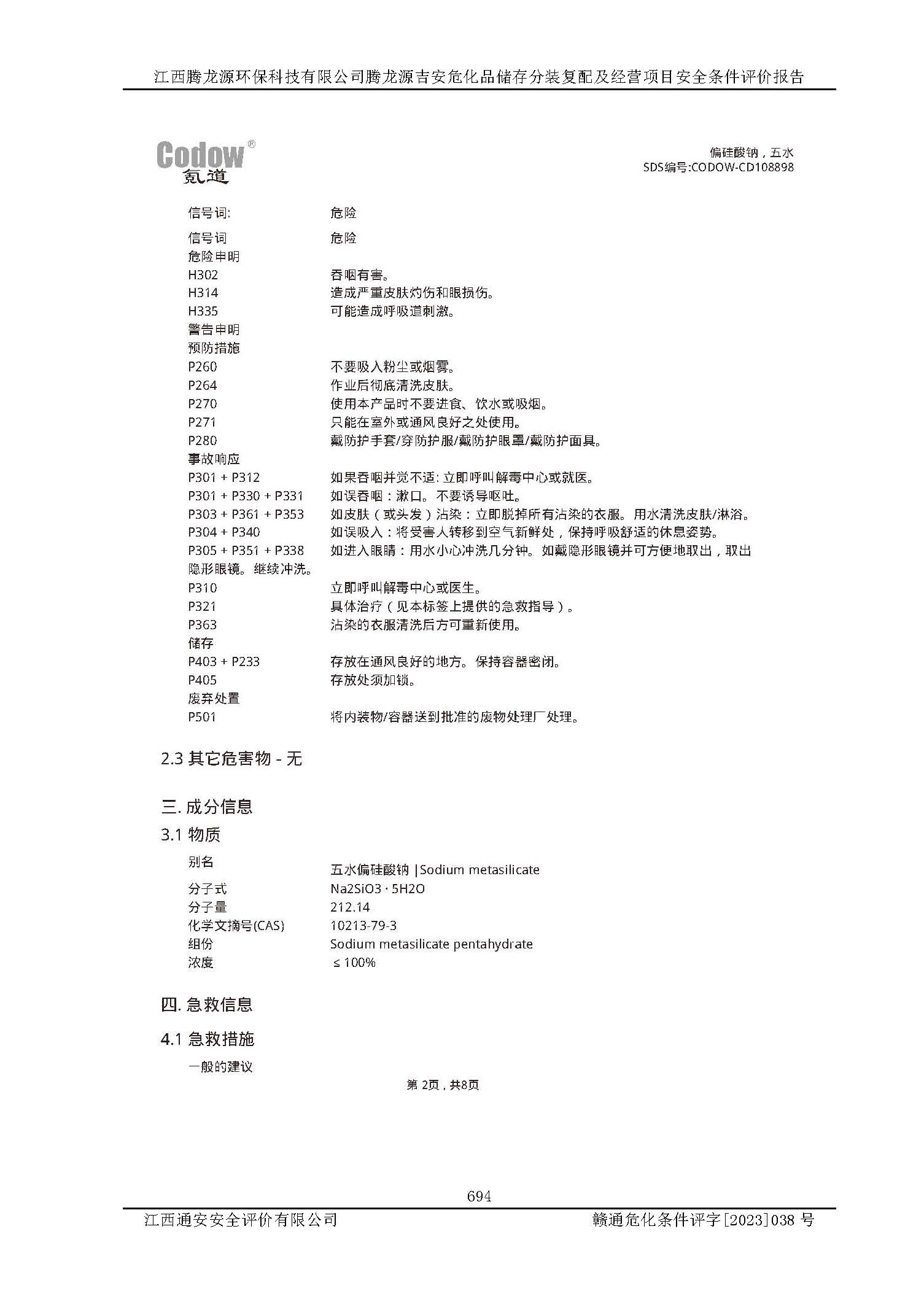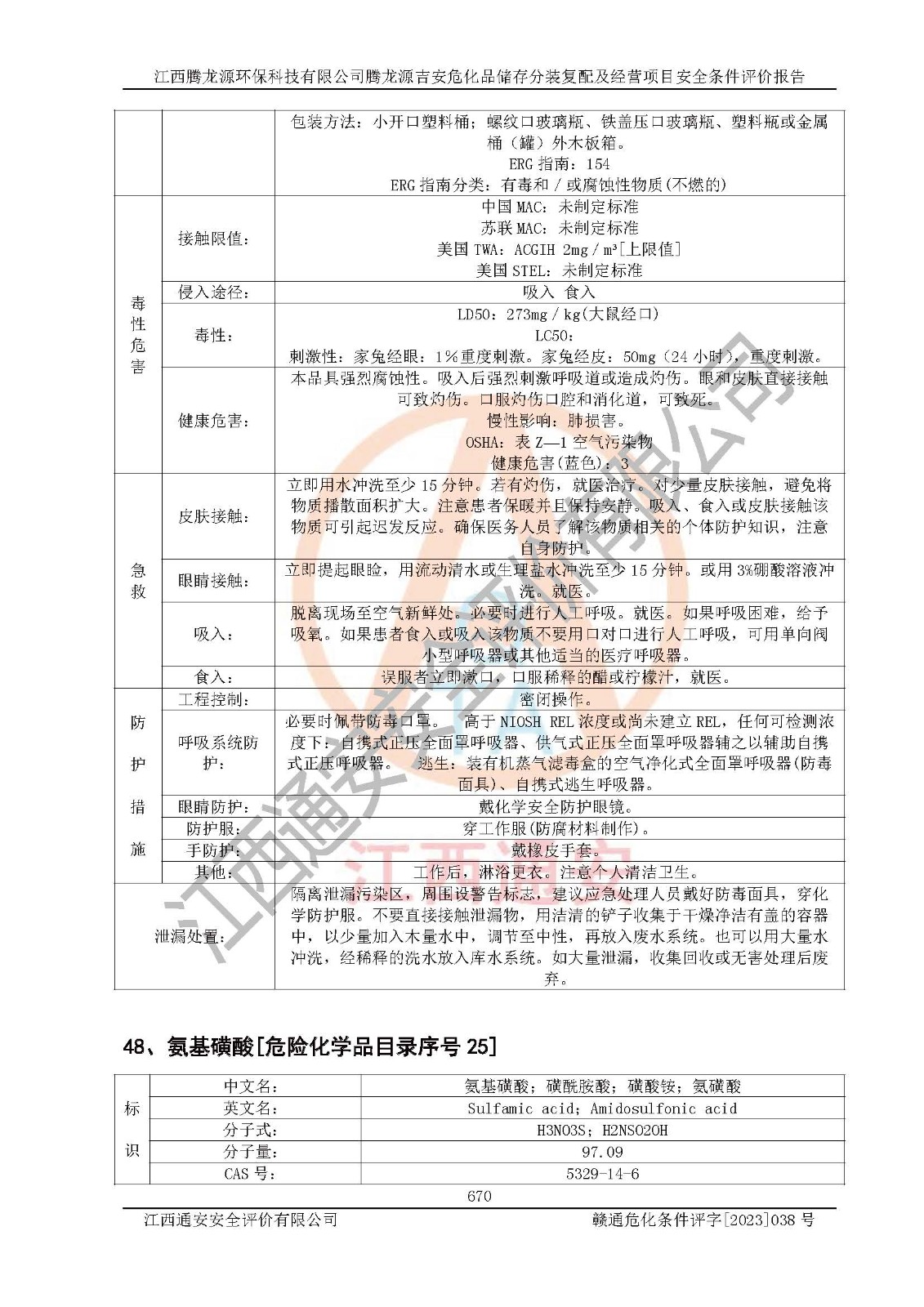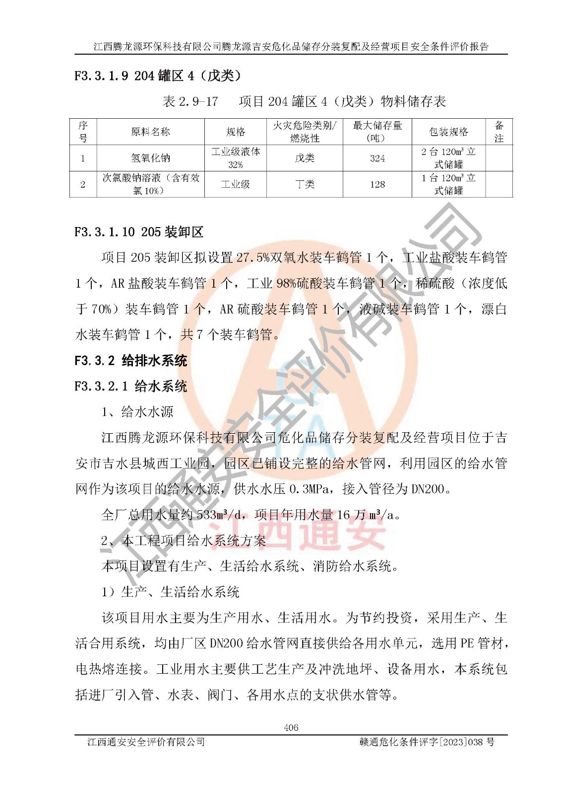 項(xiàng)目簡介 | 江西騰龍?jiān)?*科技有限公司成立于2022年6月20日,并取得吉水縣市場監(jiān)督管理局頒發(fā)的《營業(yè)執(zhí)照》,營業(yè)執(zhí)照統(tǒng)一社會信用代碼:91360822MABQK5GB5P。公司注冊住所:江西省吉安市吉水縣城西工業(yè)園區(qū)二期金龍路。法定**人:吳詩明。注冊資本壹仟萬元整。企業(yè)性質(zhì)為有限責(zé)任公司(自然人投資或控股)。營業(yè)執(zhí)照許可經(jīng)營范圍:一般項(xiàng)目:化工產(chǎn)品銷售(不含許可類化工產(chǎn)品)(除許可業(yè)務(wù)外,可自主依法經(jīng)營法律法規(guī)非禁止或限制的項(xiàng)目)。 江西騰龍?jiān)?*科技有限公司2023年2月24日取得吉水縣發(fā)展和改革委員會頒發(fā)的《江西省企業(yè)投資項(xiàng)目備案通知書》,備案項(xiàng)目名稱為:騰龍?jiān)醇参;穬Υ娣盅b復(fù)配及經(jīng)營項(xiàng)目。項(xiàng)目統(tǒng)一代碼為:2302-360822-04-01-318980。項(xiàng)目總投資20000萬元,項(xiàng)目總占地面積31.34畝。 根據(jù)《危險(xiǎn)化學(xué)品目錄(2015版)》(**安監(jiān)總局等十部門公告[2015]第5號)及應(yīng)急管理部、工業(yè)和信息化部、公安部、生態(tài)環(huán)境部、交通運(yùn)輸部、農(nóng)業(yè)農(nóng)村部、衛(wèi)生健康委、市場監(jiān)管總局、鐵路局、民航局決定調(diào)整《危險(xiǎn)化學(xué)品目錄(2015版)》(應(yīng)急管理部、工業(yè)和信息化部、公安部、生態(tài)環(huán)境部、交通運(yùn)輸部、農(nóng)業(yè)農(nóng)村部、衛(wèi)生健康委、市場監(jiān)管總局、鐵路局、民航局公告2022年第8號)等文件對該項(xiàng)目生產(chǎn)過程中所涉及的化學(xué)品進(jìn)行辨識:項(xiàng)目涉及的硫酸、鹽酸、雙氧水、硝酸、氫氧化鈉(固體和溶液)、次氯酸鈉溶液、氯酸鈉、氯酸鉀、鉻酸酐、高錳酸鈉、高錳酸鉀、硝酸鉀、重鉻酸鉀、重鉻酸鈉、硝酸鈉、亞硝酸鈉、過硫酸鈉、過硫酸銨、過硫酸鉀、漂白粉、氯化亞砜、甲醇、乙醇、二甲苯、甲苯、**、天那水、乙酸、乙酸乙酯、甲醛溶液、三氯乙烯、正丁醇、異丙醇、石油醚、醋酸酐、甲基乙基酮(丁酮)、三氯甲烷、乙醚、氨水(20%)、甲酸、二氯甲烷、**苯、乙酸丁酯、氫氟酸、磷酸、硫化鈉(無水)、氫氧化鉀、氨基磺酸、三氯化鐵、九水硝酸鐵、氯化鋅、硫脲、硼酸、硫酸鎳、氯化鎳、氟化氫銨、氟化氫鉀、氟化氫鈉、偏硅酸鈉、九水偏硅酸鈉、氟硅酸鈉、亞硫酸氫鈉、氟化鈉、氟化鉀、六次甲基四胺、結(jié)晶氯化鋁、碳酸二乙酯、碳酸二甲酯、酸性清洗劑、退鍍劑、開油水、洗網(wǎng)水、污水殺菌劑(復(fù)配的次氯酸鈉溶液)、電解液等屬于危險(xiǎn)化學(xué)品。 江西騰龍?jiān)?*科技有限公司騰龍?jiān)醇参;穬Υ娣盅b復(fù)配及經(jīng)營項(xiàng)目只進(jìn)行物理混合復(fù)配、分裝等作業(yè),不涉及化學(xué)反應(yīng)過程。因此該公司?;穫}儲經(jīng)營活動需要辦理《危險(xiǎn)化學(xué)品經(jīng)營許可證》。 根據(jù)《中華人民共和國監(jiān)控化學(xué)品管理?xiàng)l例》(中華人民共和國***令**90號,經(jīng)中華人民共和國***令第588號修改)及《各類監(jiān)控化學(xué)品名錄》(中華人民共和國工業(yè)和信息化部令第52號;2020年)、《列入第三類監(jiān)控化學(xué)品的新增品種清單》**石油和化學(xué)工業(yè)局令**號等規(guī)定進(jìn)行辨識:項(xiàng)目涉及的氯化亞砜屬于第三類監(jiān)控化學(xué)品。 根據(jù)《易制毒化學(xué)品管理?xiàng)l例》(***令第445號,經(jīng)***令第653號、***第666號、***第703號修改)及附表規(guī)定、中華人民共和國公安部 中華人民共和國商務(wù)部、**衛(wèi)生和計(jì)劃生育委員會、中華人民共和國海關(guān)總署、**安全生產(chǎn)監(jiān)督管理總局、**食品藥品監(jiān)督管理總局《關(guān)于將4-苯胺基-N-苯乙基哌啶、N-苯乙基-4-哌啶酮、N-甲基-1-苯基-1-氯-2-丙胺、溴素、1-苯基-1-**5種物質(zhì)列入易制毒化學(xué)品管理的公告》(國辦函[2017]**20號)、《***辦公廳關(guān)于同意將1-苯基-2-溴-1-**和3-氧-2-苯基丁腈列入易制毒化學(xué)品品種目錄的函》(國辦函[2014]第40號)、《***辦公廳關(guān)于同意將α-苯乙酰乙酸甲酯等6種物質(zhì)列入易制毒化學(xué)品品種目錄的函》(國辦函〔2021〕58號)等進(jìn)行辨識:項(xiàng)目涉及的硫酸、鹽酸、高錳酸鉀、甲苯、**、甲基乙基酮等屬于第三類易制毒化學(xué)品;醋酸酐、三氯甲烷、乙醚等屬于第二類易制毒化學(xué)品。 根據(jù)《危險(xiǎn)化學(xué)品名錄[2015年版]》(**安監(jiān)總局等十部門[2015]第5號)進(jìn)行劇毒化學(xué)品辨識:項(xiàng)目不涉及劇毒化學(xué)品。 根據(jù)《高毒物品目錄(2003年版)》(原衛(wèi)生部衛(wèi)法監(jiān)發(fā)[2003]142號)對項(xiàng)目涉及的化學(xué)品進(jìn)行高毒物品辨識:項(xiàng)目涉及的甲醛溶液、硫酸鎳、氯化鎳、氟化氫銨、氟化氫鉀、氟化氫鈉、氟化鈉、氟化鉀、鉻酸酐、高錳酸鉀、高錳酸鈉、重鉻酸鉀、重鉻酸鈉等屬于高毒物品。 根據(jù)中華人民共和國公安部《易制爆危險(xiǎn)化學(xué)品名錄》(2017年版)中規(guī)定進(jìn)行辨識:項(xiàng)目涉及的雙氧水、硝酸、氯酸鈉、氯酸鉀、高錳酸鉀、高錳酸鈉、硝酸鉀、重鉻酸鉀、重鉻酸鈉、硝酸鈉、六次甲基四胺等屬于易