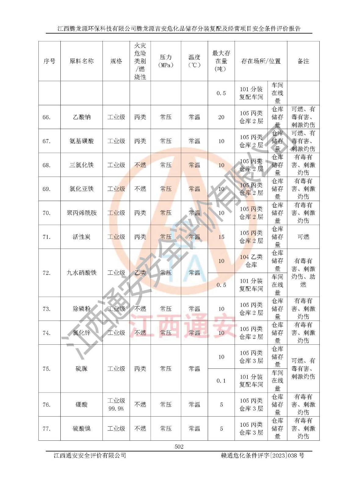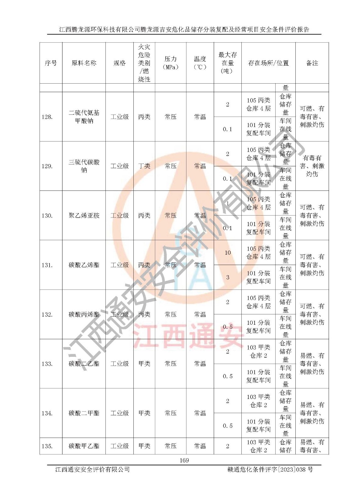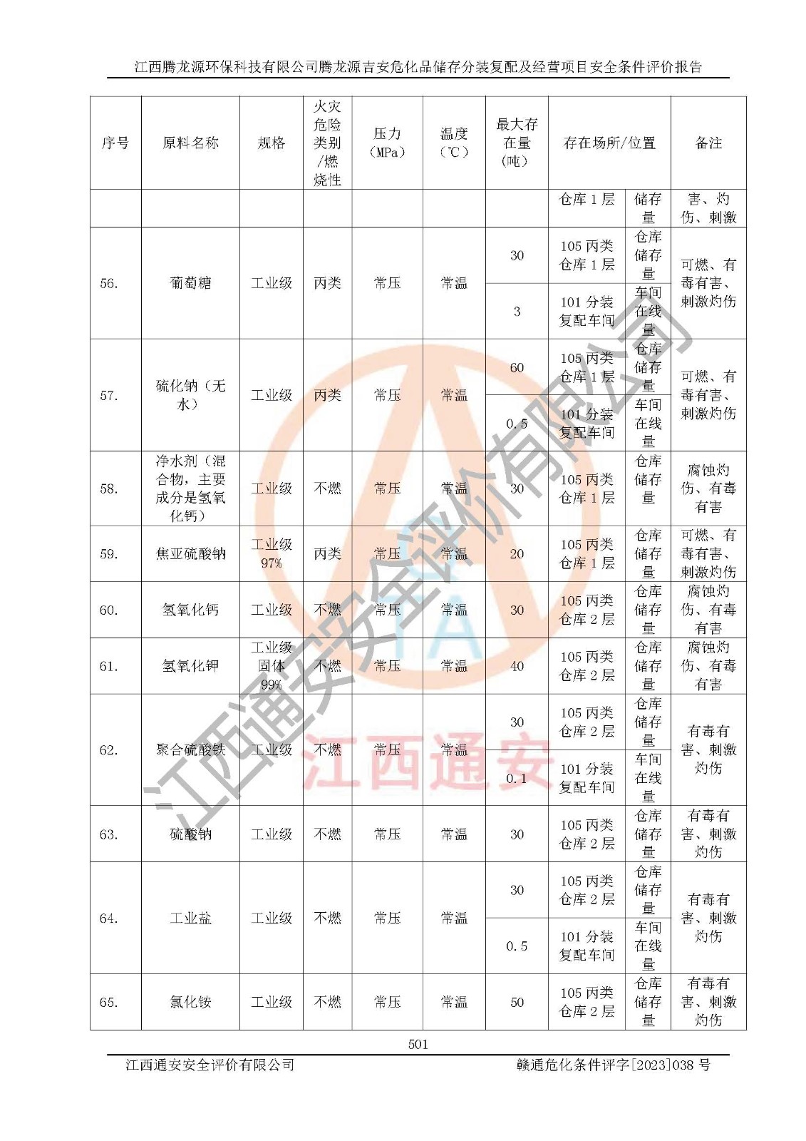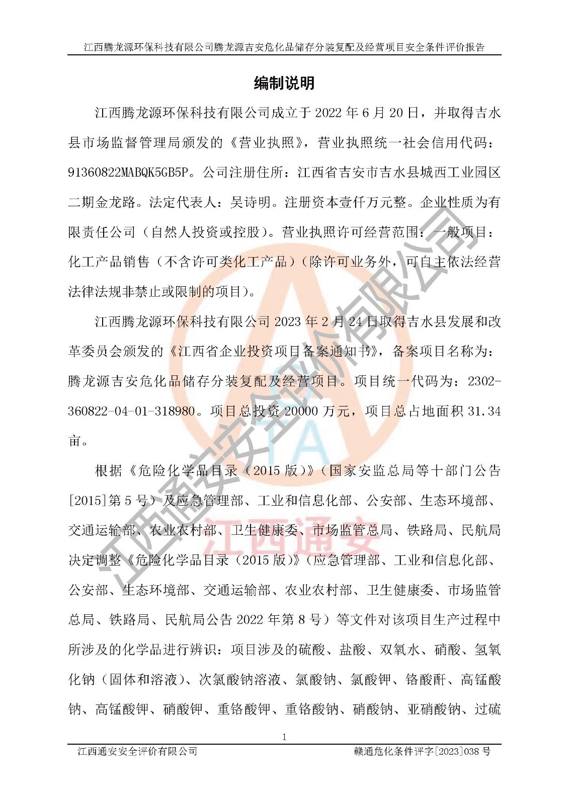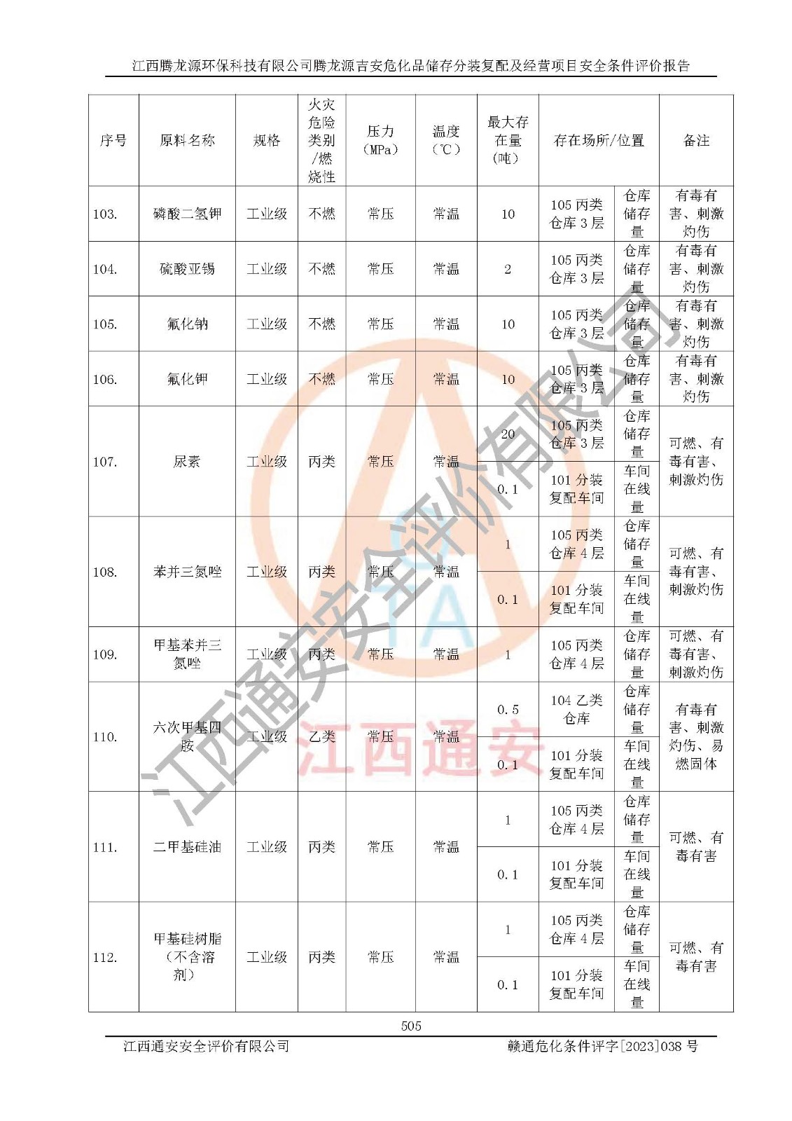 評價報(bào)告名稱 | 江西騰龍?jiān)?*科技有限公司騰龍?jiān)醇参;穬Υ娣盅b復(fù)配及經(jīng)營項(xiàng)目安全條件評價報(bào)告 | |||
