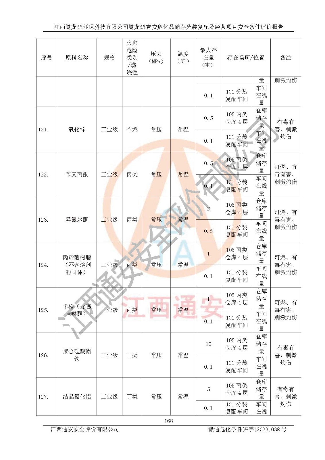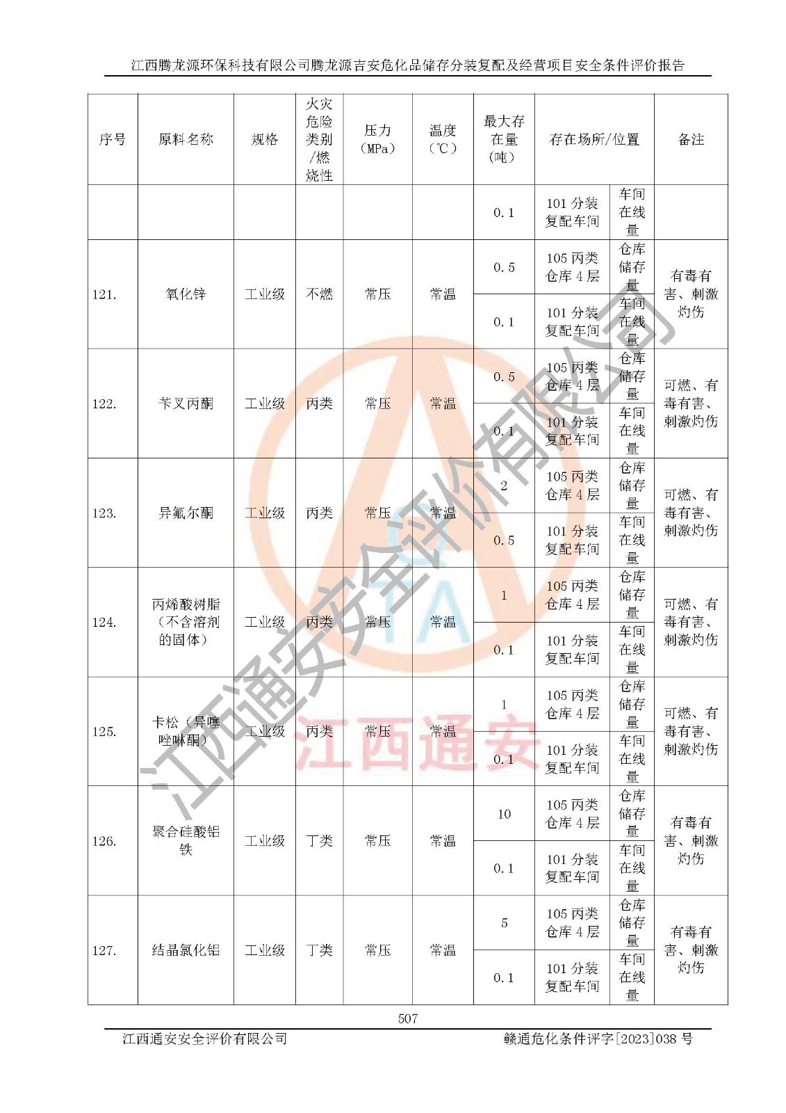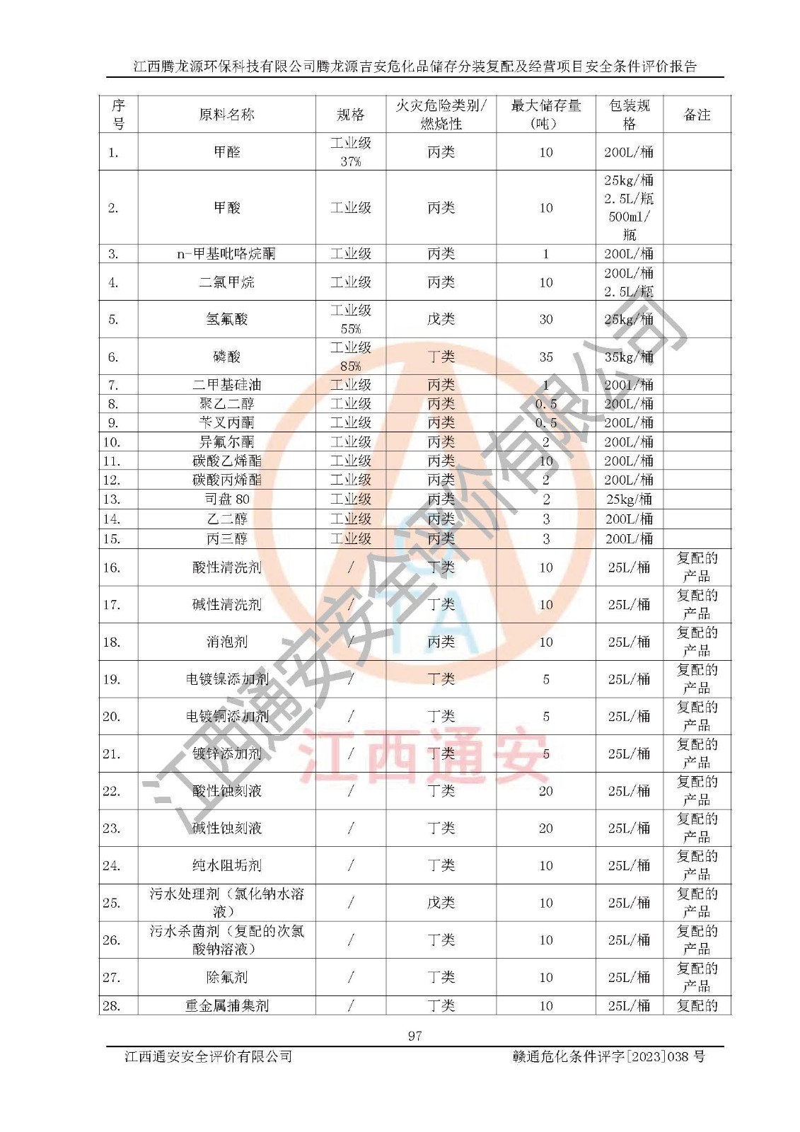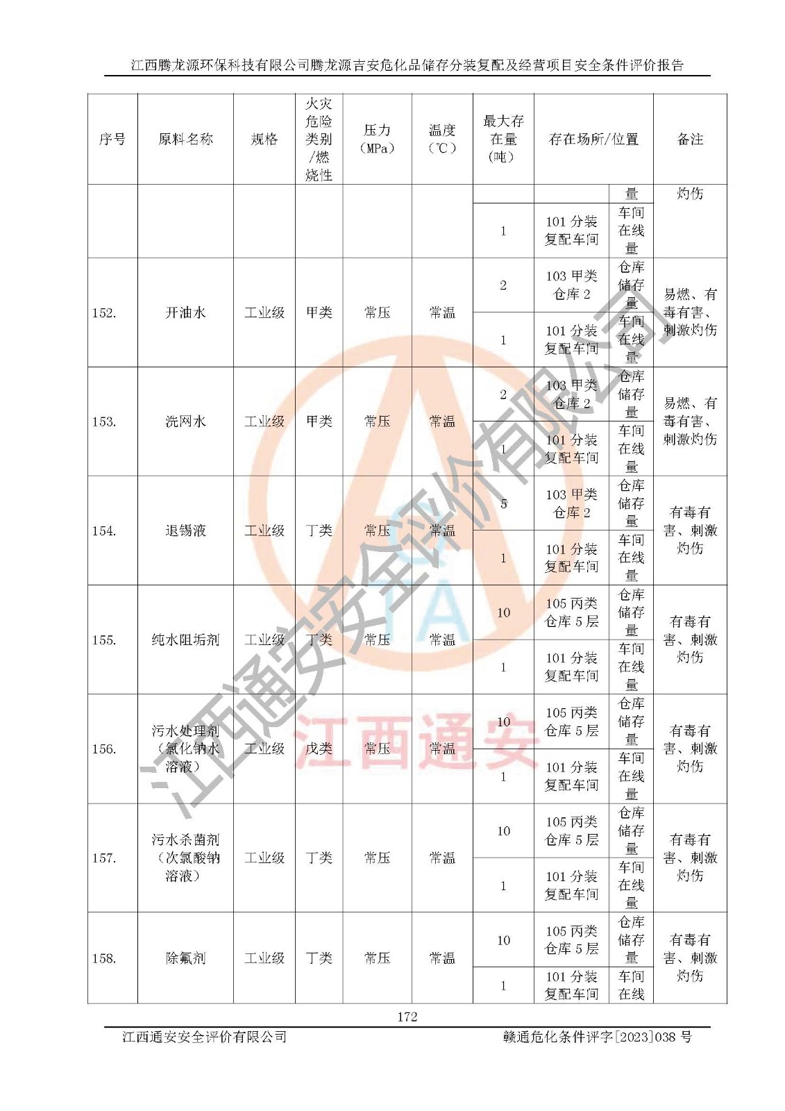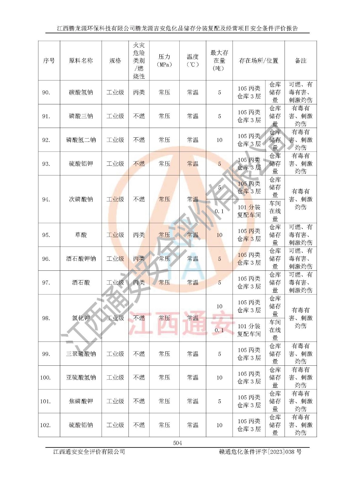評價報(bào)告名稱 | 江西騰龍?jiān)?*科技有限公司騰龍?jiān)醇参;穬Υ娣盅b復(fù)配及經(jīng)營項(xiàng)目安全條件評價報(bào)告 | |||