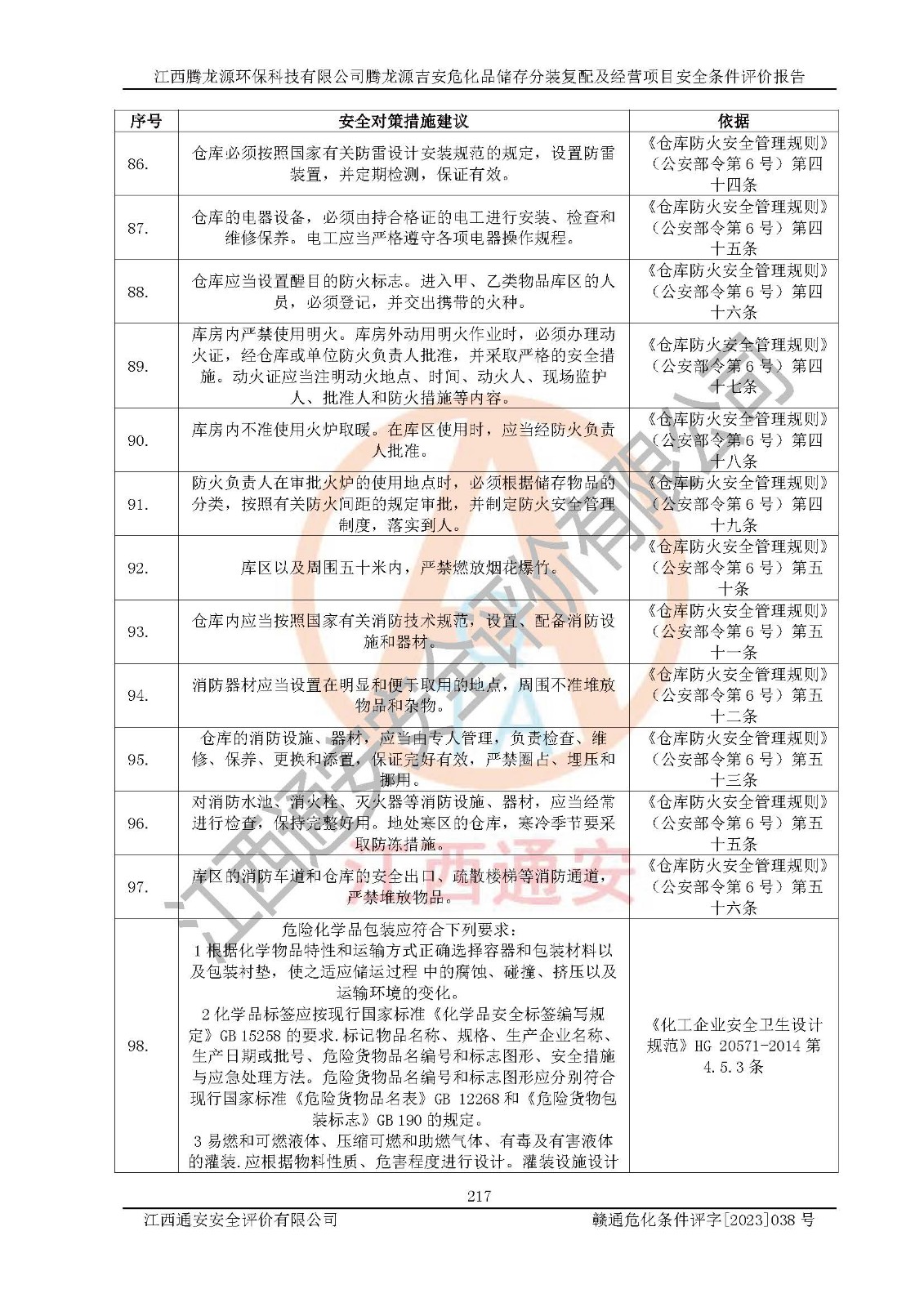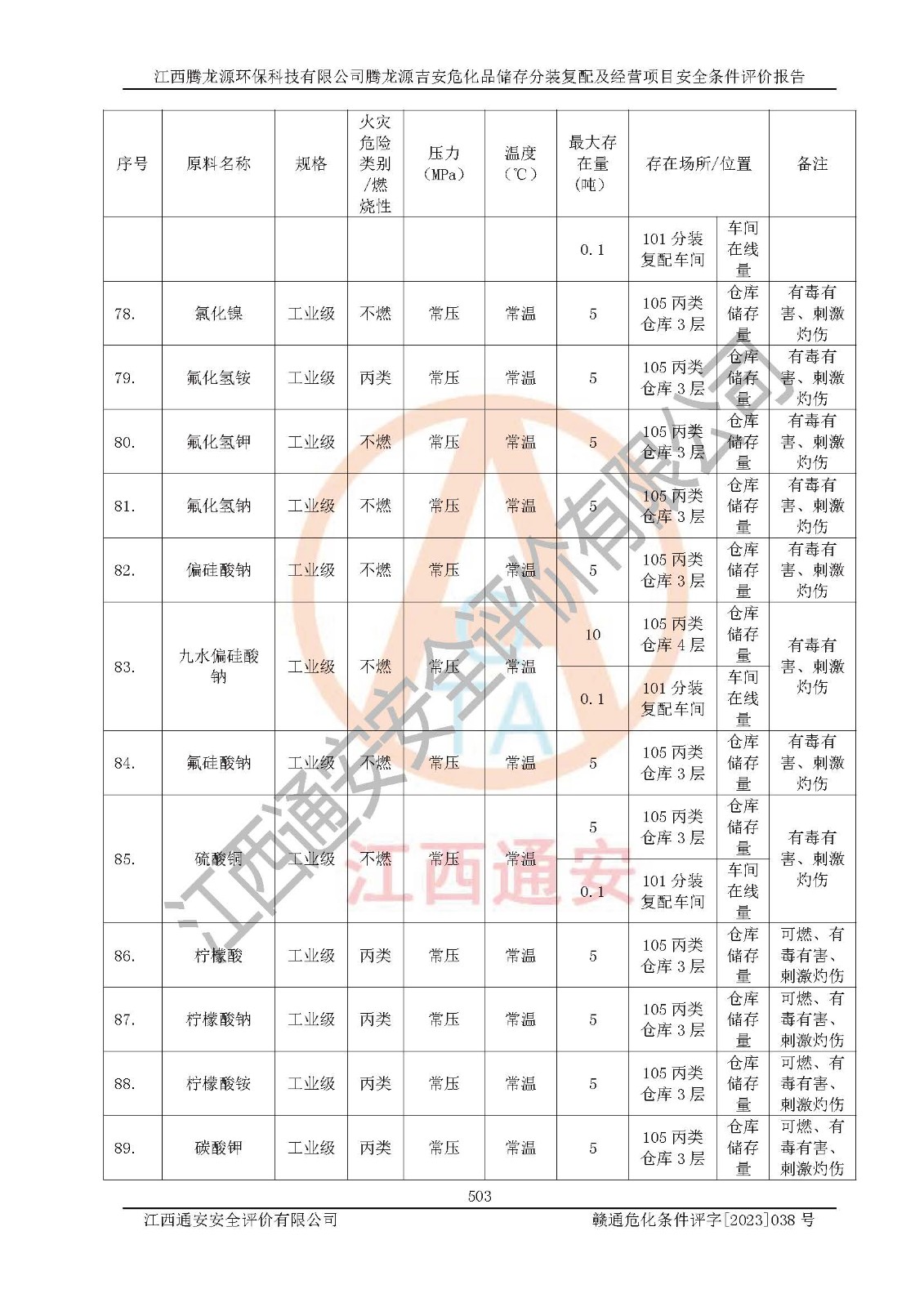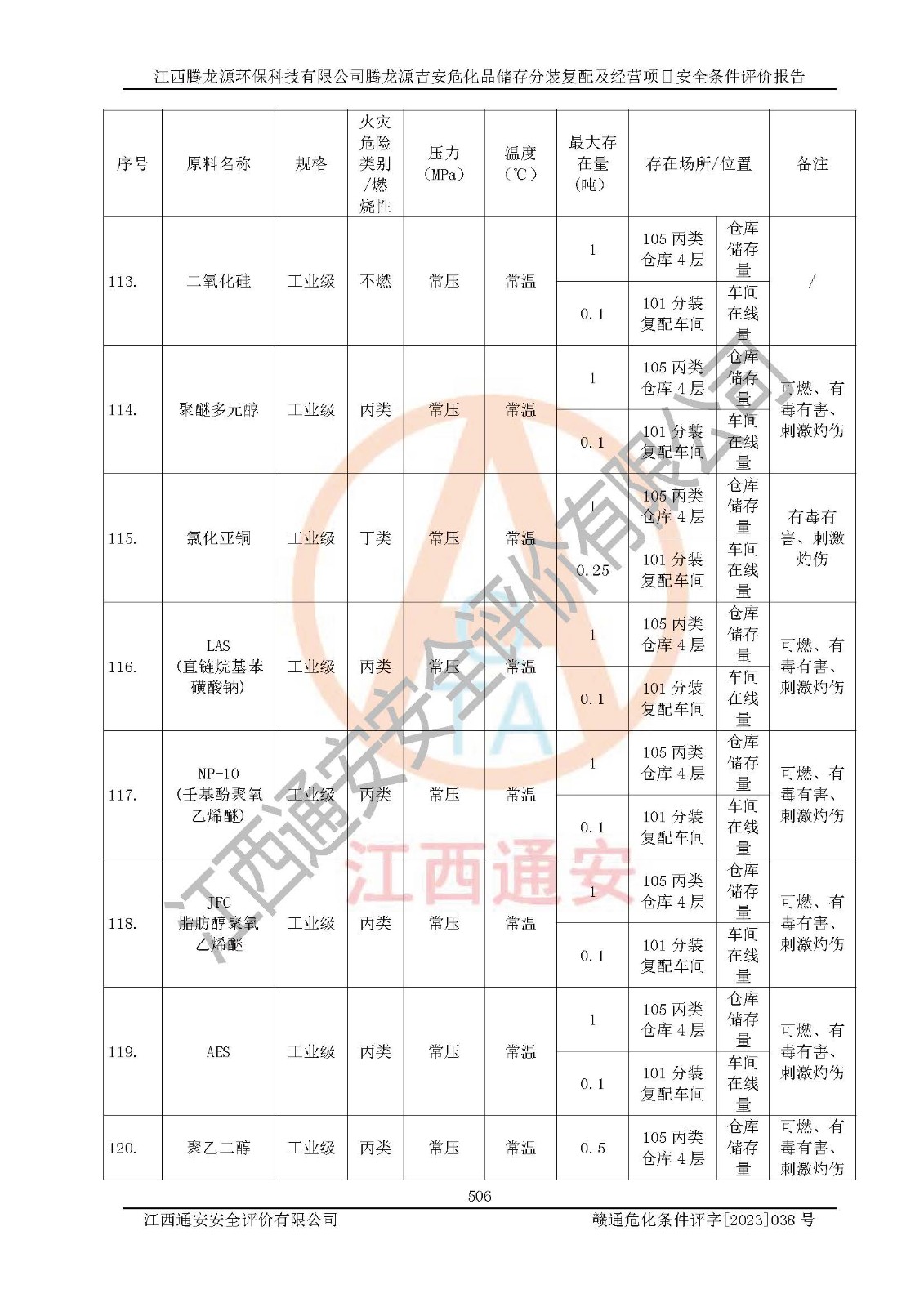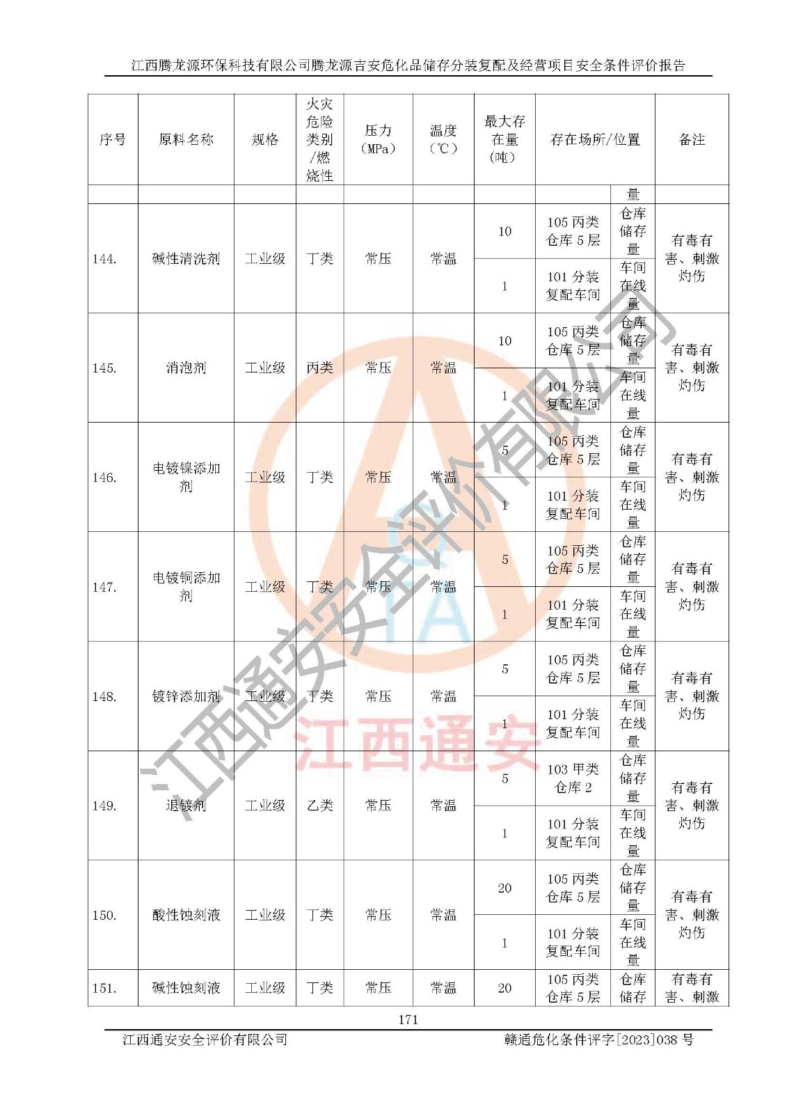 評價報(bào)告名稱 | 江西騰龍?jiān)?*科技有限公司騰龍?jiān)醇参;穬Υ娣盅b復(fù)配及經(jīng)營項(xiàng)目安全條件評價報(bào)告 | |||