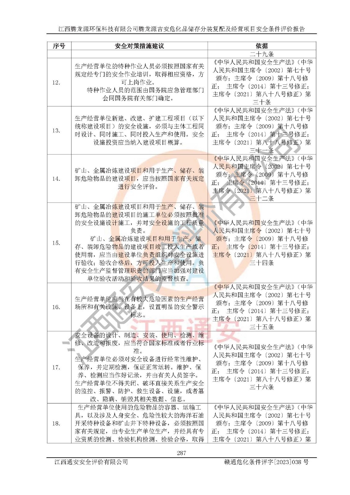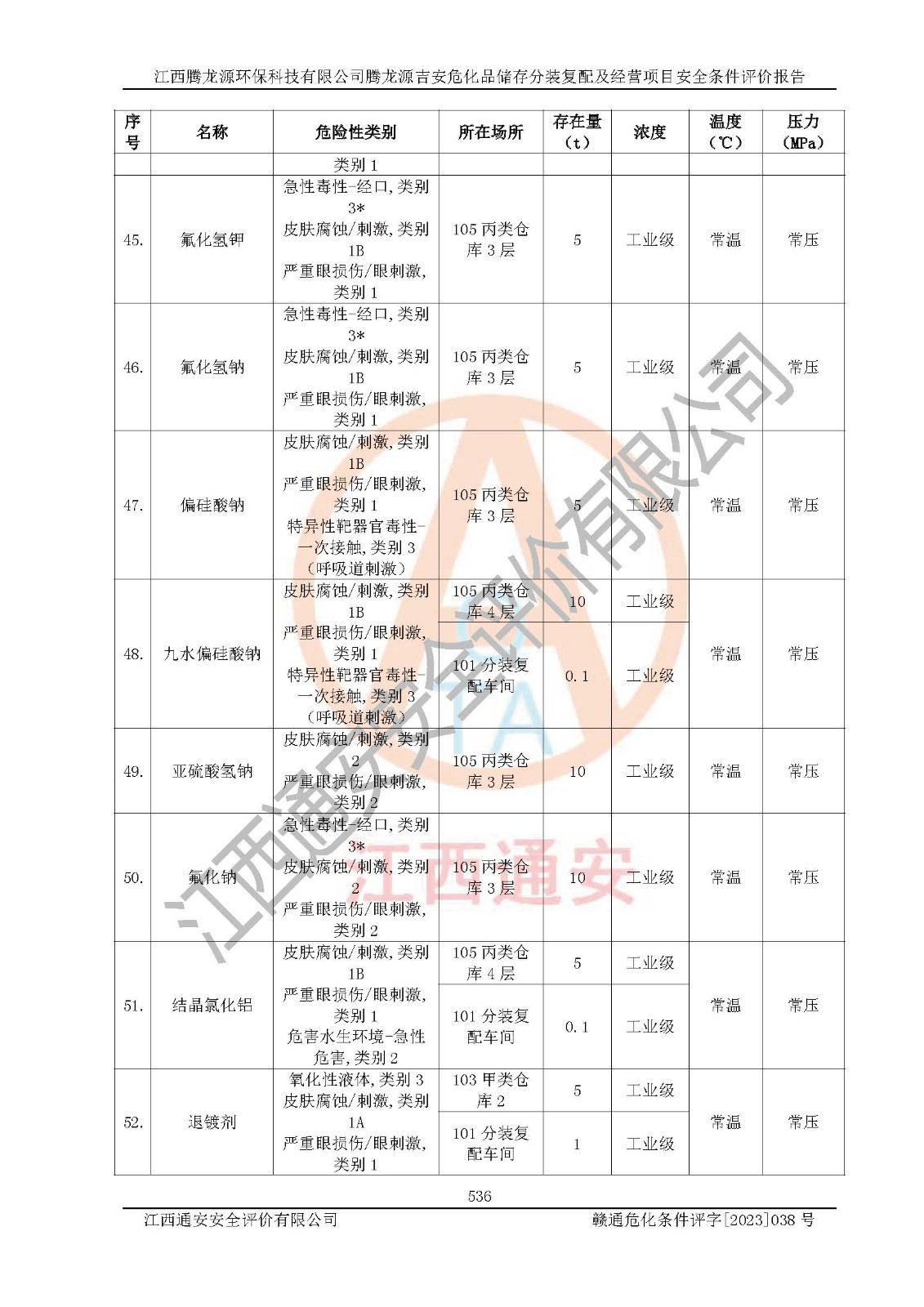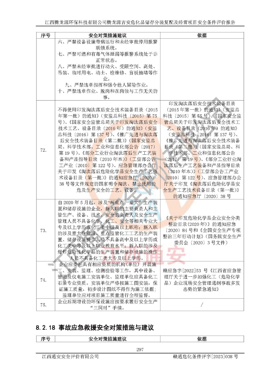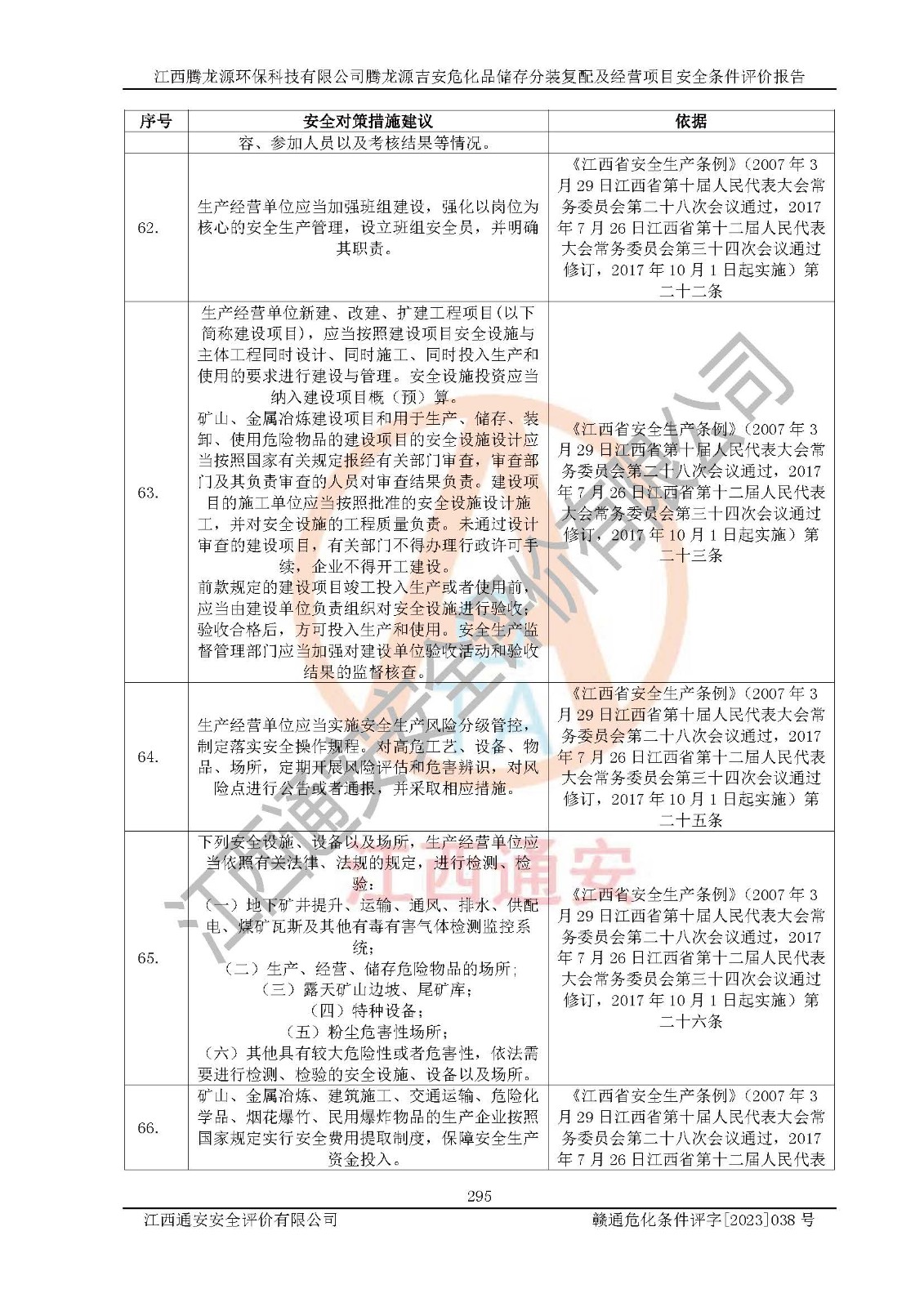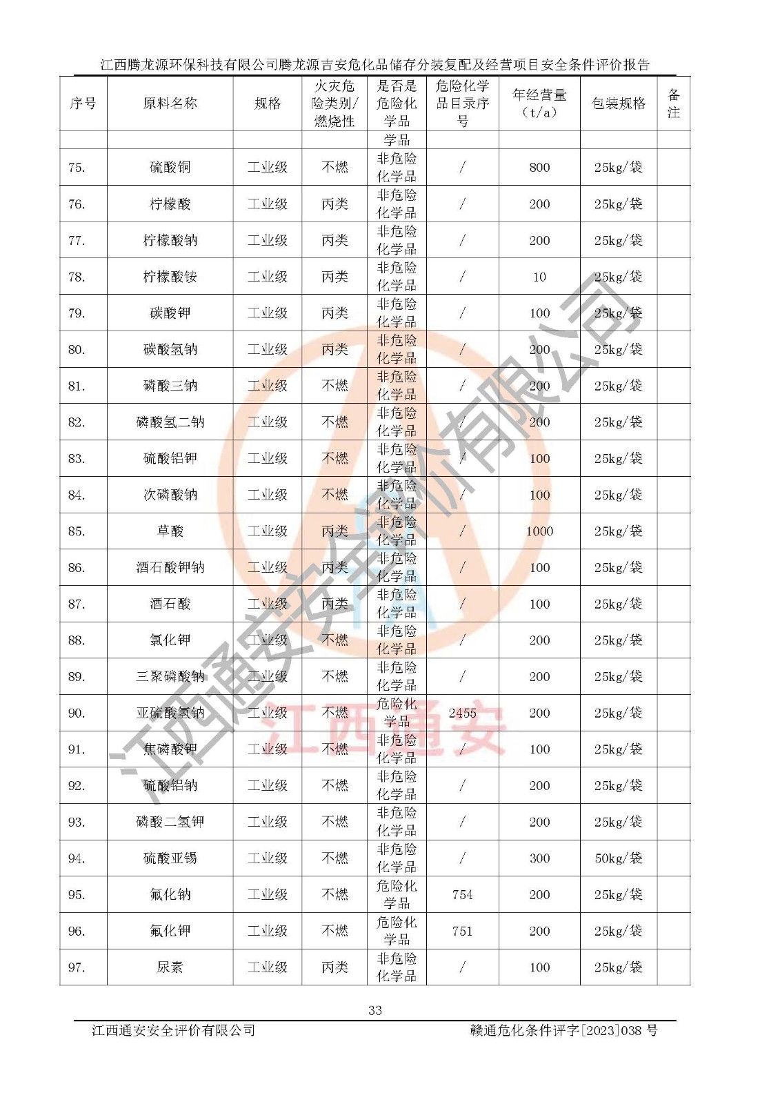 評價報(bào)告名稱 | 江西騰龍?jiān)?*科技有限公司騰龍?jiān)醇参;穬Υ娣盅b復(fù)配及經(jīng)營項(xiàng)目安全條件評價報(bào)告 | |||