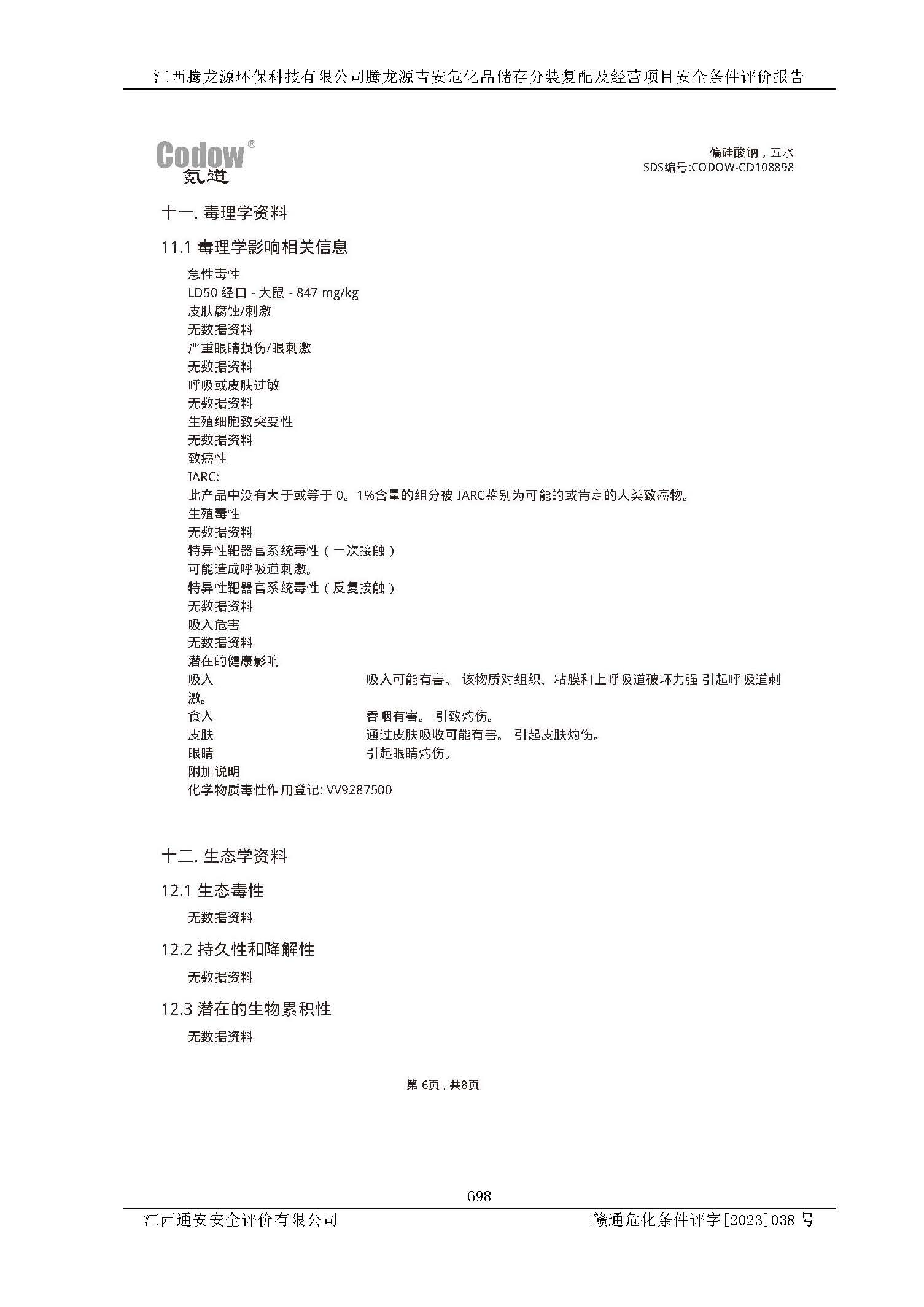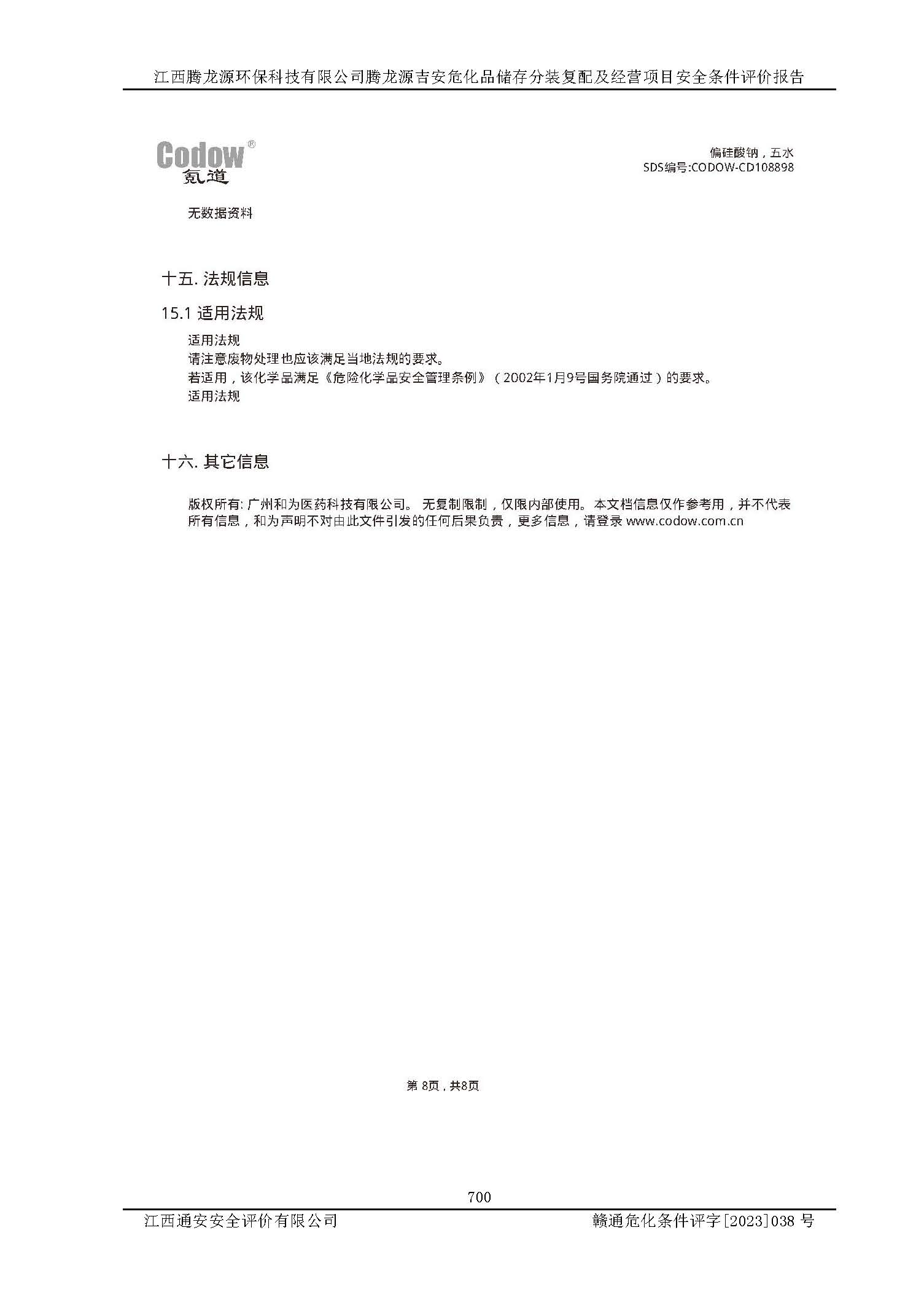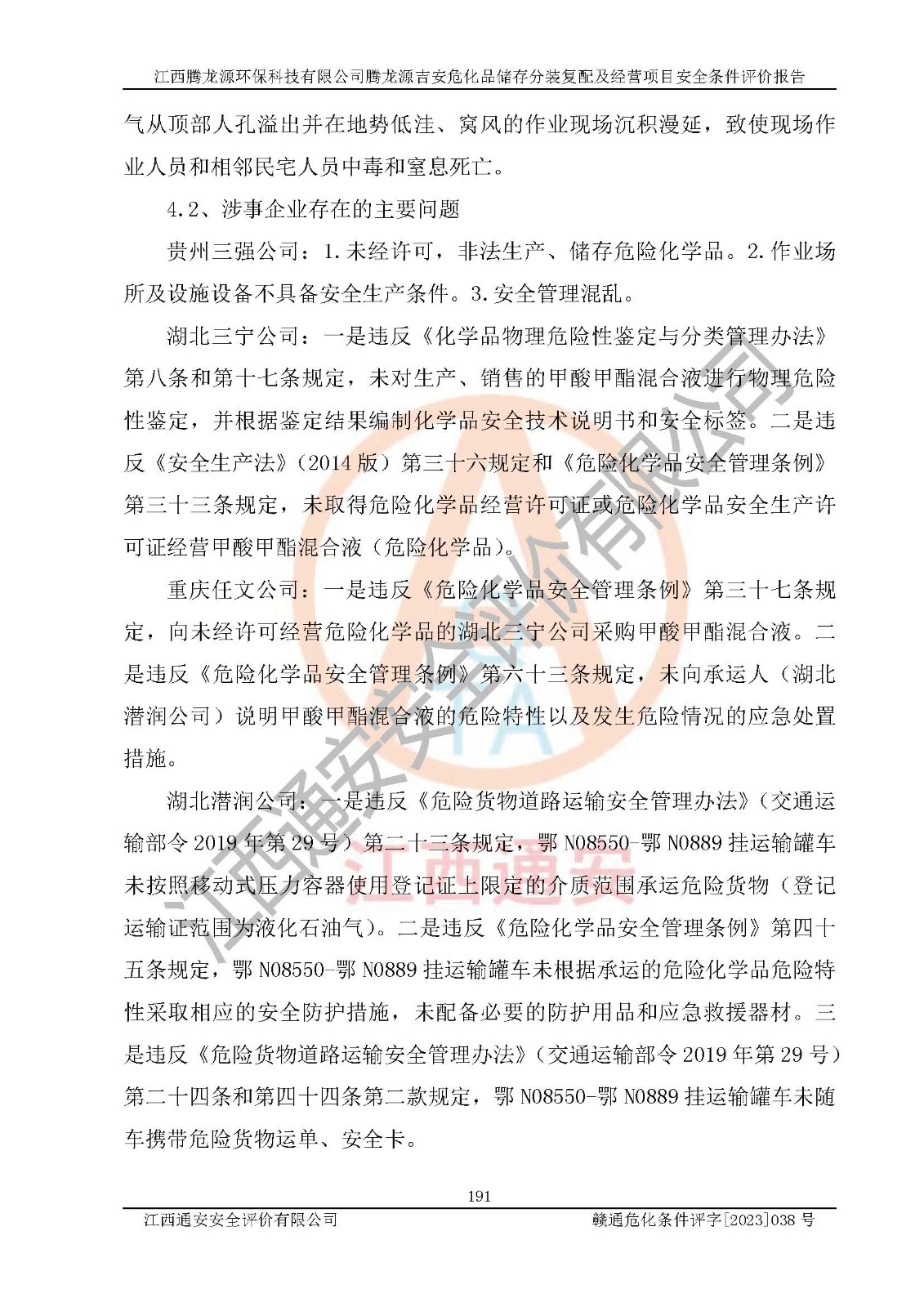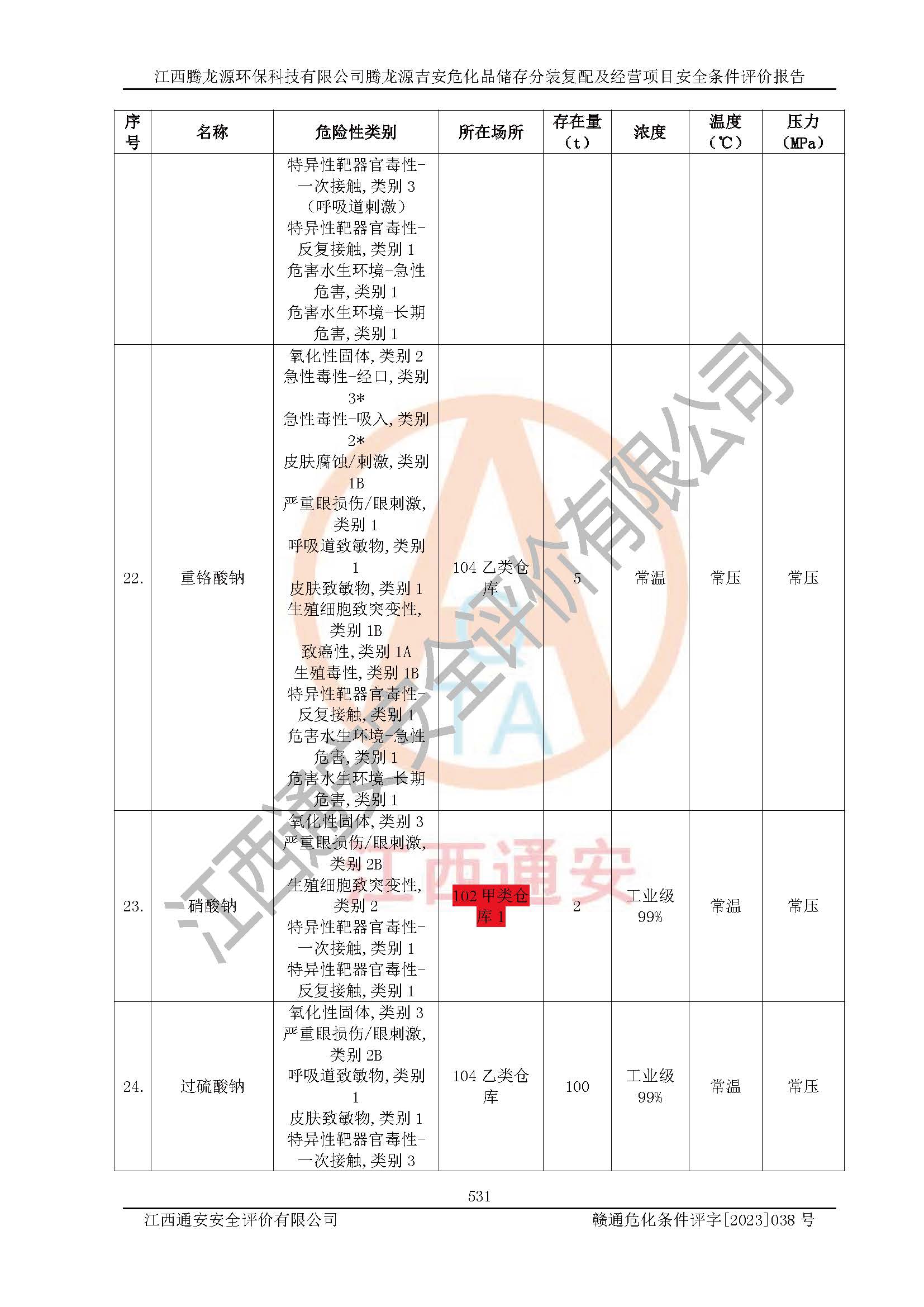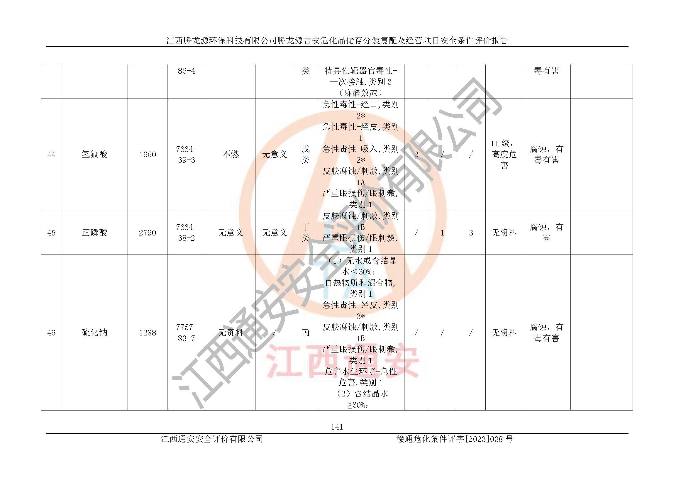 評價報(bào)告名稱 | 江西騰龍?jiān)?*科技有限公司騰龍?jiān)醇参;穬Υ娣盅b復(fù)配及經(jīng)營項(xiàng)目安全條件評價報(bào)告 | |||